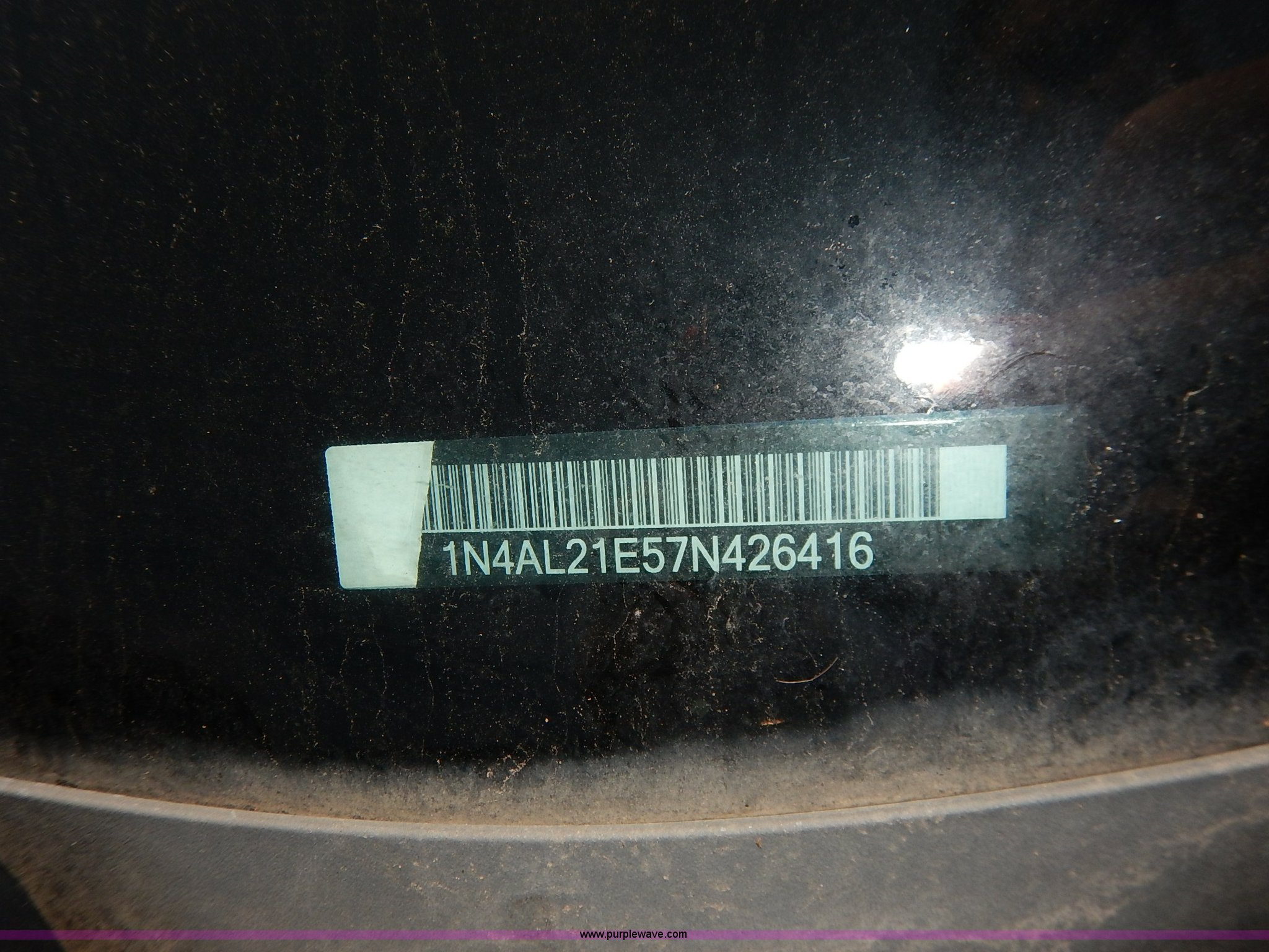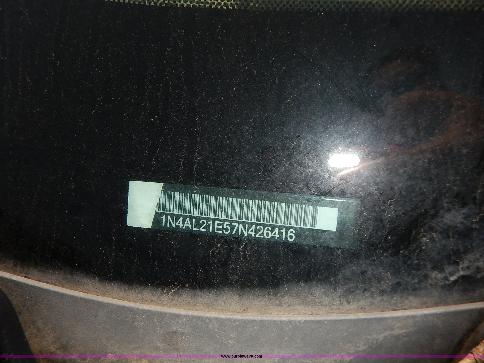 2007 Nissan Altima. Unknown miles on odometer, 2.5L L4 DOHC 16V gas engine, Automatic transmission, AC and heat, Tilt, Cruise, AM/FM/CD, Power windows, locks, and mirrors, Cloth interior, 215/60R16 tires, No keys, Interior/exterior cosmetic damage, Broken window, Unknown operating condition, Unit# AV2014018. Vehicle abandoned. Title history is unknown.. Buyer will receive US Government issued ownership documentation from the seller which will be sufficient to apply for a title in the buyer's name.. See NAFI specific removal terms. 1N4AL21E57N426416. NAFI Abandoned Vehicles. Fort Riley, KS 66442