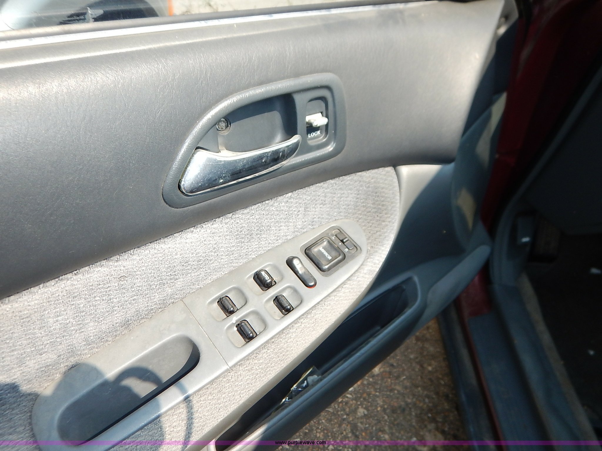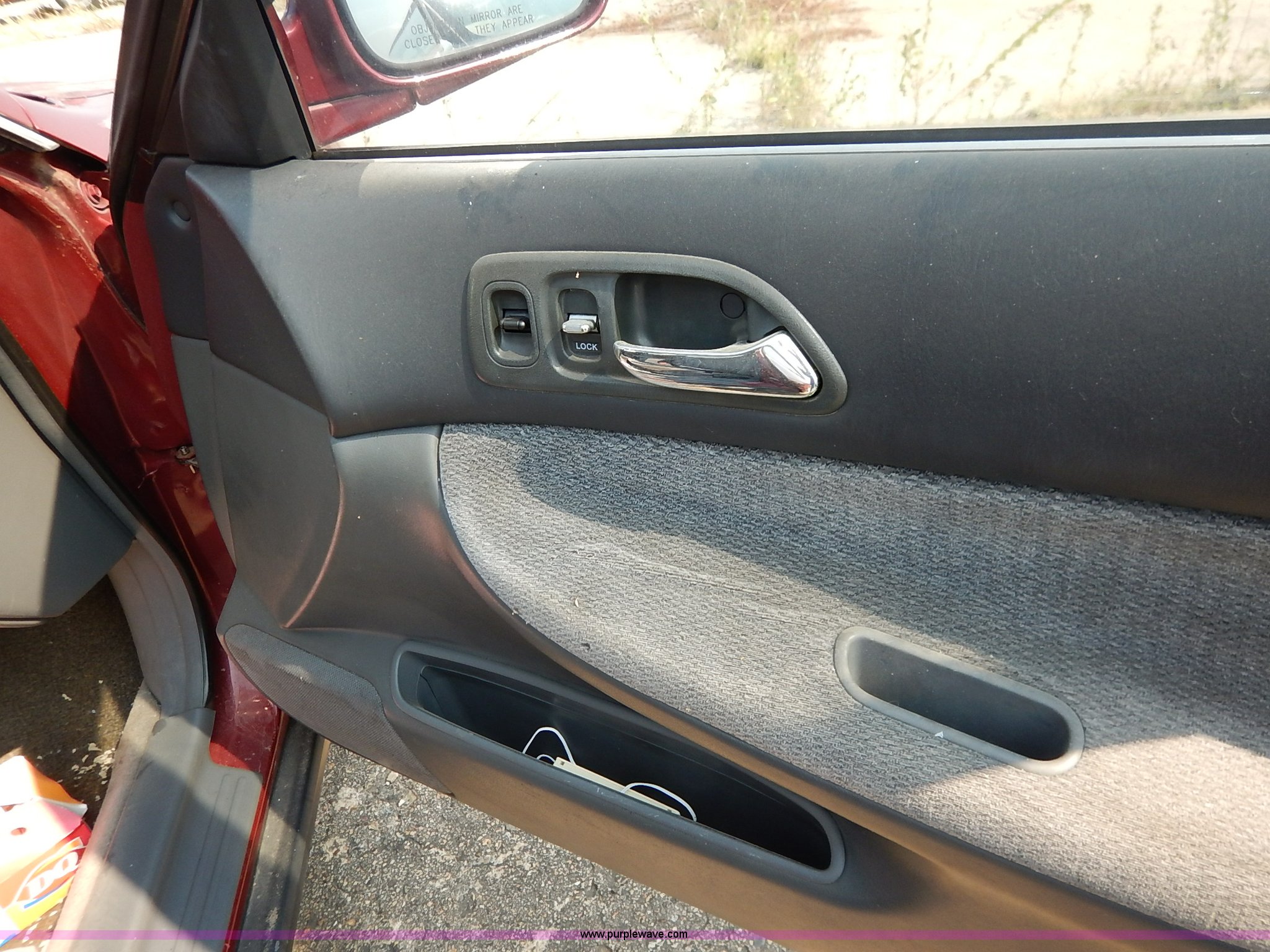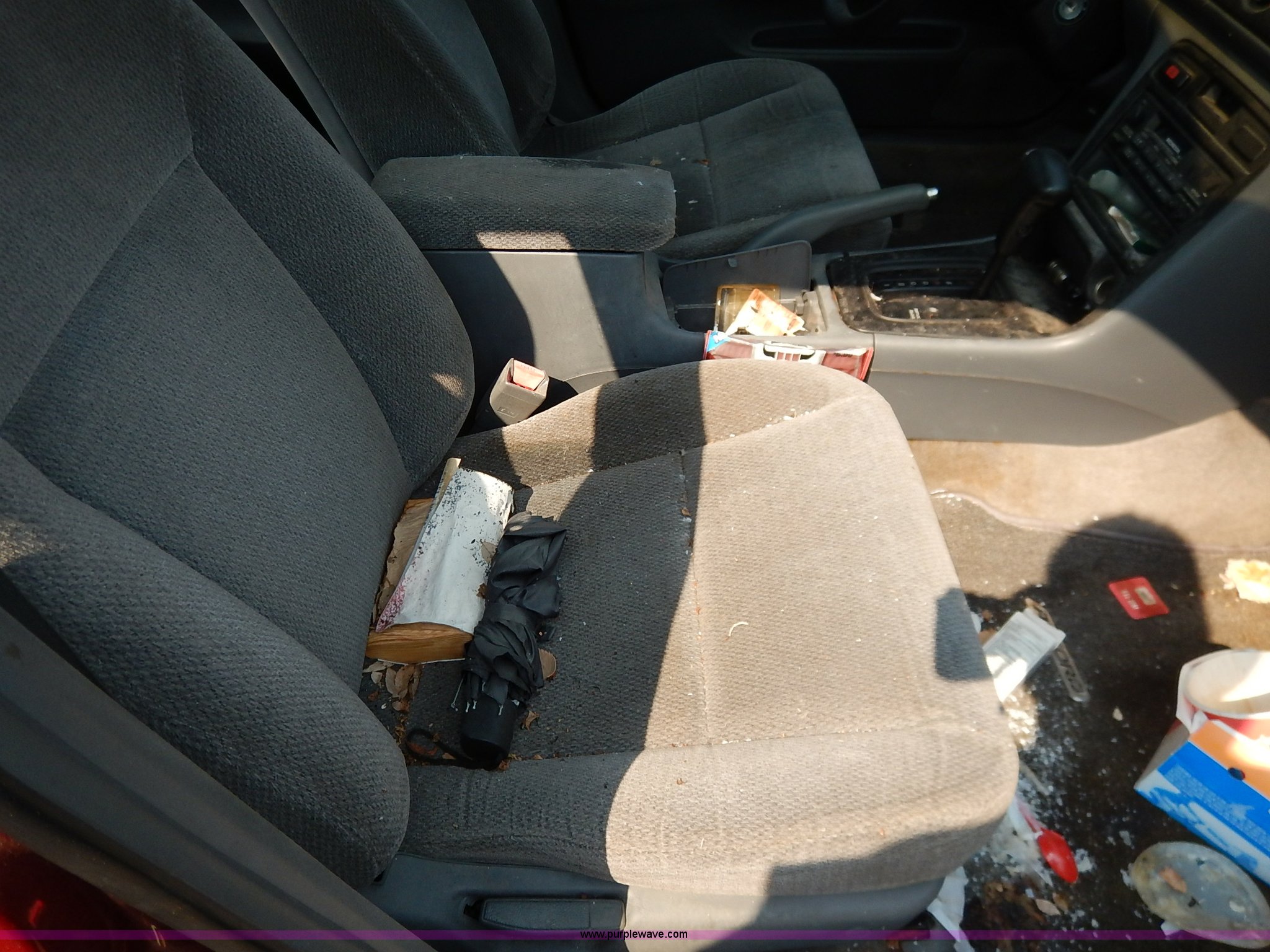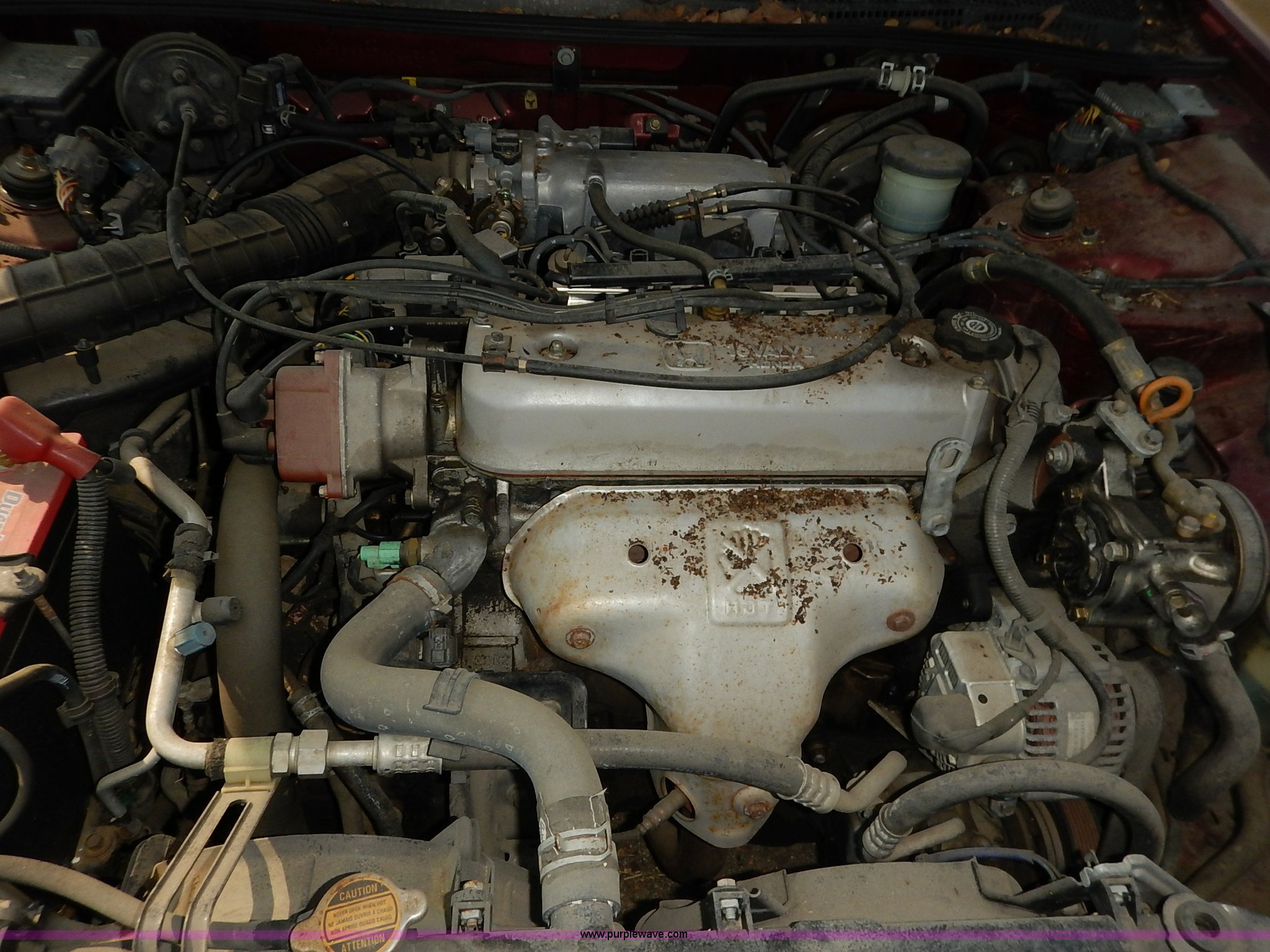 Purple Wave is selling a used Passenger Vehicle in Kansas. This item is a 1996 Honda Accord with the following: 184,538 miles on odometer, 2.2L L4 SOHC 16V gas engine, Automatic transmission, AC and heat, Tilt, Cruise, AM/FM/cassette, Power windows, locks, and mirrors, Cloth interior, 195/60R15 tires, No keys, Interior/exterior cosmetic damage, Dents and scratches, Unknown operating condition, Flat tires, Unit# AV2013058
