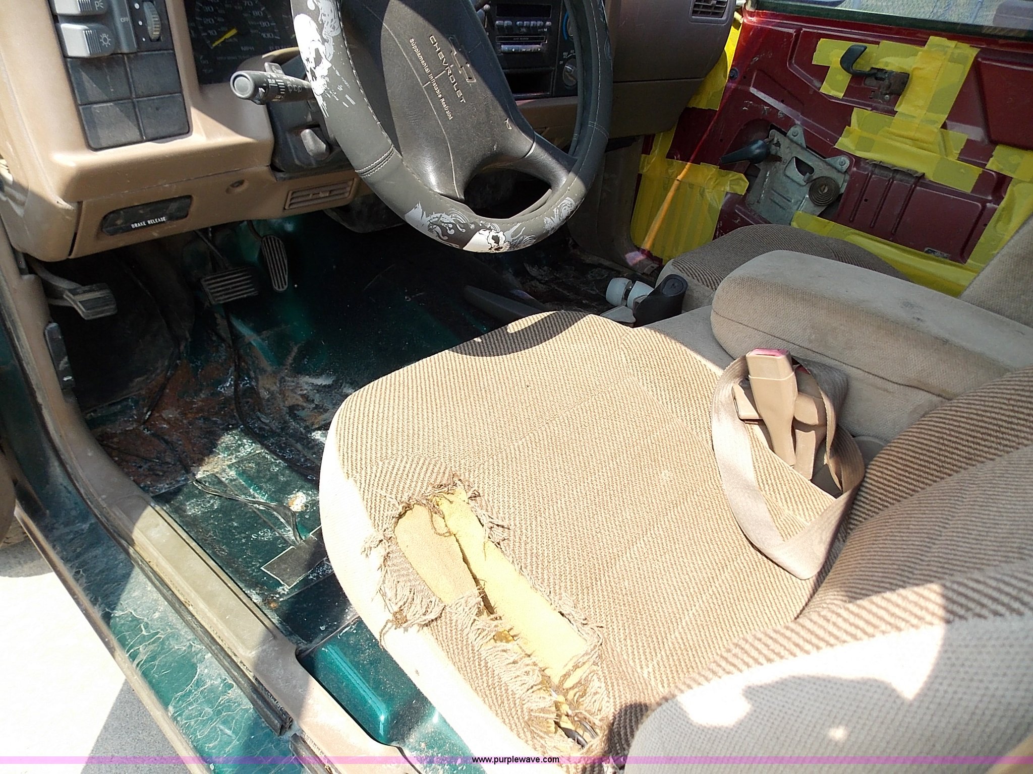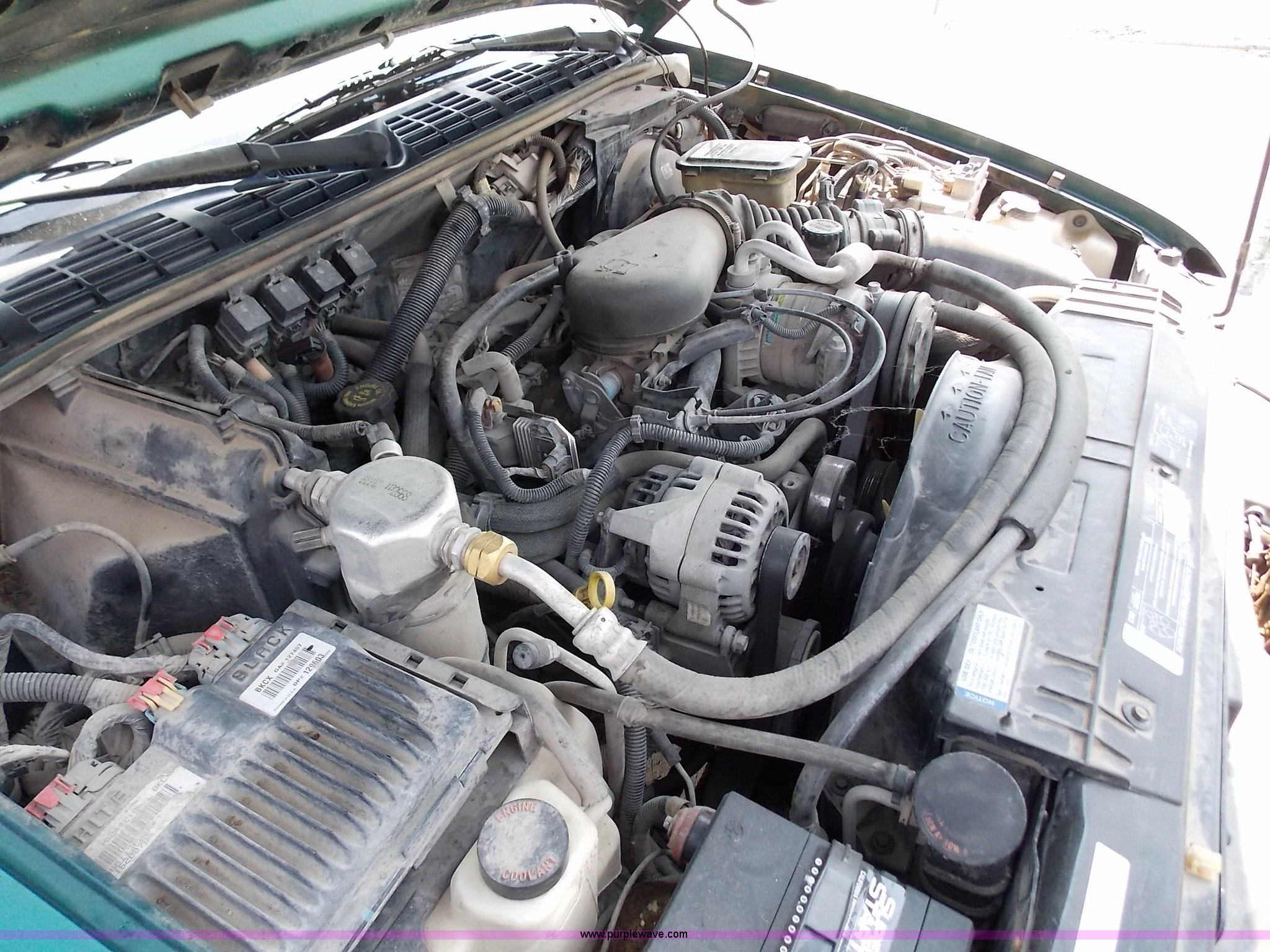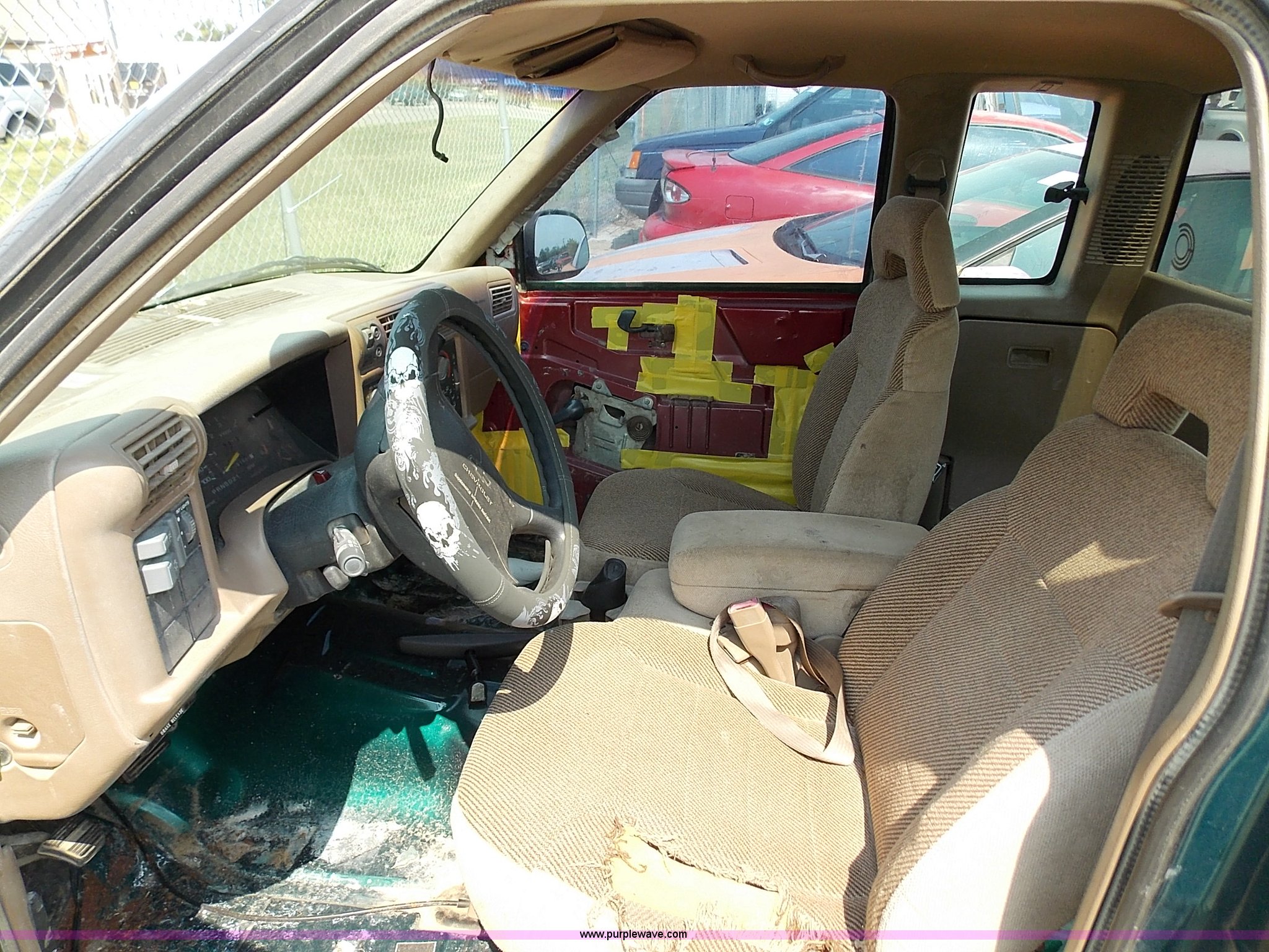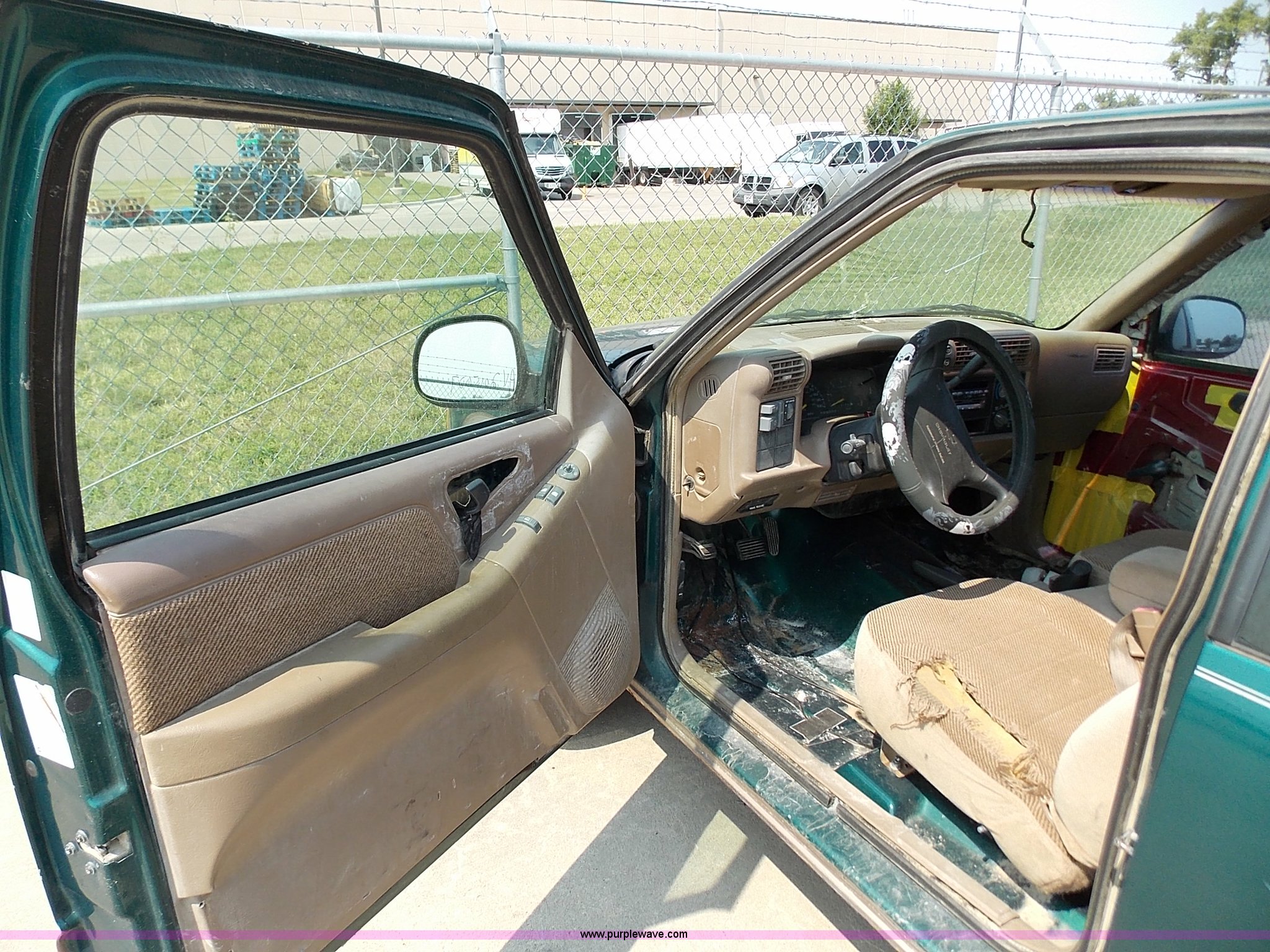 Purple Wave is selling a used Compact Pickup or Van in Kansas. This item is a 1996 Chevrolet S10 Ext. Cab pickup truck with the following: 171,690 miles on odometer, 4.3L V6 OHV 12V gas engine, Automatic transmission, AC and heat, Tilt, Cruise, AM/FM/cassette, Power windows, locks, and mirrors, Cloth interior, Receiver hitch, 31X10.5R15 tires, Interior/exterior cosmetic damage, Dents and scratches, Unknown operating condition, No keys, Broken windshield, Passenger door welded shut, Rear bumper missing, Front bumper in bed, Flat tires, Unit# AV2015027