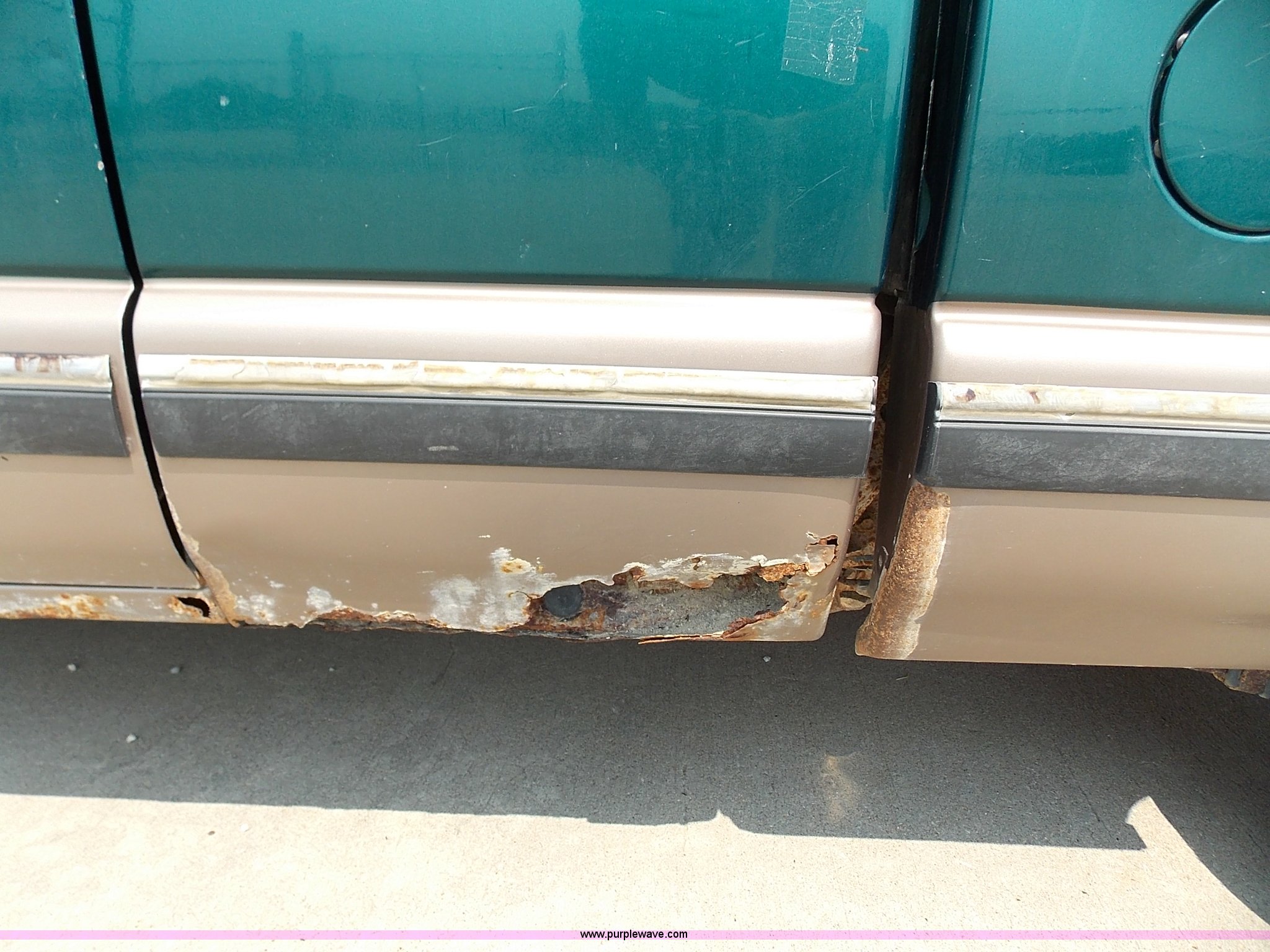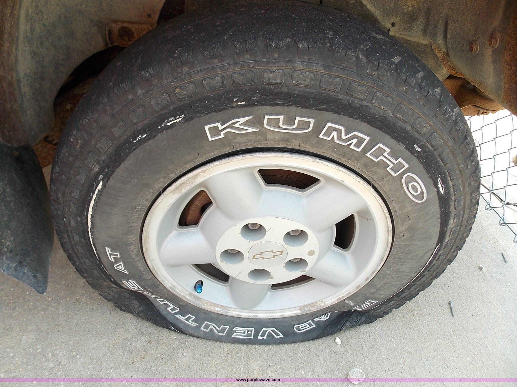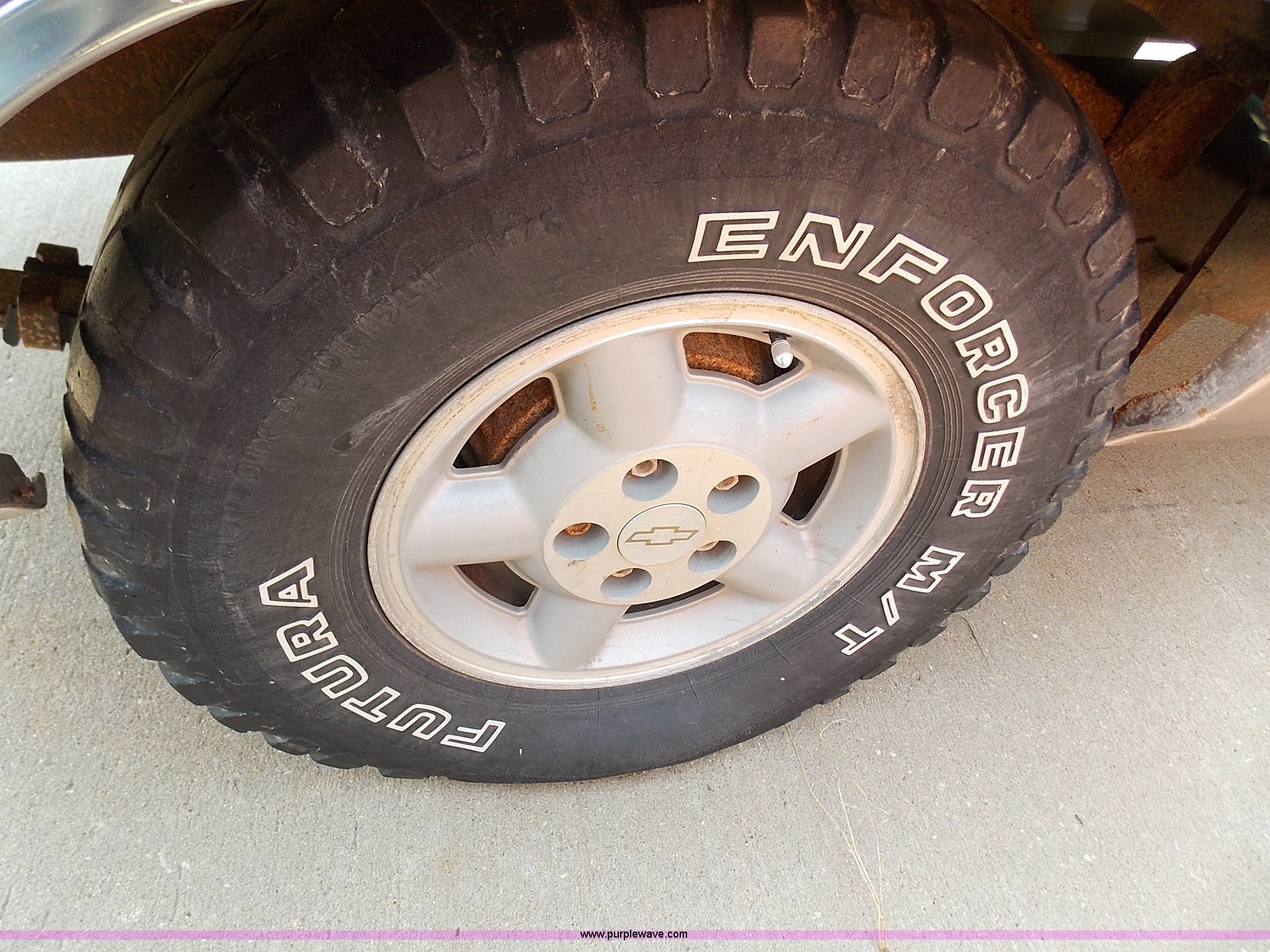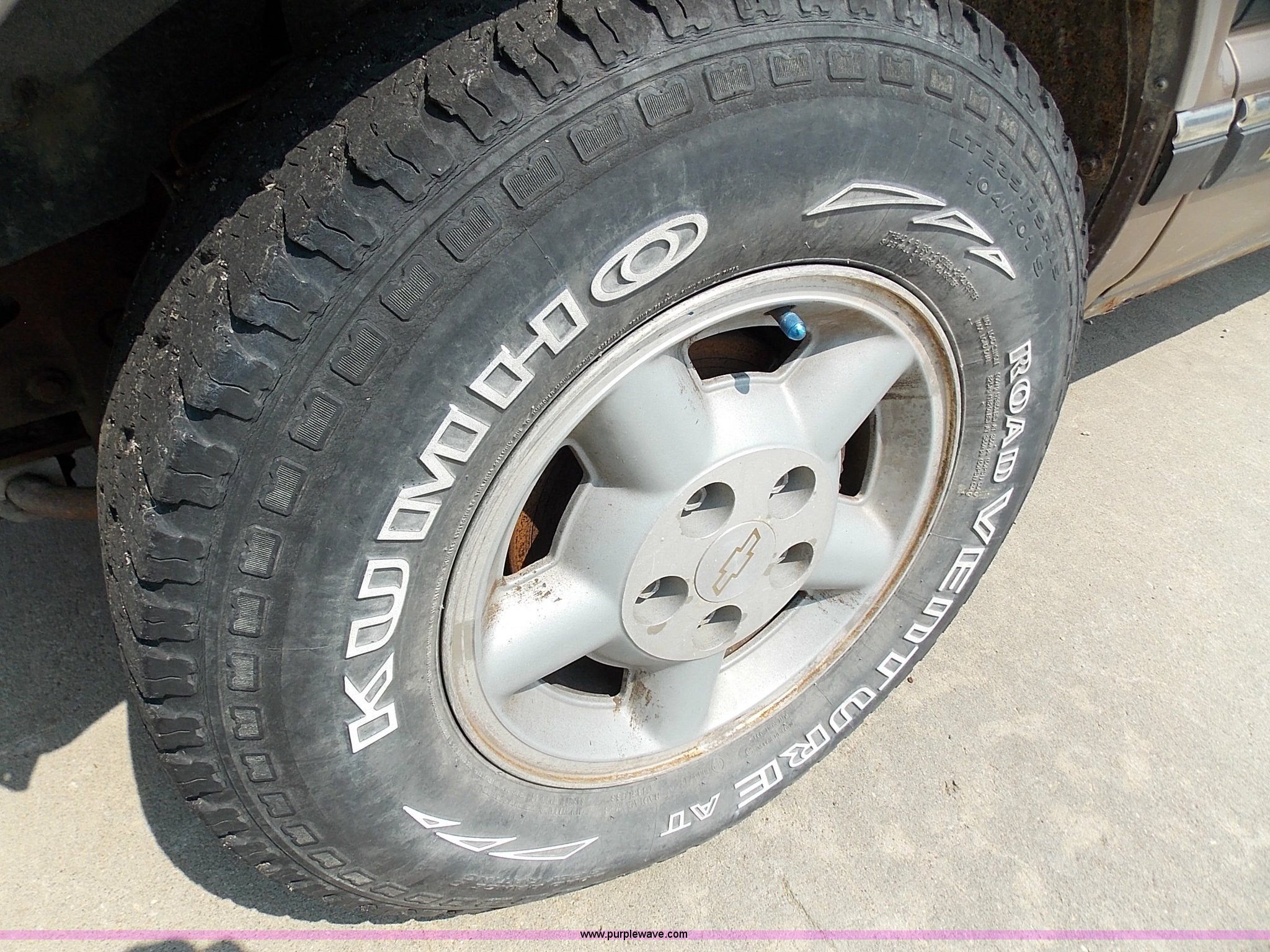 Purple Wave is selling a used Compact Pickup or Van in Kansas. This item is a 1996 Chevrolet S10 Ext. Cab pickup truck with the following: 171,690 miles on odometer, 4.3L V6 OHV 12V gas engine, Automatic transmission, AC and heat, Tilt, Cruise, AM/FM/cassette, Power windows, locks, and mirrors, Cloth interior, Receiver hitch, 31X10.5R15 tires, Interior/exterior cosmetic damage, Dents and scratches, Unknown operating condition, No keys, Broken windshield, Passenger door welded shut, Rear bumper missing, Front bumper in bed, Flat tires, Unit# AV2015027