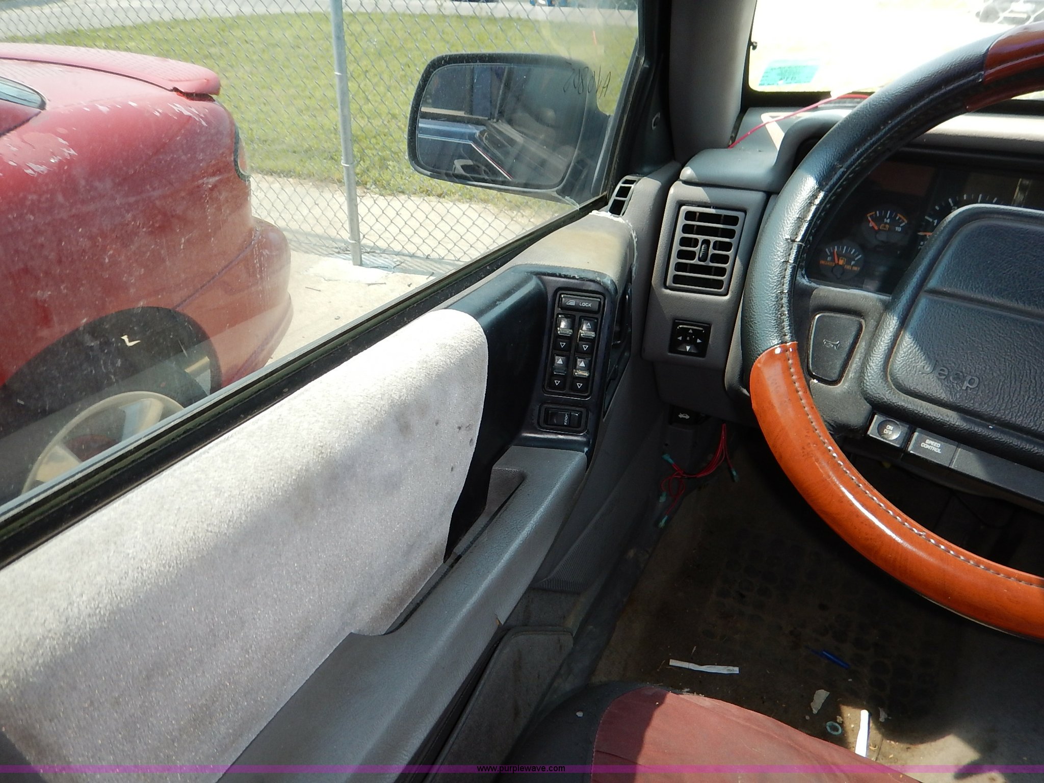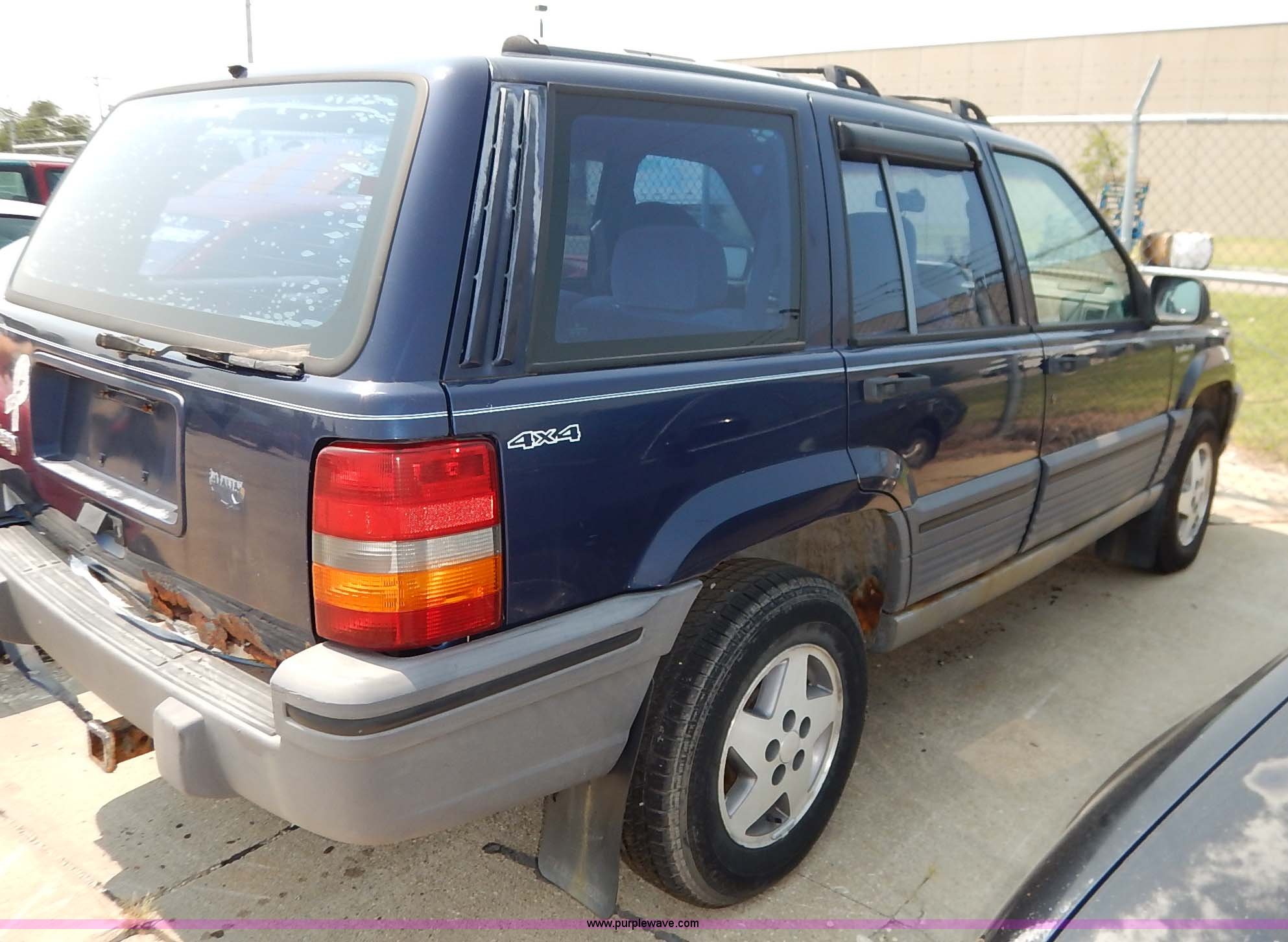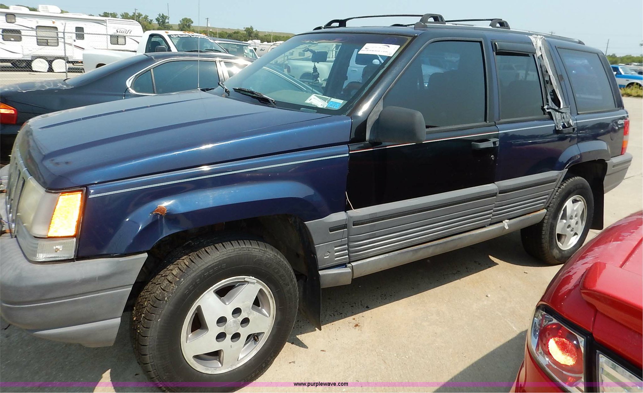 Purple Wave is selling a used Passenger Vehicle in Kansas. This item is a 1994 Jeep Grand Cherokee with the following: 154,962 miles on odometer, 4.0L L6 OHV 12V gas engine, Automatic transmission, AC and heat, Tilt, Cruise, Power windows, locks, and mirrors, Cloth interior, 215/75R15 tires, Interior/exterior cosmetic damage, No keys, Dents and scratches, Stereo missing, Side window broken, Missing part of rear seat, Rust, Unit# AV0805