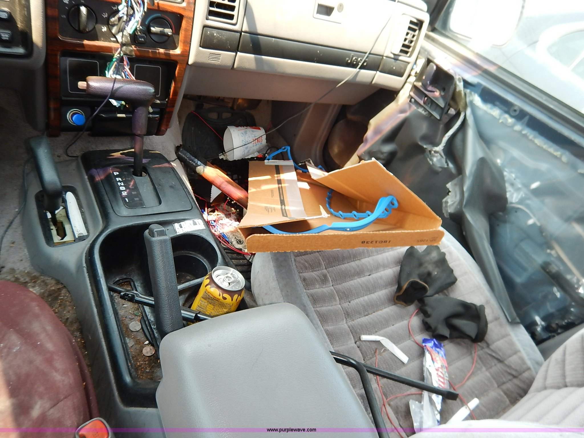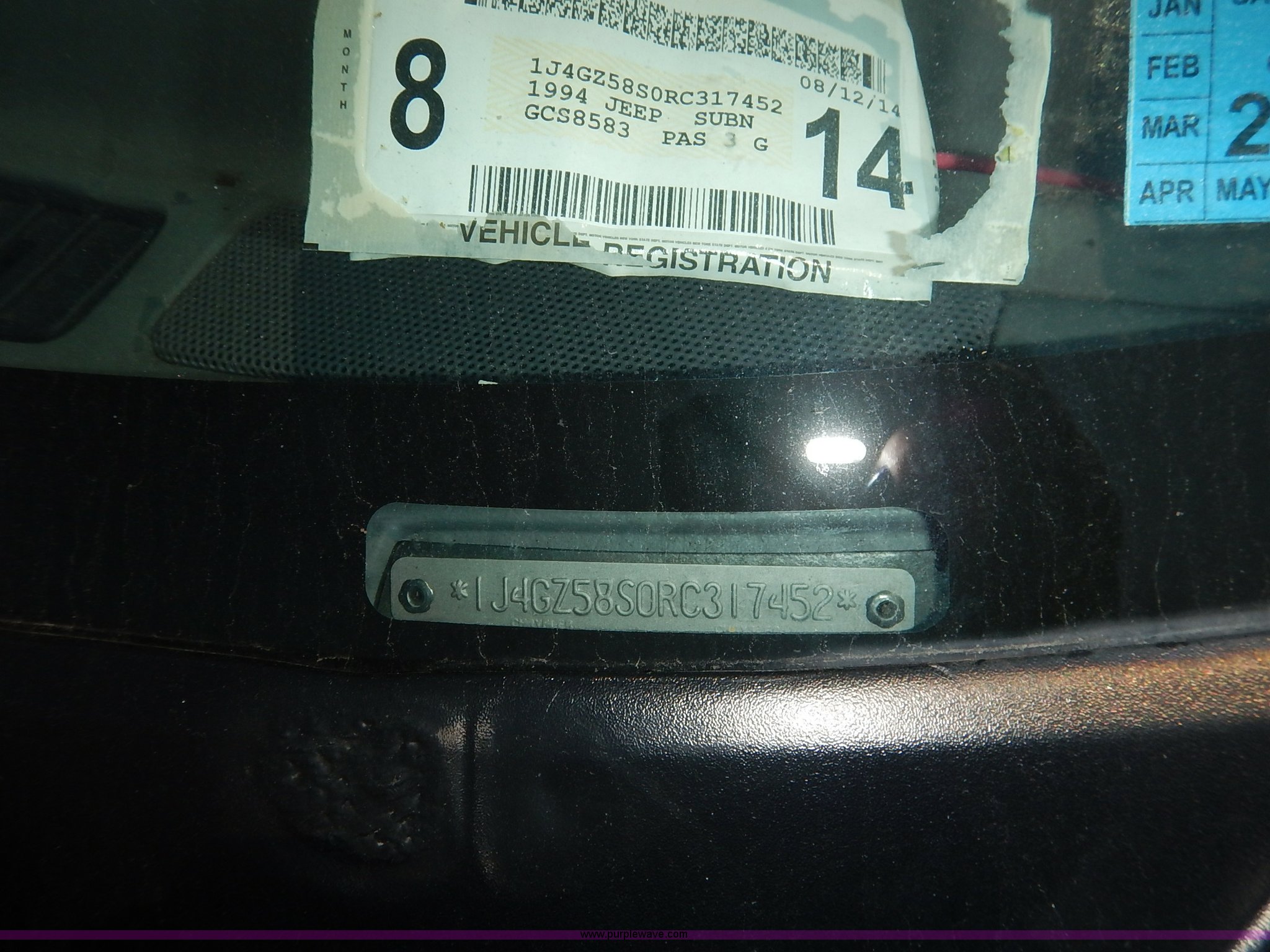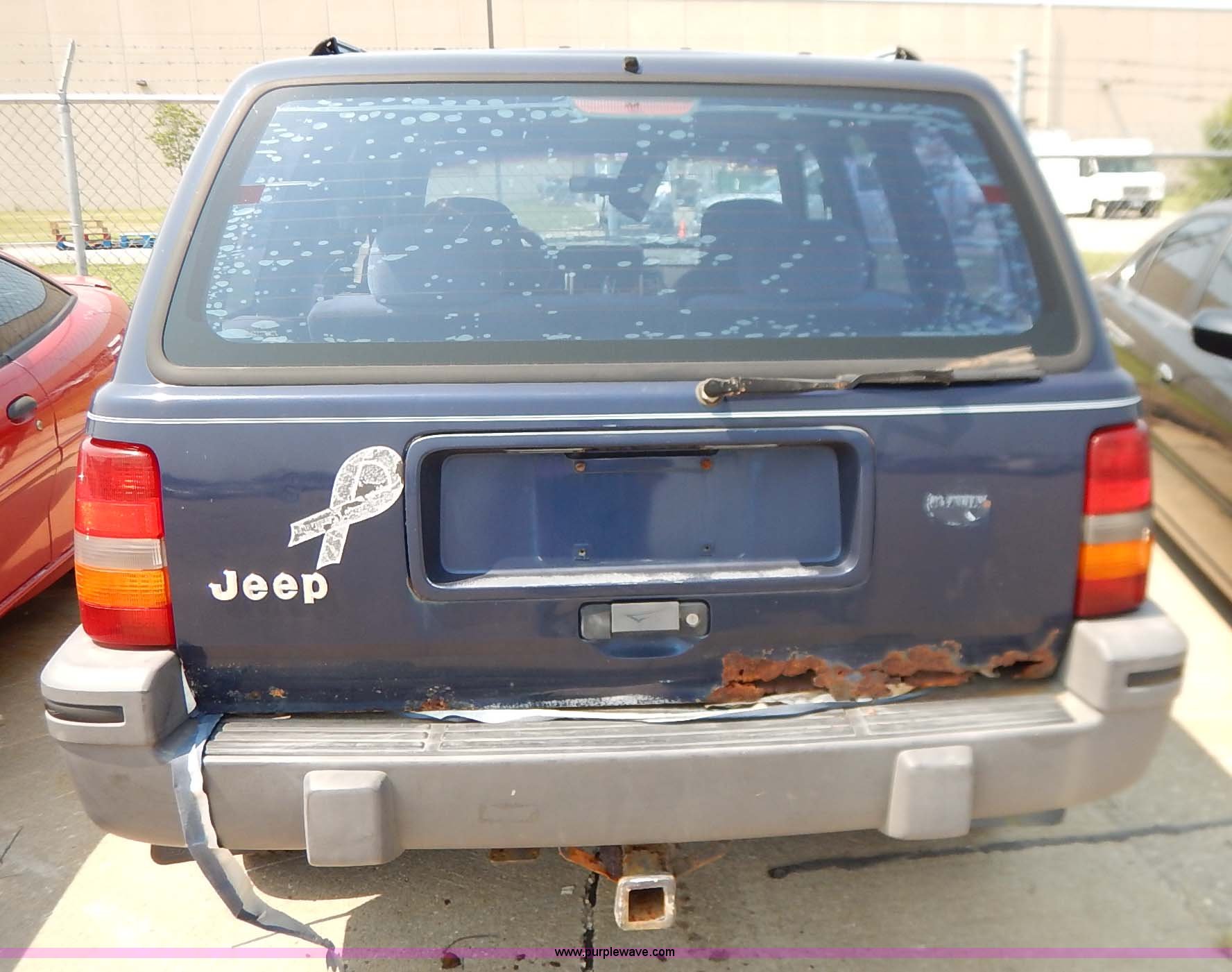 Purple Wave is selling a used Passenger Vehicle in Kansas. This item is a 1994 Jeep Grand Cherokee with the following: 154,962 miles on odometer, 4.0L L6 OHV 12V gas engine, Automatic transmission, AC and heat, Tilt, Cruise, Power windows, locks, and mirrors, Cloth interior, 215/75R15 tires, Interior/exterior cosmetic damage, No keys, Dents and scratches, Stereo missing, Side window broken, Missing part of rear seat, Rust, Unit# AV0805