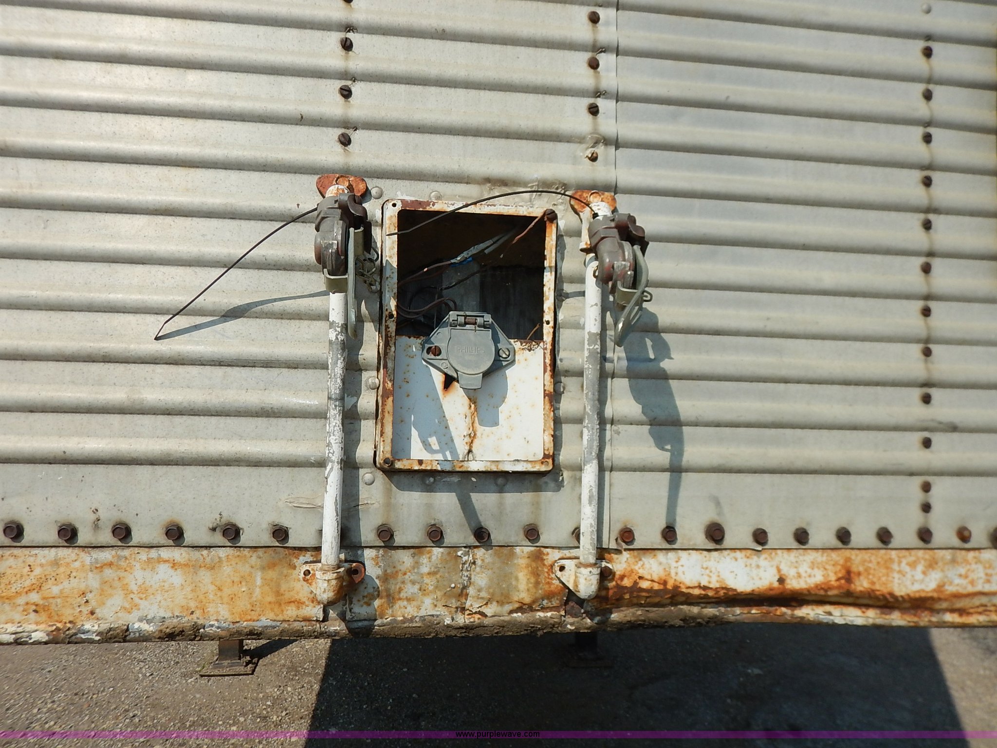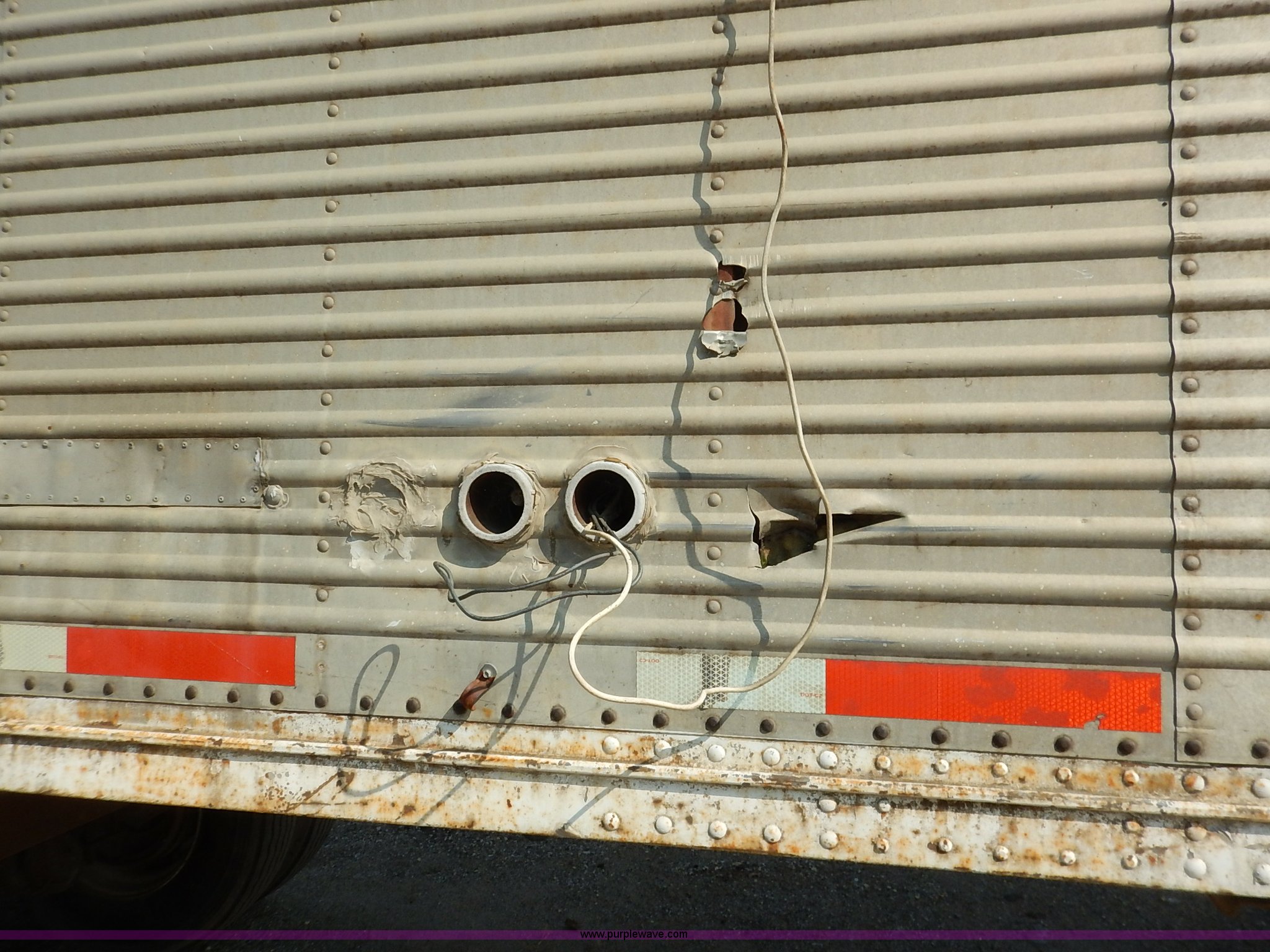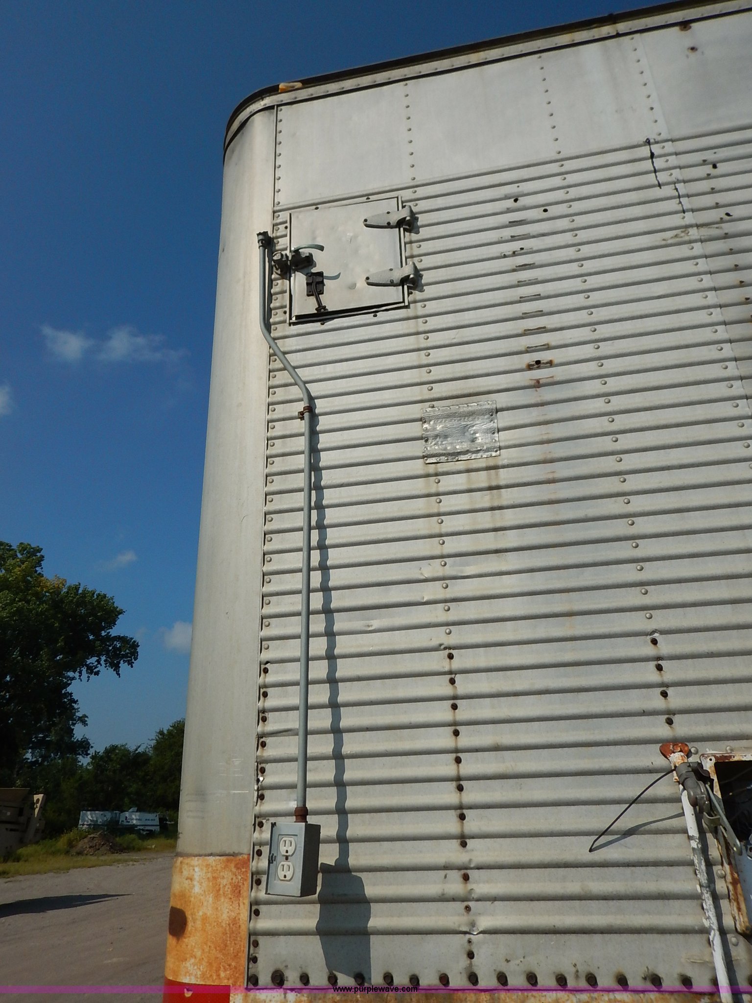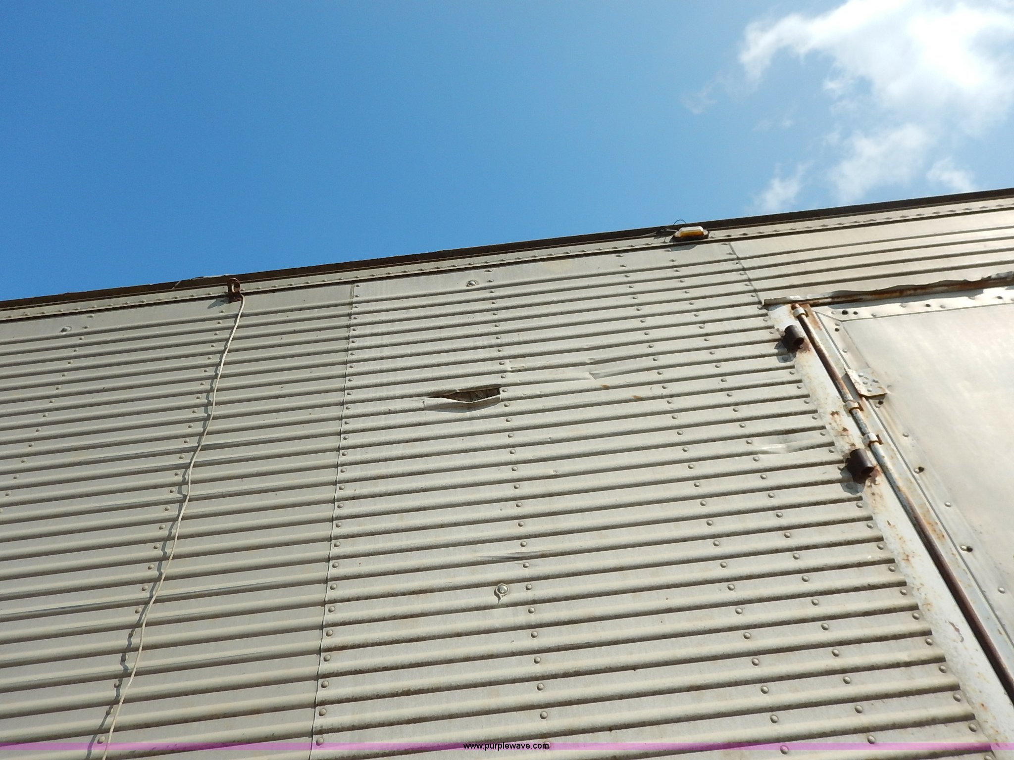 Purple Wave is selling a used Dry Van Trailer in Kansas. This item is a 1962 dry van trailer with the following: Landing gear, Dual rear swing doors, Single side entry door, Wood floor, sides, and roof, Interior lights, Spring suspension, Air brakes, Sliding tandem axles, 11R24.5 tires, Spare tire rack and tire, Contents not included, Exterior cosmetic damage, Unit# 806
