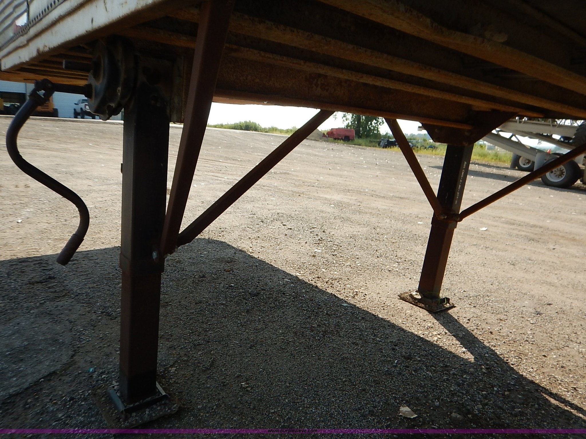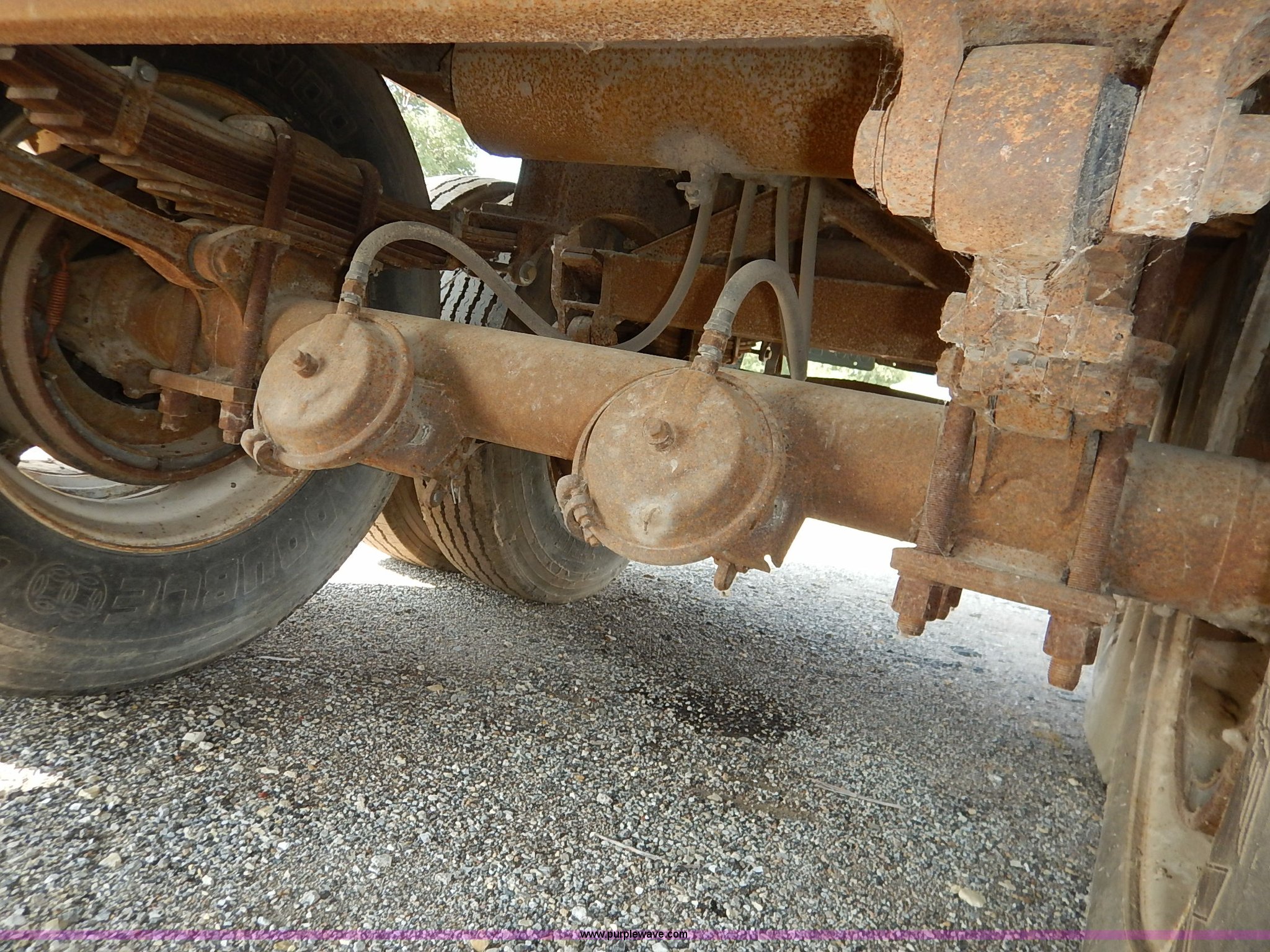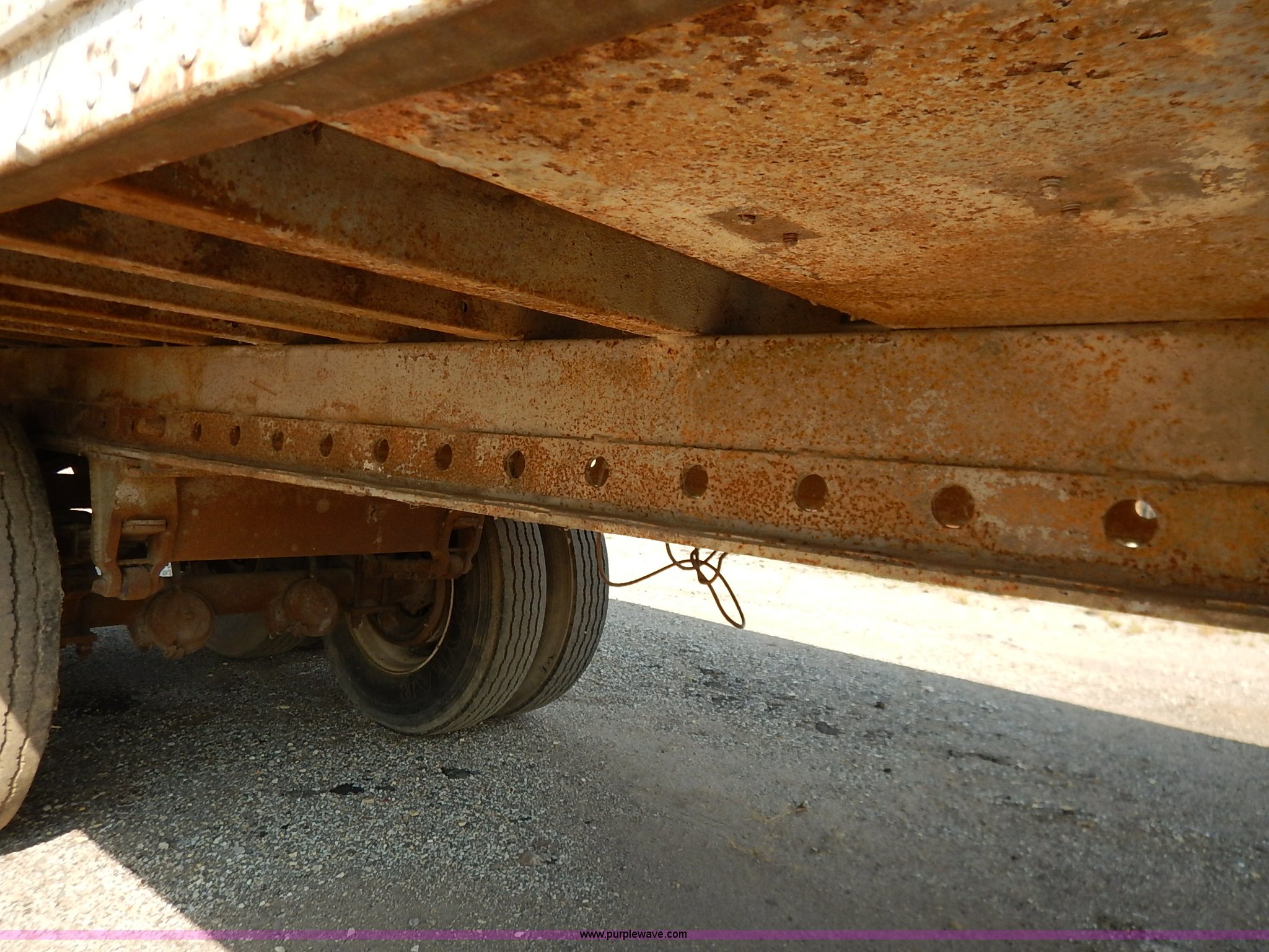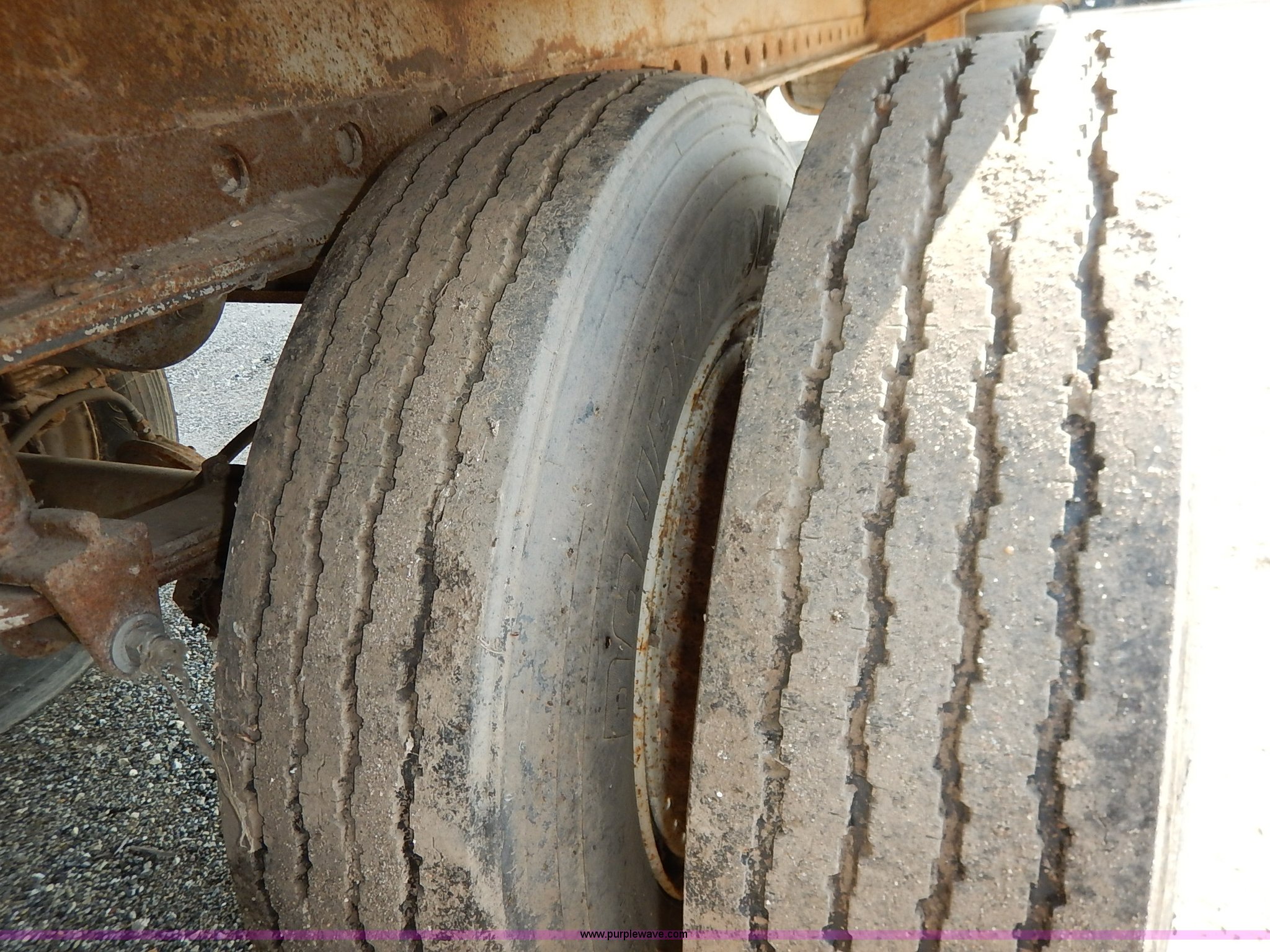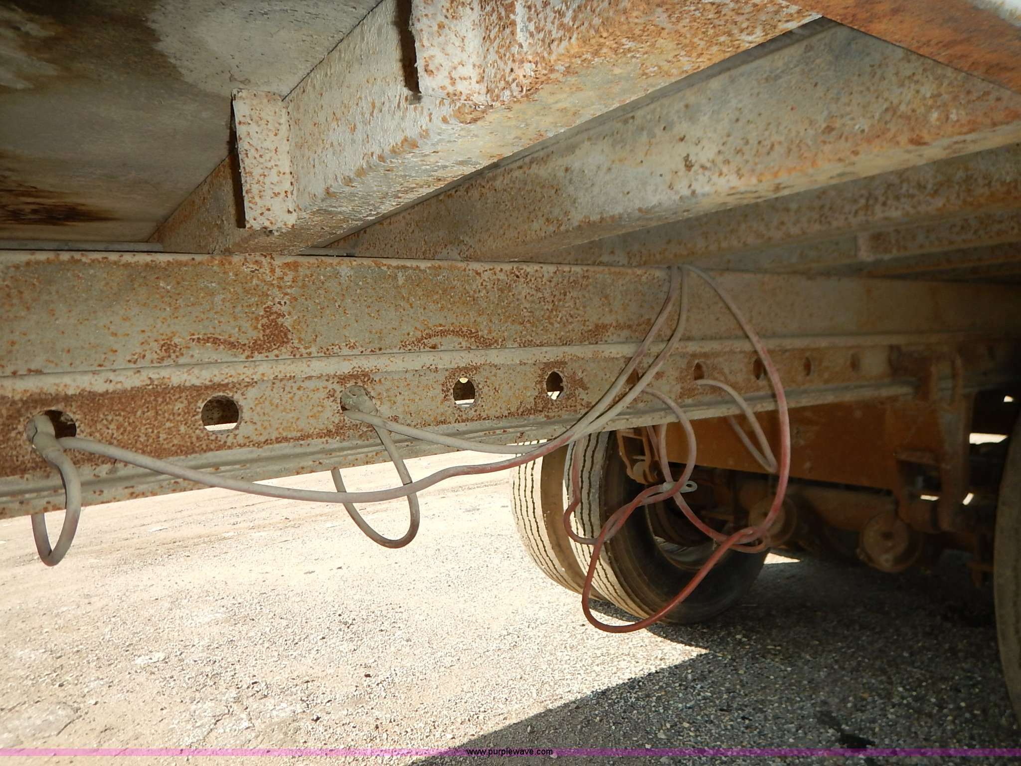 Purple Wave is selling a used Dry Van Trailer in Kansas. This item is a 1962 dry van trailer with the following: Landing gear, Dual rear swing doors, Single side entry door, Wood floor, sides, and roof, Interior lights, Spring suspension, Air brakes, Sliding tandem axles, 11R24.5 tires, Spare tire rack and tire, Contents not included, Exterior cosmetic damage, Unit# 806