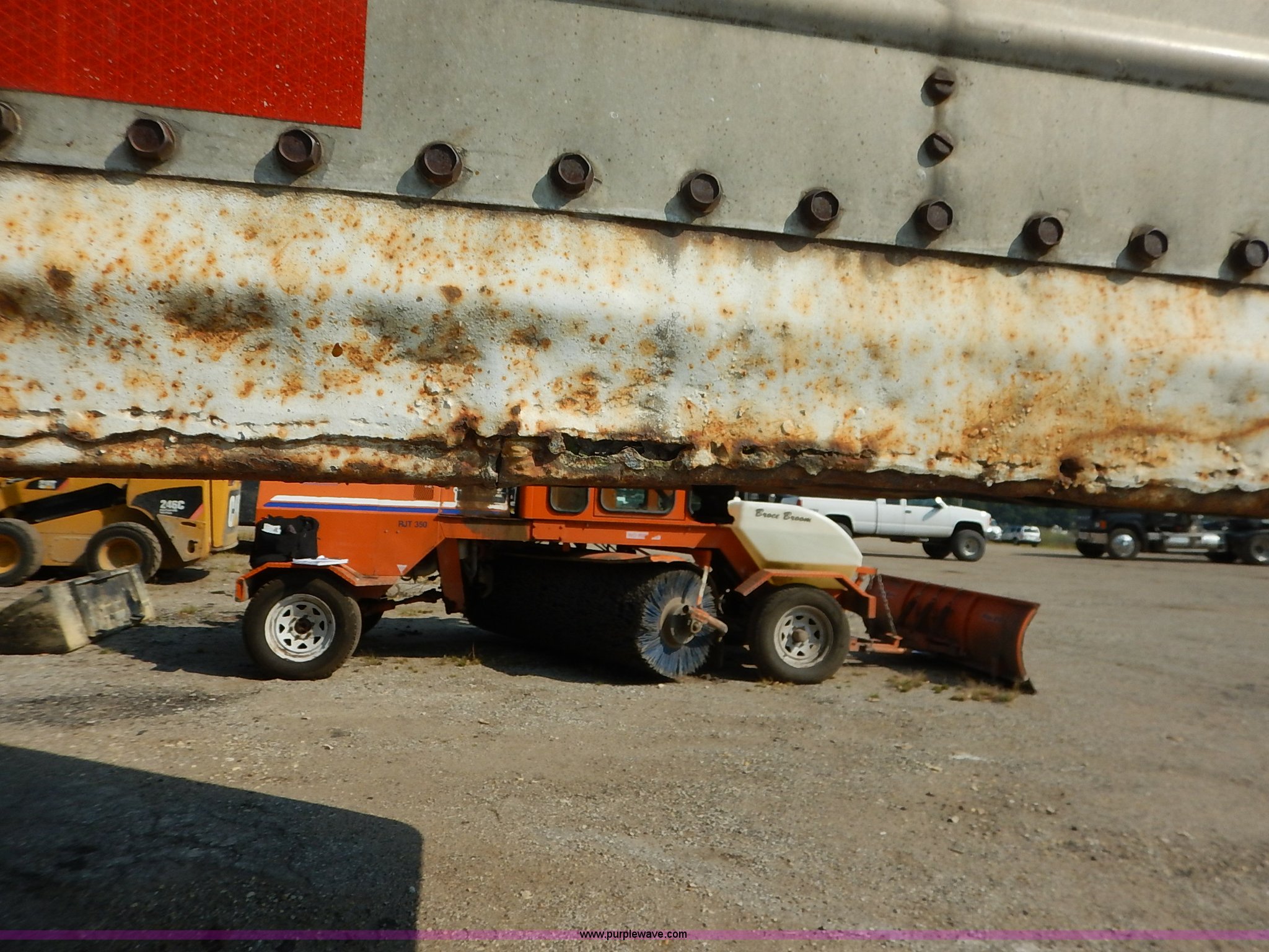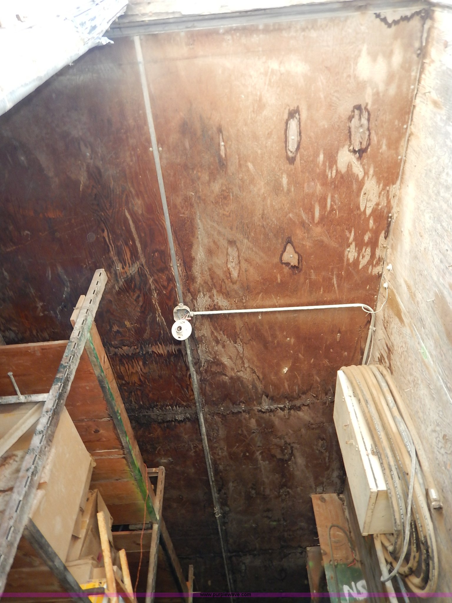 1962 dry van trailer. Landing gear, Dual rear swing doors, Single side entry door, Wood floor, sides, and roof, Interior lights, Spring suspension, Air brakes, Sliding tandem axles, 11R24.5 tires, Spare tire rack and tire, Contents not included, Exterior cosmetic damage, Unit# 806. 611126. Shilling Construction Inc.. 9620 Hwy 24. Manhattan, KS 66502