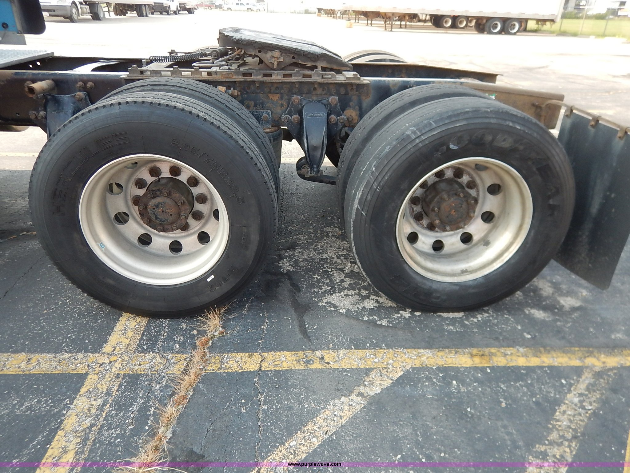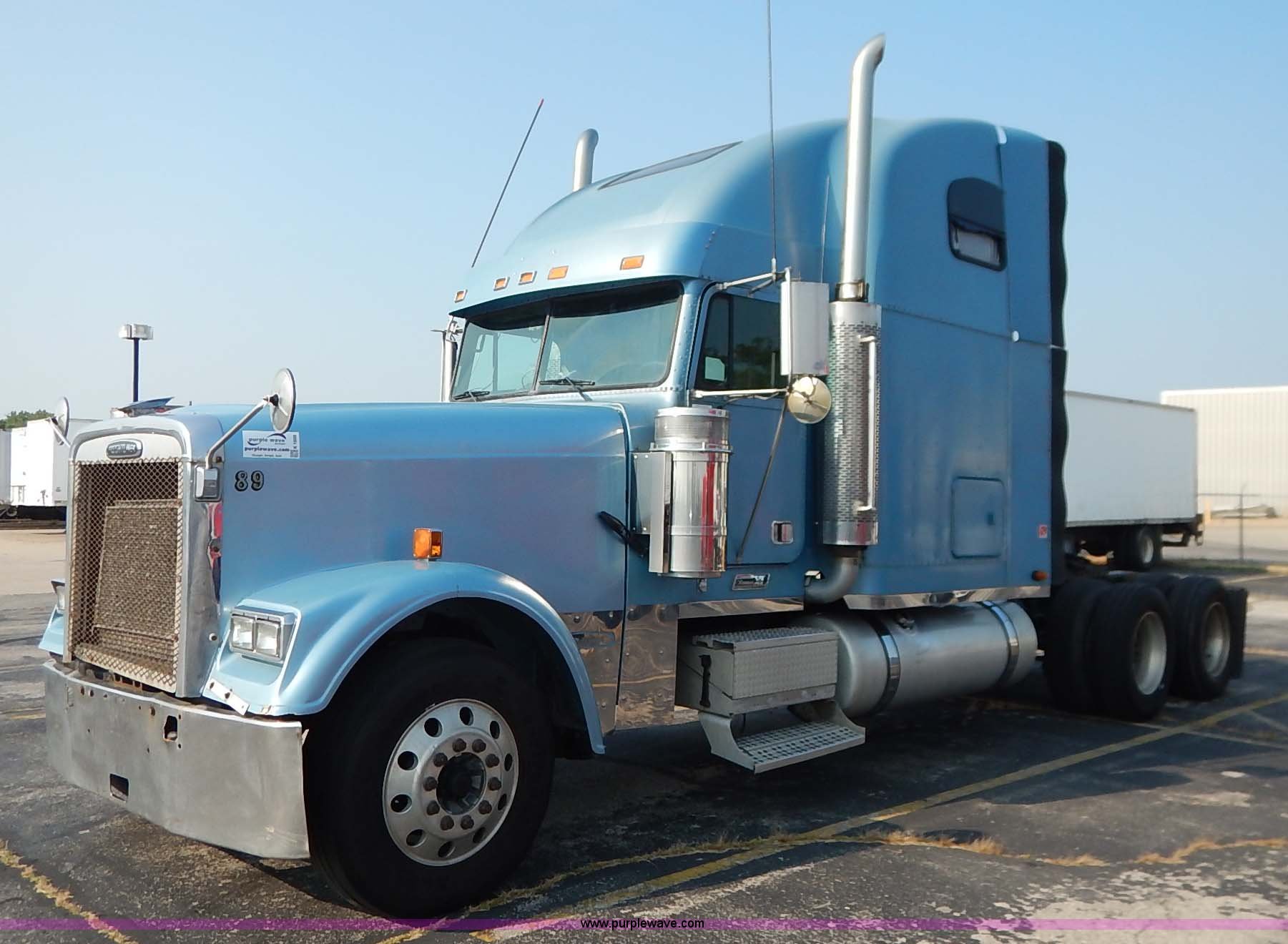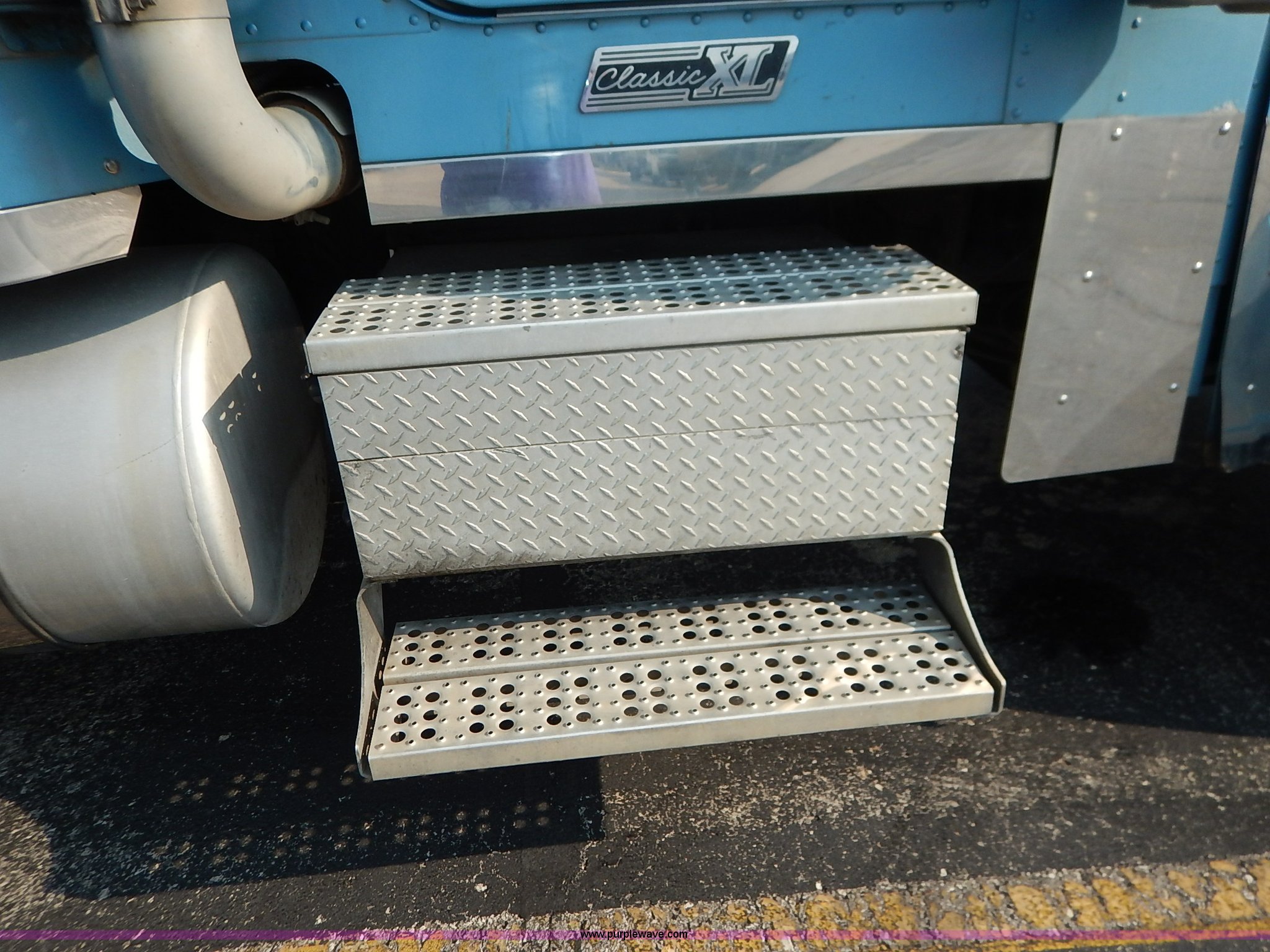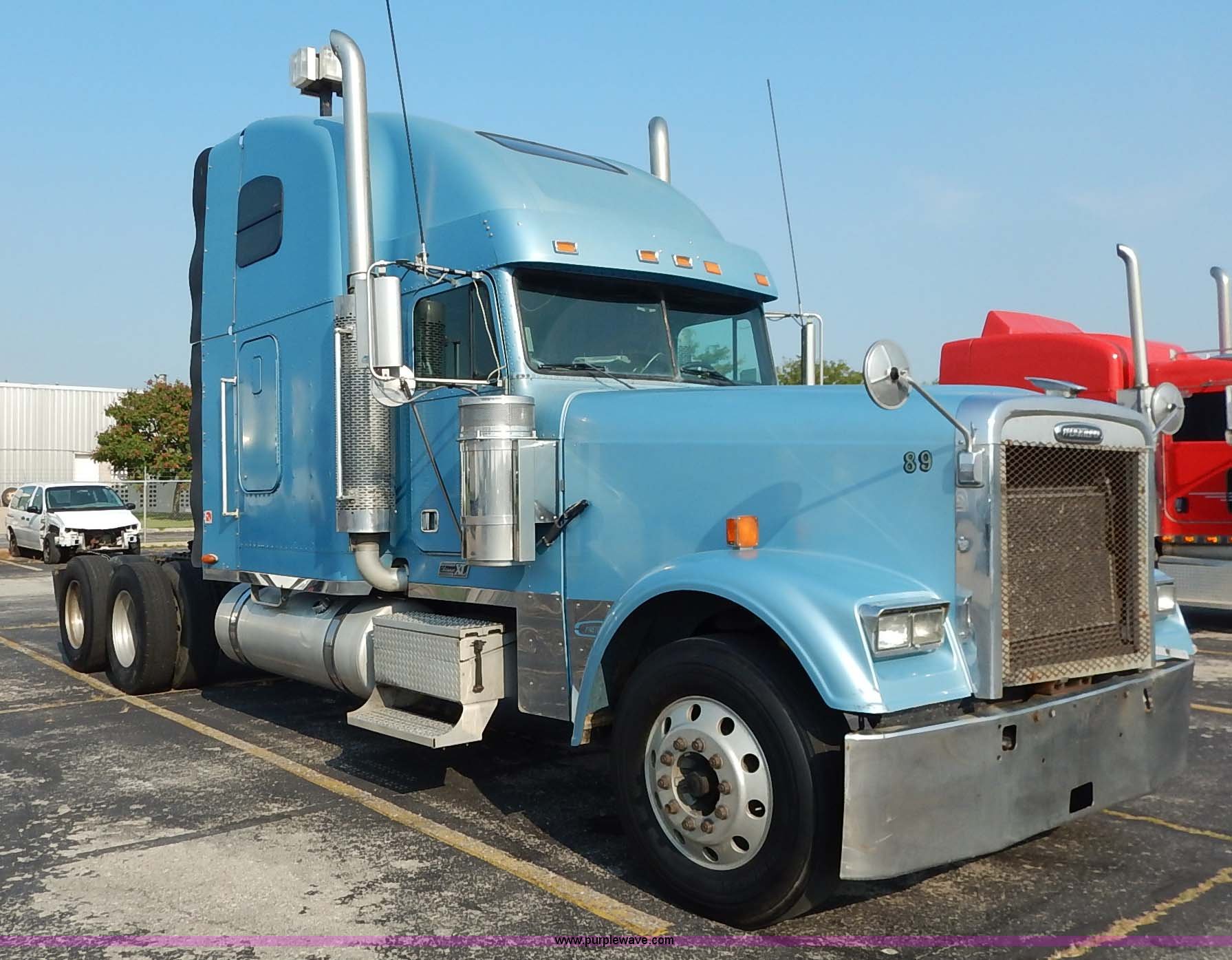 Purple Wave is selling a used Truck Tractor in Kansas. This item is a 2005 Freightliner FLD132 XL Classic semi truck with the following: 770,213 miles on odometer, Caterpillar C15 14.6L L6 turbo diesel engine, Serial BXS12939, Eaton Fuller 13 speed manual transmission, Tandem axle, Inter-axle differential lock, AC and heat, Tilt, Telescoping steering wheel, Cruise, AM/FM/CD, Passenger daylight door, Air suspension seat, Power and heated mirrors, Cloth interior, Air ride cab, Fog lights, 7' x 5' sleeper, Double bunk, Storage, Front tow hooks, Exterior visor, Chrome bumper, Block heater, Aluminum air operated sliding fifth wheel plate, Dual 120 gallon fuel tanks, Dual front exhaust stacks, Air suspension, Air brakes, Engine brake, (2) cylinders, (4) cylinders, Aluminum wheels, 22' wheelbase, 275/80R22.5 tires, Worn, Seat damage, Unit# 89