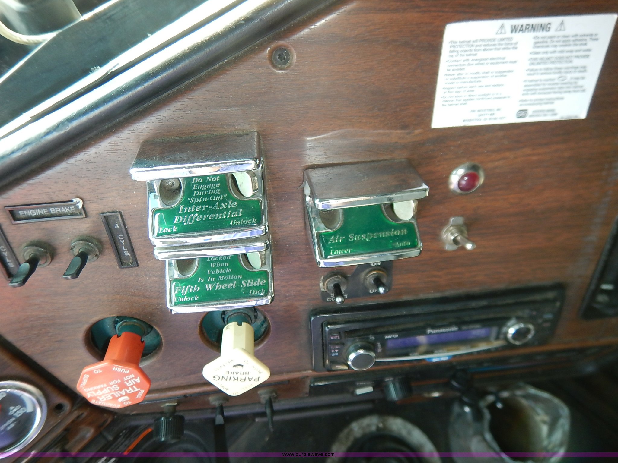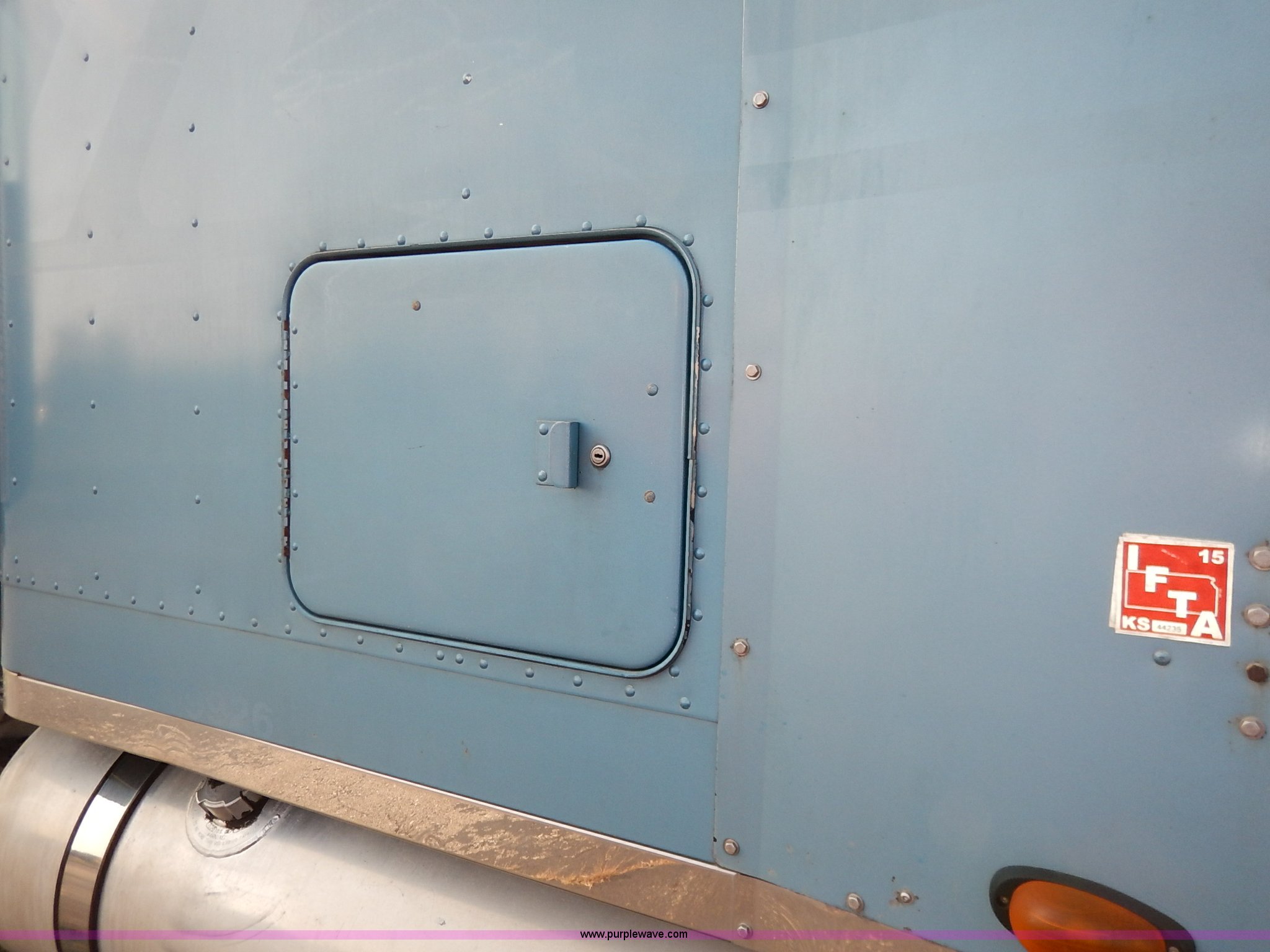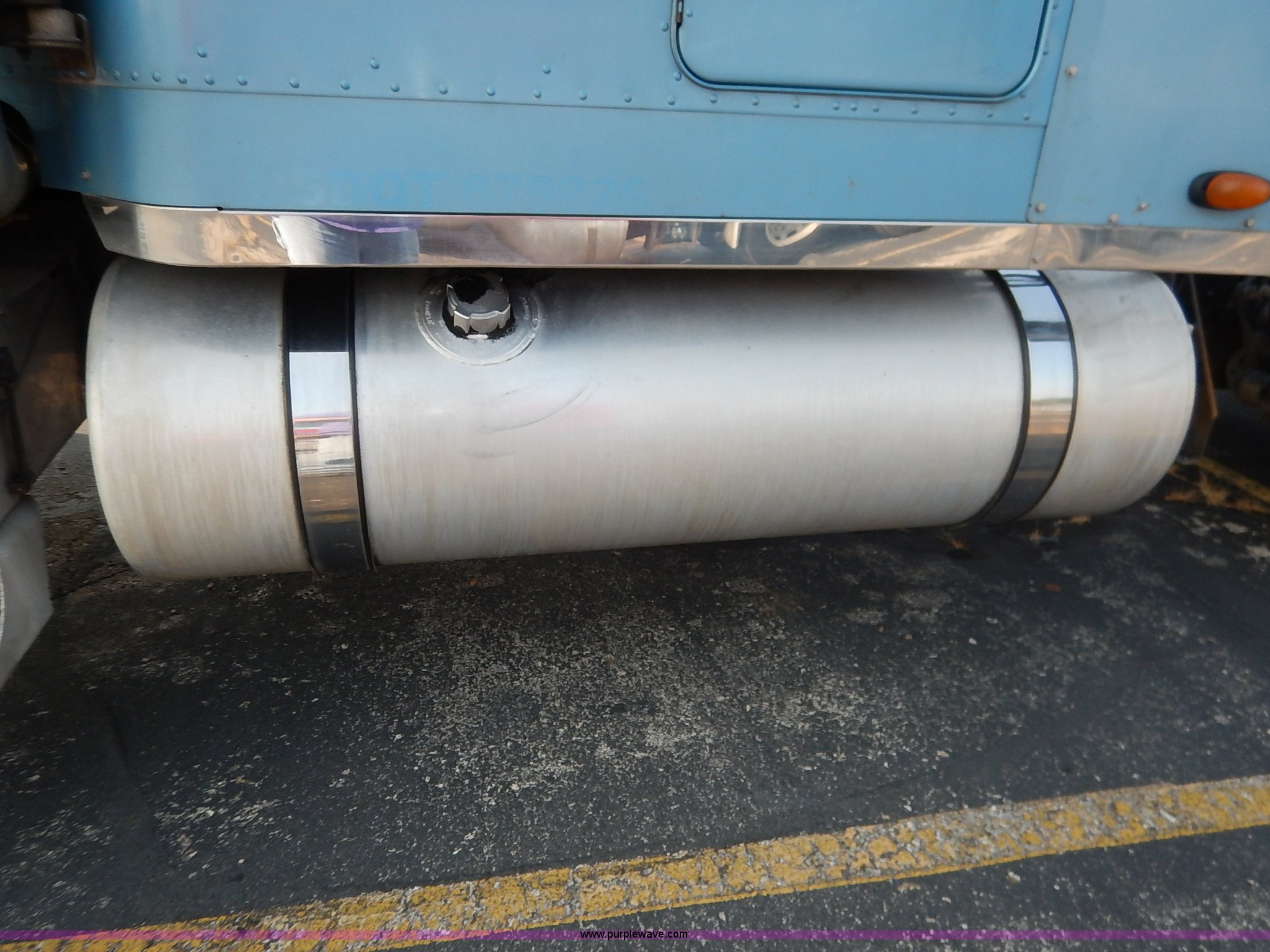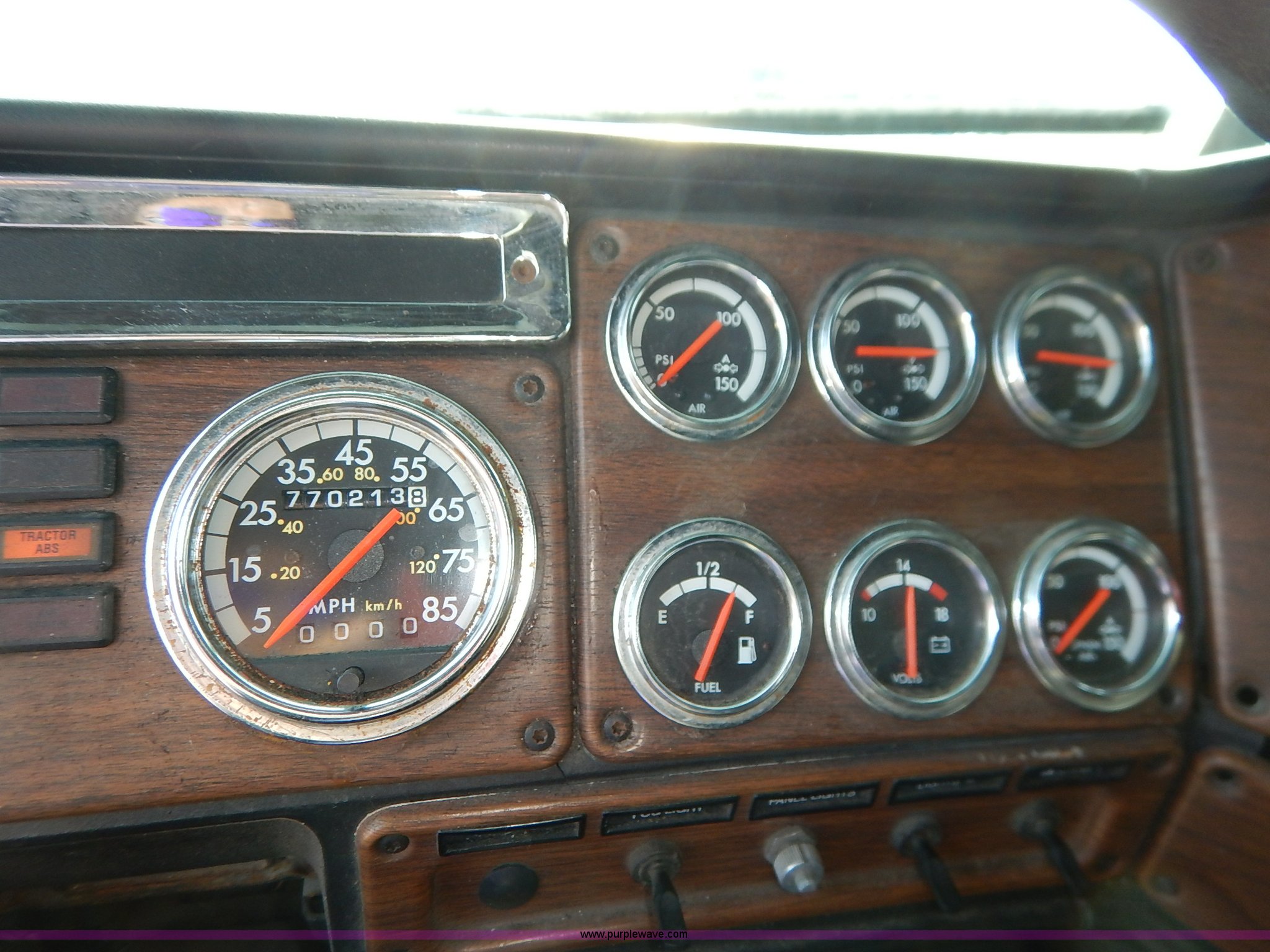 Purple Wave is selling a used Truck Tractor in Kansas. This item is a 2005 Freightliner FLD132 XL Classic semi truck with the following: 770,213 miles on odometer, Caterpillar C15 14.6L L6 turbo diesel engine, Serial BXS12939, Eaton Fuller 13 speed manual transmission, Tandem axle, Inter-axle differential lock, AC and heat, Tilt, Telescoping steering wheel, Cruise, AM/FM/CD, Passenger daylight door, Air suspension seat, Power and heated mirrors, Cloth interior, Air ride cab, Fog lights, 7' x 5' sleeper, Double bunk, Storage, Front tow hooks, Exterior visor, Chrome bumper, Block heater, Aluminum air operated sliding fifth wheel plate, Dual 120 gallon fuel tanks, Dual front exhaust stacks, Air suspension, Air brakes, Engine brake, (2) cylinders, (4) cylinders, Aluminum wheels, 22' wheelbase, 275/80R22.5 tires, Worn, Seat damage, Unit# 89