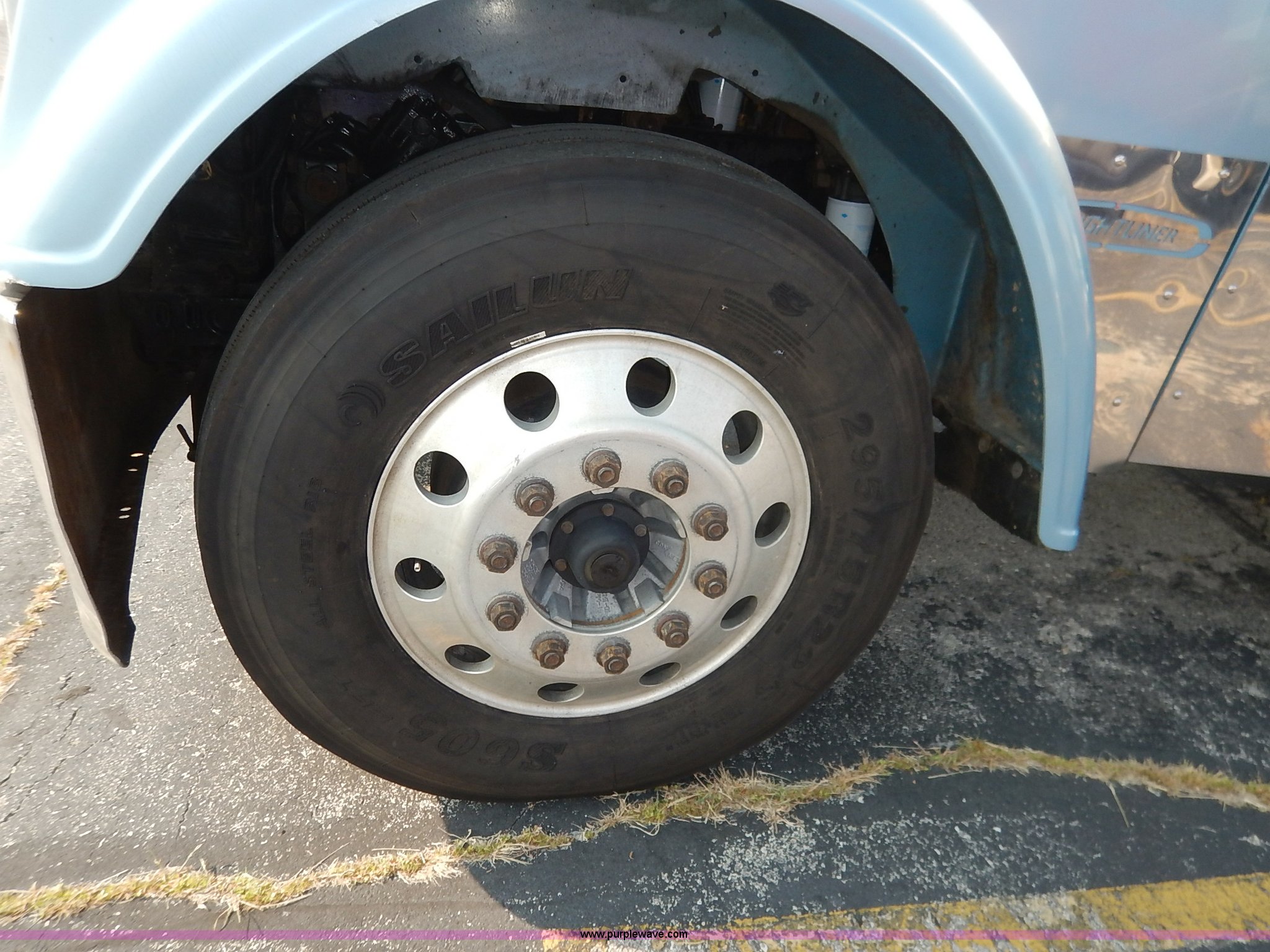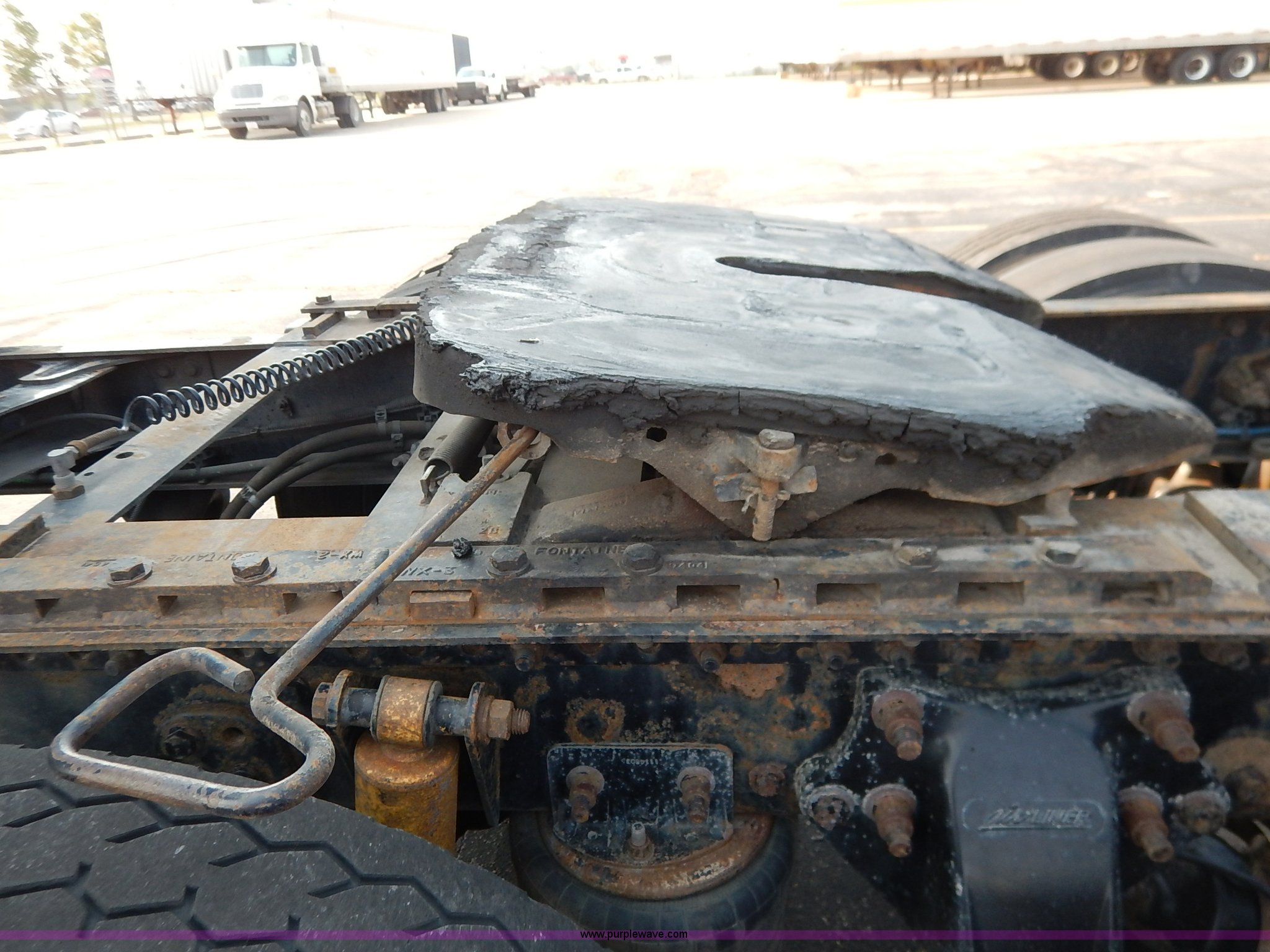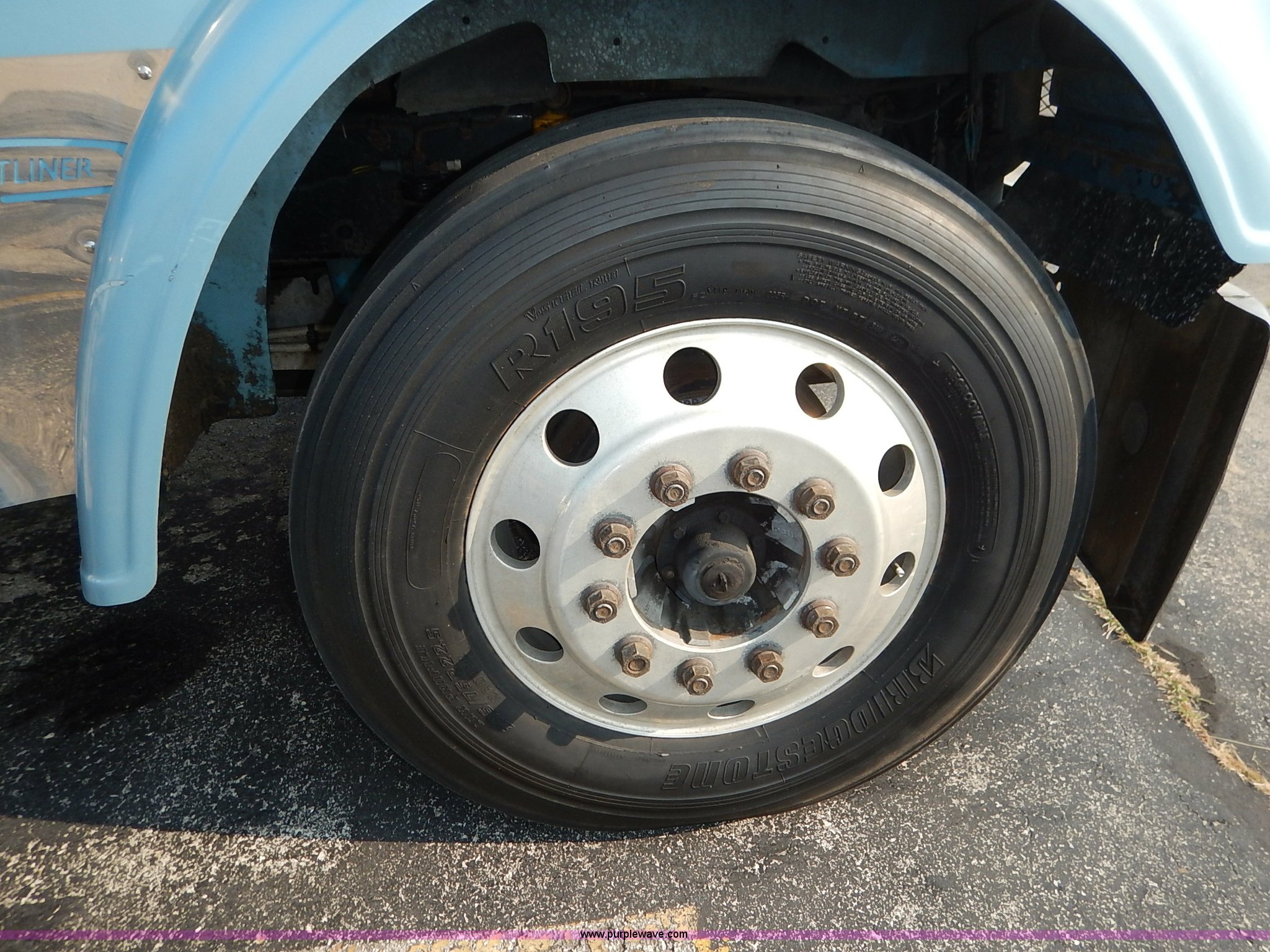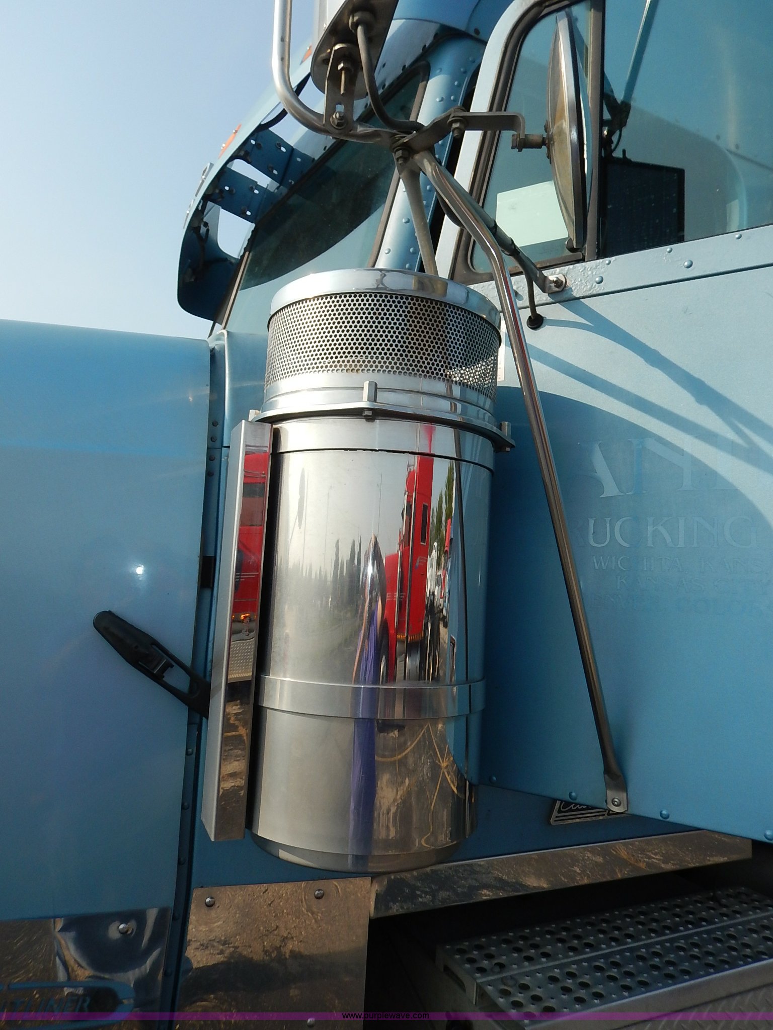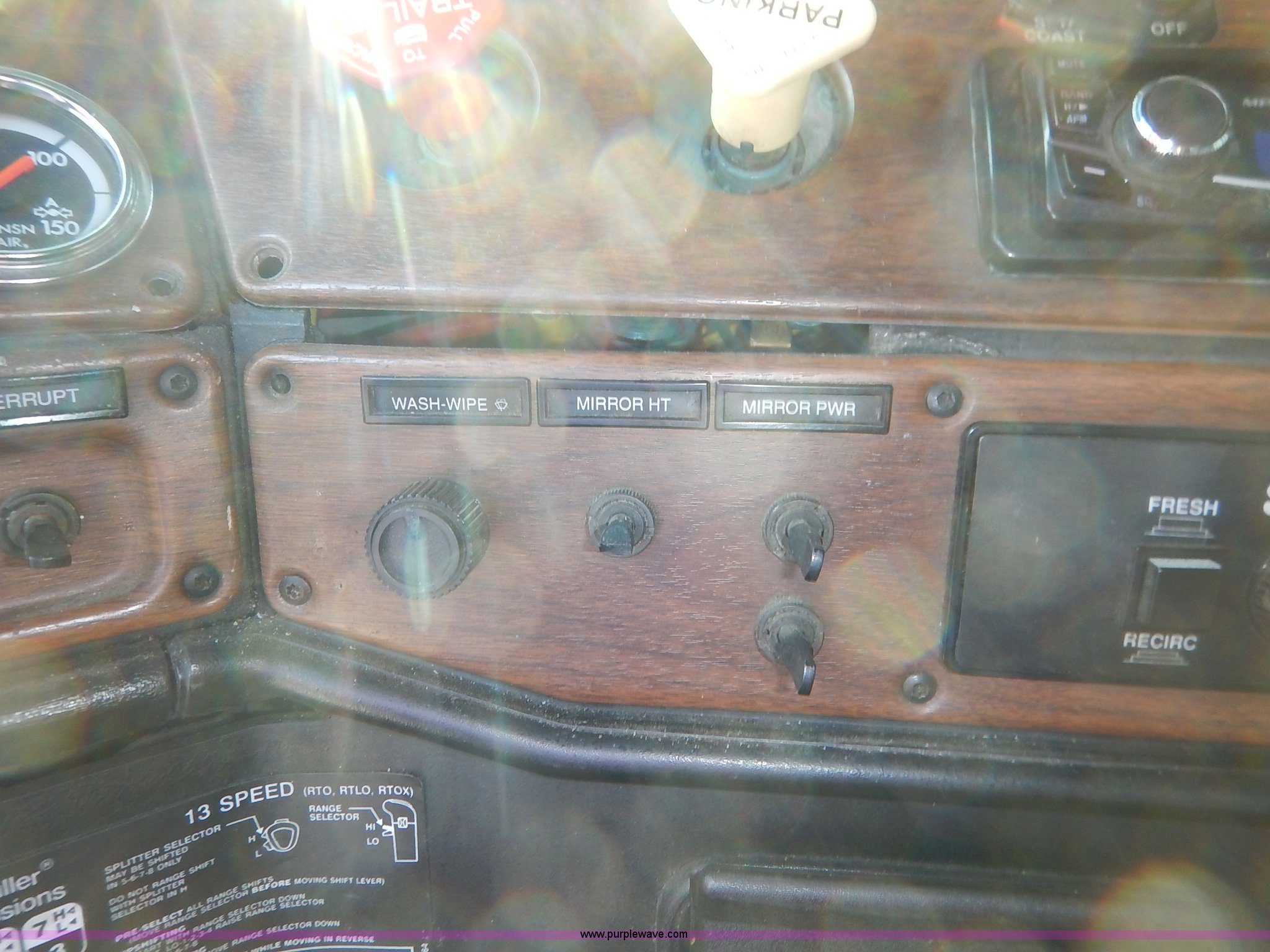 Purple Wave is selling a used Truck Tractor in Kansas. This item is a 2005 Freightliner FLD132 XL Classic semi truck with the following: 770,213 miles on odometer, Caterpillar C15 14.6L L6 turbo diesel engine, Serial BXS12939, Eaton Fuller 13 speed manual transmission, Tandem axle, Inter-axle differential lock, AC and heat, Tilt, Telescoping steering wheel, Cruise, AM/FM/CD, Passenger daylight door, Air suspension seat, Power and heated mirrors, Cloth interior, Air ride cab, Fog lights, 7' x 5' sleeper, Double bunk, Storage, Front tow hooks, Exterior visor, Chrome bumper, Block heater, Aluminum air operated sliding fifth wheel plate, Dual 120 gallon fuel tanks, Dual front exhaust stacks, Air suspension, Air brakes, Engine brake, (2) cylinders, (4) cylinders, Aluminum wheels, 22' wheelbase, 275/80R22.5 tires, Worn, Seat damage, Unit# 89
