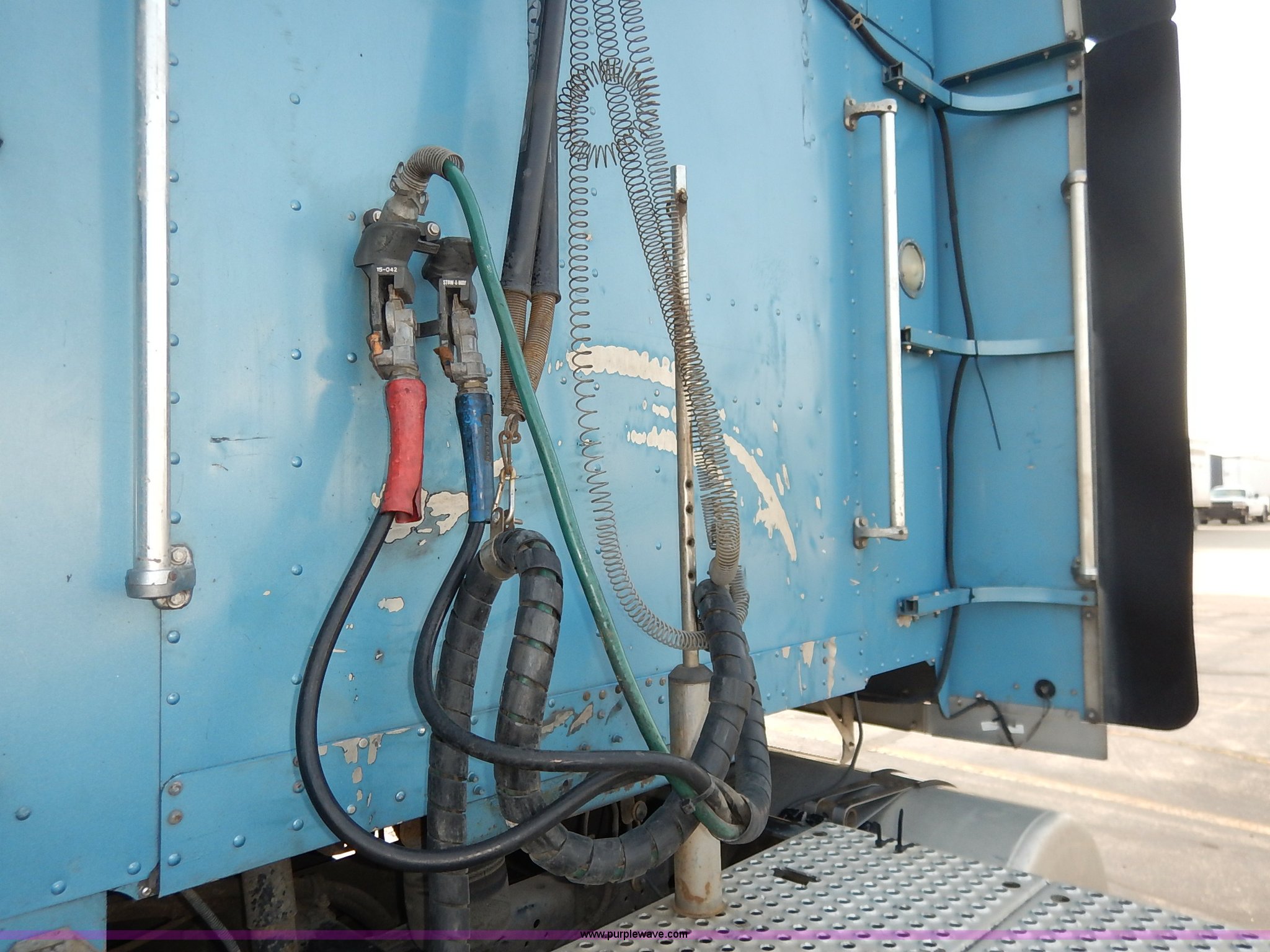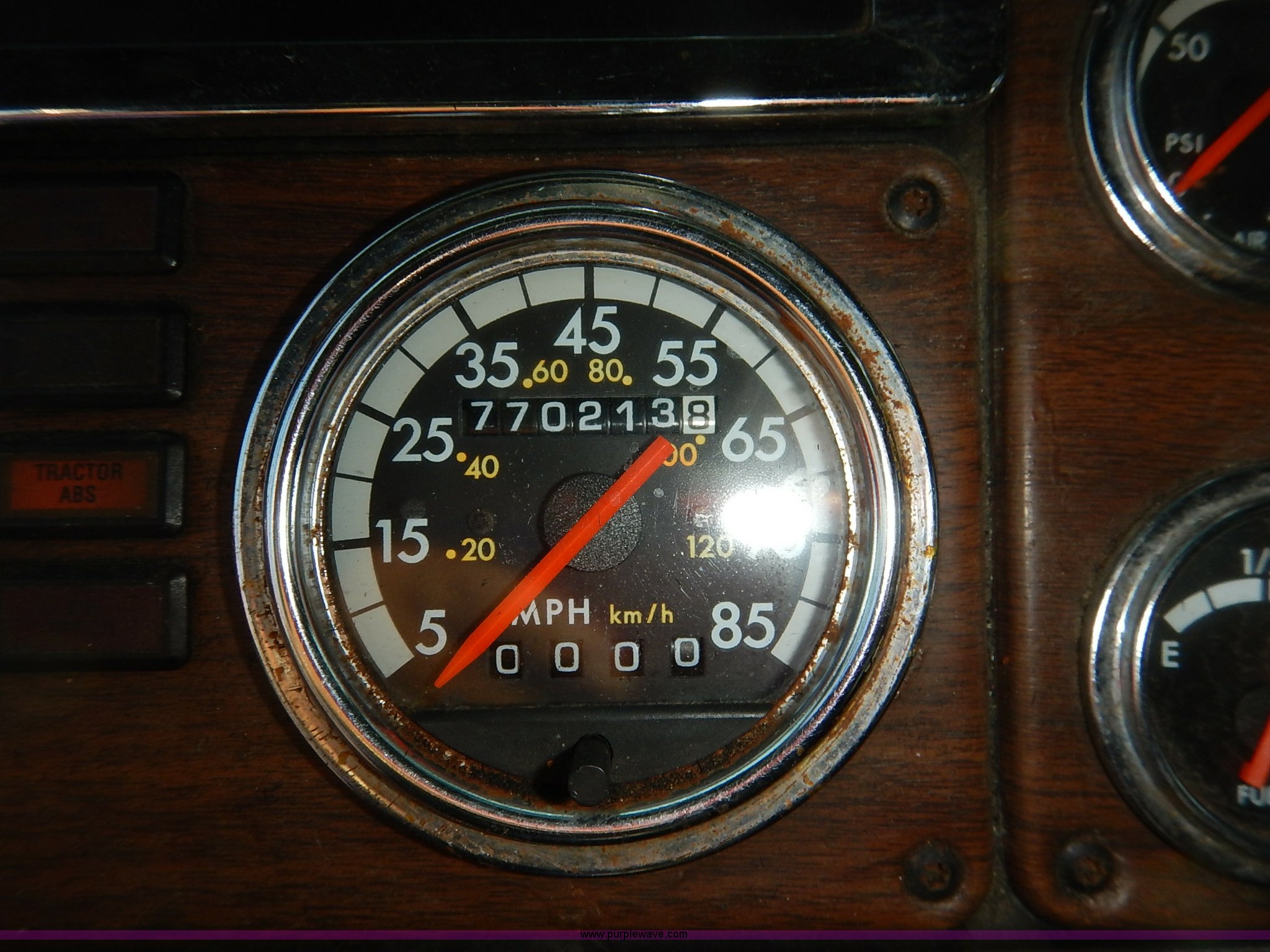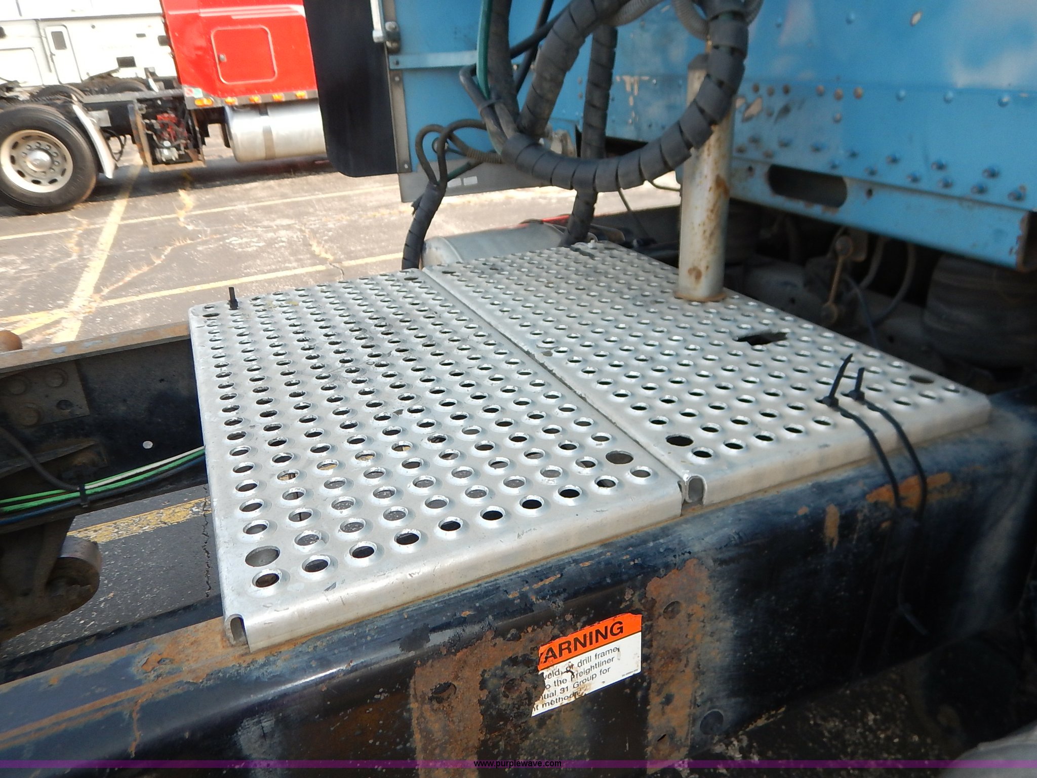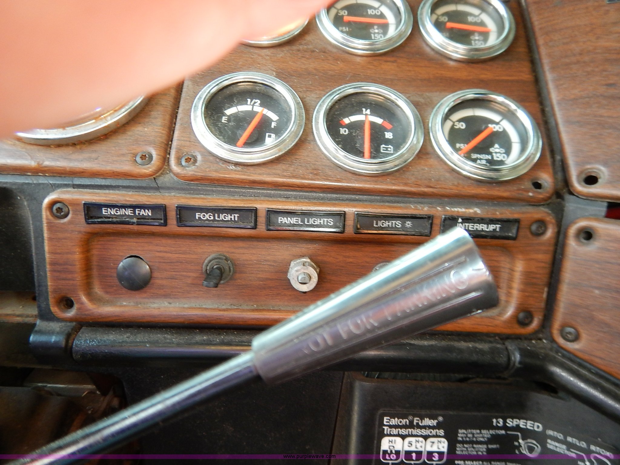 Purple Wave is selling a used Truck Tractor in Kansas. This item is a 2005 Freightliner FLD132 XL Classic semi truck with the following: 770,213 miles on odometer, Caterpillar C15 14.6L L6 turbo diesel engine, Serial BXS12939, Eaton Fuller 13 speed manual transmission, Tandem axle, Inter-axle differential lock, AC and heat, Tilt, Telescoping steering wheel, Cruise, AM/FM/CD, Passenger daylight door, Air suspension seat, Power and heated mirrors, Cloth interior, Air ride cab, Fog lights, 7' x 5' sleeper, Double bunk, Storage, Front tow hooks, Exterior visor, Chrome bumper, Block heater, Aluminum air operated sliding fifth wheel plate, Dual 120 gallon fuel tanks, Dual front exhaust stacks, Air suspension, Air brakes, Engine brake, (2) cylinders, (4) cylinders, Aluminum wheels, 22' wheelbase, 275/80R22.5 tires, Worn, Seat damage, Unit# 89