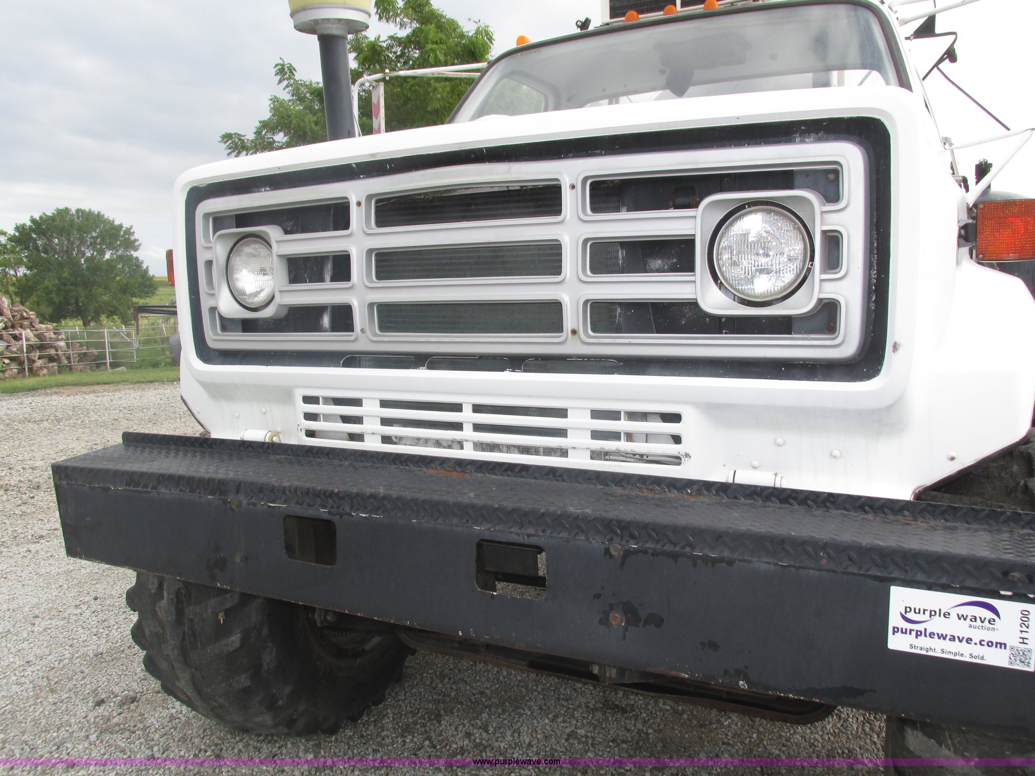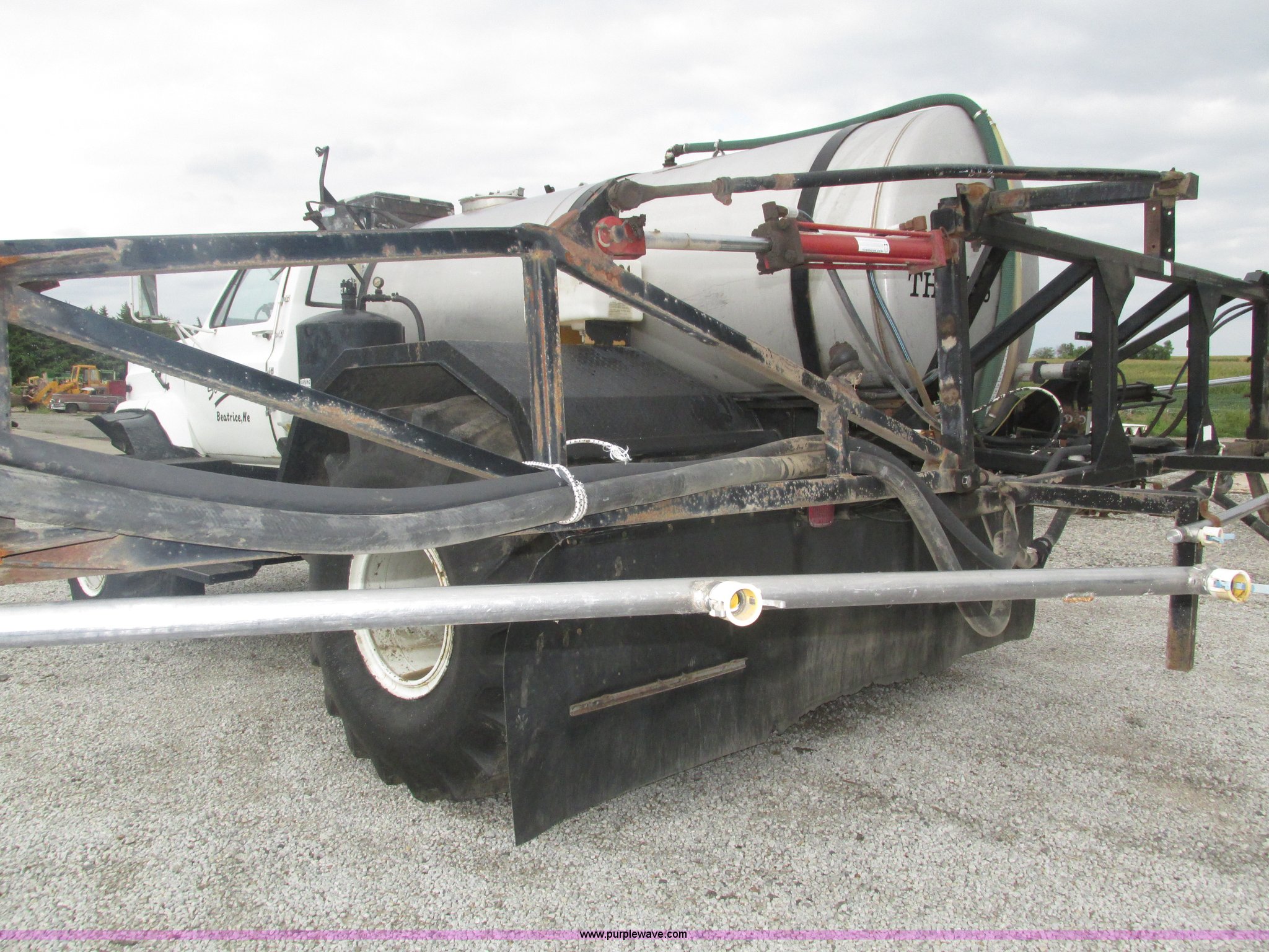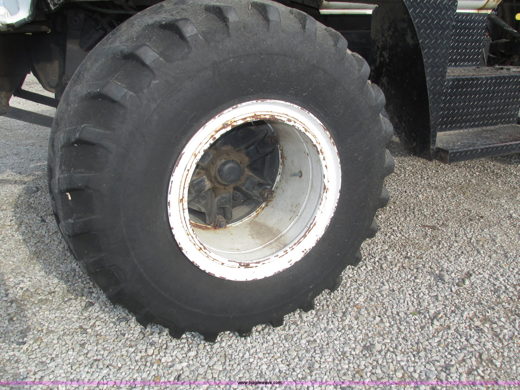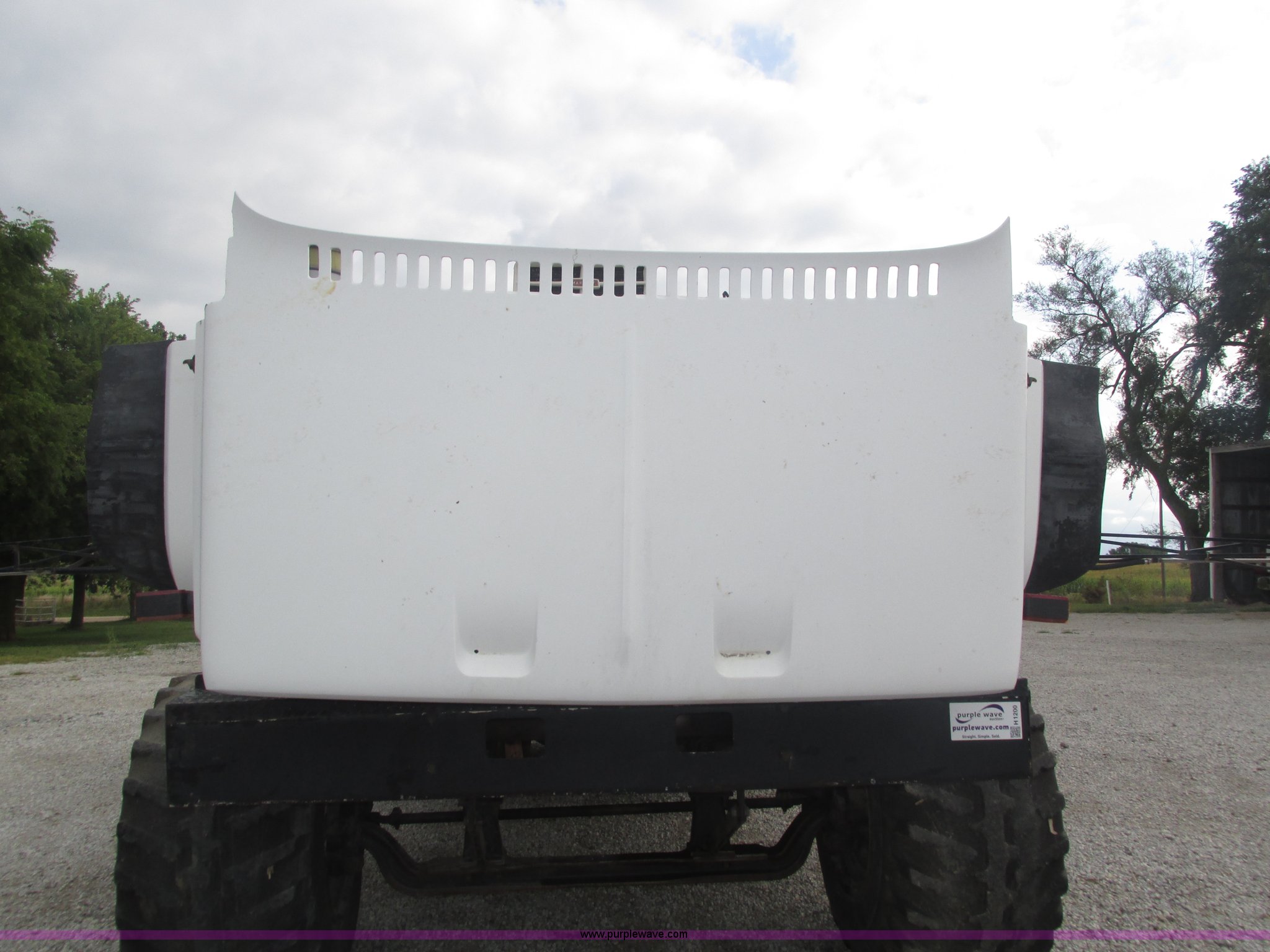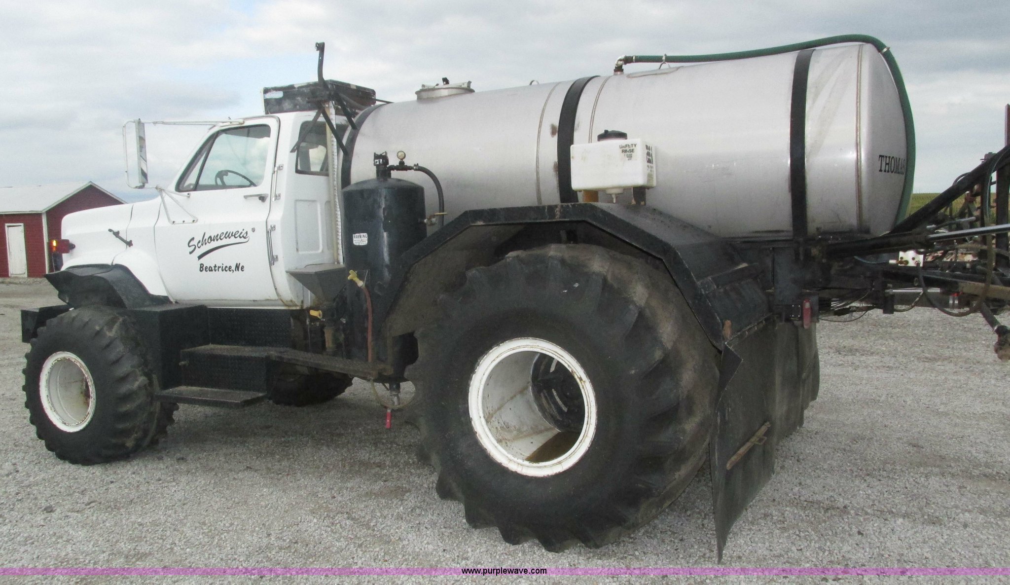 Purple Wave is selling a used Applicator Truck in Nebraska. This item is a GMC Sierra applicator truck with the following: 55,422 miles on odometer, 2,276 hours on meter, 427 C.I.D. V8 gas engine, Allison automatic transmission, 5F-1R gears, AC and heat, Mark IV roof mounted AC, Suspension seat, 1,200 gallon stainless steel solution tank, Five gallon rinse tank, 60'W boom, (5) sections, Break-away boom, Hydraulic boom fold, 30" nozzle spacing, Assorted TeeJet and Banjo nozzles and assorted fittings, 54 gallon foamer, Dual 50 gallon aluminum fuel tanks, Air brakes, 48x25.00-20 front flotation tires, 66x43.00-25 rear flotation tires, Product pump rebuilt two years ago