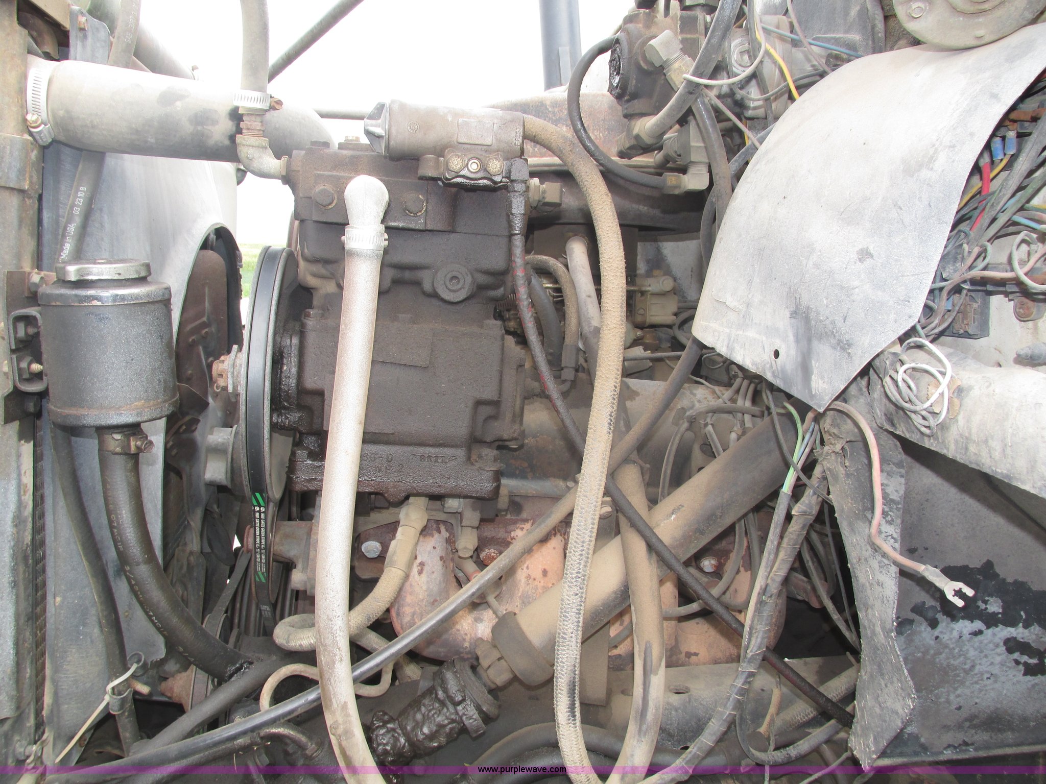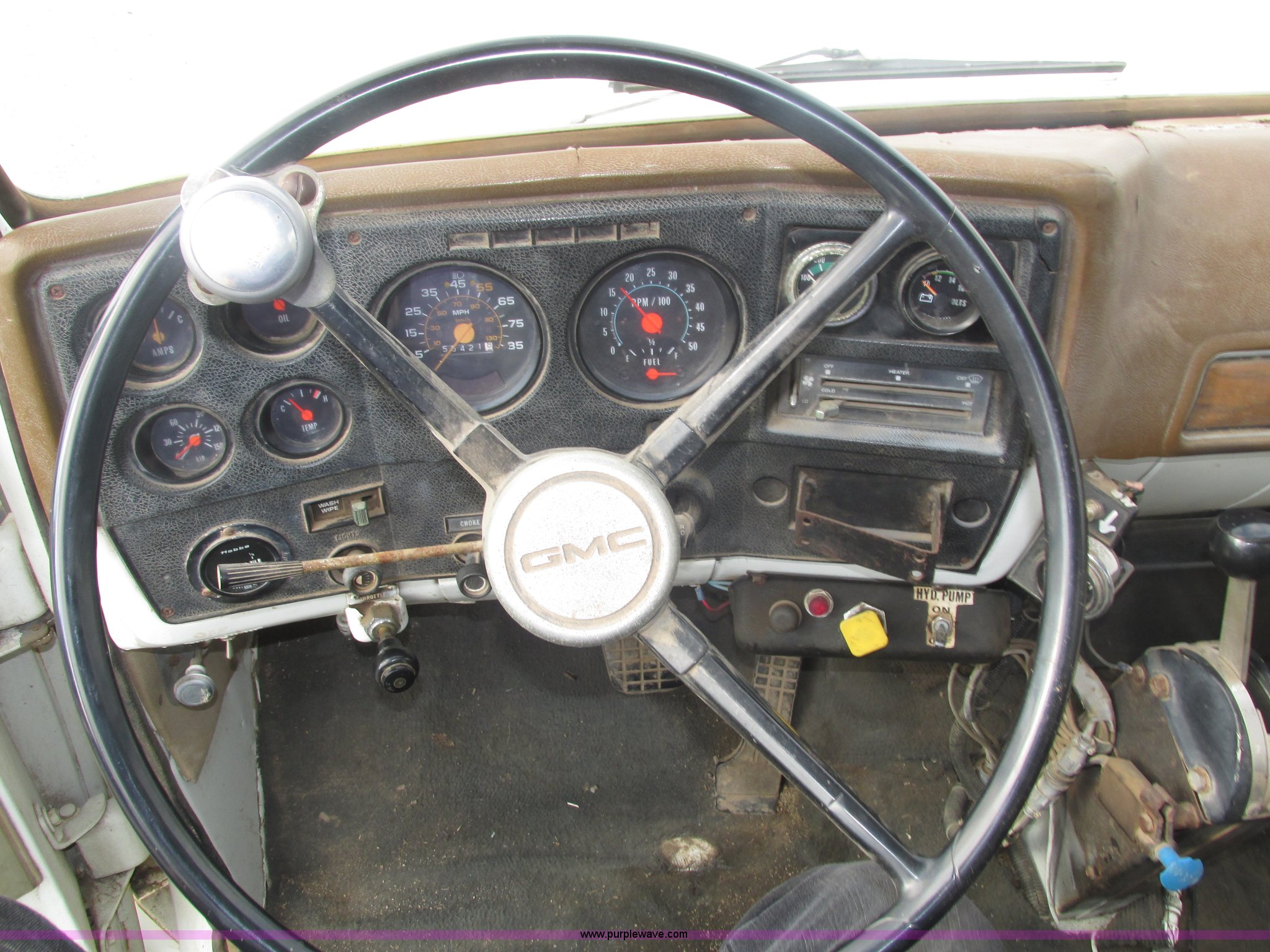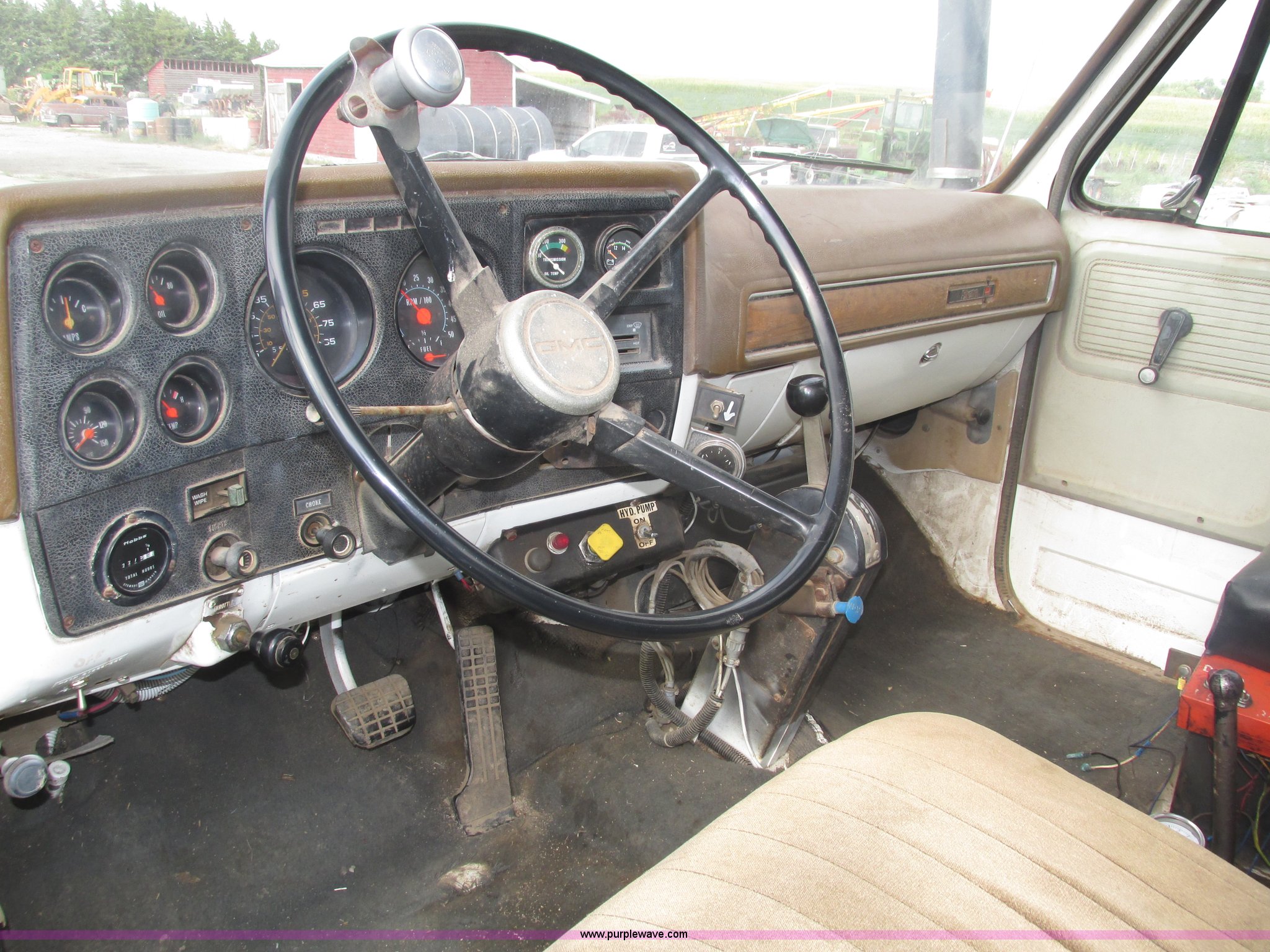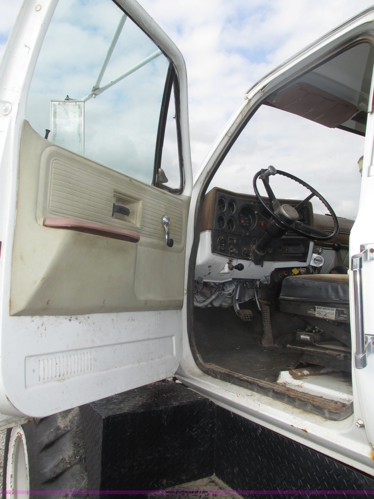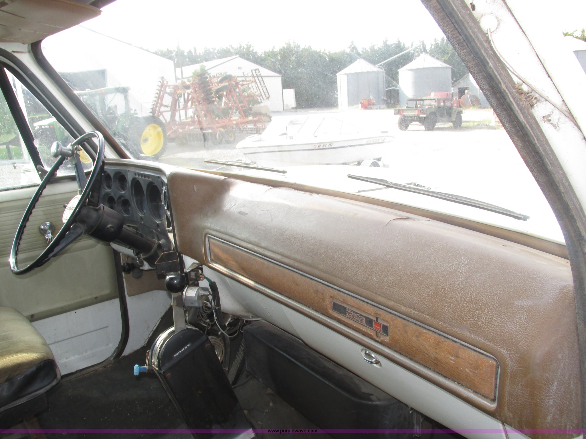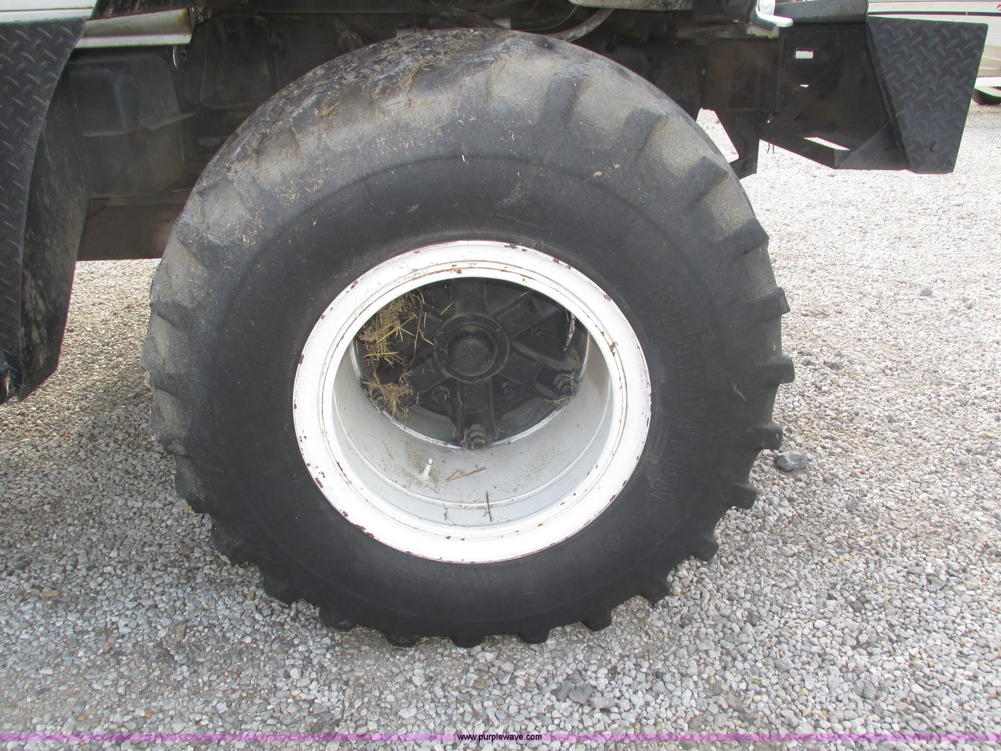 Purple Wave is selling a used Applicator Truck in Nebraska. This item is a GMC Sierra applicator truck with the following: 55,422 miles on odometer, 2,276 hours on meter, 427 C.I.D. V8 gas engine, Allison automatic transmission, 5F-1R gears, AC and heat, Mark IV roof mounted AC, Suspension seat, 1,200 gallon stainless steel solution tank, Five gallon rinse tank, 60'W boom, (5) sections, Break-away boom, Hydraulic boom fold, 30" nozzle spacing, Assorted TeeJet and Banjo nozzles and assorted fittings, 54 gallon foamer, Dual 50 gallon aluminum fuel tanks, Air brakes, 48x25.00-20 front flotation tires, 66x43.00-25 rear flotation tires, Product pump rebuilt two years ago
