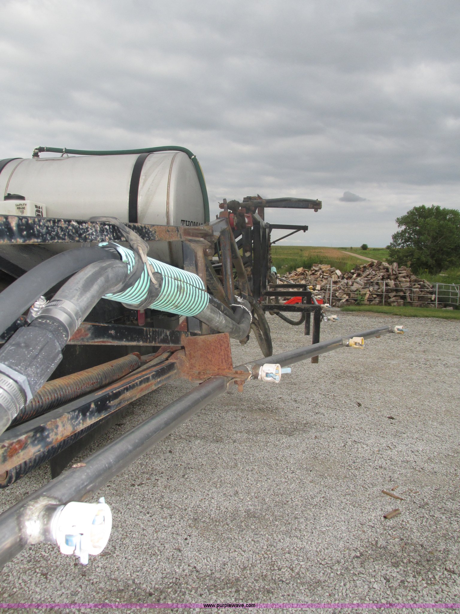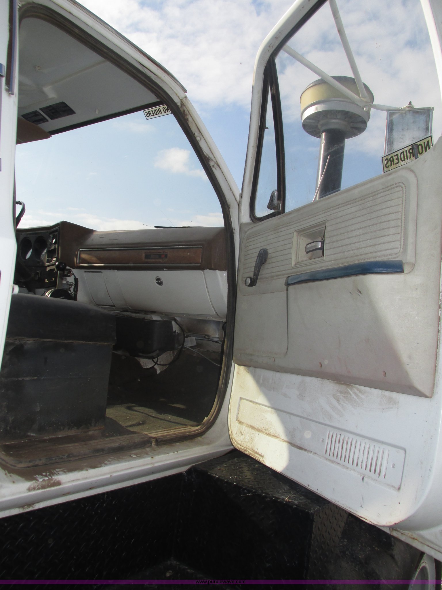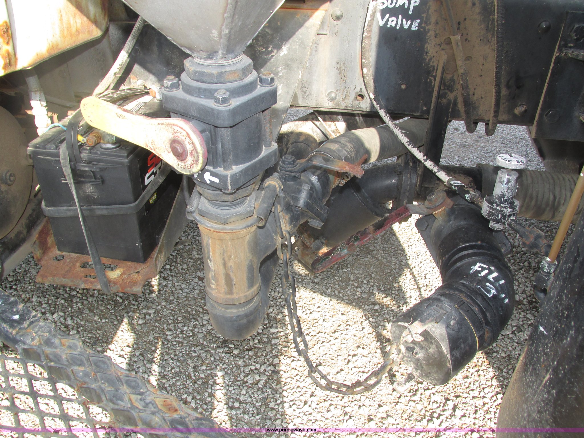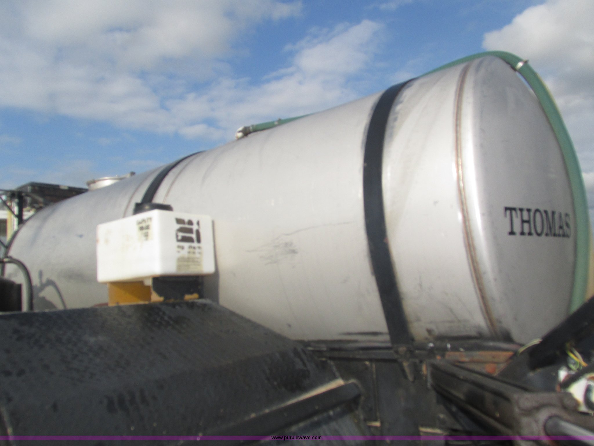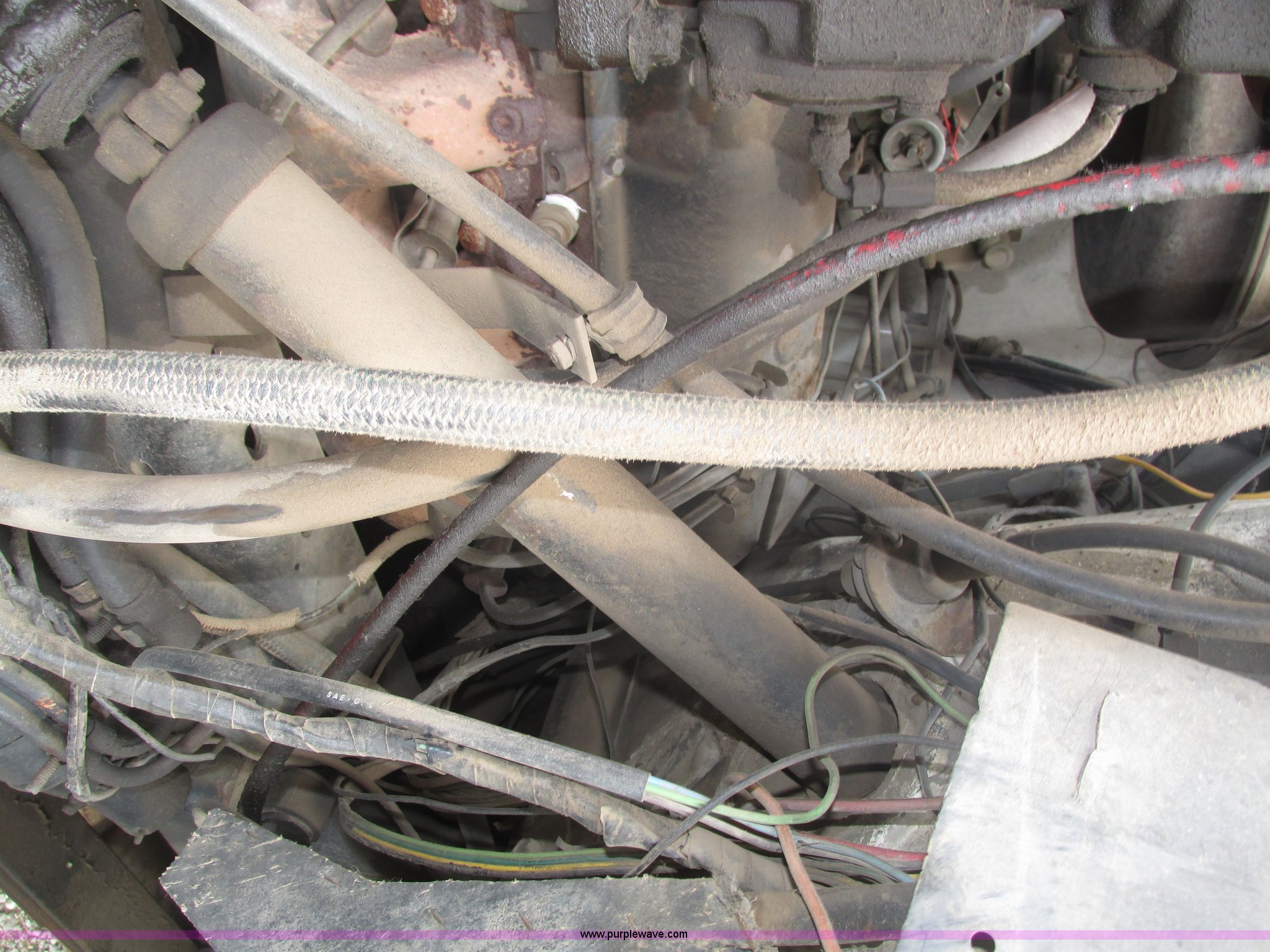 Purple Wave is selling a used Applicator Truck in Nebraska. This item is a GMC Sierra applicator truck with the following: 55,422 miles on odometer, 2,276 hours on meter, 427 C.I.D. V8 gas engine, Allison automatic transmission, 5F-1R gears, AC and heat, Mark IV roof mounted AC, Suspension seat, 1,200 gallon stainless steel solution tank, Five gallon rinse tank, 60'W boom, (5) sections, Break-away boom, Hydraulic boom fold, 30" nozzle spacing, Assorted TeeJet and Banjo nozzles and assorted fittings, 54 gallon foamer, Dual 50 gallon aluminum fuel tanks, Air brakes, 48x25.00-20 front flotation tires, 66x43.00-25 rear flotation tires, Product pump rebuilt two years ago