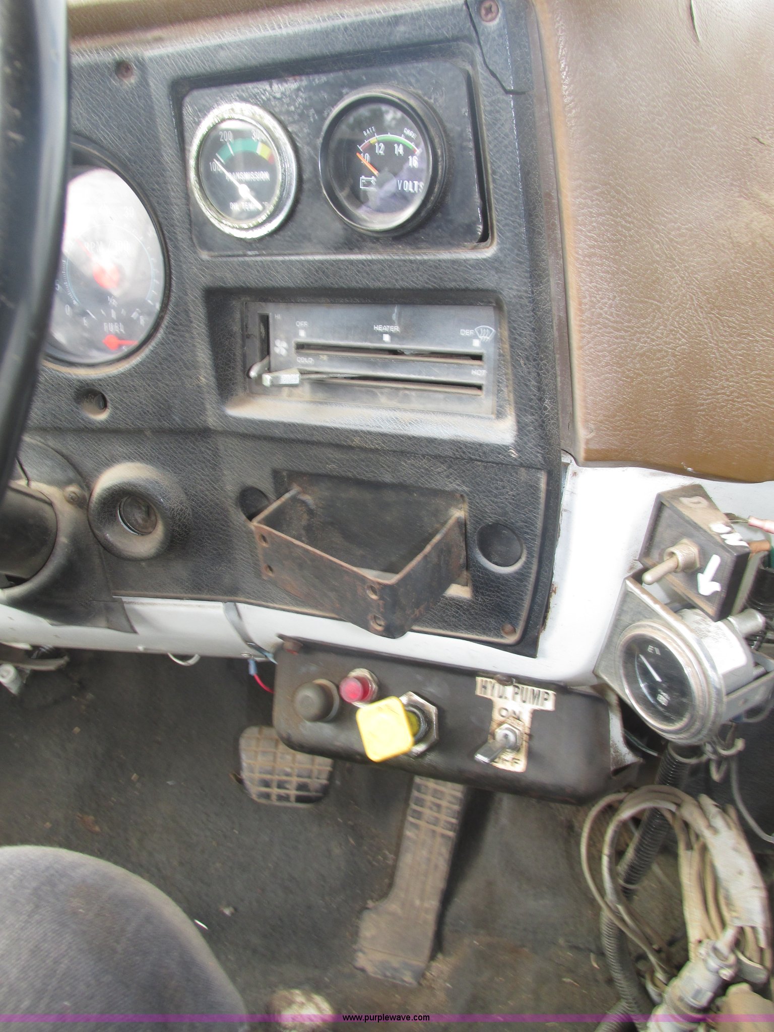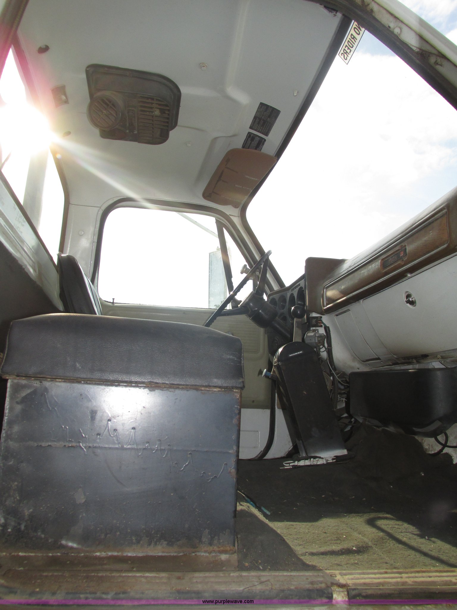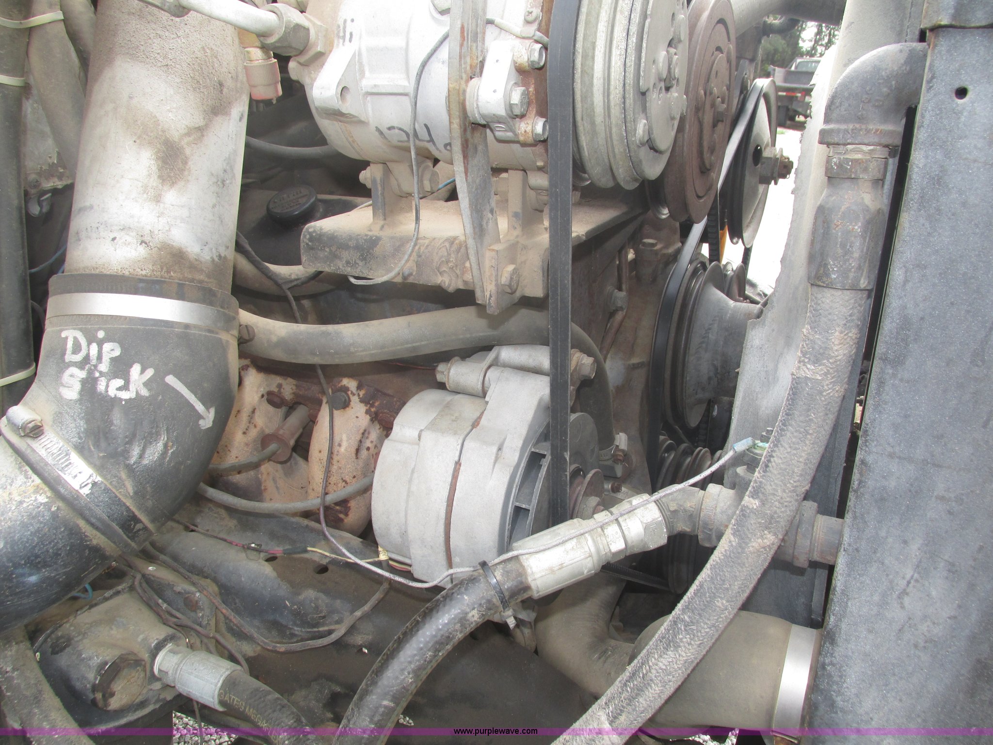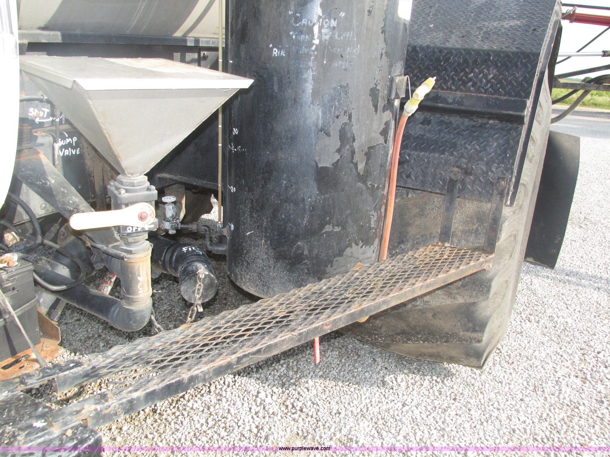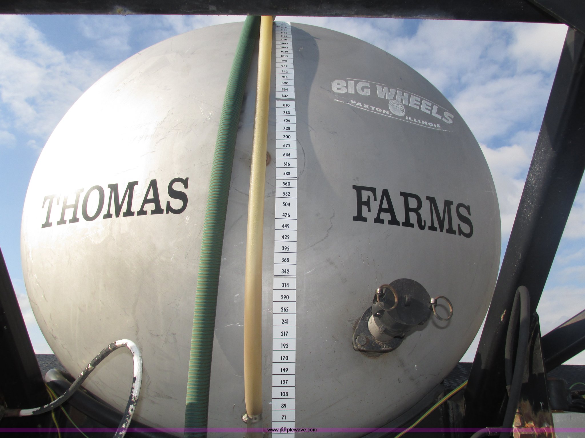 Purple Wave is selling a used Applicator Truck in Nebraska. This item is a GMC Sierra applicator truck with the following: 55,422 miles on odometer, 2,276 hours on meter, 427 C.I.D. V8 gas engine, Allison automatic transmission, 5F-1R gears, AC and heat, Mark IV roof mounted AC, Suspension seat, 1,200 gallon stainless steel solution tank, Five gallon rinse tank, 60'W boom, (5) sections, Break-away boom, Hydraulic boom fold, 30" nozzle spacing, Assorted TeeJet and Banjo nozzles and assorted fittings, 54 gallon foamer, Dual 50 gallon aluminum fuel tanks, Air brakes, 48x25.00-20 front flotation tires, 66x43.00-25 rear flotation tires, Product pump rebuilt two years ago