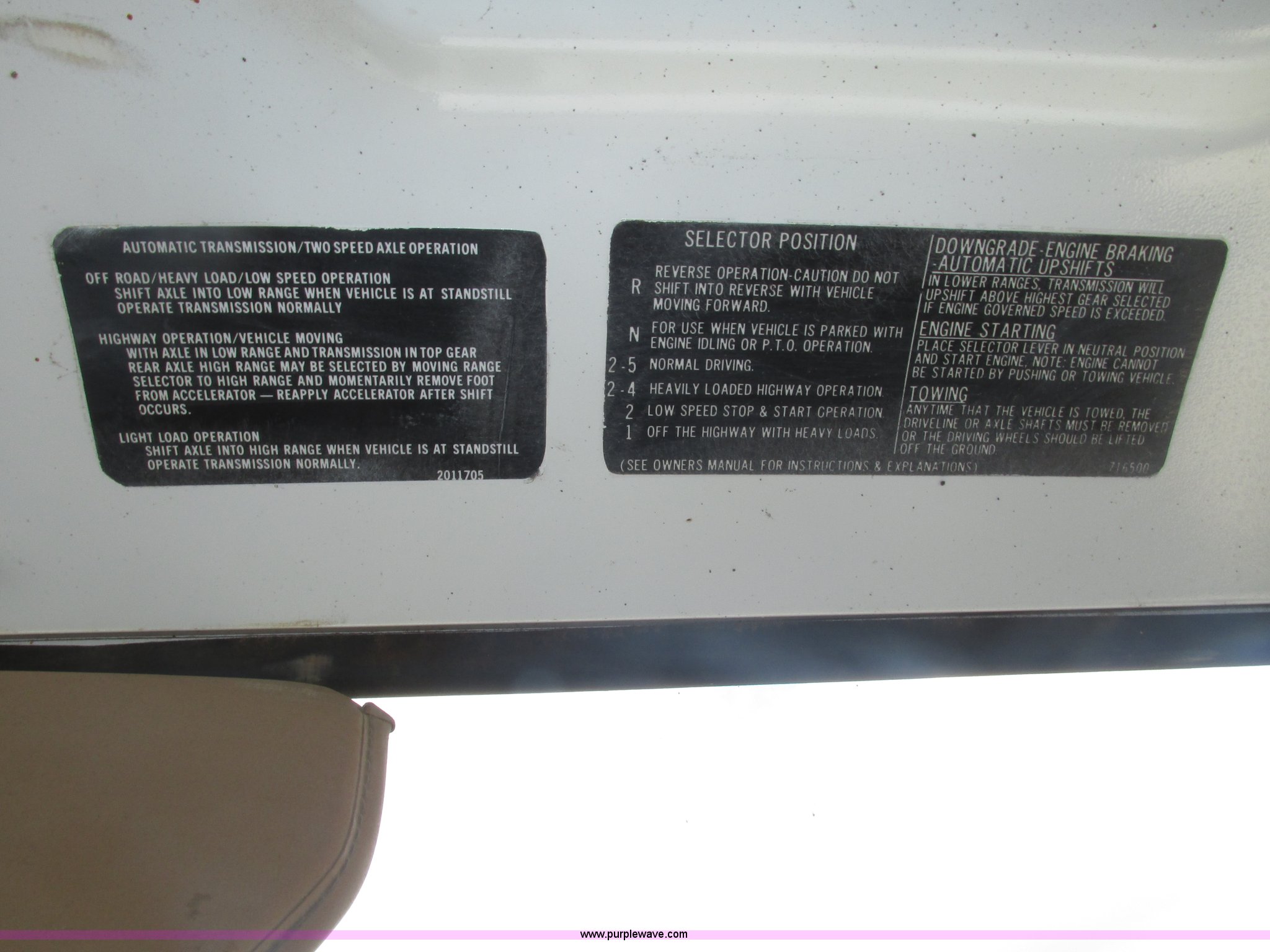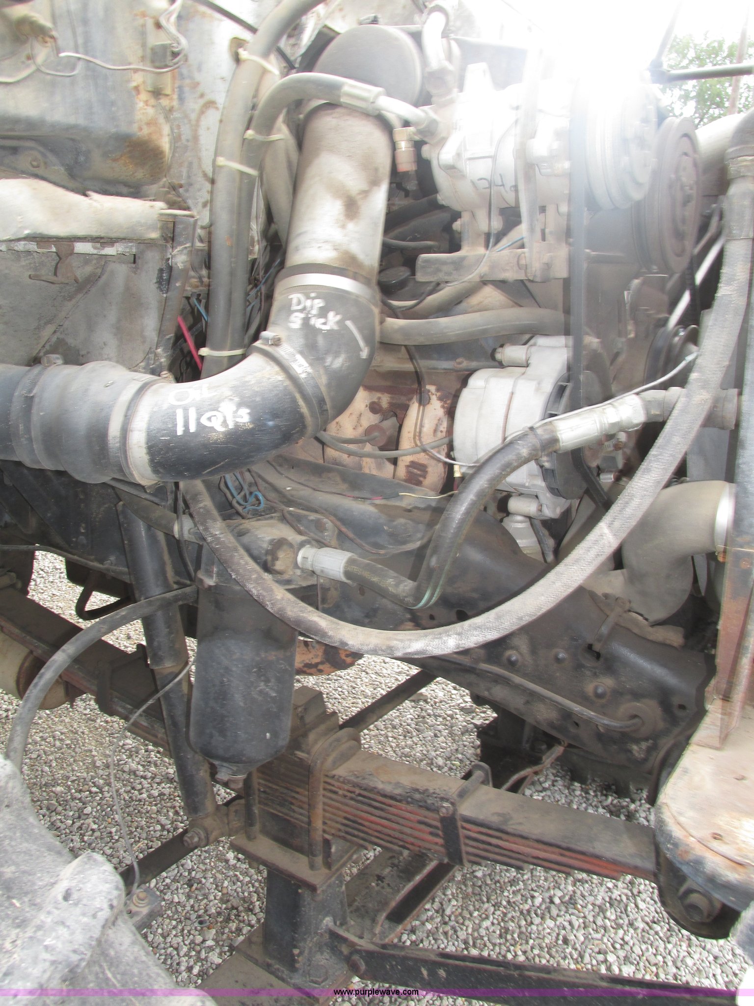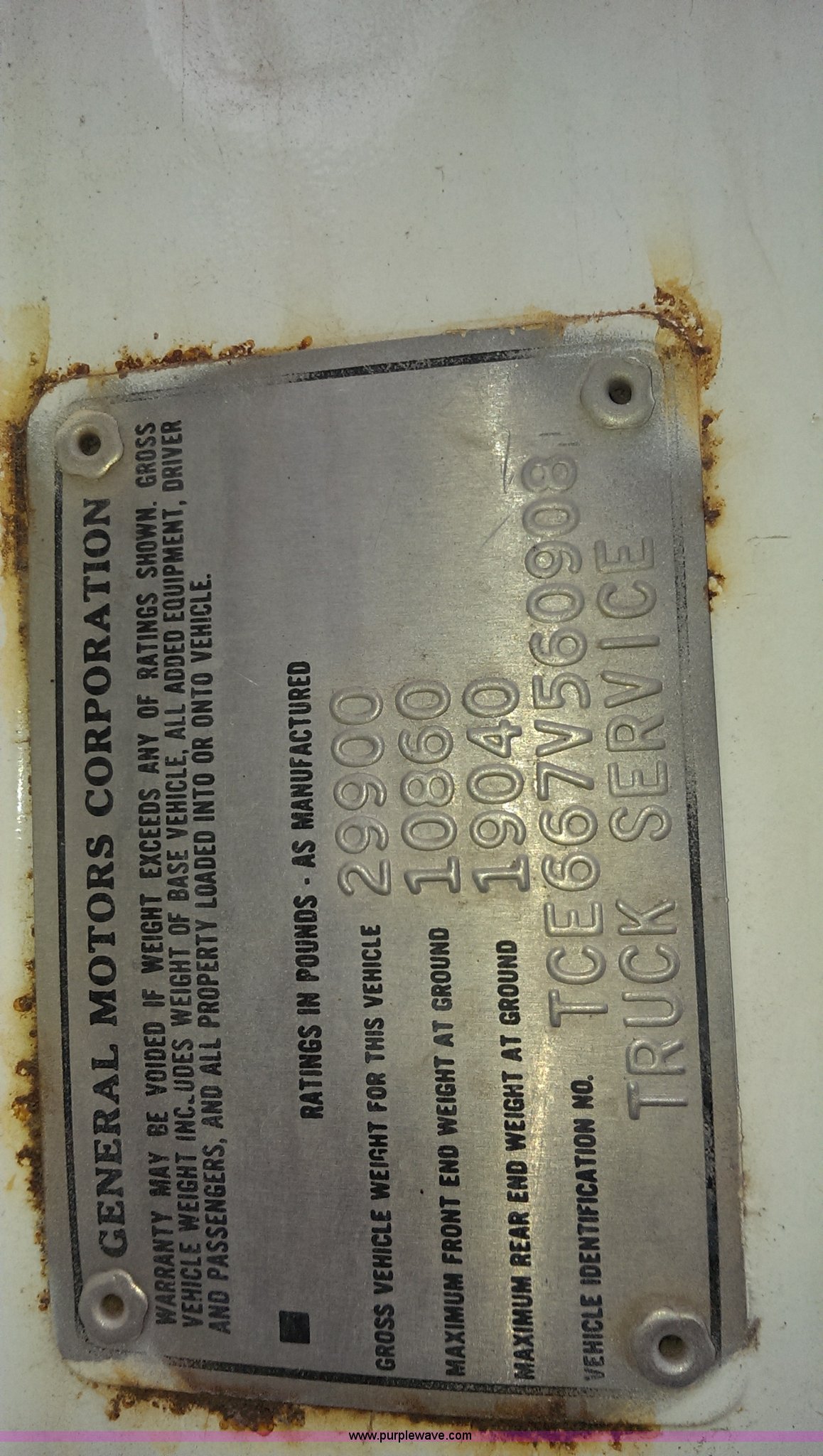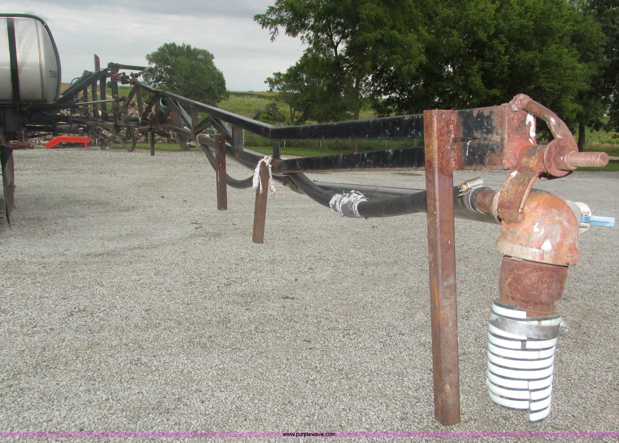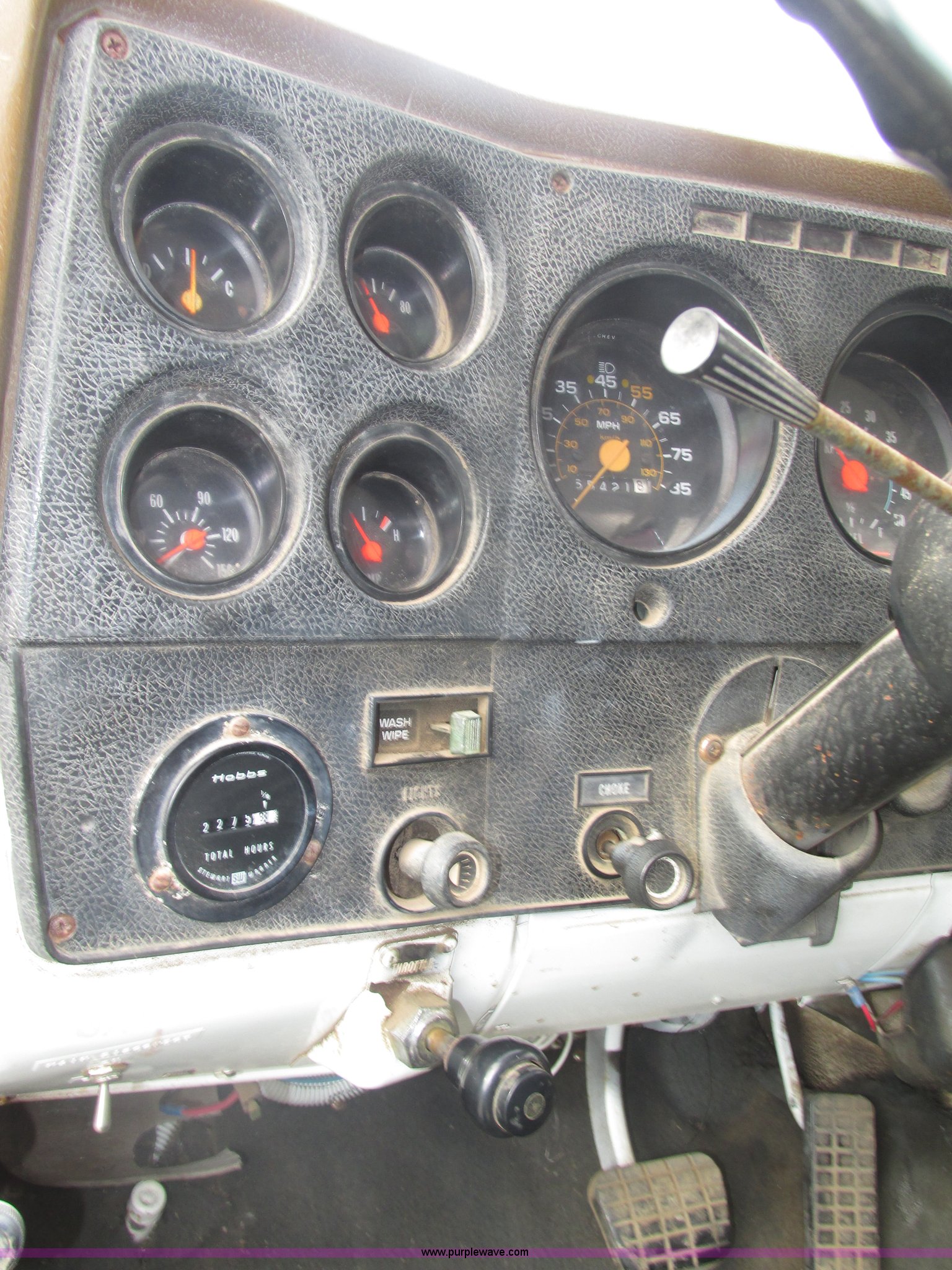 Purple Wave is selling a used Applicator Truck in Nebraska. This item is a GMC Sierra applicator truck with the following: 55,422 miles on odometer, 2,276 hours on meter, 427 C.I.D. V8 gas engine, Allison automatic transmission, 5F-1R gears, AC and heat, Mark IV roof mounted AC, Suspension seat, 1,200 gallon stainless steel solution tank, Five gallon rinse tank, 60'W boom, (5) sections, Break-away boom, Hydraulic boom fold, 30" nozzle spacing, Assorted TeeJet and Banjo nozzles and assorted fittings, 54 gallon foamer, Dual 50 gallon aluminum fuel tanks, Air brakes, 48x25.00-20 front flotation tires, 66x43.00-25 rear flotation tires, Product pump rebuilt two years ago