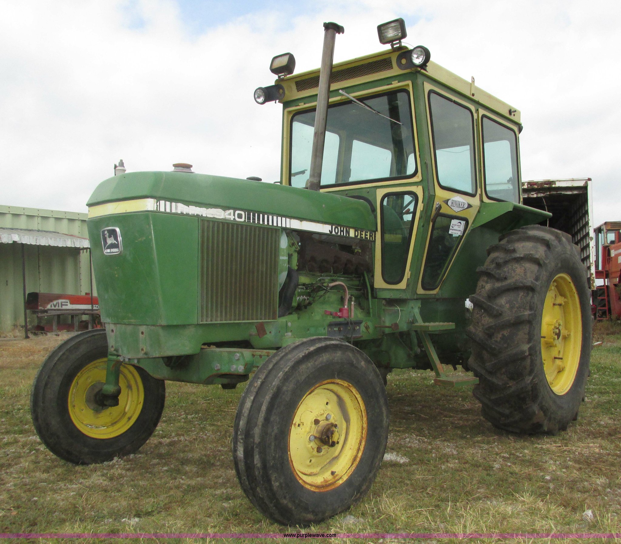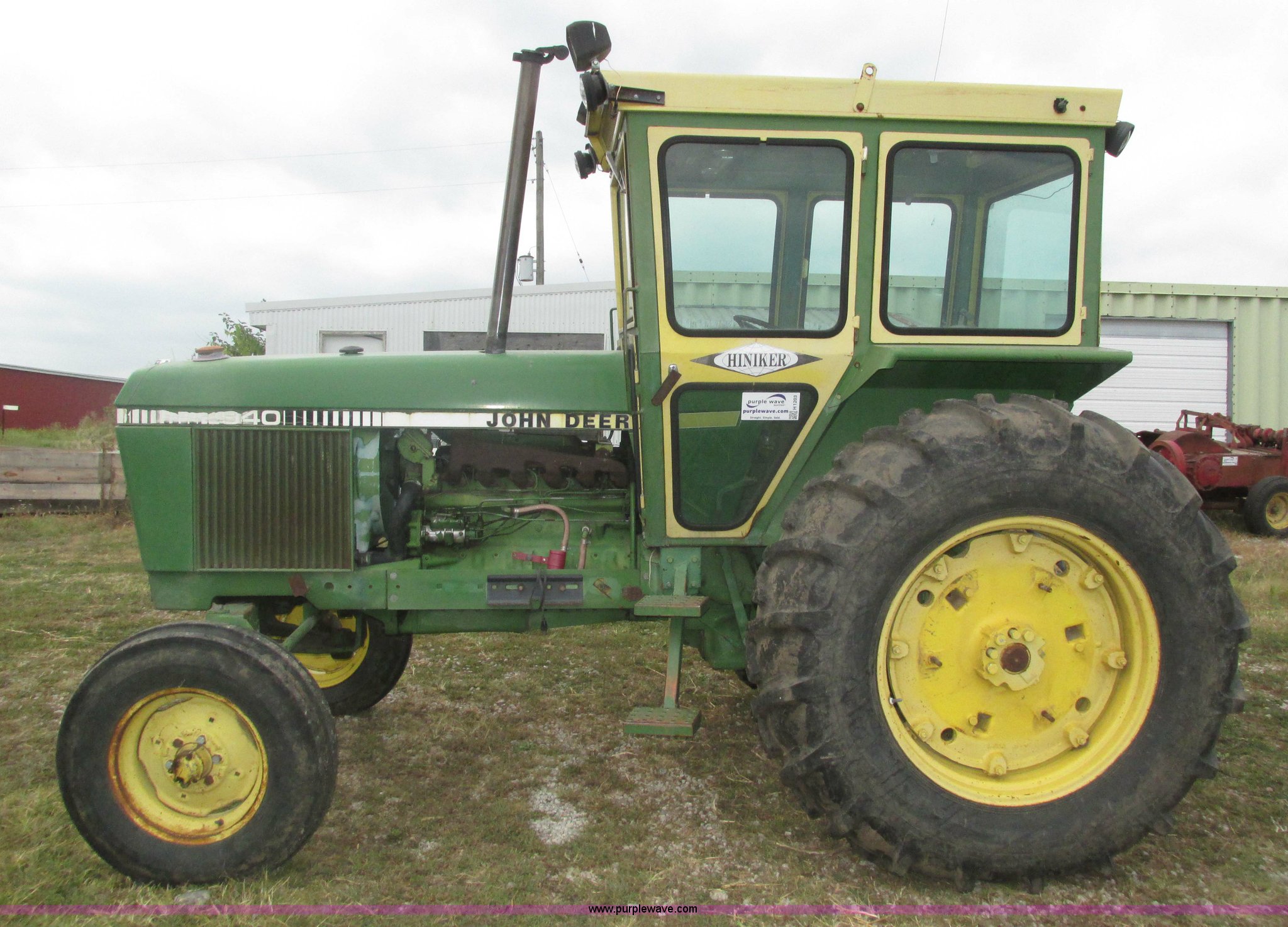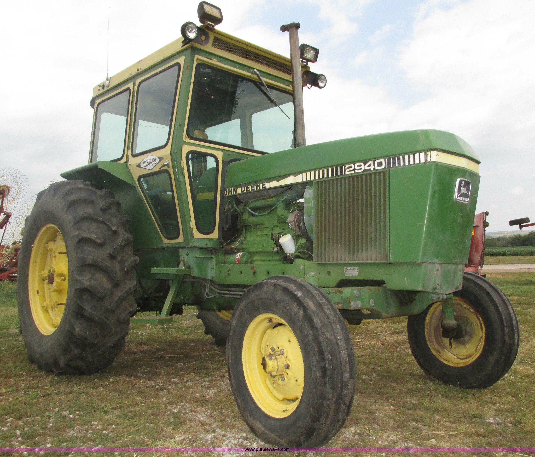 Purple Wave is selling a used Tractor in Nebraska. This item is a 1980 John Deere 2940 tractor with the following: 4,984 hours on meter, John Deere 5.9L six cylinder diesel engine, Serial 447661CD, Partial powershift transmission, 16F-8R gears, TSS high-low, Hiniker cab, Fan, Suspension seat, Front and rear work lights, Block heater, Category II three point, No top link, 540/1000 PTO, (3) rear hydraulic remotes, 33 gallon fuel tank, Wide front end, 7.50-18 front tires, 18.4-34 rear tires, Serial 374659L