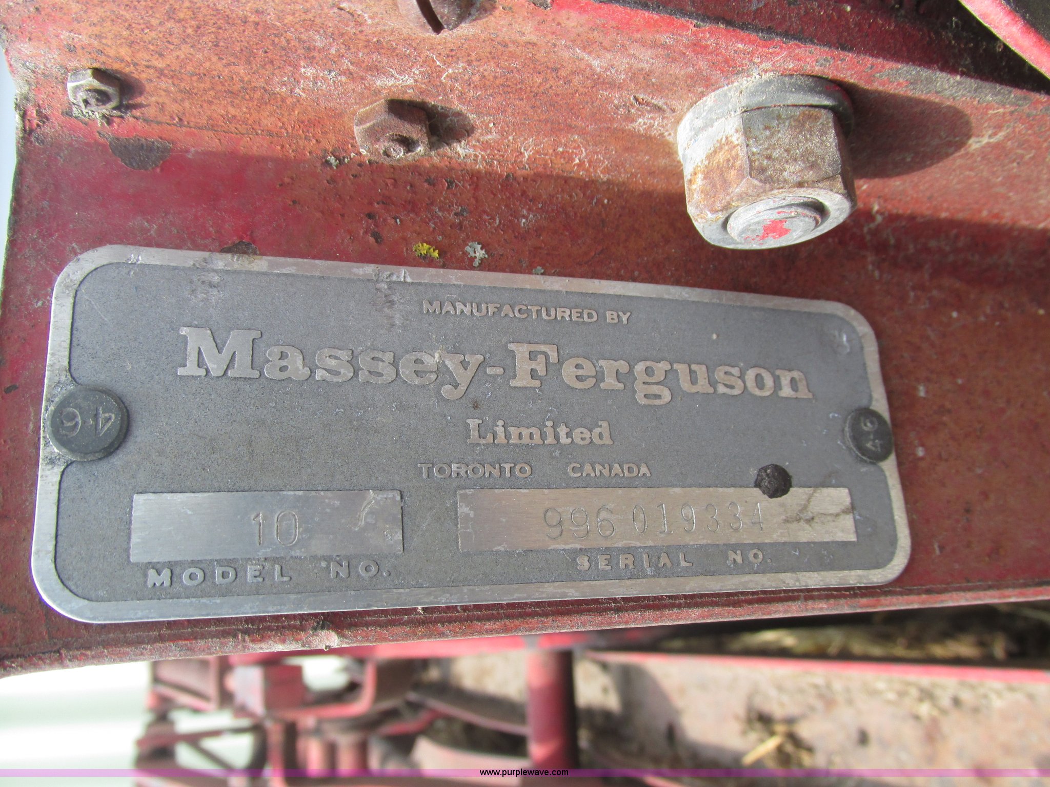 Purple Wave is selling a used Square Baler in Nebraska. This item is a Massey-Ferguson 10 square baler with the following: 540 PTO, Bale and road positions for tongue, Front and rear pin hitches, 7.00-15 tires, Serial 996019334