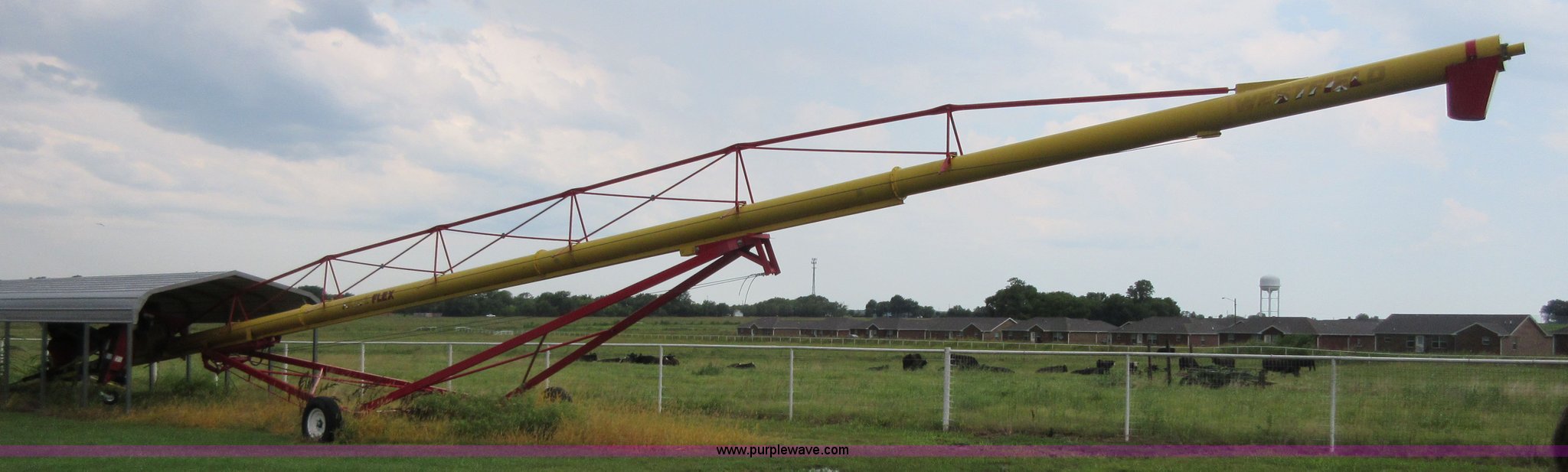 Purple Wave is selling a used Auger or Conveyor in Kansas. This item is a Westfield MK130-91 flex grain auger with the following: 91'L x 13" diameter, Hydraulic lift, Hydraulic ground drive flex, Hydraulic outriggers, 540 PTO, Pin hitch, ST235/80R16 tires, Car port not included, Serial 223031
