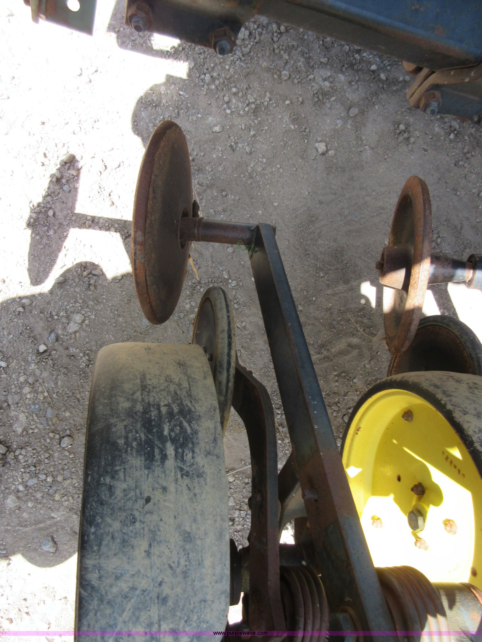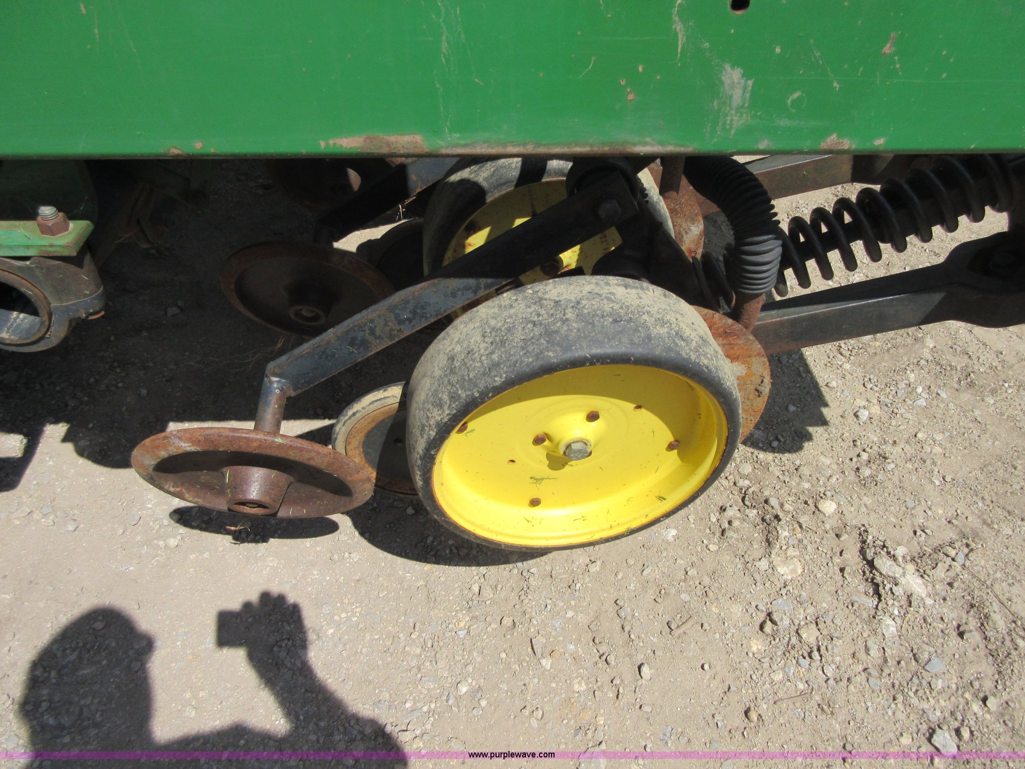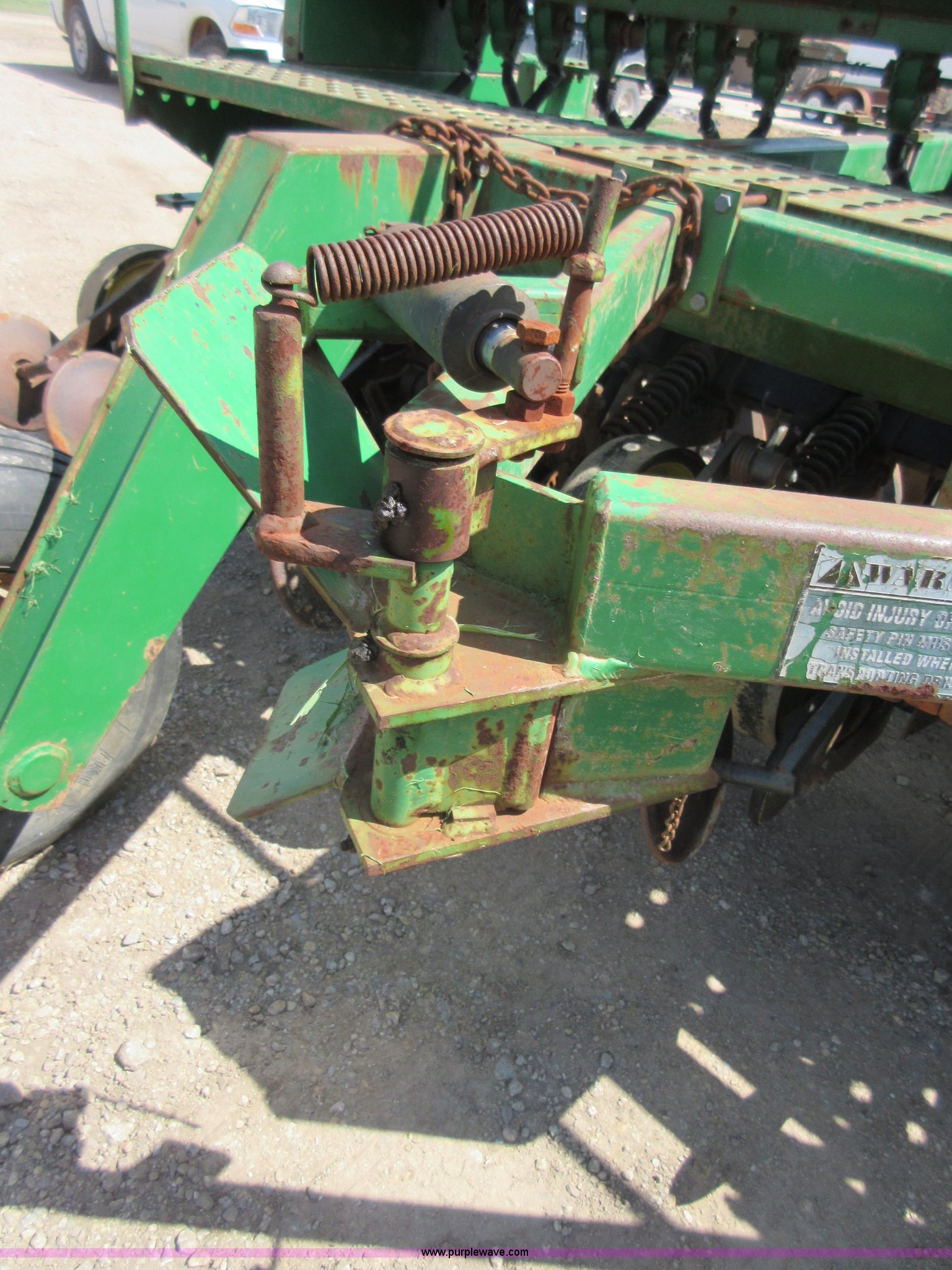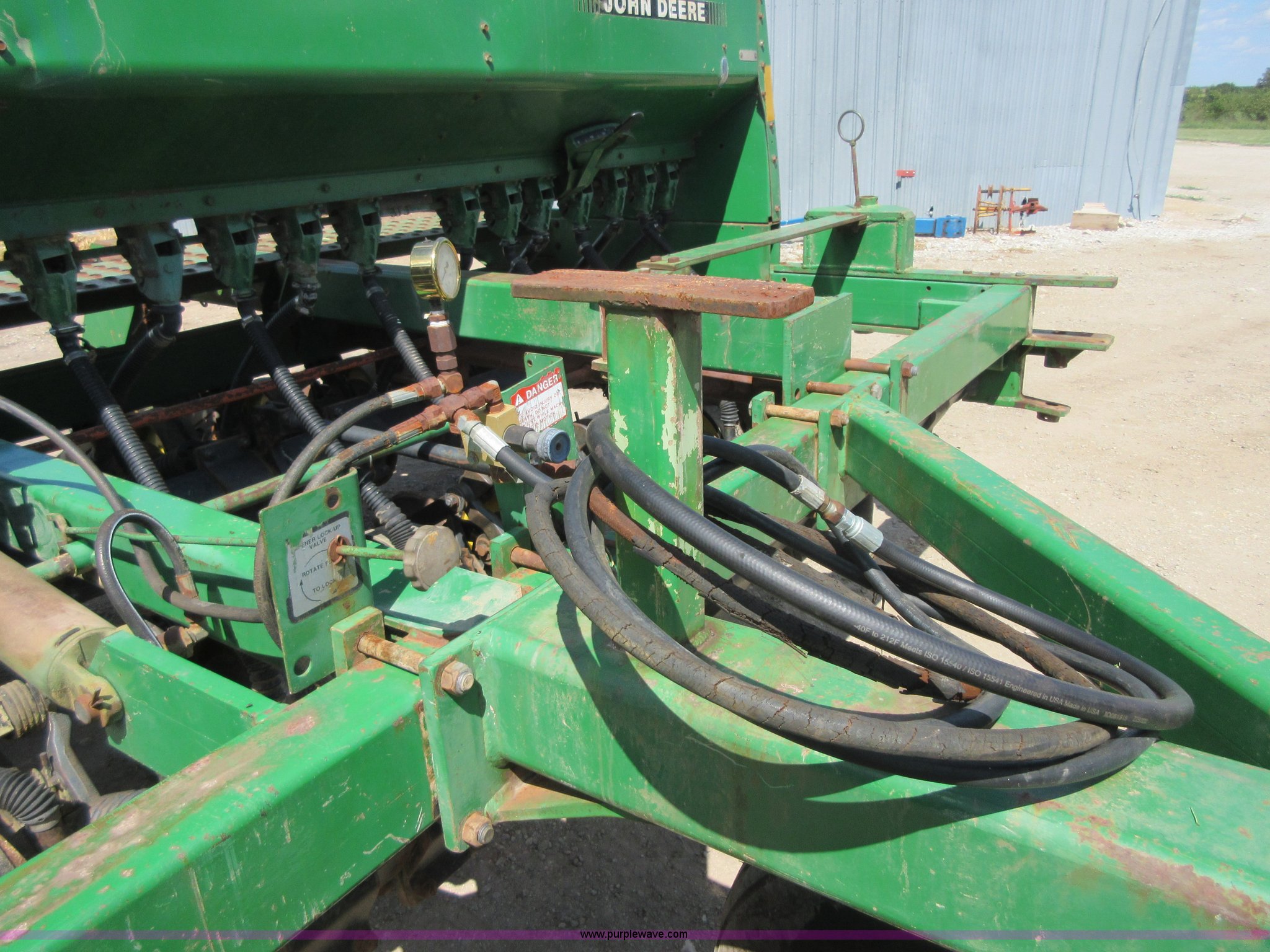 Purple Wave is selling a used Grain Drill or Seeder in Kansas. This item is a John Deere 750 grain drill with the following: 24 row units, 7.5" spacing, Bulk fill, Ground meter drive, Heavy duty spring down pressure, Single disk openers, Single press wheels, Cast closing system, Pin hitch, (4) 11L-15 transport tires, Serial N00750X007673