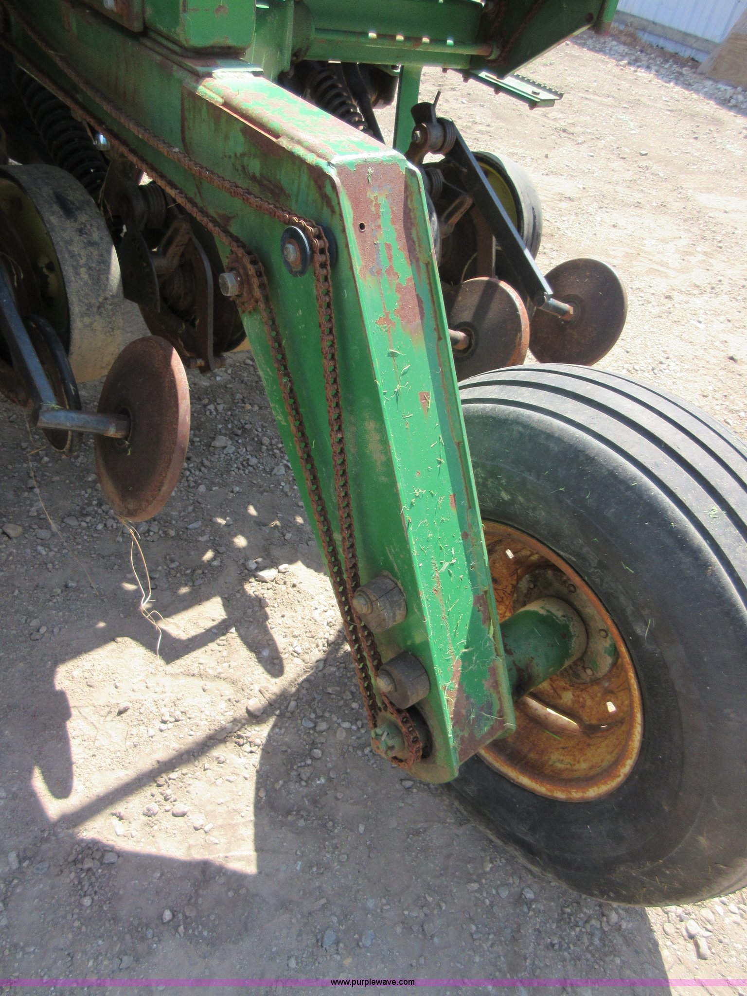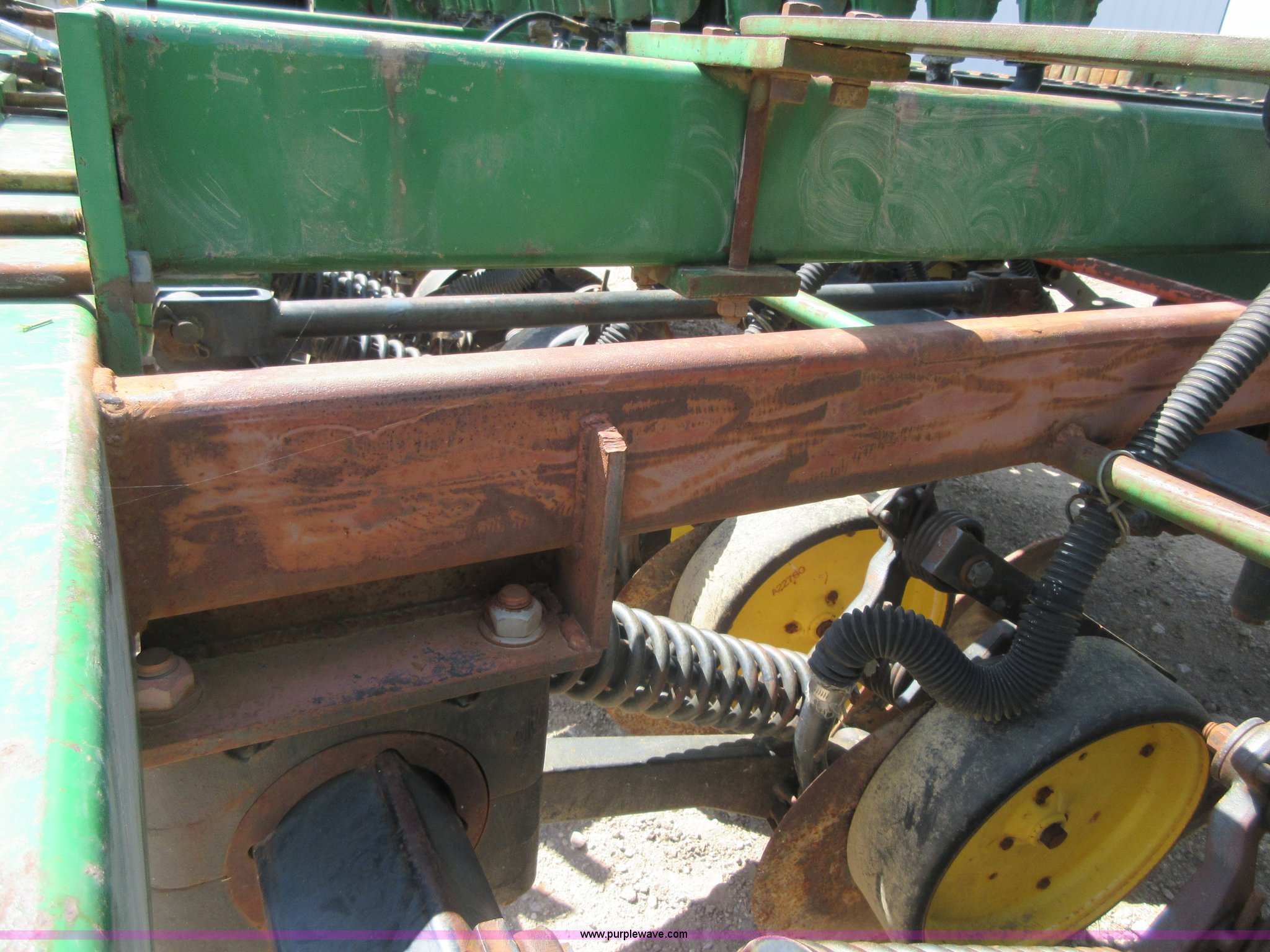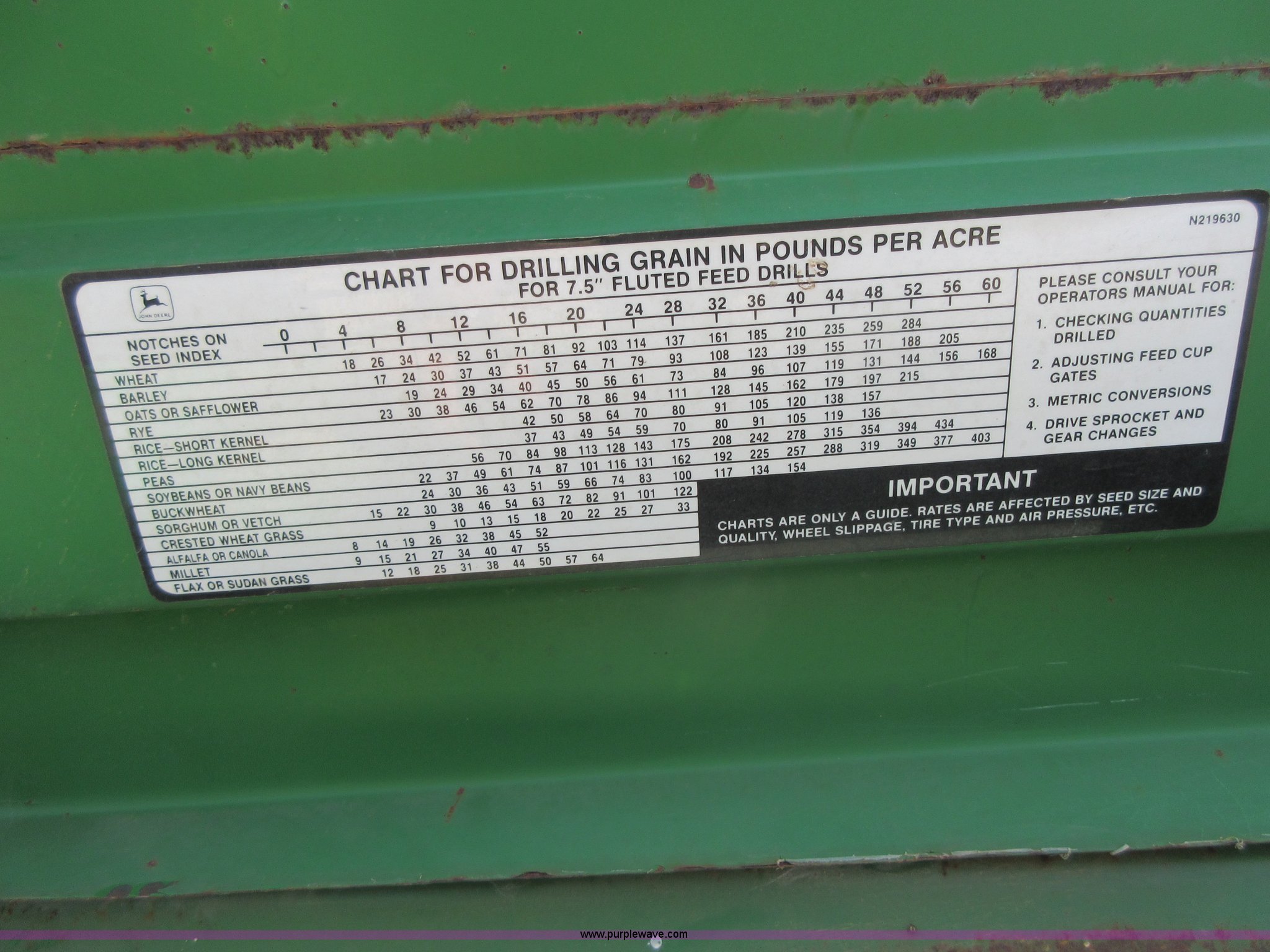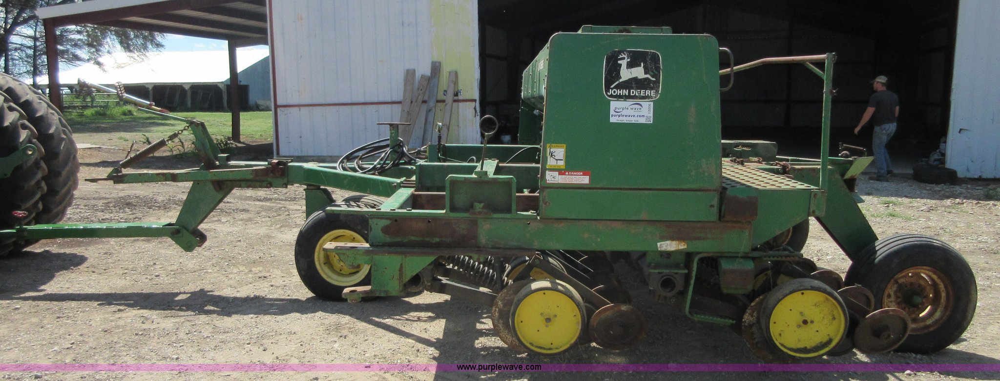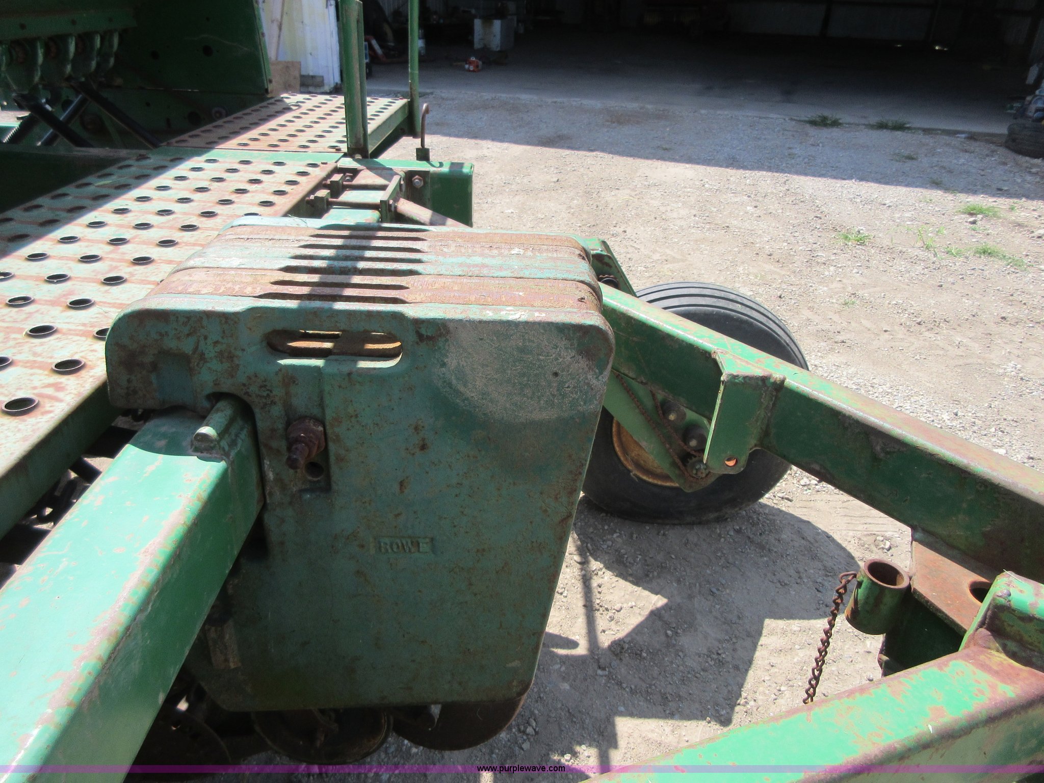 Purple Wave is selling a used Grain Drill or Seeder in Kansas. This item is a John Deere 750 grain drill with the following: 24 row units, 7.5" spacing, Bulk fill, Ground meter drive, Heavy duty spring down pressure, Single disk openers, Single press wheels, Cast closing system, Pin hitch, (4) 11L-15 transport tires, Serial N00750X007673