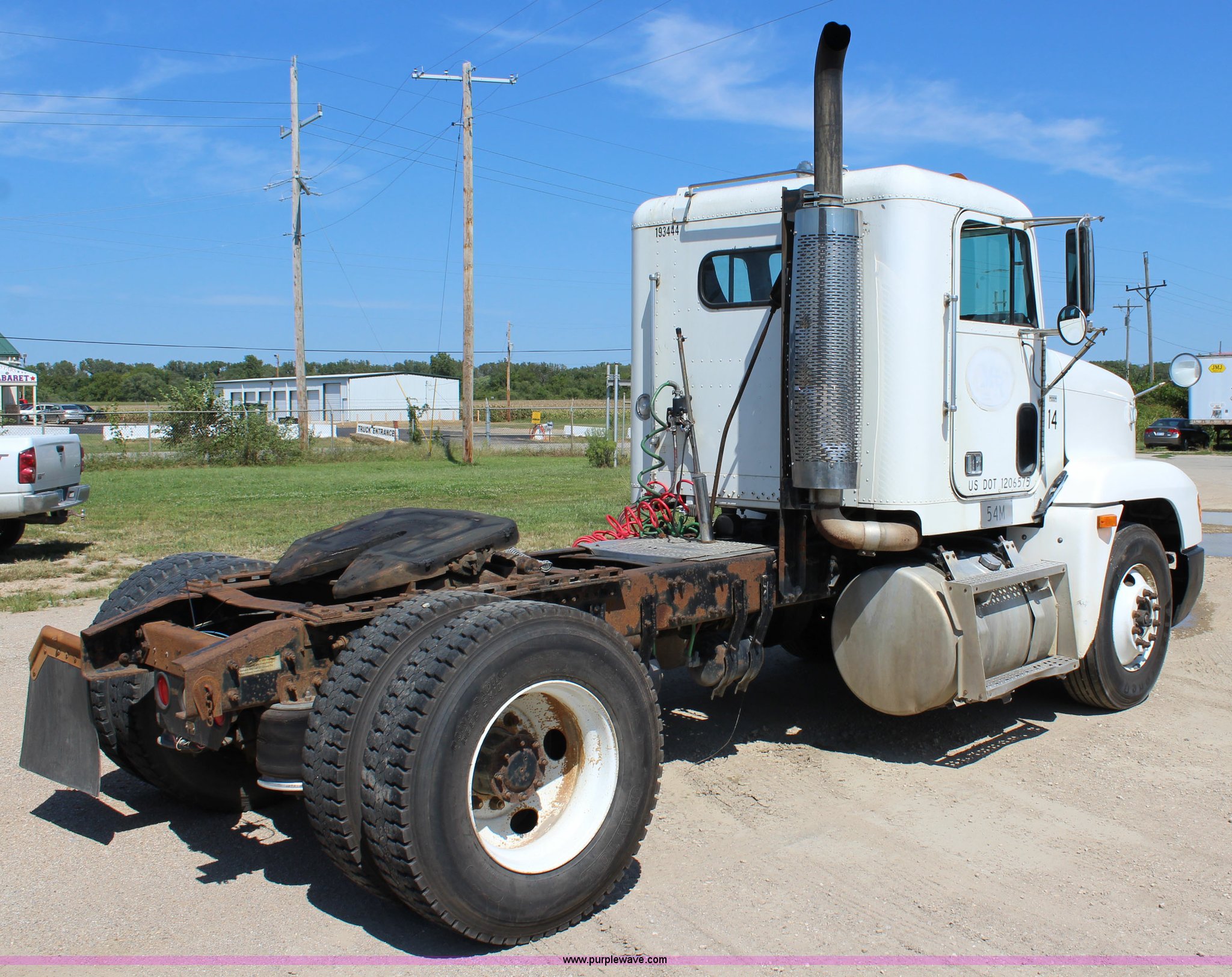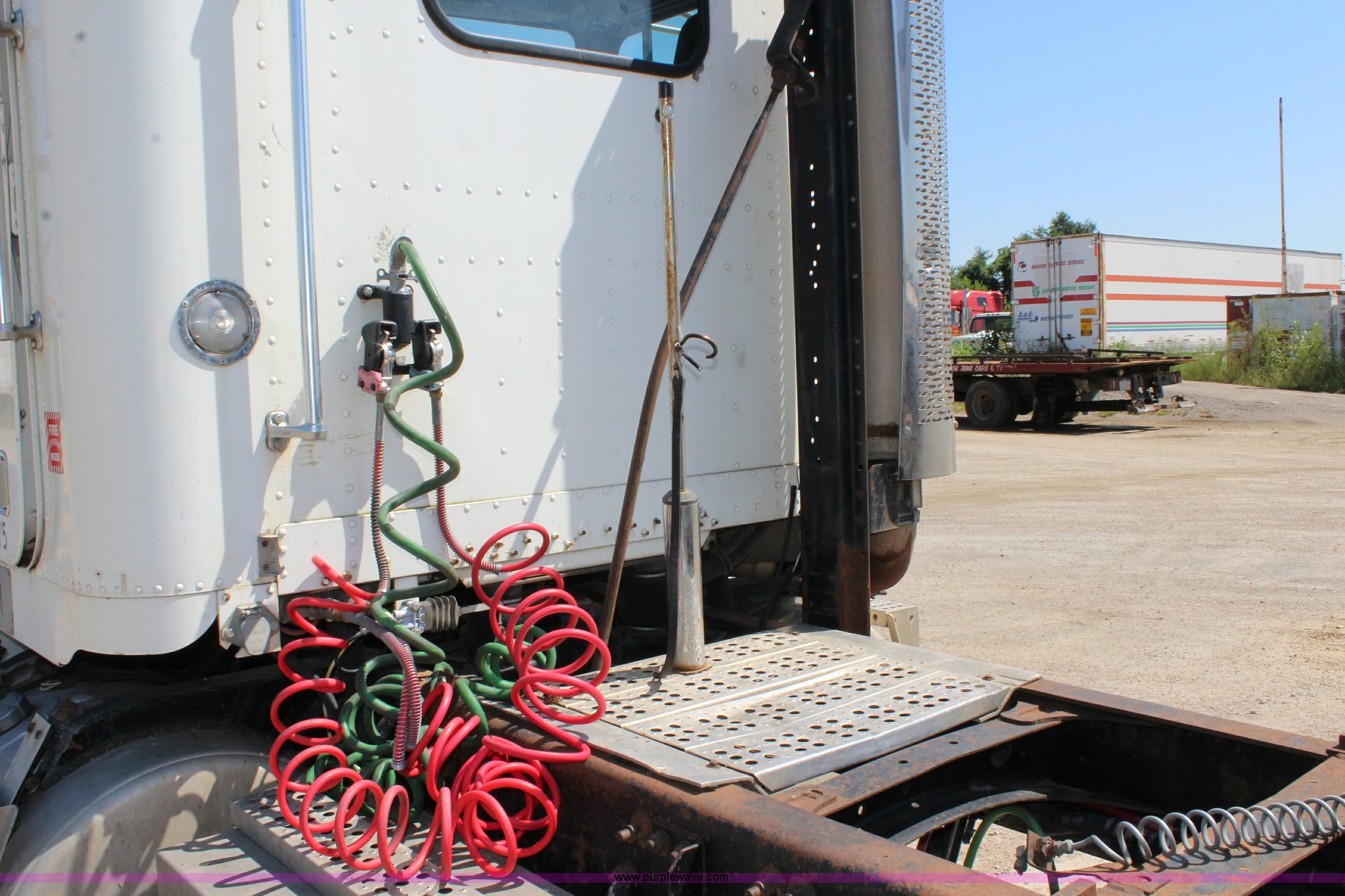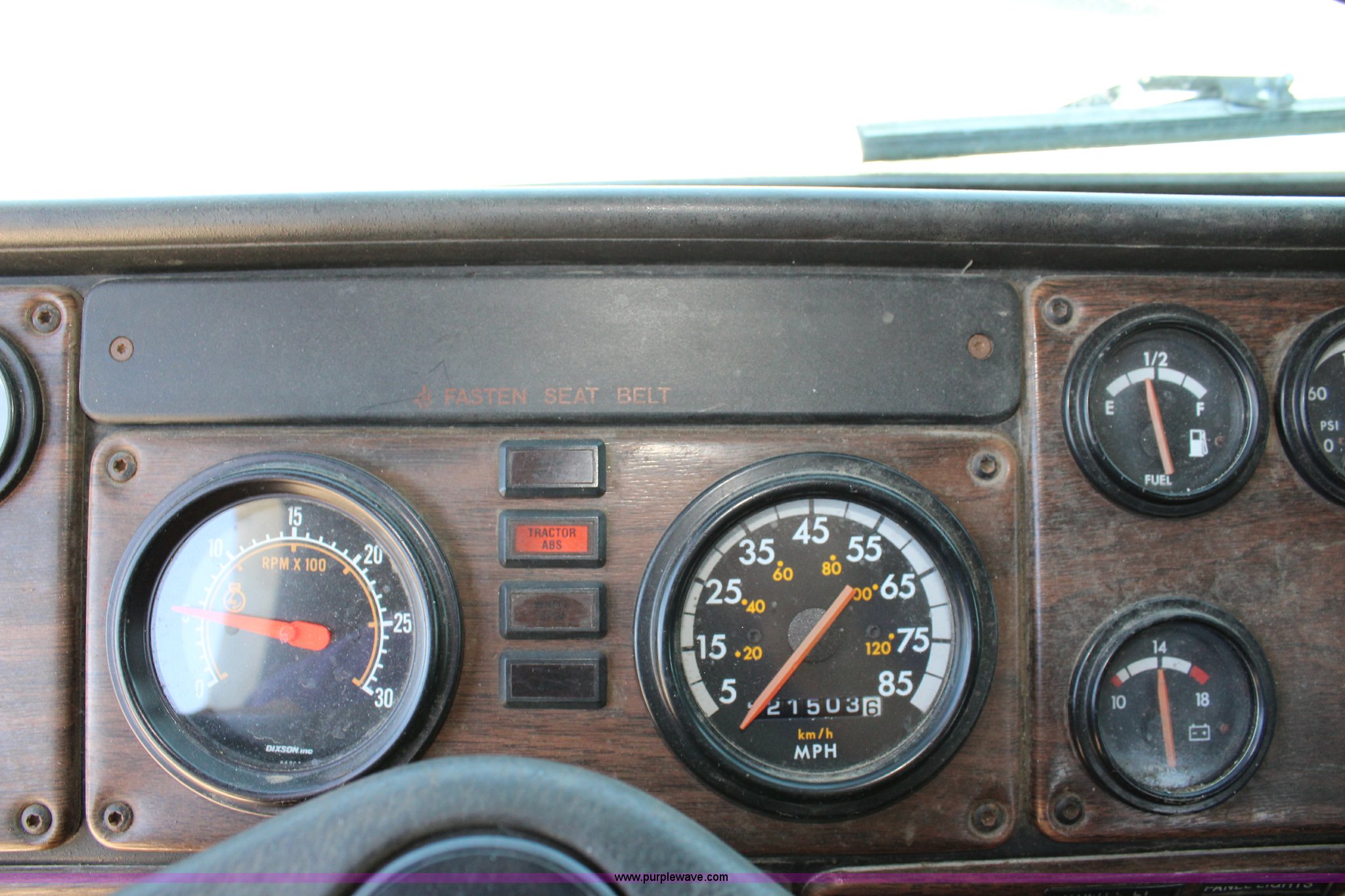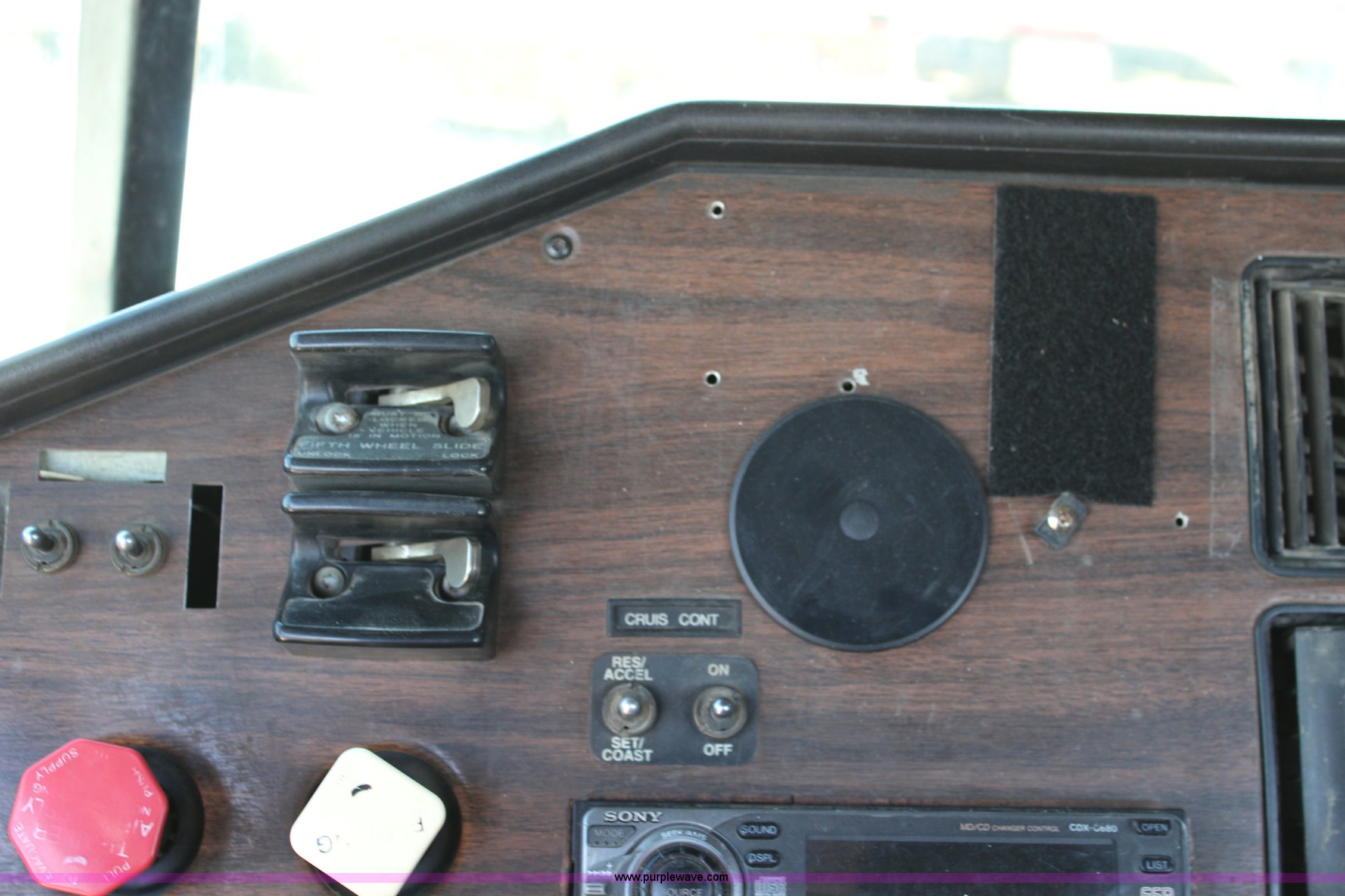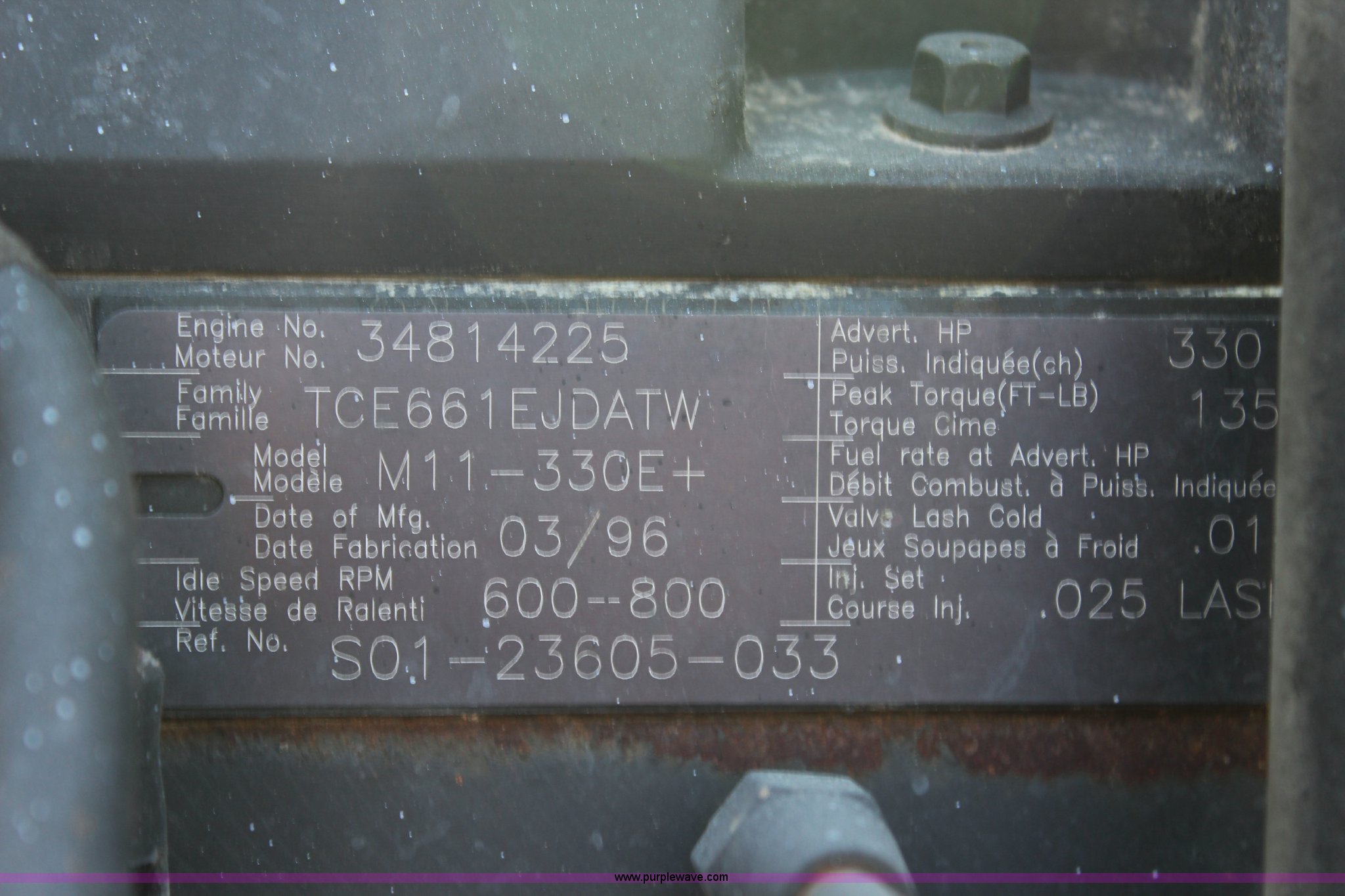 Purple Wave is selling a used Truck Tractor in Kansas. This item is a 1996 Freightliner FLD semi truck with the following: 521,503 miles on odometer, Cummins M11 10.8L L6 turbo diesel engine, 330 HP, Eaton Fuller nine speed manual transmission, Single axle, AC and heat, Non-operational AC, AM/FM, Heated mirrors, Air suspension seat, Air ride cab, Single exhaust stack, Dual fuel tanks, Aluminum sliding fifth wheel plate, Air suspension, Air brakes, 11R22.5 tires, GVWR 32,000 lbs, FAWR 12,000 lbs, RAWR 20,000 lbs, Recently replaced batteries, Cracked mirror