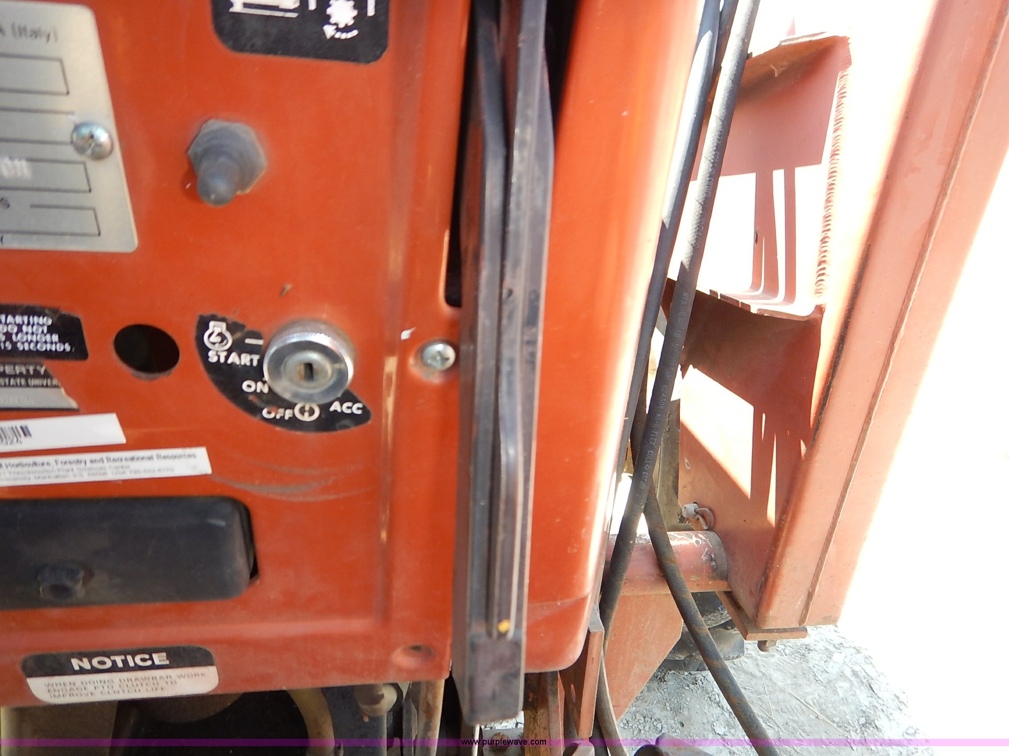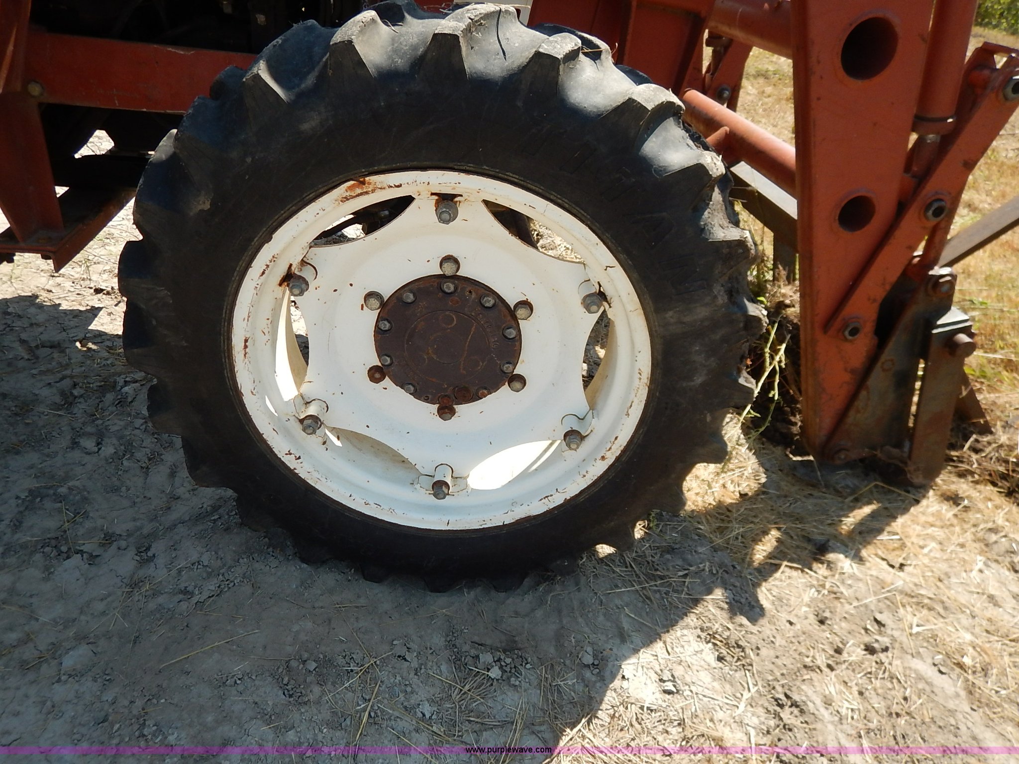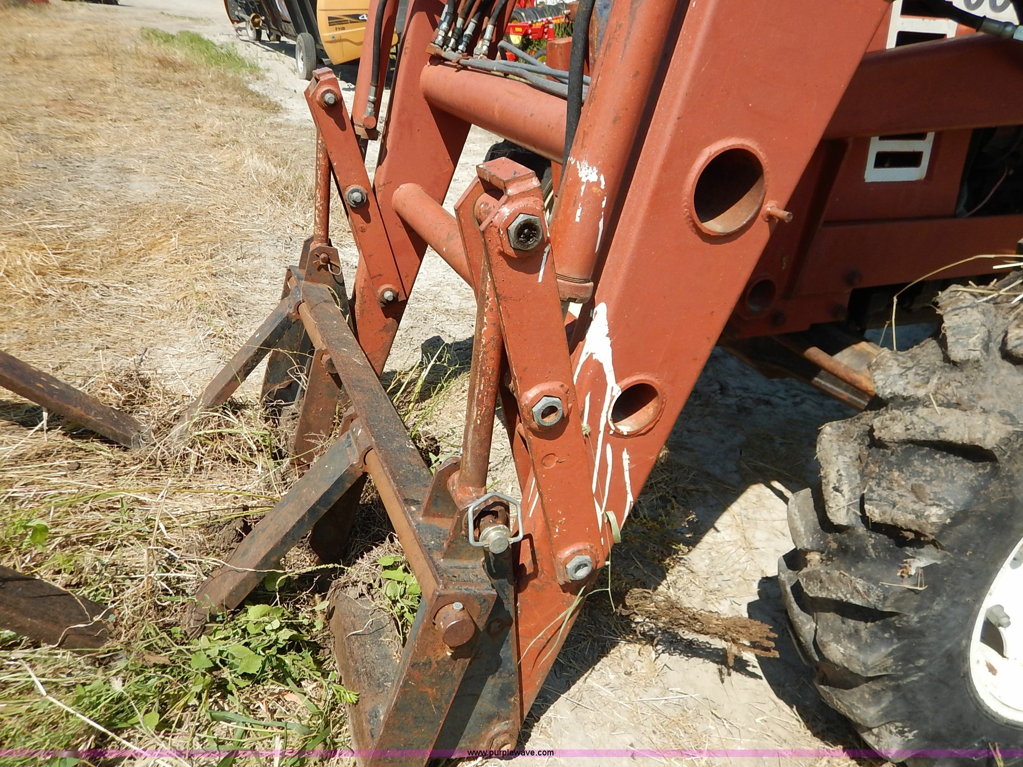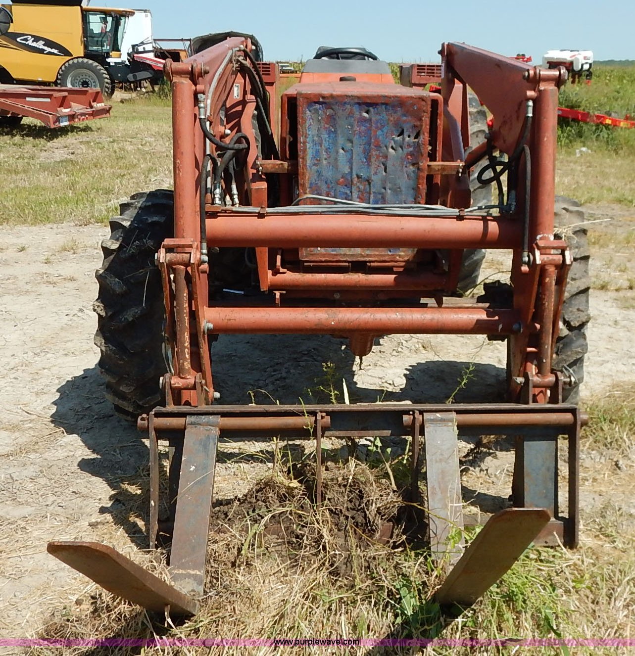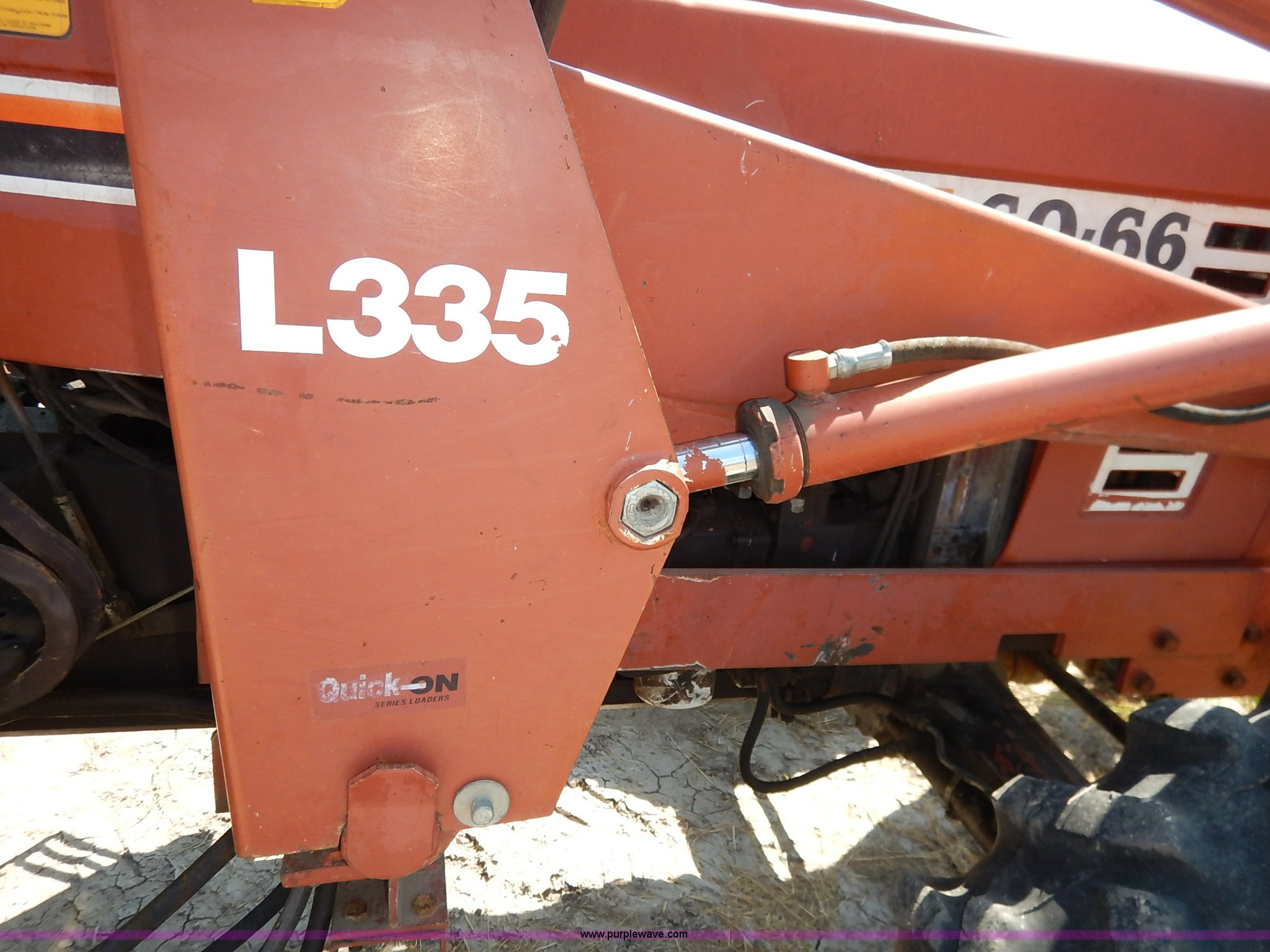 Purple Wave is selling a used Tractor in Kansas. This item is a Fiat Hesston DT60-66 MFWD tractor with the following: 4,243 hours on meter, Fiat 8035.05 2.9L three cylinder diesel engine, 60 HP, Hydrostatic transmission, 12F-4R gears, Hesston L335 loader, 5'W bucket, Weld-on cutting edge, Two-lever controls, 42" x 4" x 1.5" forks, Three point, 540 PTO, Draw bar, ISO electrical outlet, (2) rear hydraulic remotes, Wheel weights, 58" wheelbase, Titan 9.5-24 front tires, 16.9-28 rear tires, Water in fuel, Fuel injector pump needs replaced, Serial DT60-66T/12