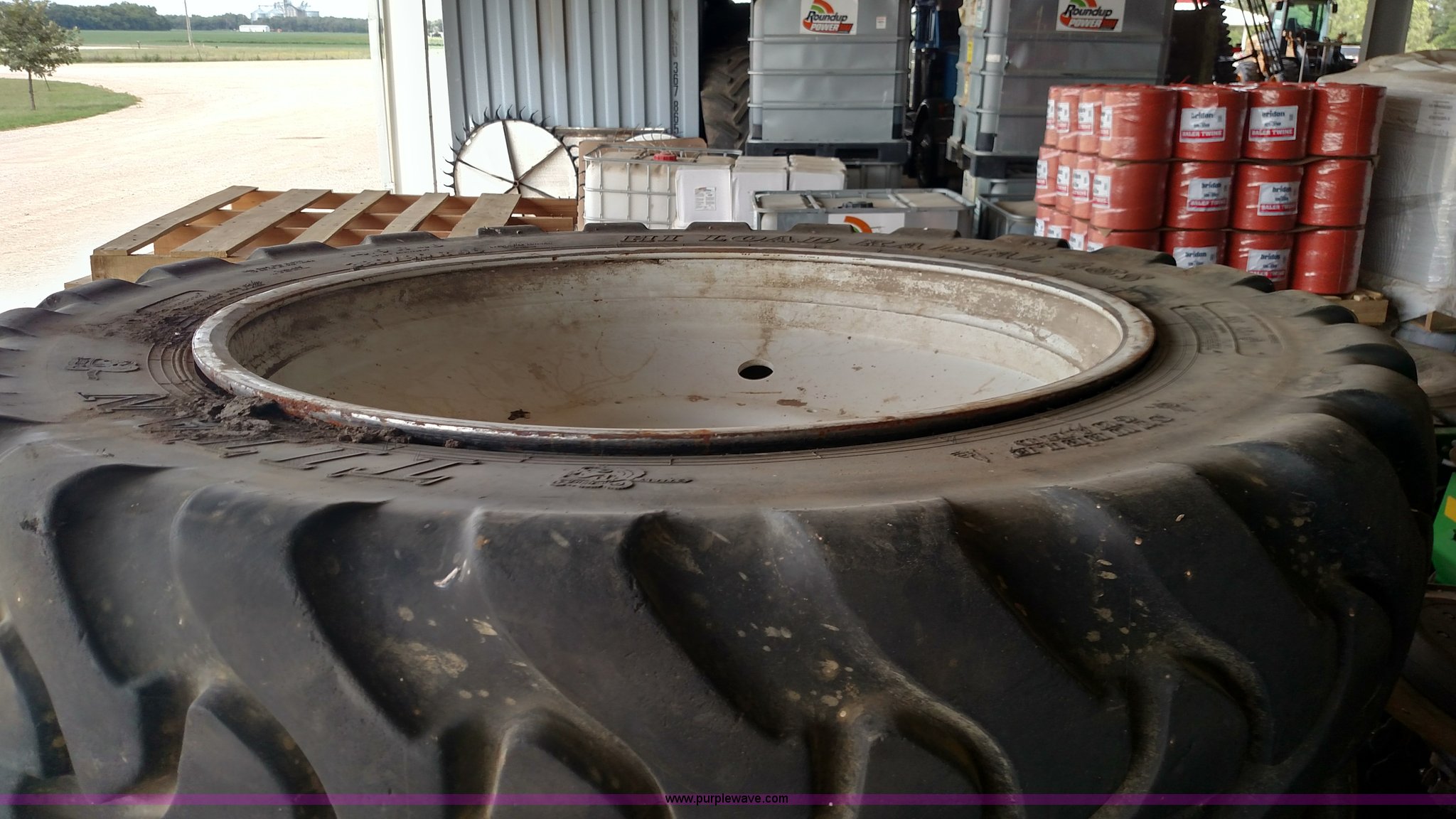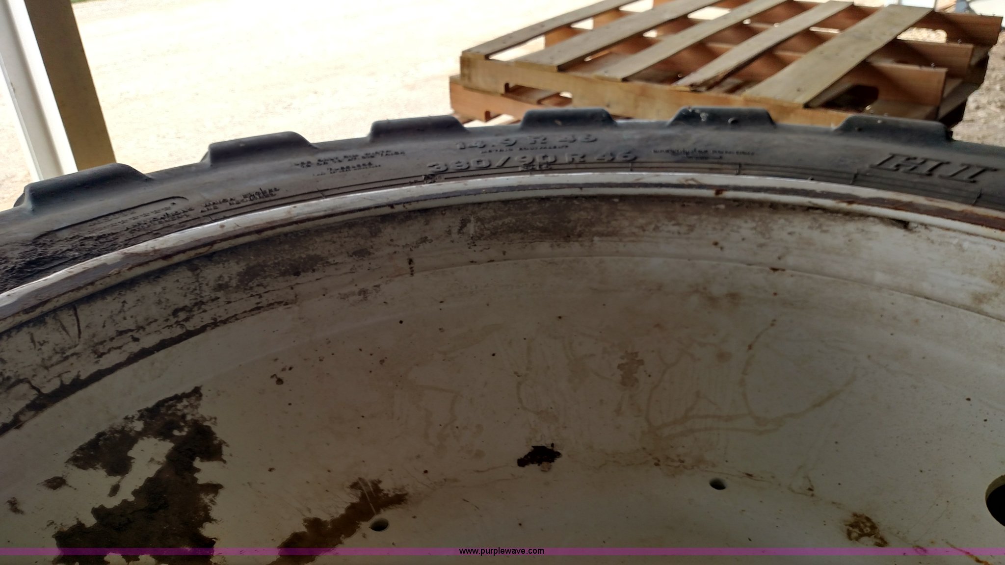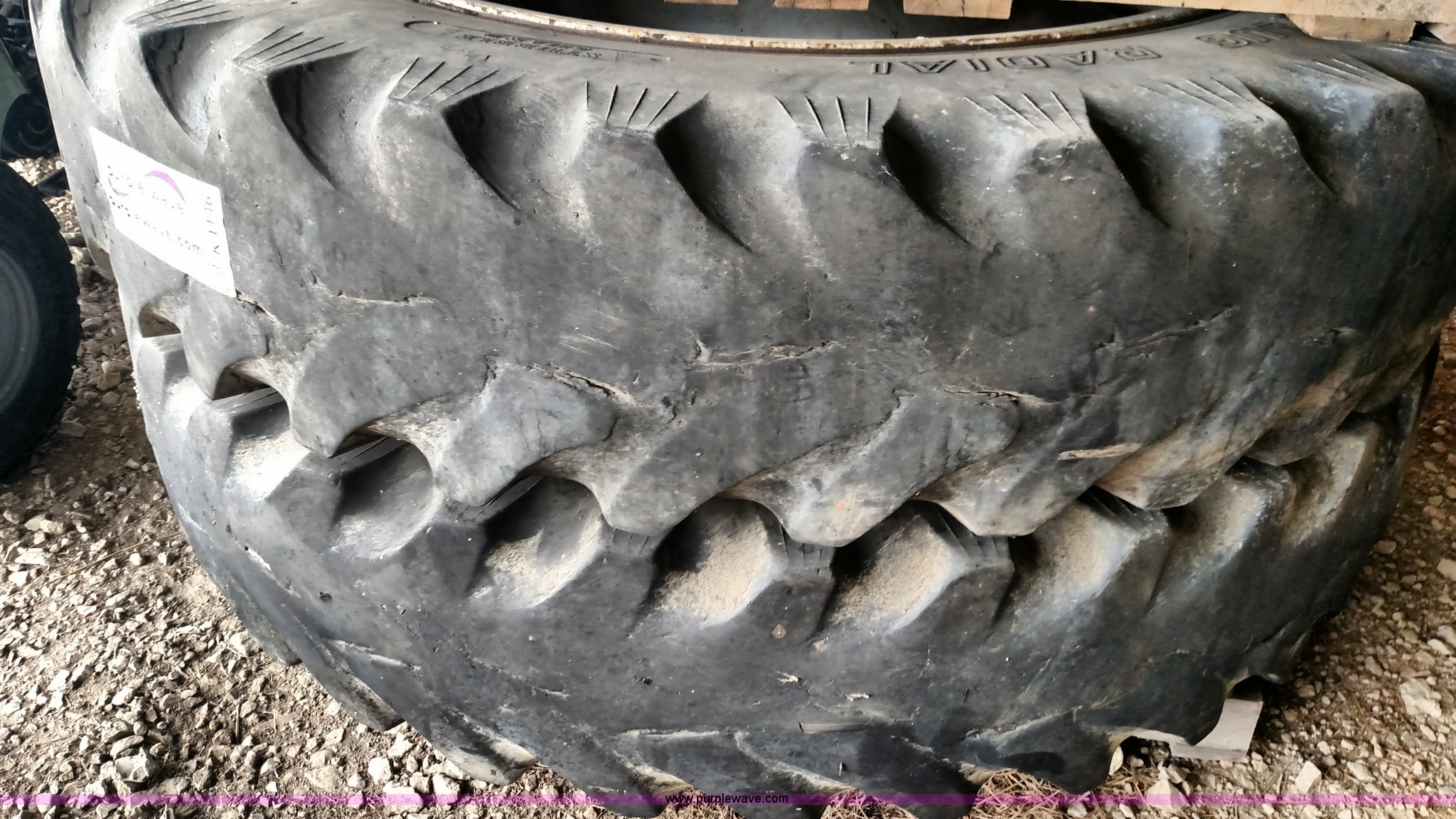 Purple Wave is selling a used Industrial Tires or Tracks in Kansas. This item is a (4) sprayer tires and wheels with the following: 380/90R46/14.9R46, Removed from item K1144 Ag-Chem RoGator 1254C sprayer