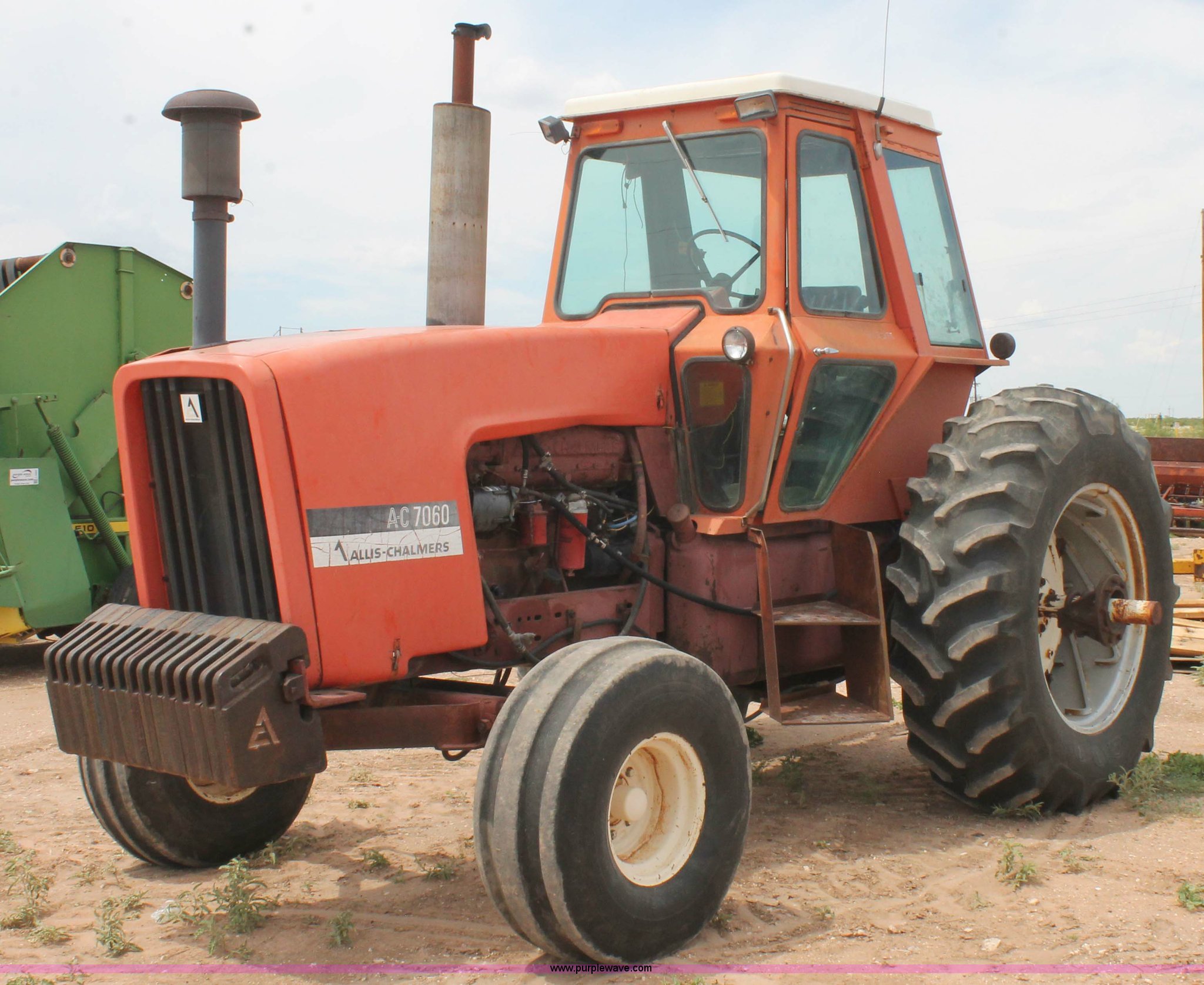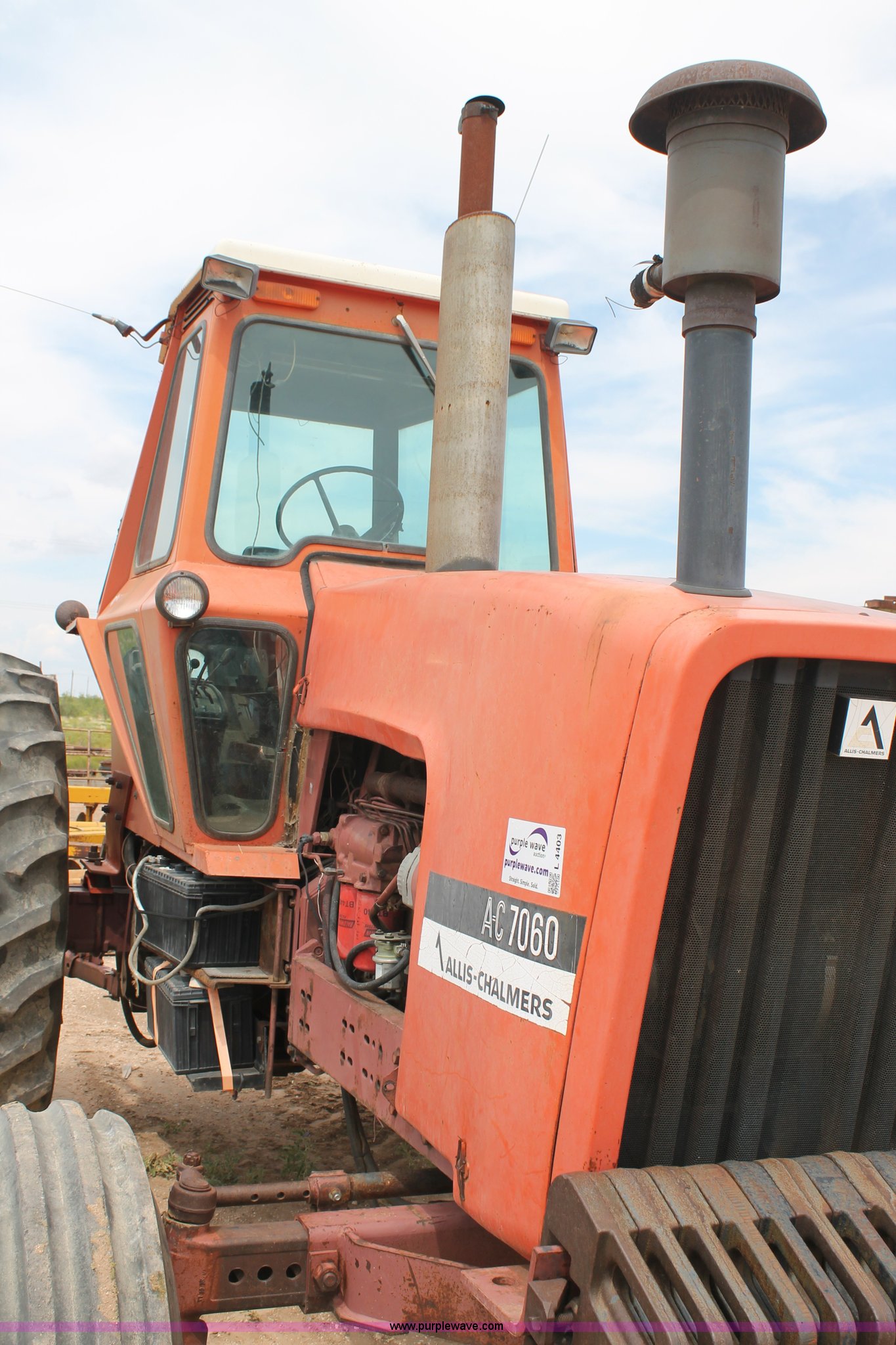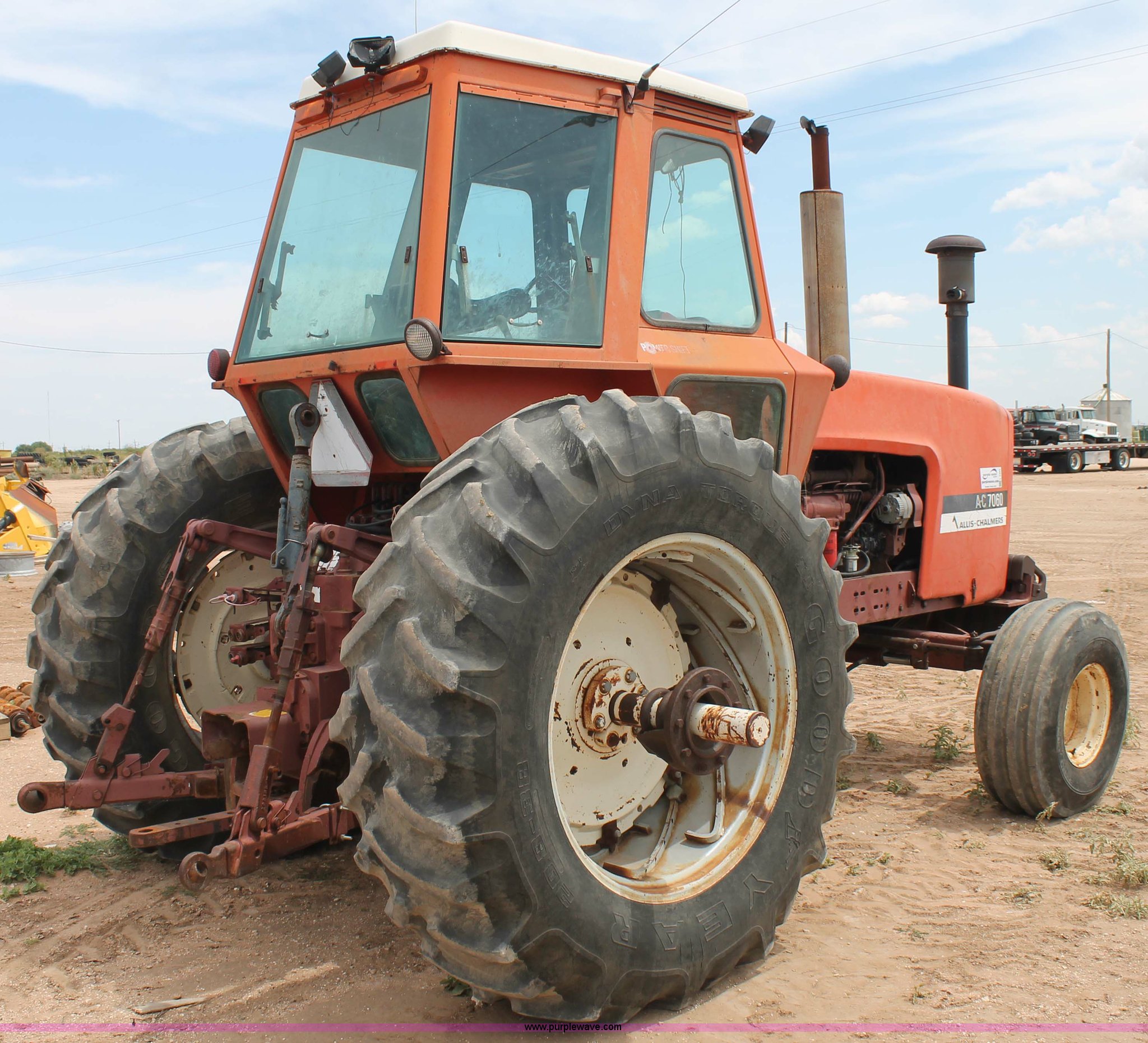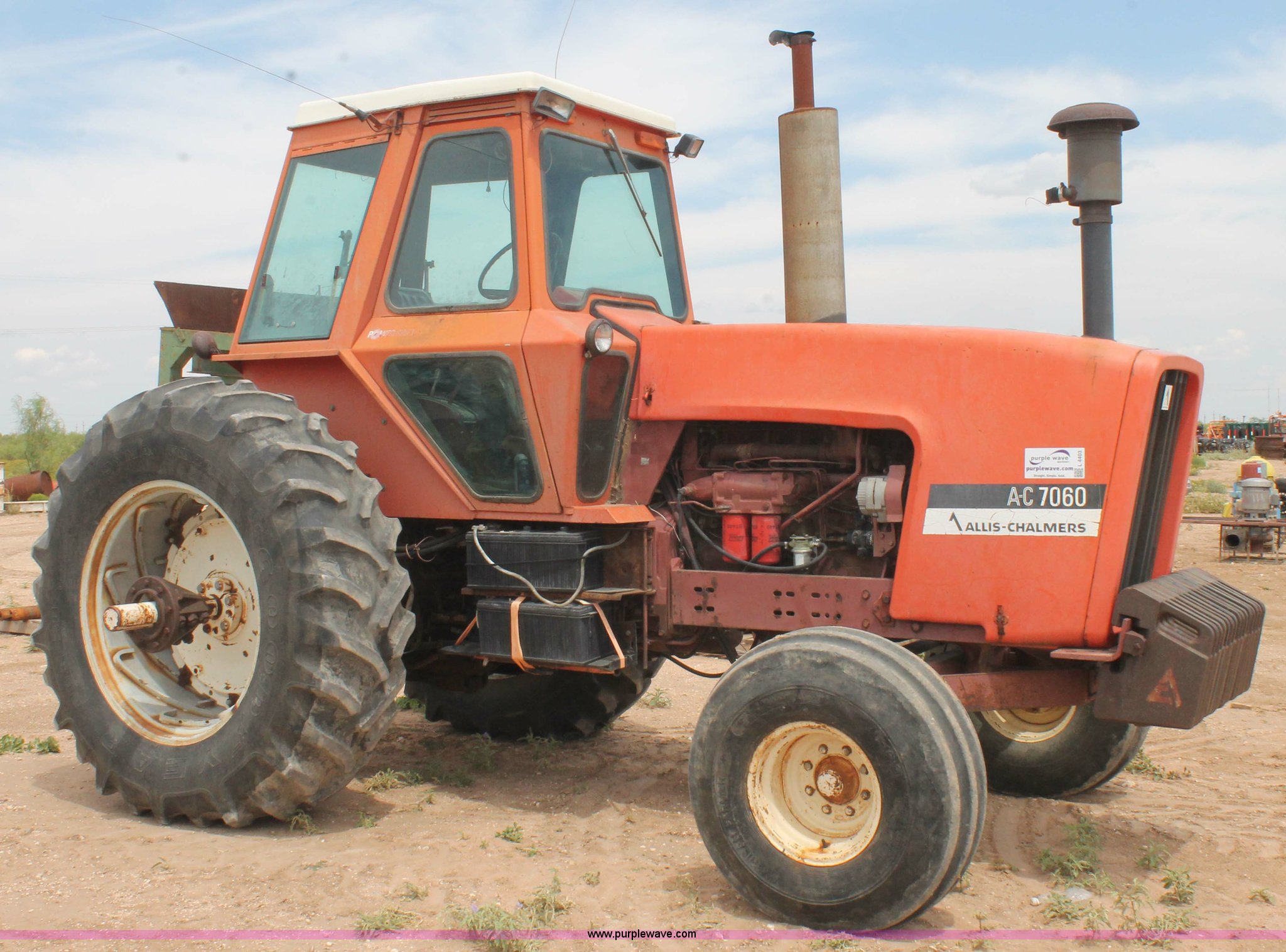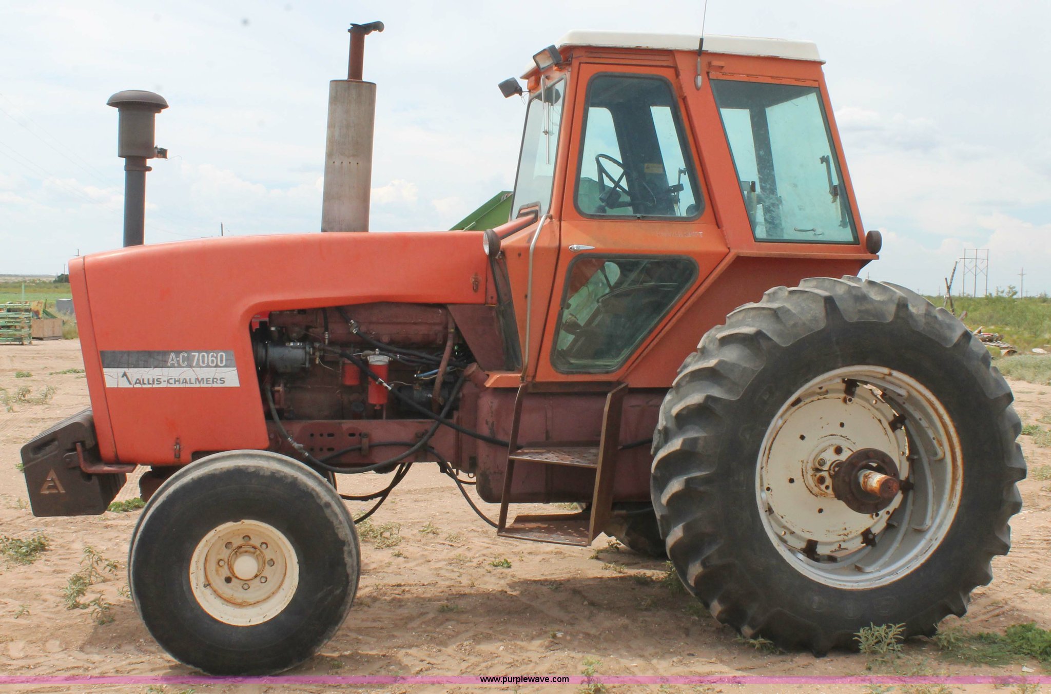 Purple Wave is selling a used Tractor in Texas. This item is a Allis Chalmers 7060 tractor with the following: 7,265 hours on meter, Allis Chalmers 7.0L six cylinder turbo diesel engine, 192 HP, Powershift transmission, 6F-2R gears, EROPS, Serial R614, AC, Belt has been removed from AC compressor, AM/FM, Suspension seat, Three point, Top link, 540 PTO, (3) rear hydraulic remote sets, (15) suitcase weights, 14L-16.1 front tires, 20.8-38 rear tires