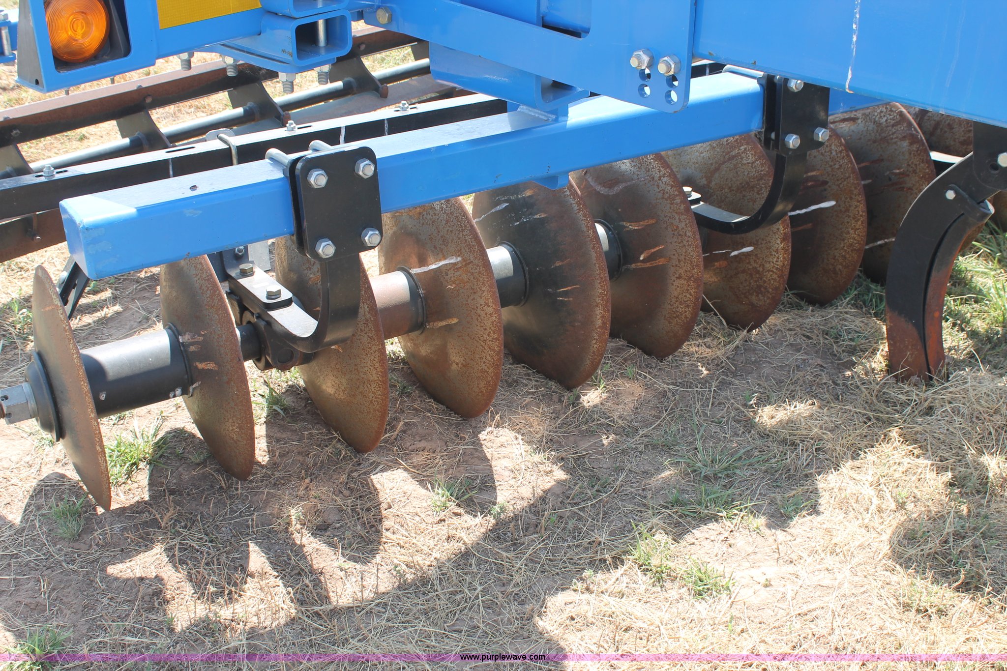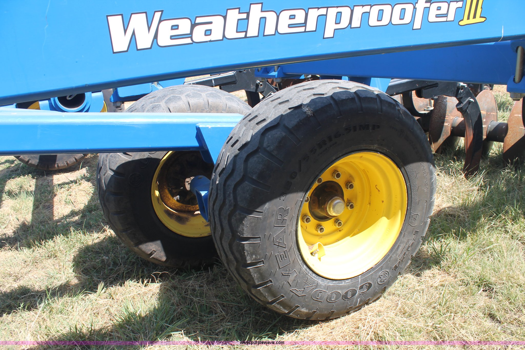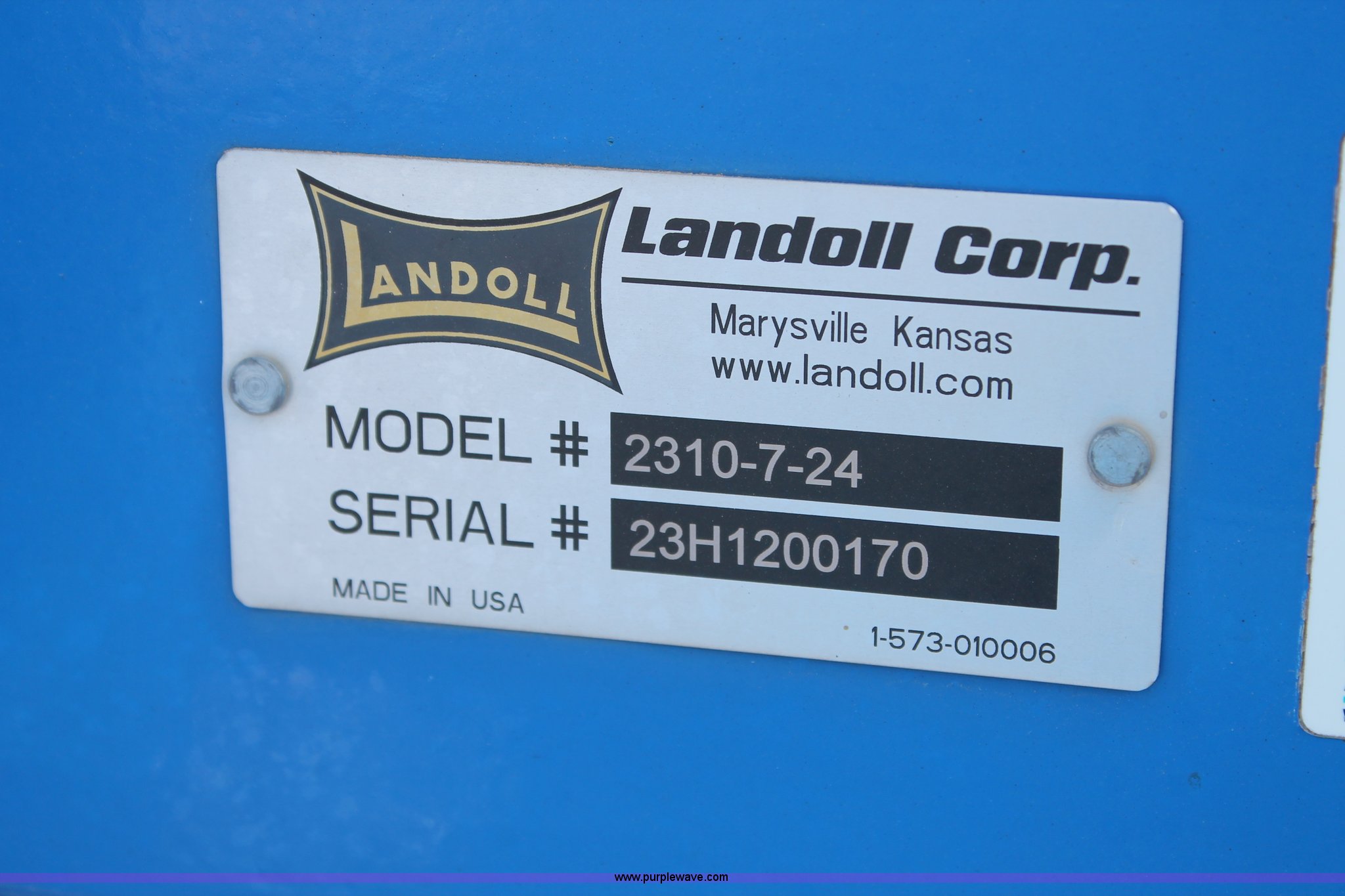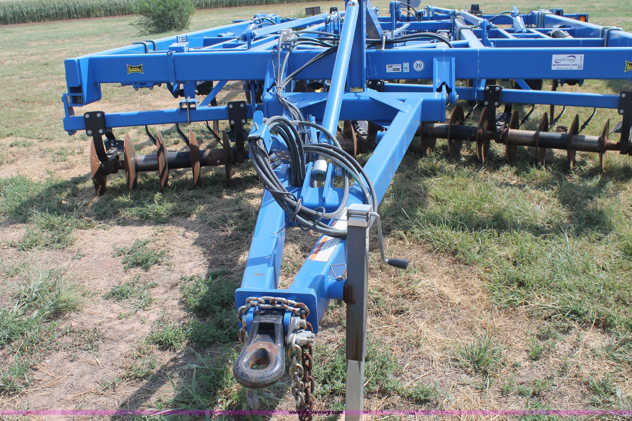 Purple Wave is selling a used Ripper in Texas. This item is a Landoll Weatherproofer III 2310 disk ripper with the following: Model 2310-7-24, 20' work width, Seven ripper, 24" spacing, Self-leveling hitch, Single point depth control, Front and rear 15 degree gang angle, Heavy scrapers, 1 3/4" gang bolt, C-cushion bearing mounts, 20.5" front gang disks, 22" rear gang disks, Adjustment/maintenance wrenches, Chopper reel attachment with spring loaded frame, Heavy spring loaded staggered rippers, Hydraulic raise and lower, 380/55R16.5 tires, Serial 23H1200170