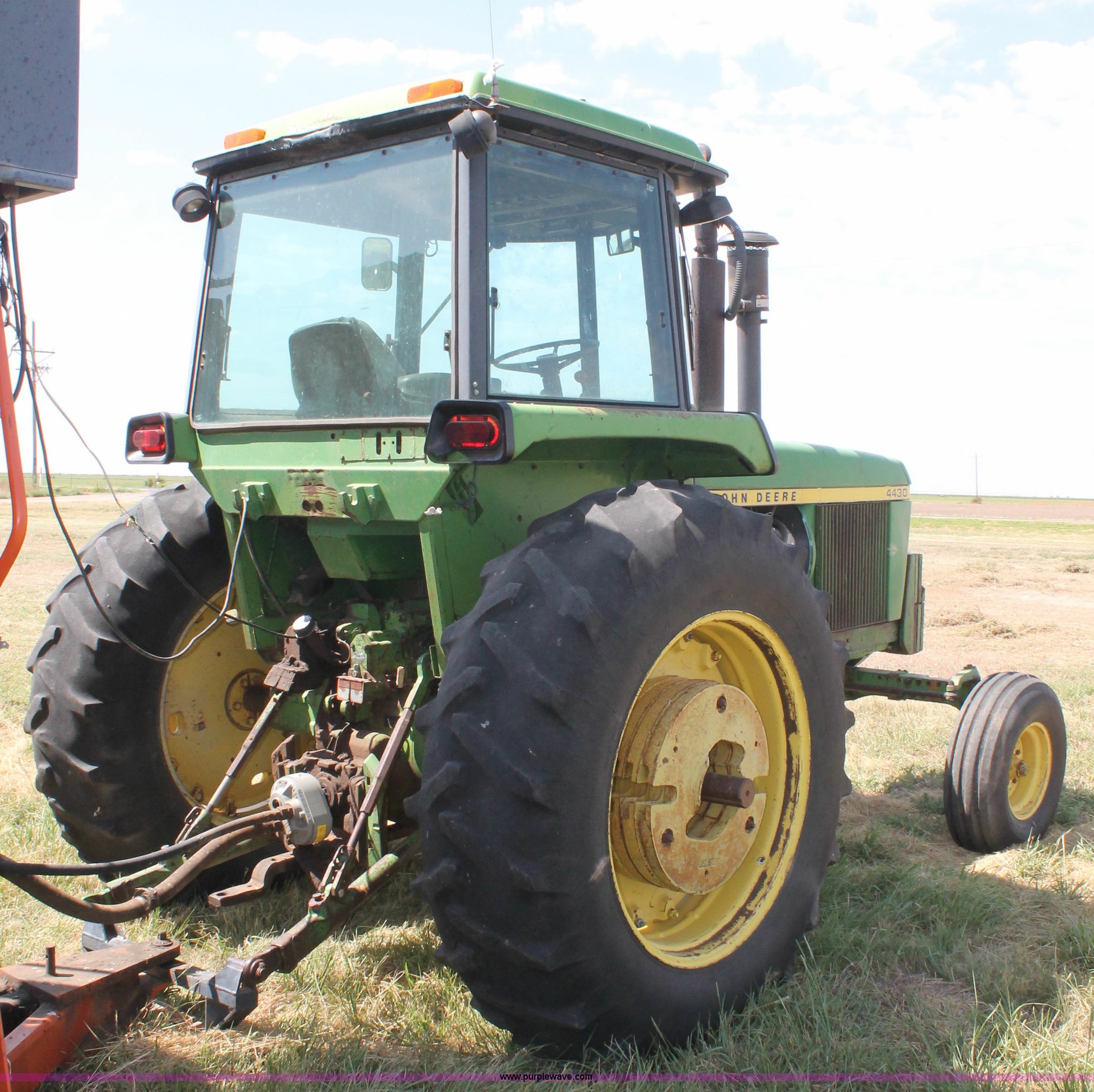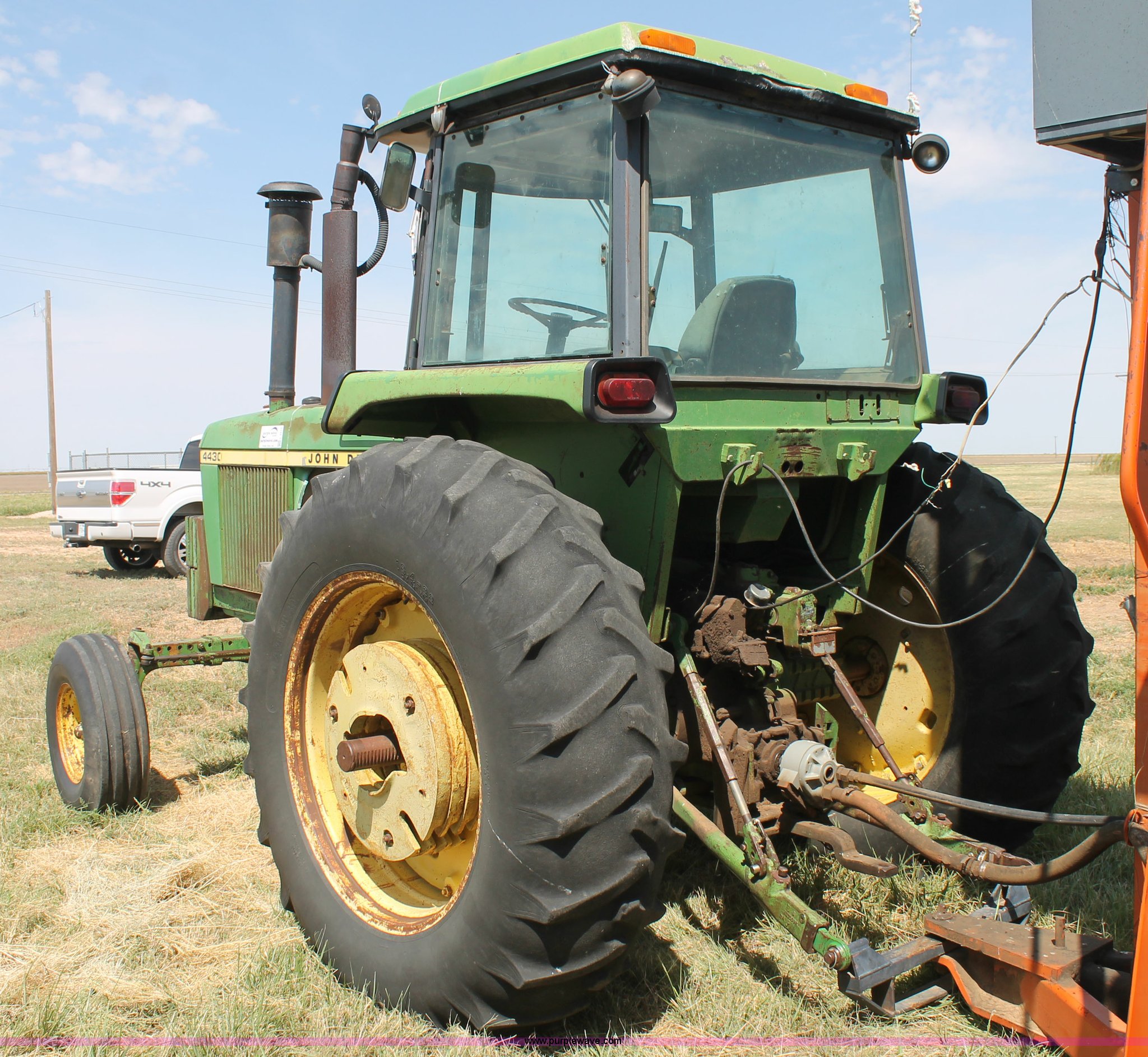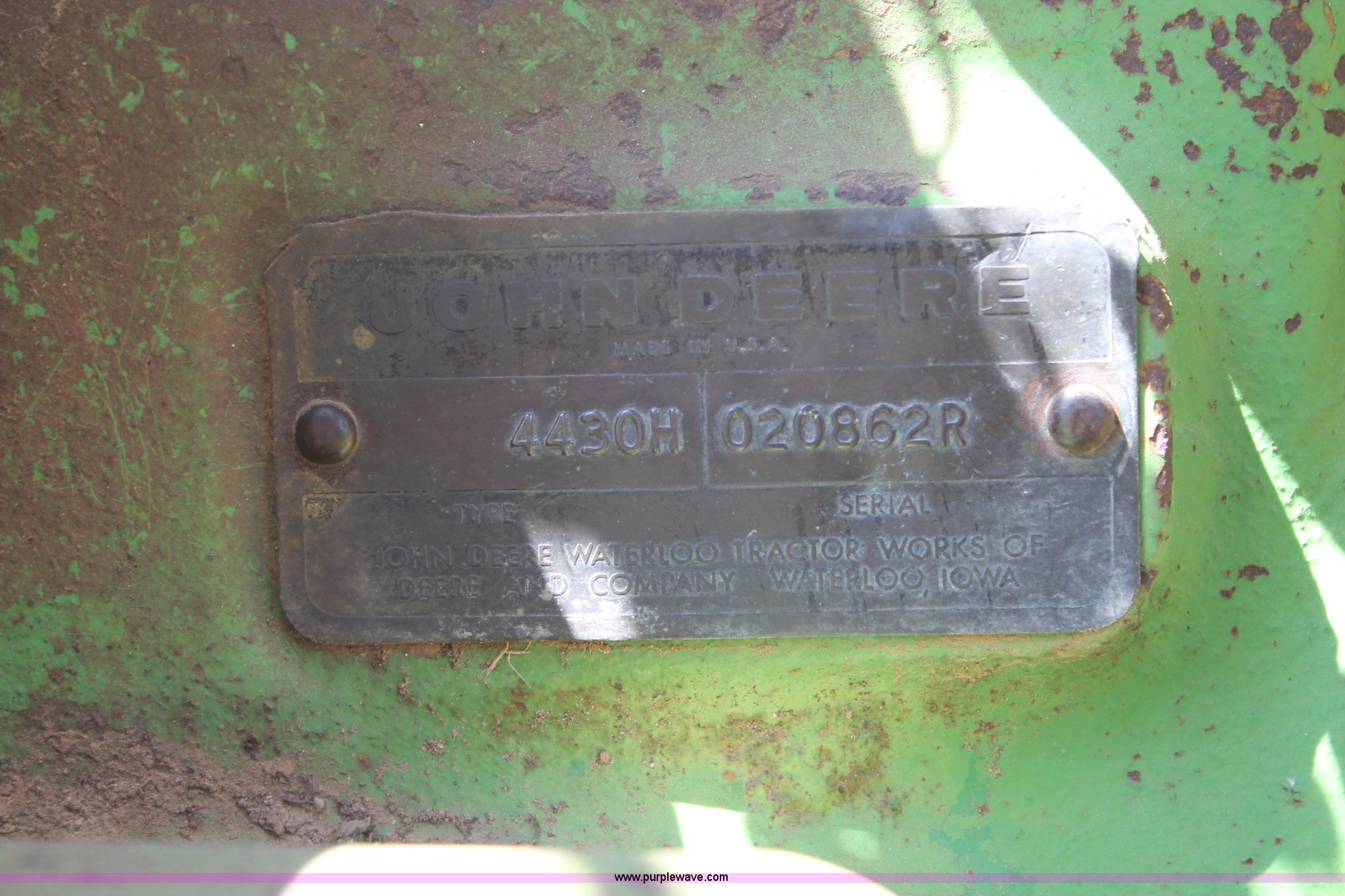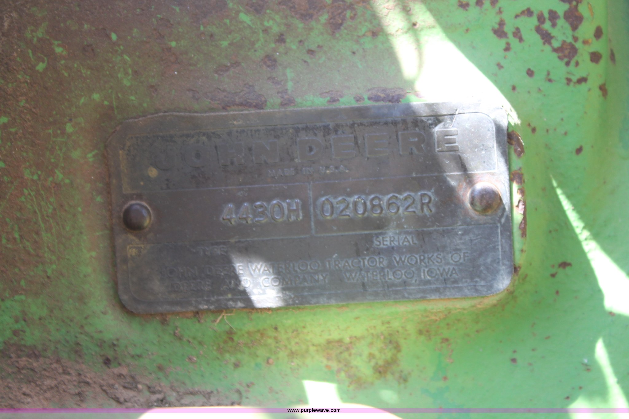 Purple Wave is selling a used Tractor in Texas. This item is a 1974 John Deere 4430 tractor with the following: 6,672 hours on meter, John Deere 6.6L six cylinder turbo diesel engine, 125 HP, Synchro transmission, 8F-2R gears, AC and heat, AM/FM, Suspension seat, Three point, 540/1000 PTO, (2) rear hydraulic remote sets, (6) front weights, (8) wheel weights, 18.4-38 front tires, 10.00-26 rear tires, Serial 020862R