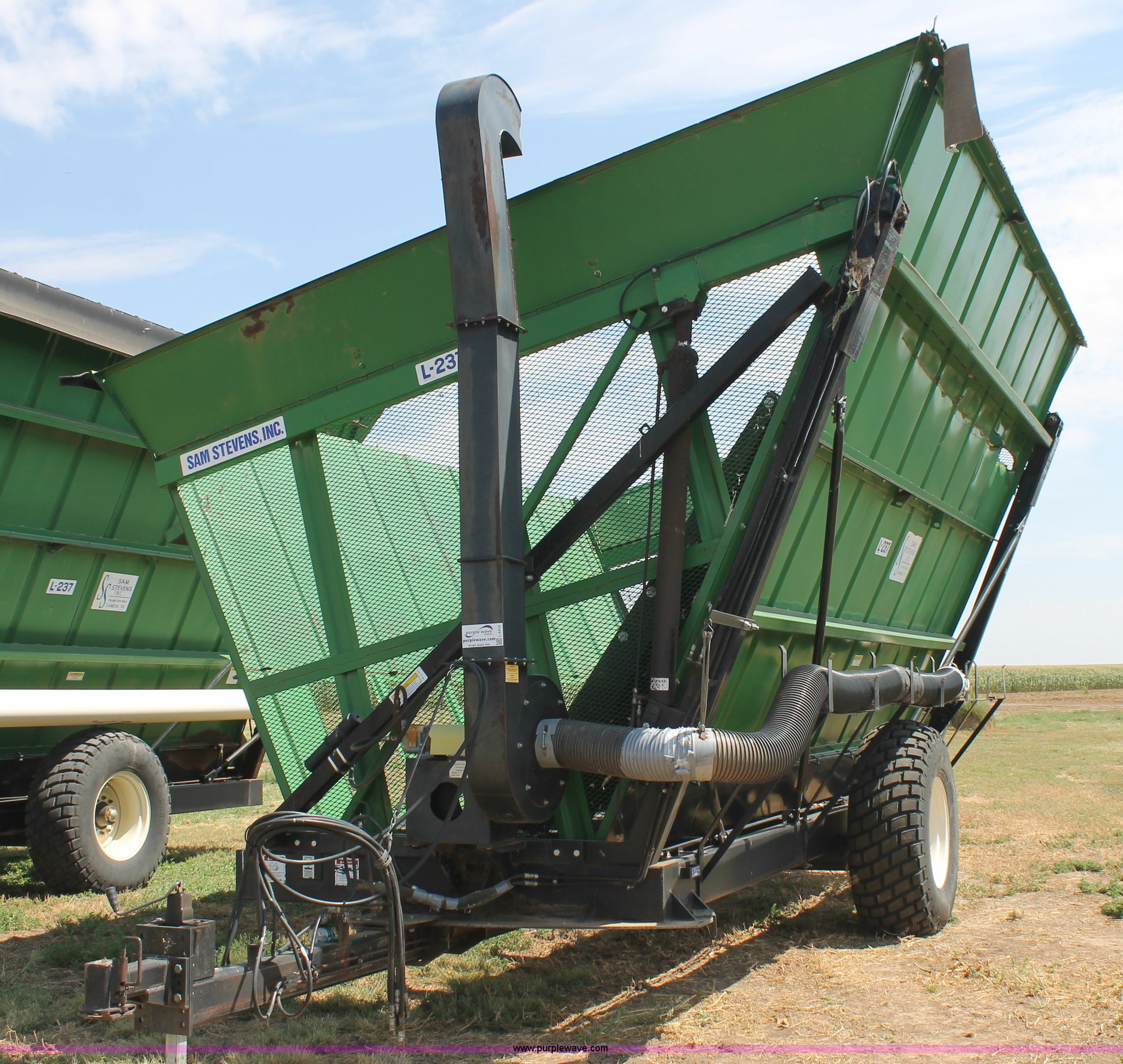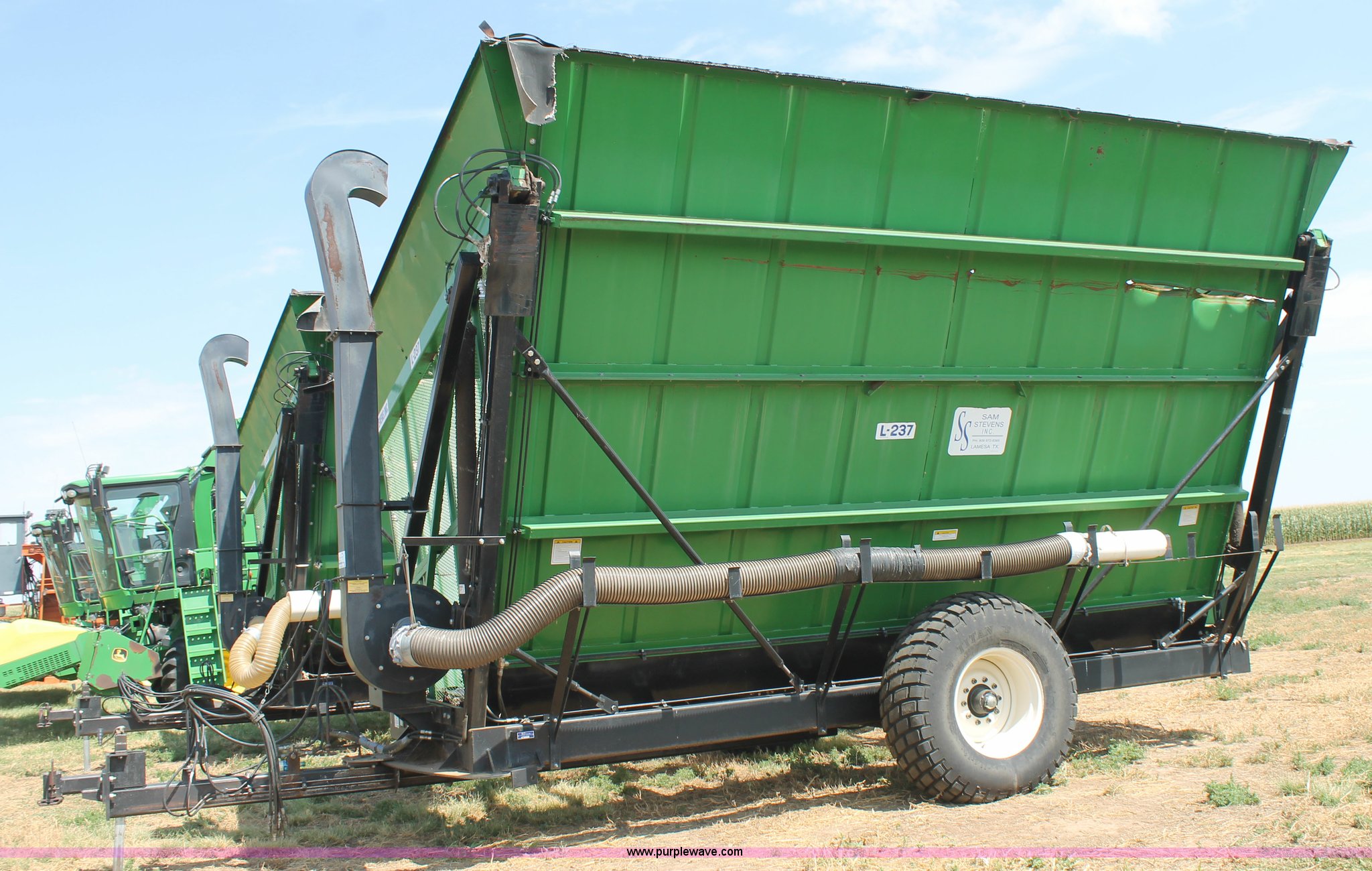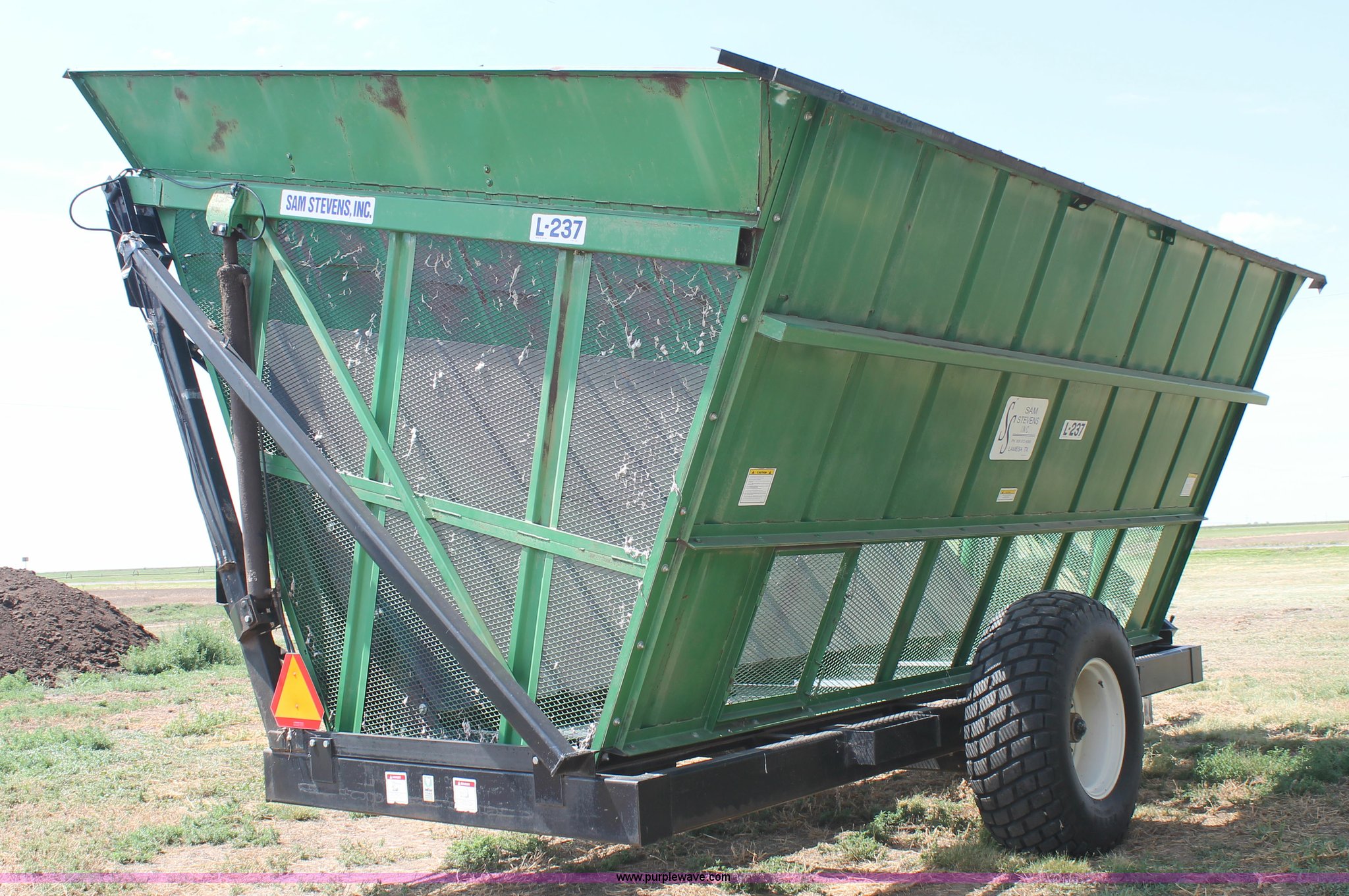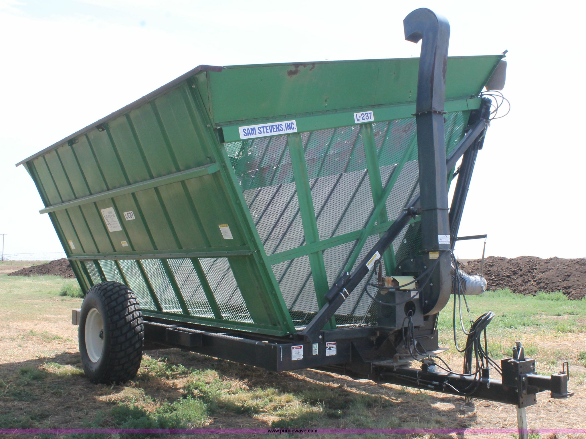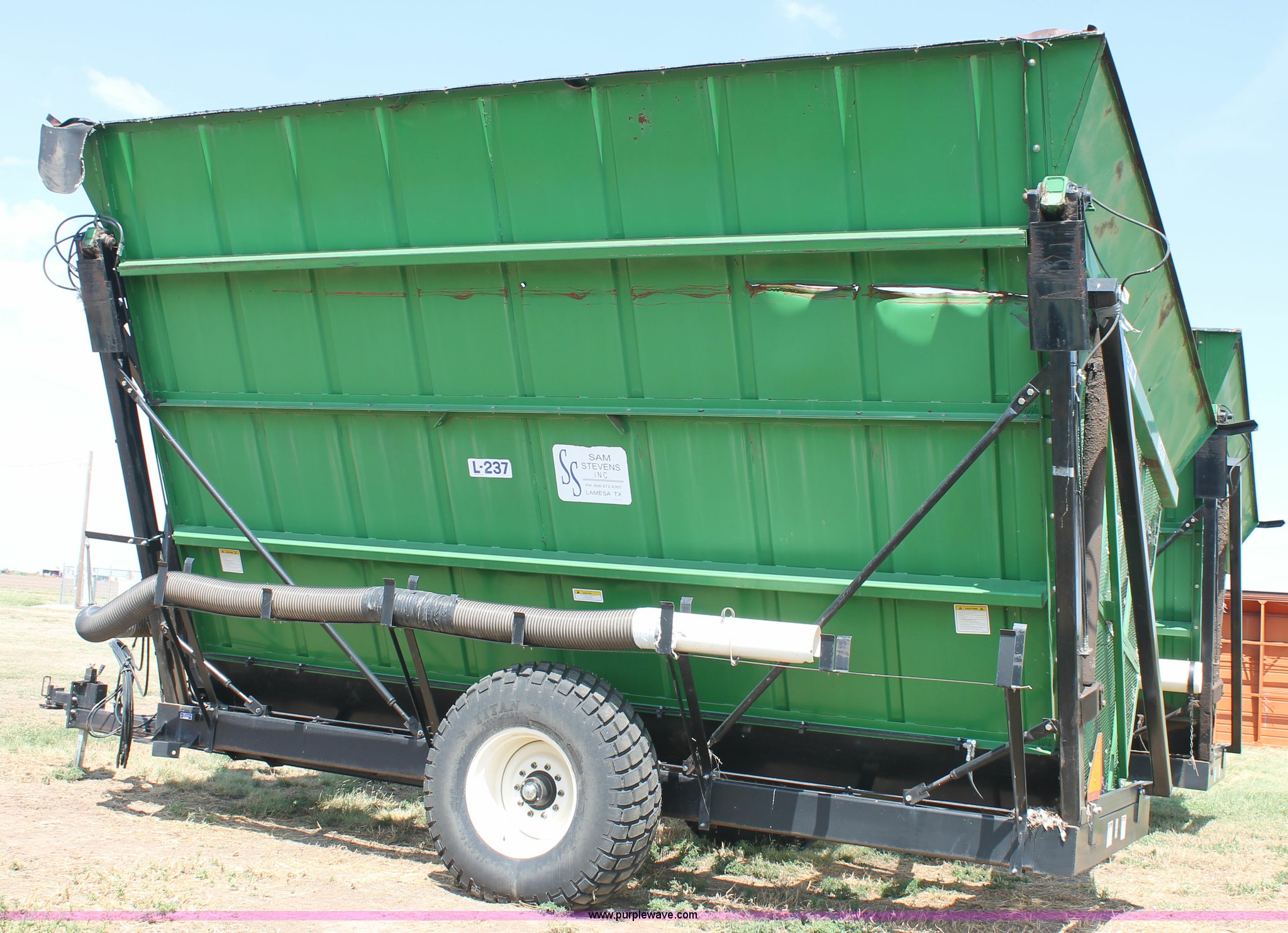 Purple Wave is selling a used Cotton Harvester Equip. in Texas. This item is a Sam-stevens L-237 boll buggy with the following: Hydraulic pac and dump, Vac clean-up system, Over top ball hitch, 18.4-26 tires, Sheet metal damage on dump side, Serial TOV6035