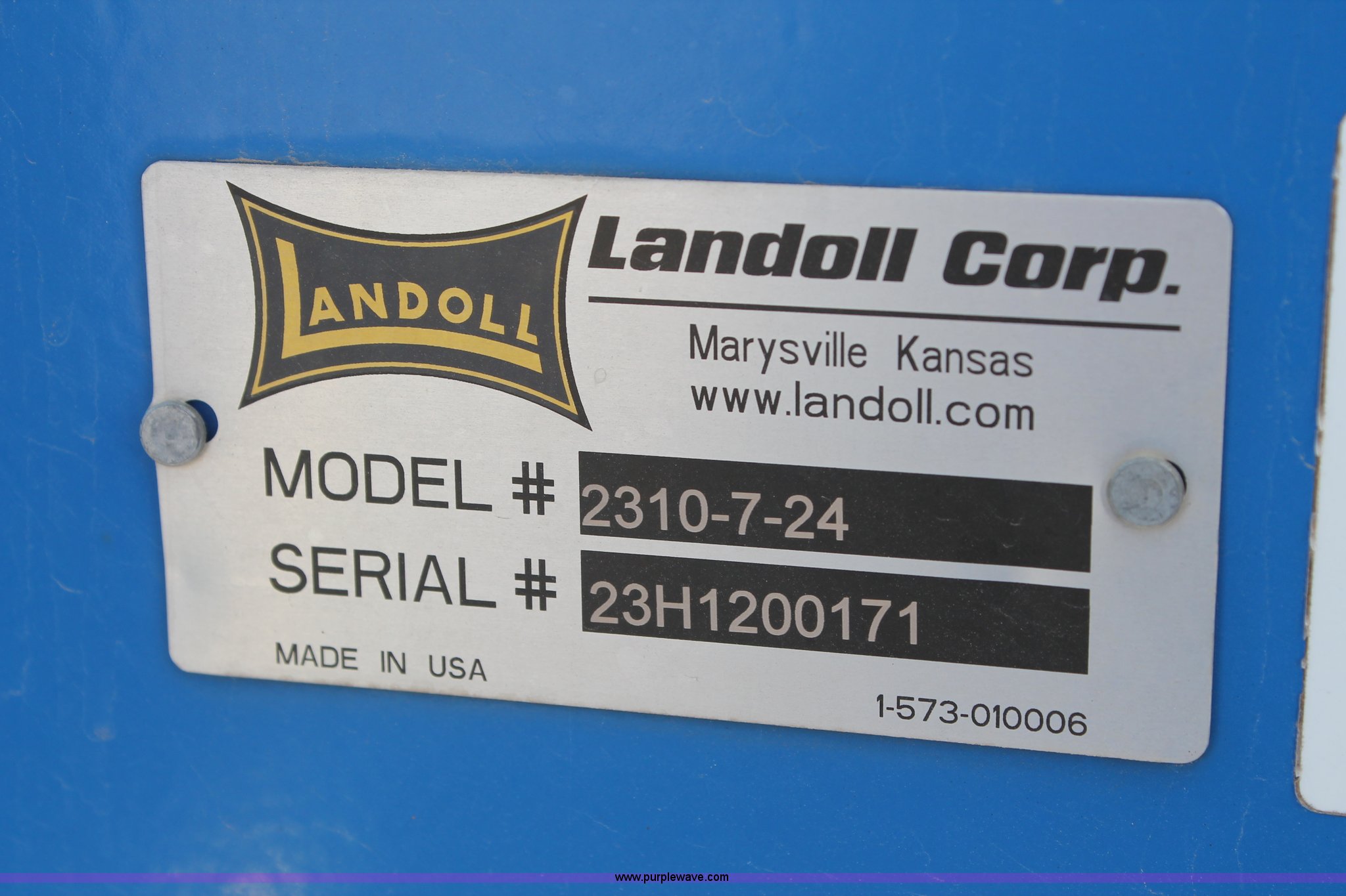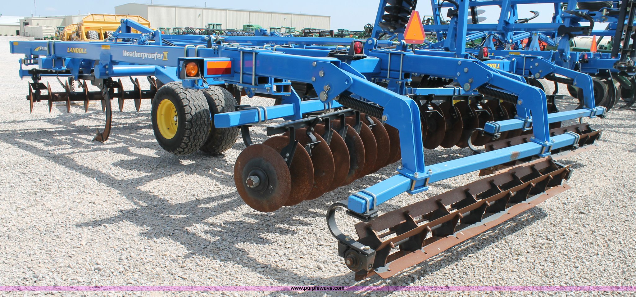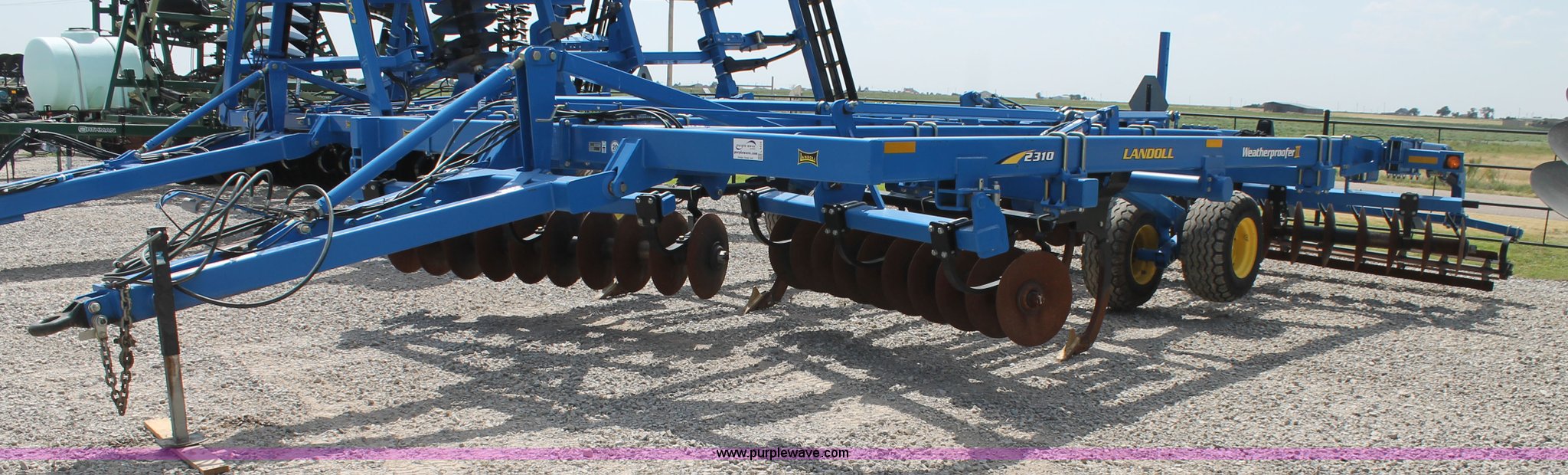 Purple Wave is selling a used Ripper in Texas. This item is a Landoll Weatherproofer III 2310 disk ripper with the following: Model 2310-7-24, 20' work width, Seven ripper, 24" spacing, Self-leveling hitch, Single point depth control, 15 degree gang angle front and rear heavy scraper, 1 3/4" gang bolt, C-Cushion bearing mounts, 20.5" front gang disks, 22" rear gang disks, Adjustment/maintenance wrenches, Chopper reel attachment with spring loaded frame, Heavy spring loaded staggered rippers, Hydraulic raise and lower, 380/55R16.5 walking tandem tires, Serial 23H1200171