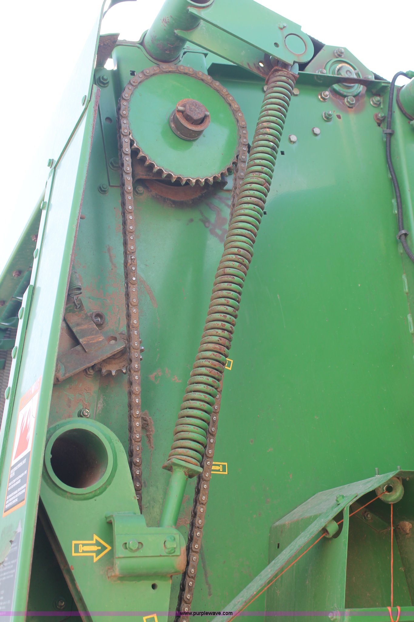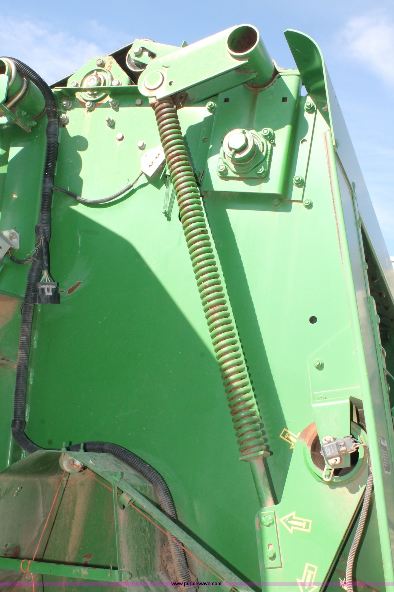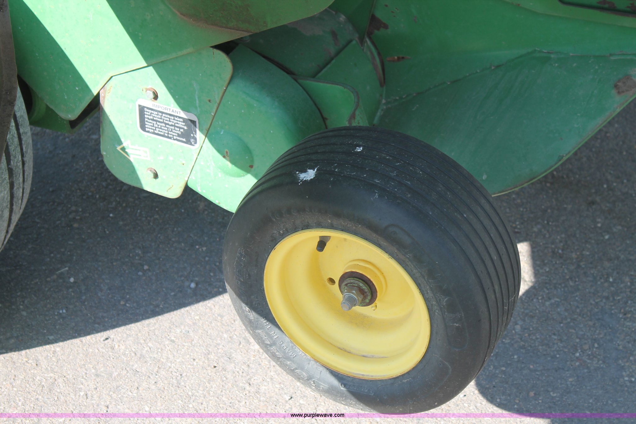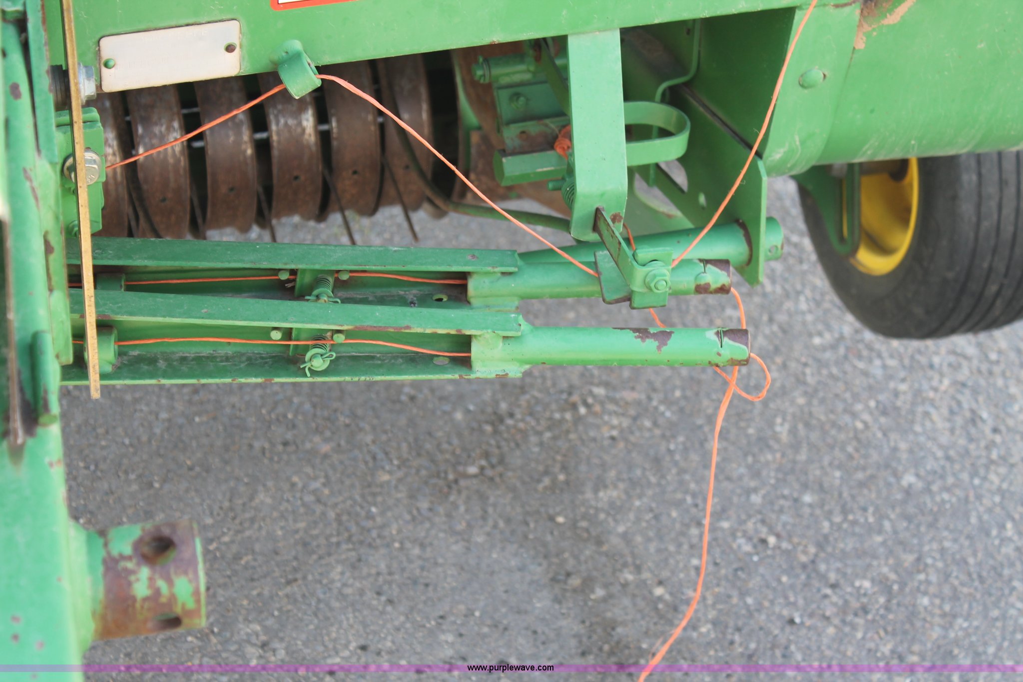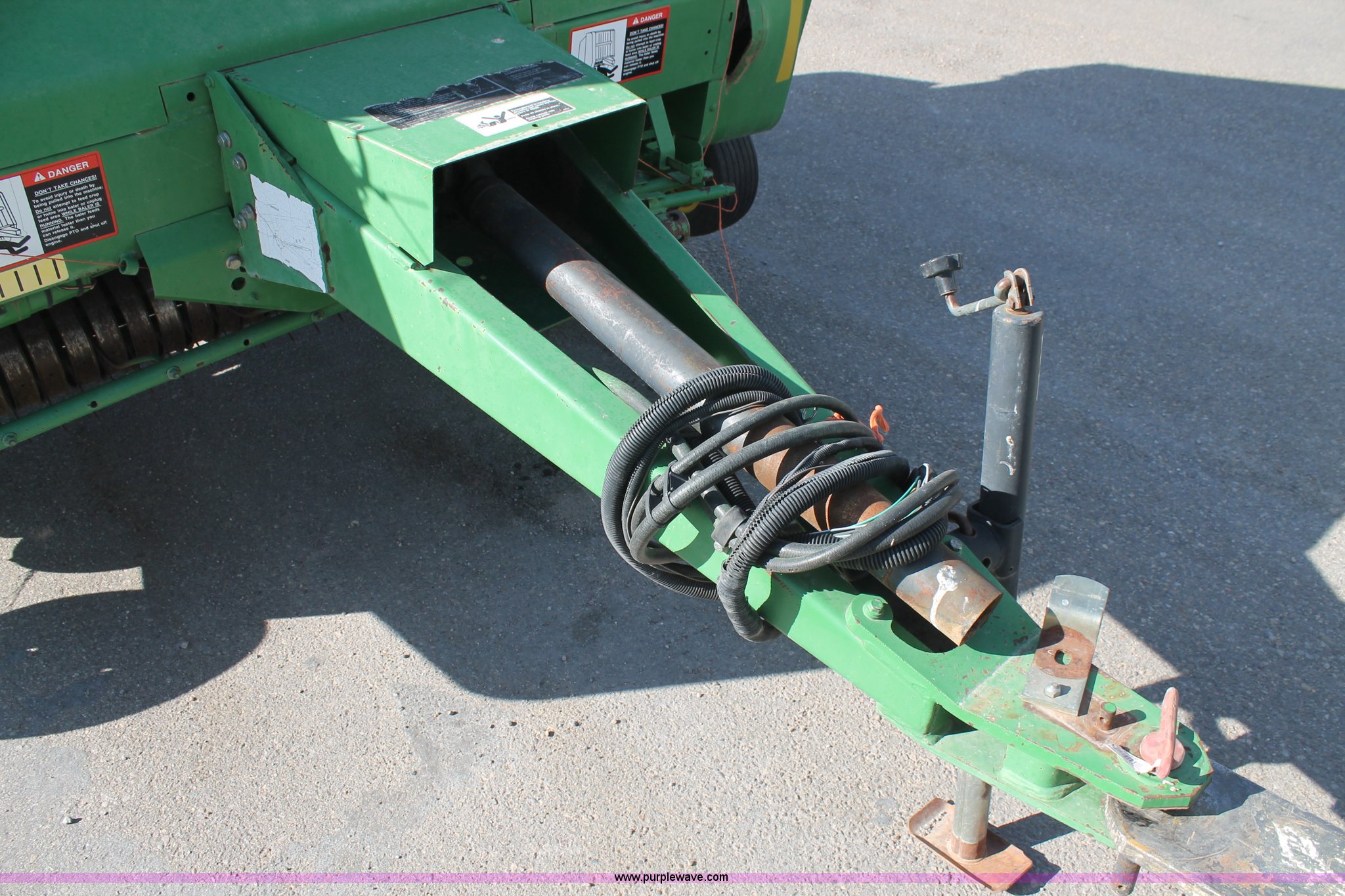 Purple Wave is selling a used Round Baler in Texas. This item is a 1999 John Deere 566 round baler with the following: 5' x 6' bale capacity, John Deere monitor, 5'W pickup, Gauge wheels, Twin twine tie or net-wrap, Bale kicker, John Deere monitor, Transport lights, 1000 PTO, Pin hitch, 31x13.5 hi-flotation tires, 8 PR, 13,124 bale count, Serial E00566X136697