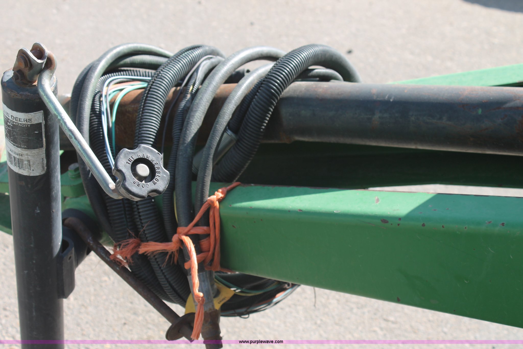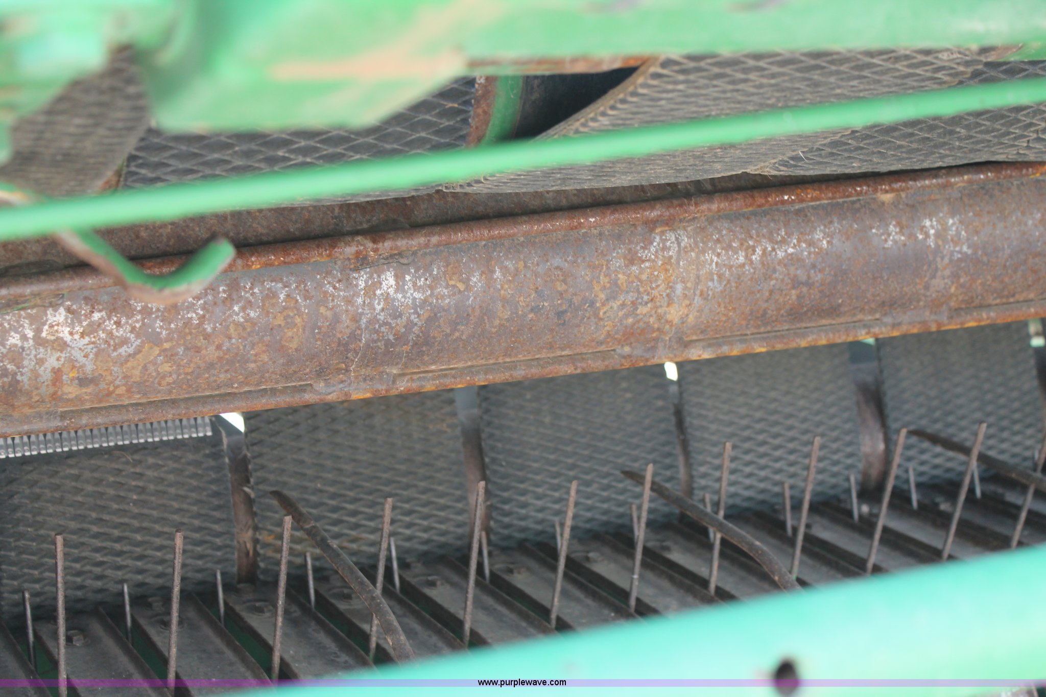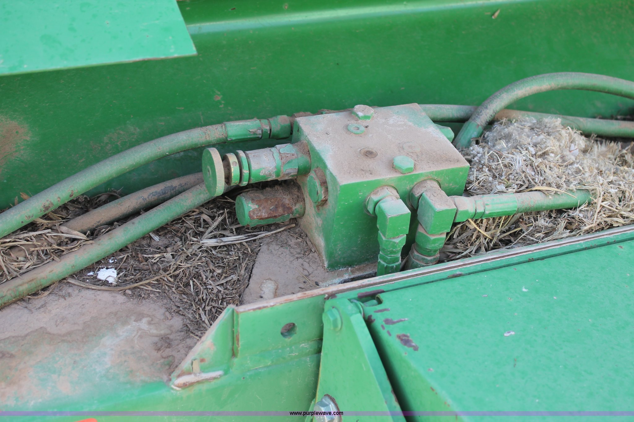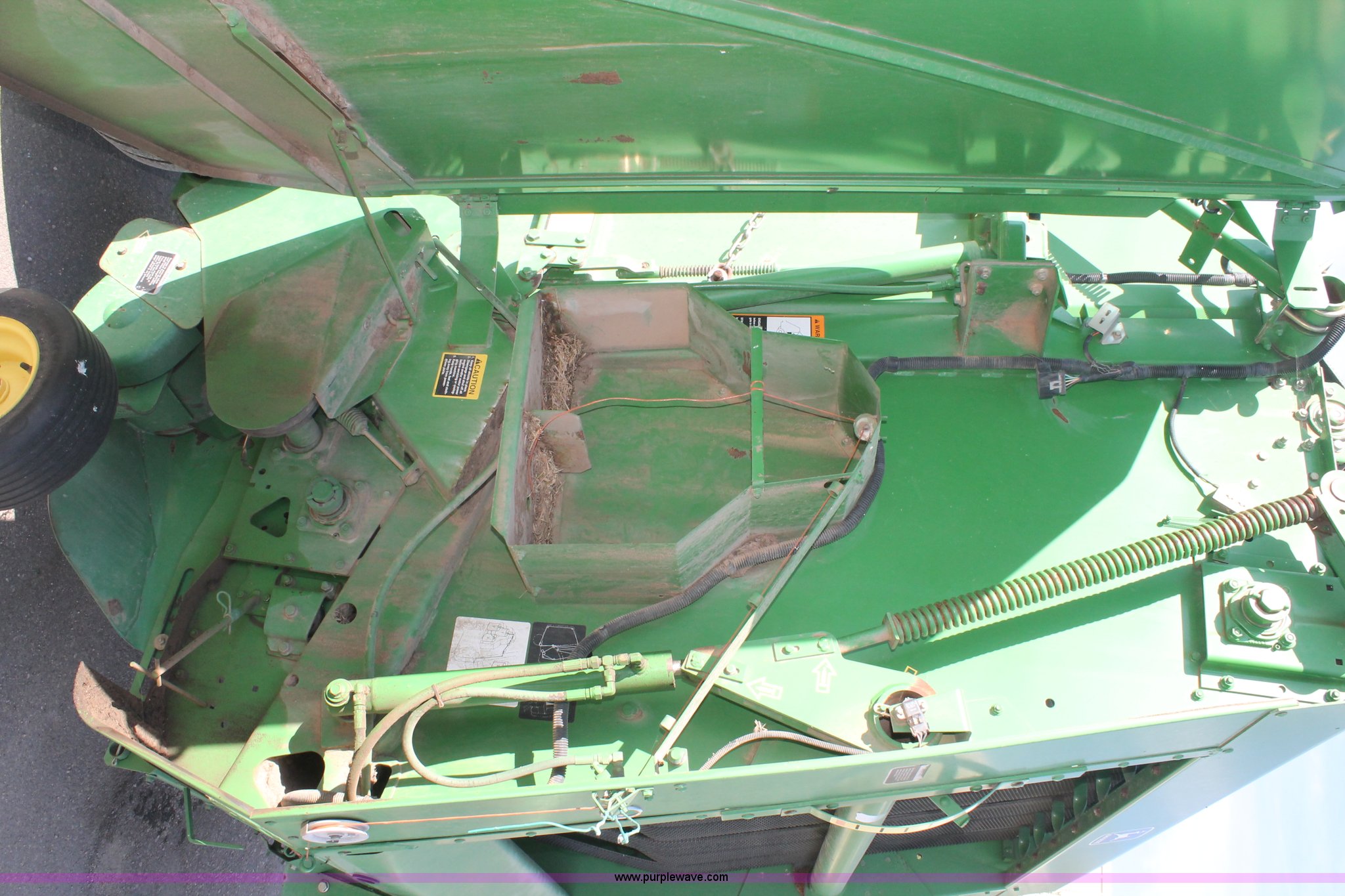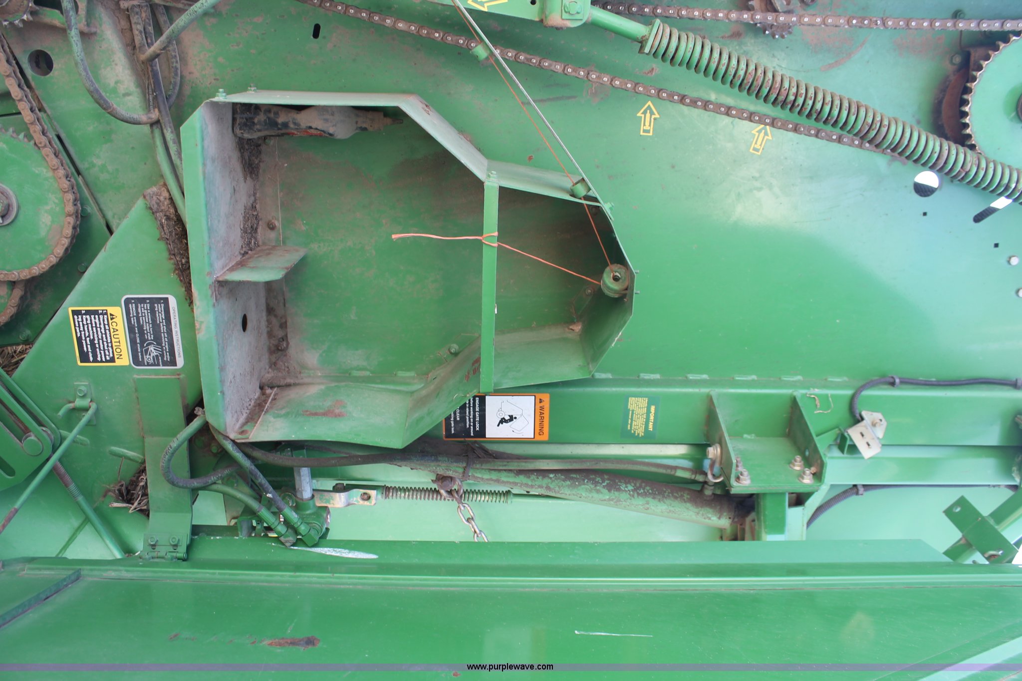 Purple Wave is selling a used Round Baler in Texas. This item is a 1999 John Deere 566 round baler with the following: 5' x 6' bale capacity, John Deere monitor, 5'W pickup, Gauge wheels, Twin twine tie or net-wrap, Bale kicker, John Deere monitor, Transport lights, 1000 PTO, Pin hitch, 31x13.5 hi-flotation tires, 8 PR, 13,124 bale count, Serial E00566X136697