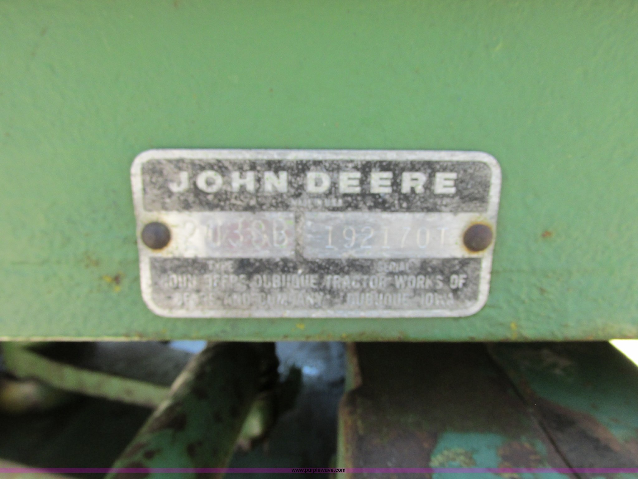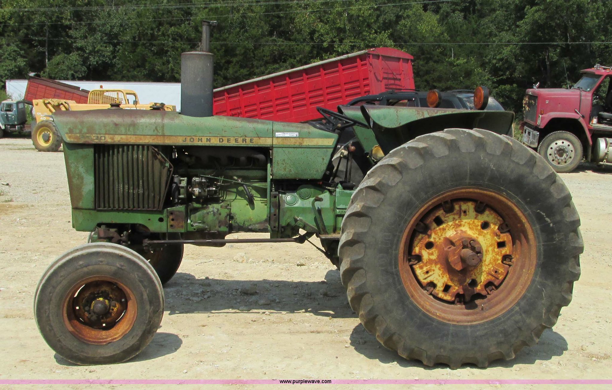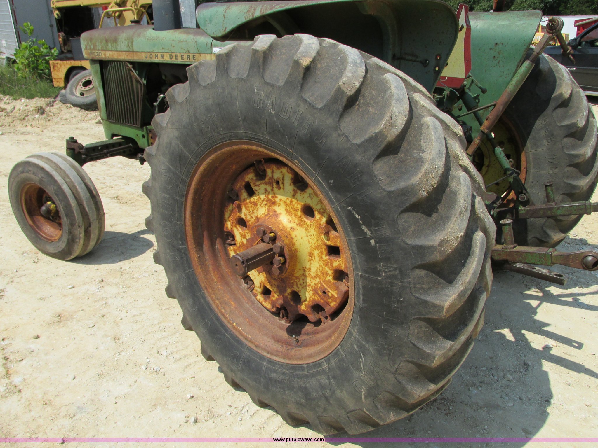 Purple Wave is selling a used Tractor in Missouri. This item is a John Deere 2030D tractor with the following: 3,864 hours on meter, John Deere four cylinder diesel engine, 61 HP, Serial 282717T, Manual transmission, 16F-4R gears, Differential lock, Three point, 540 PTO, Rear hydraulic remote set, 9.5-L15 front tires, 16.9R30 rear tires, Serial 192170T