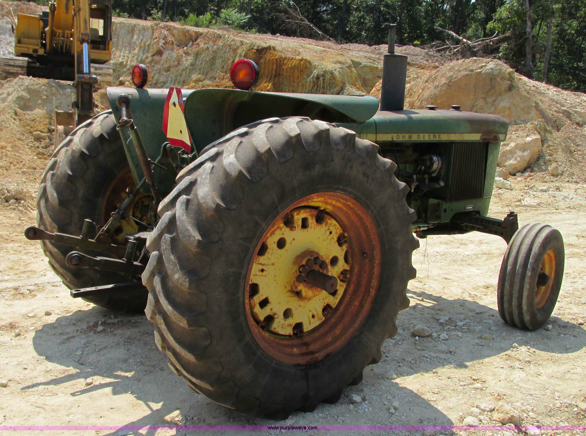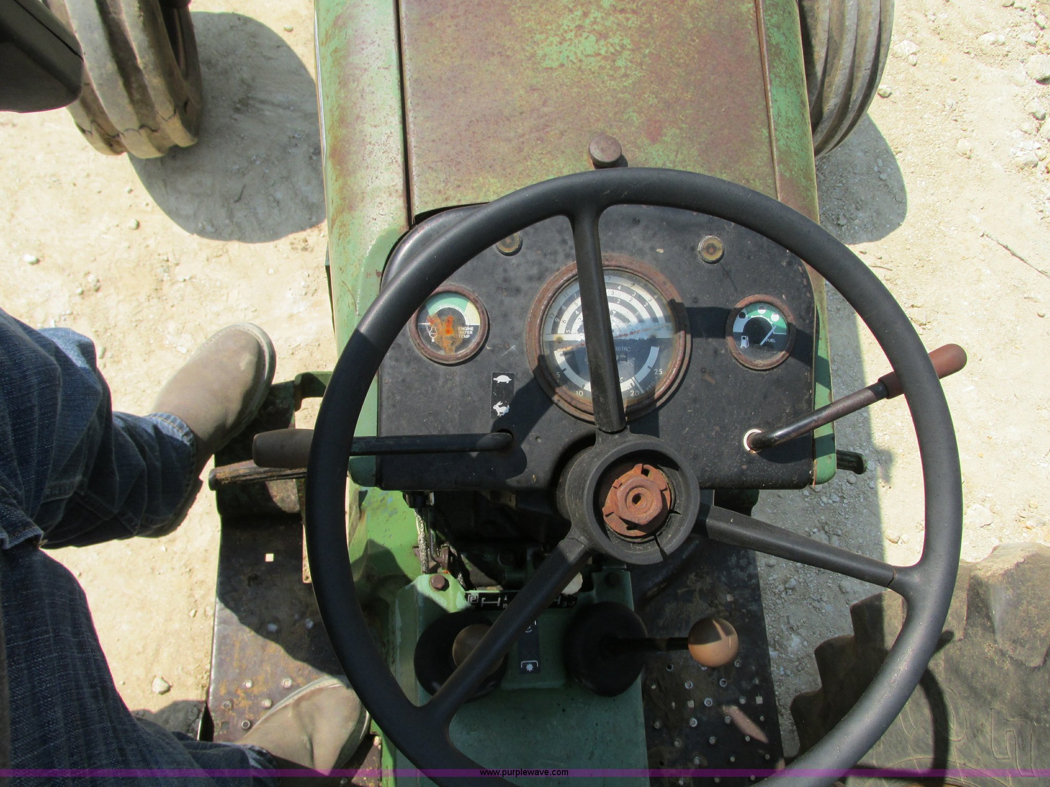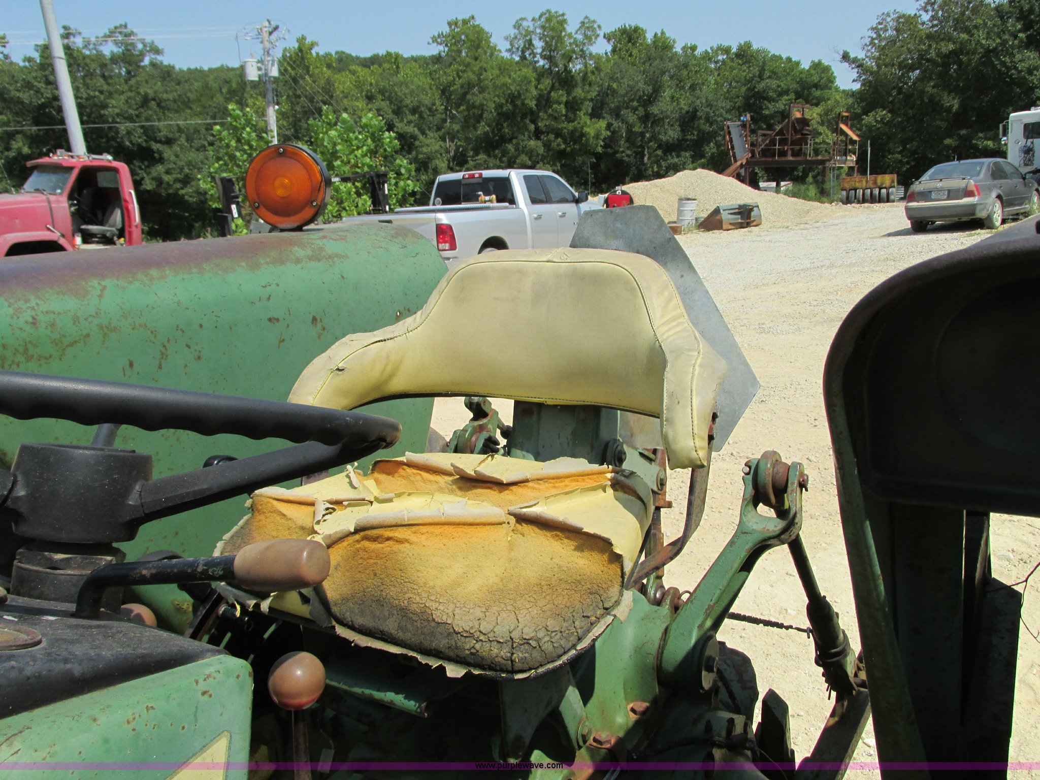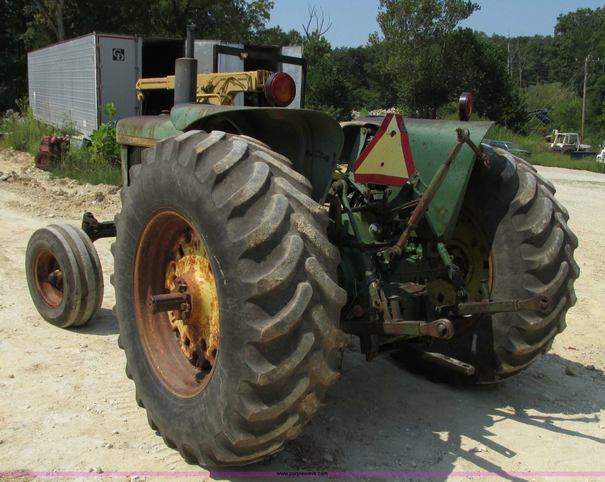 Purple Wave is selling a used Tractor in Missouri. This item is a John Deere 2030D tractor with the following: 3,864 hours on meter, John Deere four cylinder diesel engine, 61 HP, Serial 282717T, Manual transmission, 16F-4R gears, Differential lock, Three point, 540 PTO, Rear hydraulic remote set, 9.5-L15 front tires, 16.9R30 rear tires, Serial 192170T