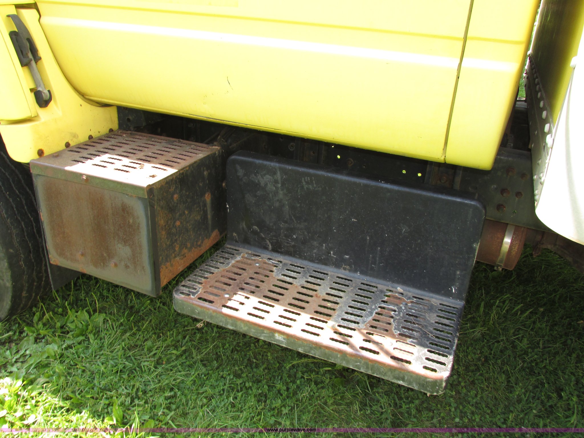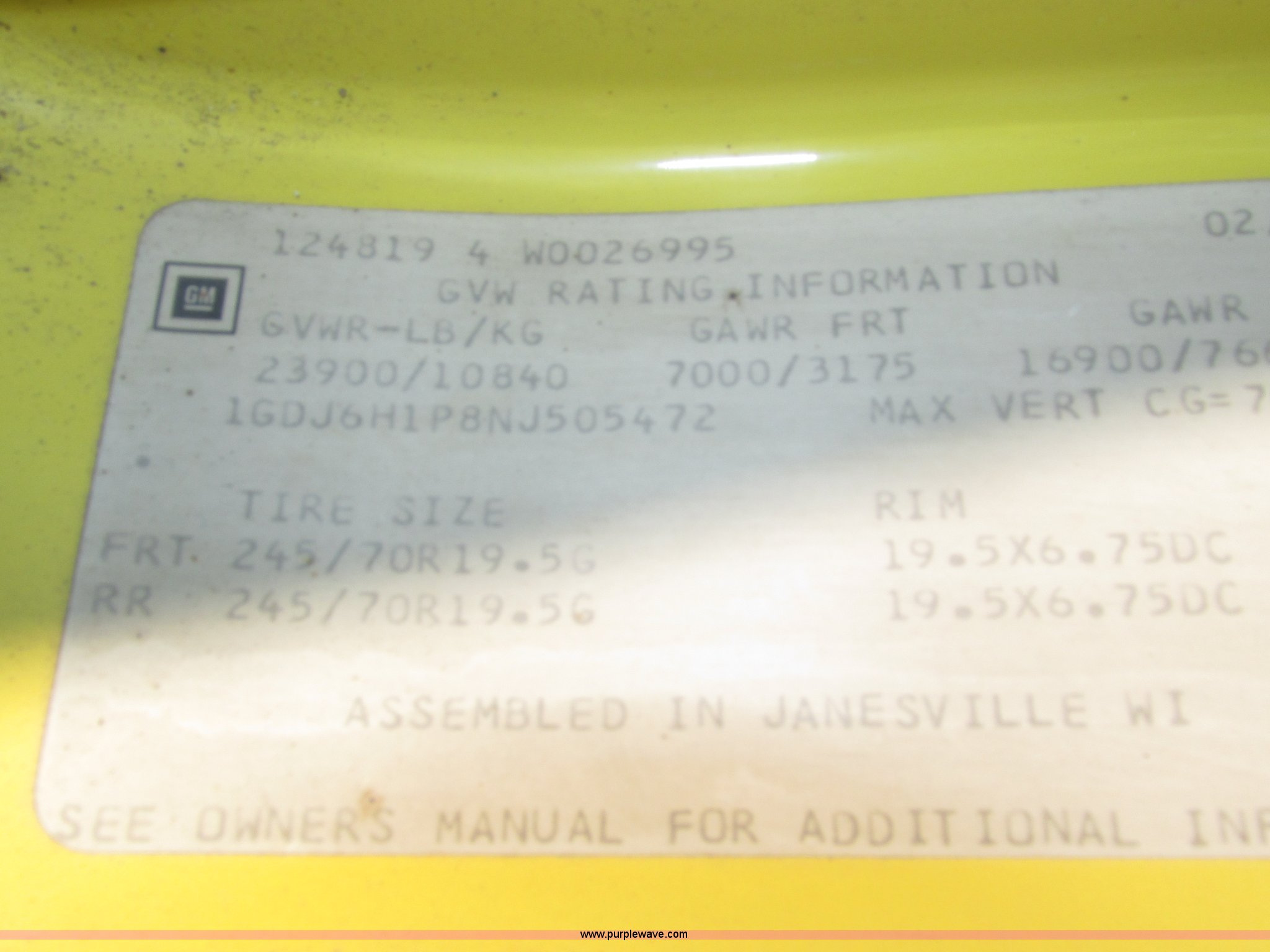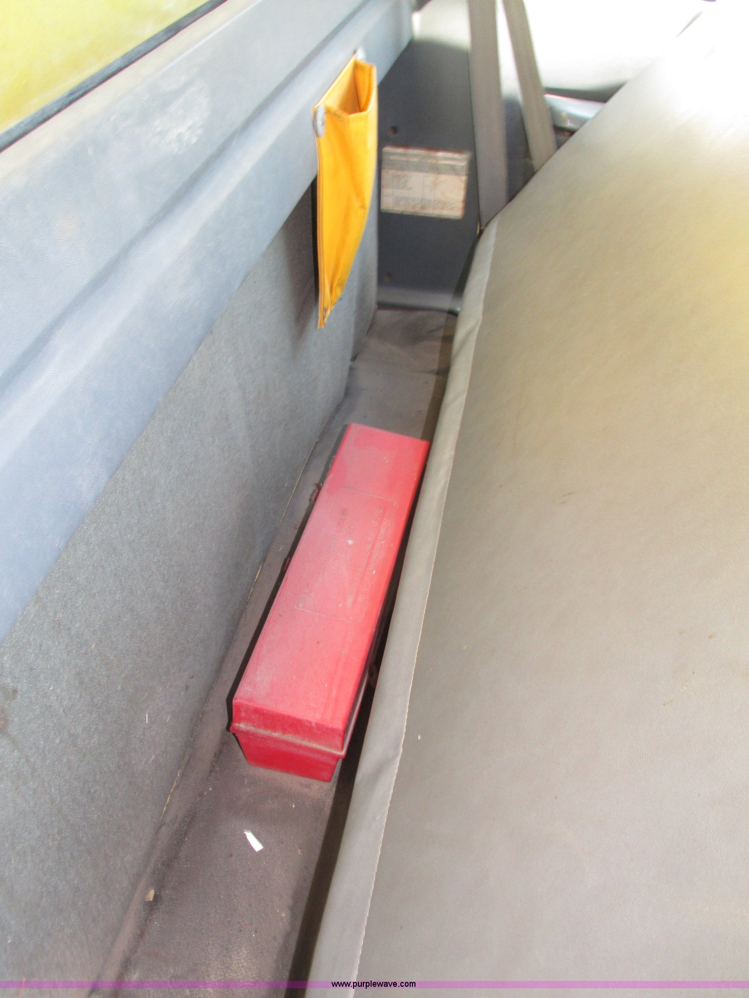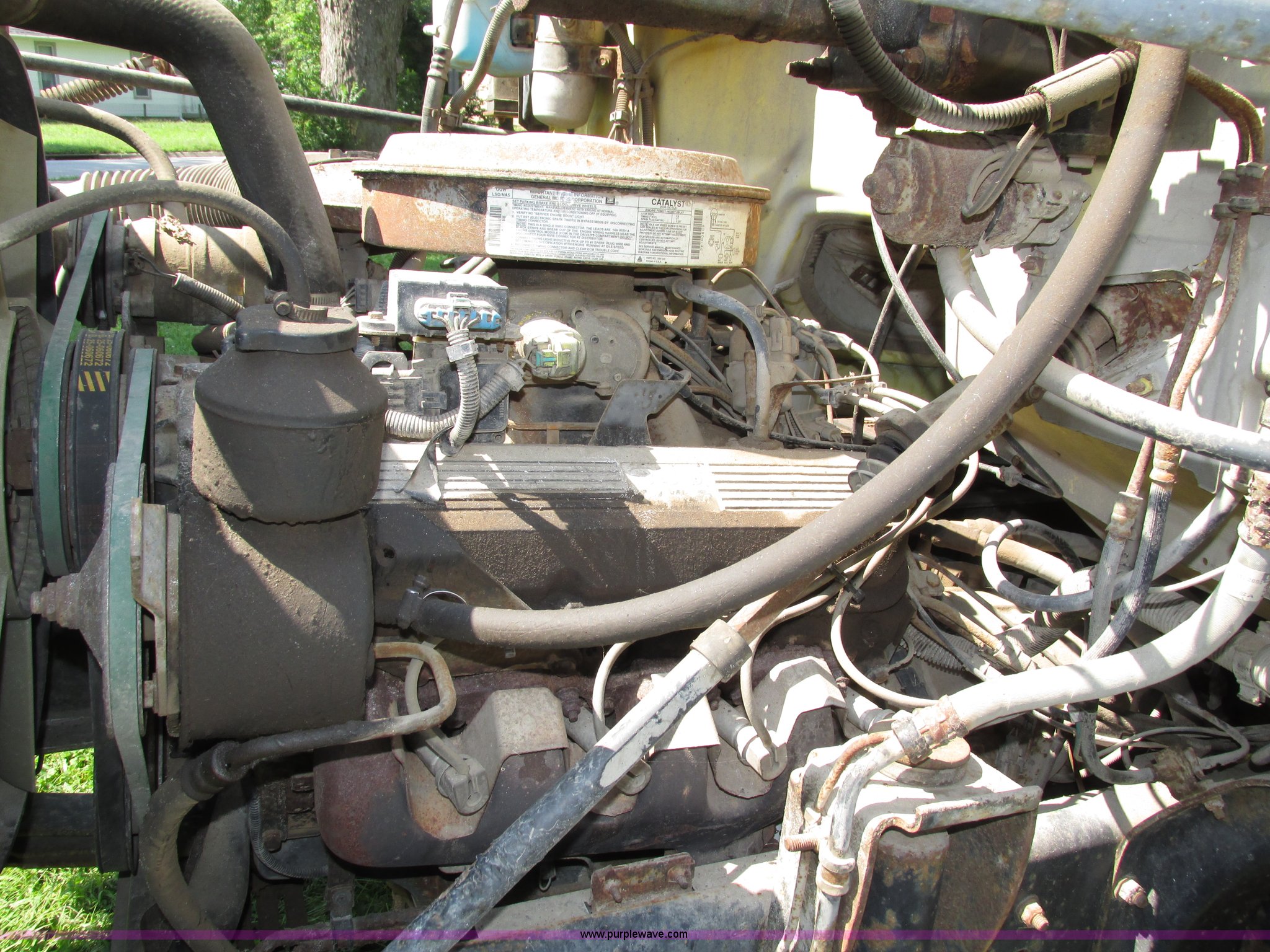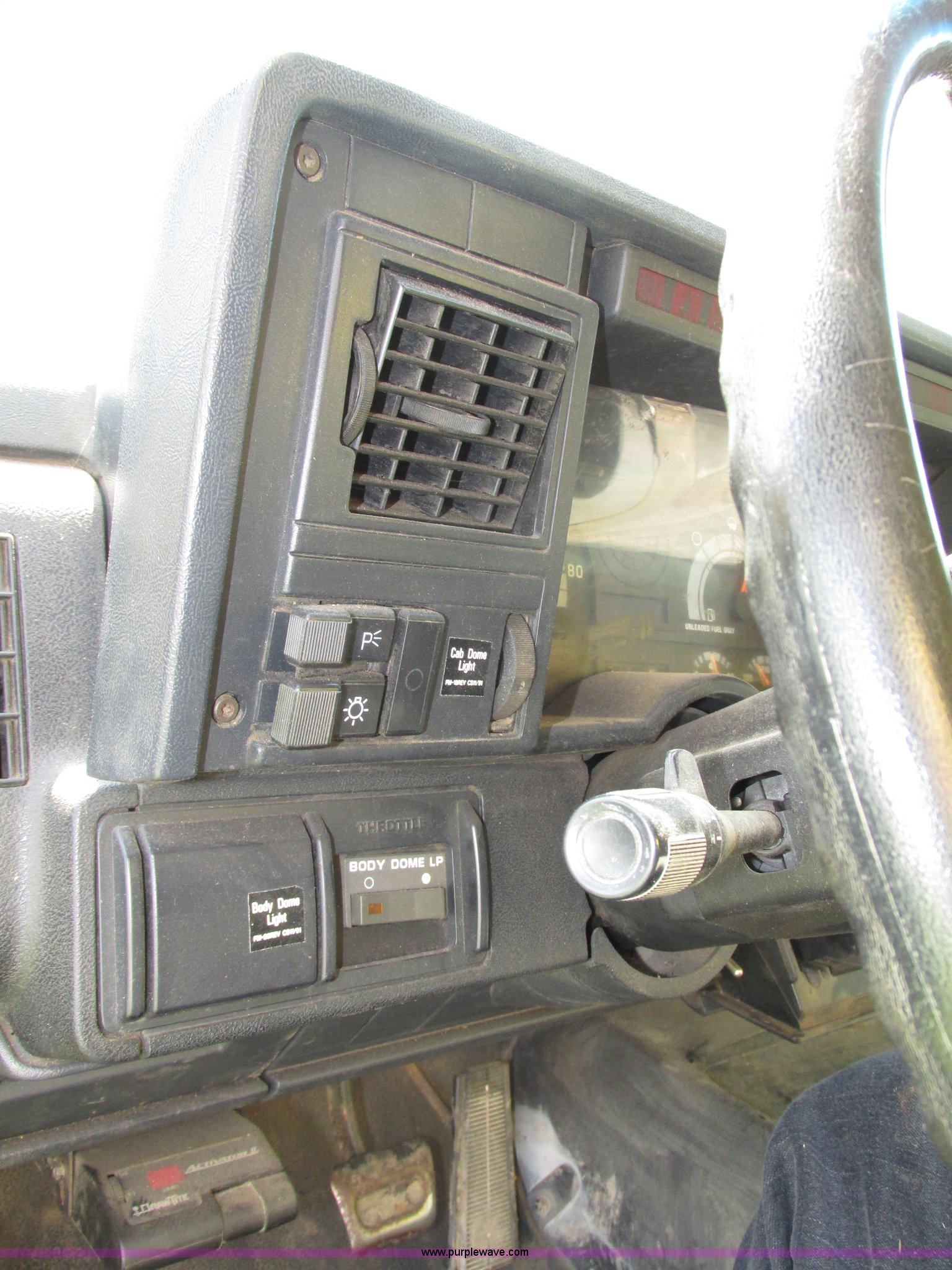 Purple Wave is selling a used Box Truck in Nebraska. This item is a 1992 GMC TopKick box truck with the following: 142,487 miles on odometer, Miles may vary, still in use, 6.0L V8 gas engine, Automatic transmission, Single axle, Heat, AM/FM, Suspension seat, Cloth interior, Draw Tite Actuator II brake controller, Backup alarm, Highway safety triangle, Grumman box bed, 20'L x 95"W I.D., 11.5' O.D. max height, Roll up rear door, Swing side door, 11.5'L x 24" I.D., Wood floor, Interior box lighting, 7" step bumper, 22"H, Pintle hitch, 2" ball hitch, Serial S7373FSG92-20W, Mud flaps, Spring suspension, Hydraulic brakes, 226" wheelbase, Goodyear 245/70R19.5 front tires, Hercules 245/70R19.5 rear tires, GVWR 23,900 lbs, FAWR 7,000 lbs, RAWR 16,900 lbs, (2) holes in floor, Seat torn