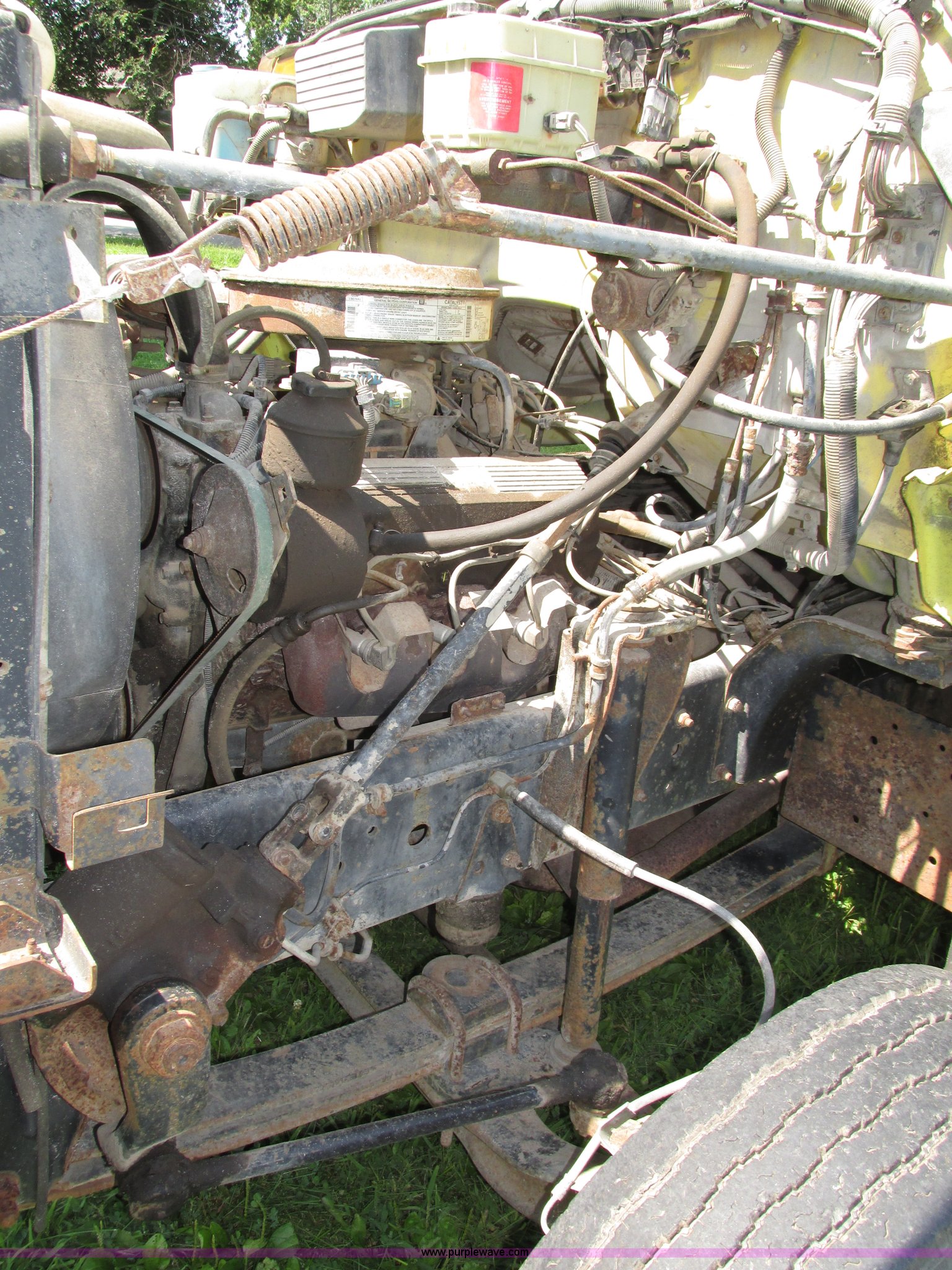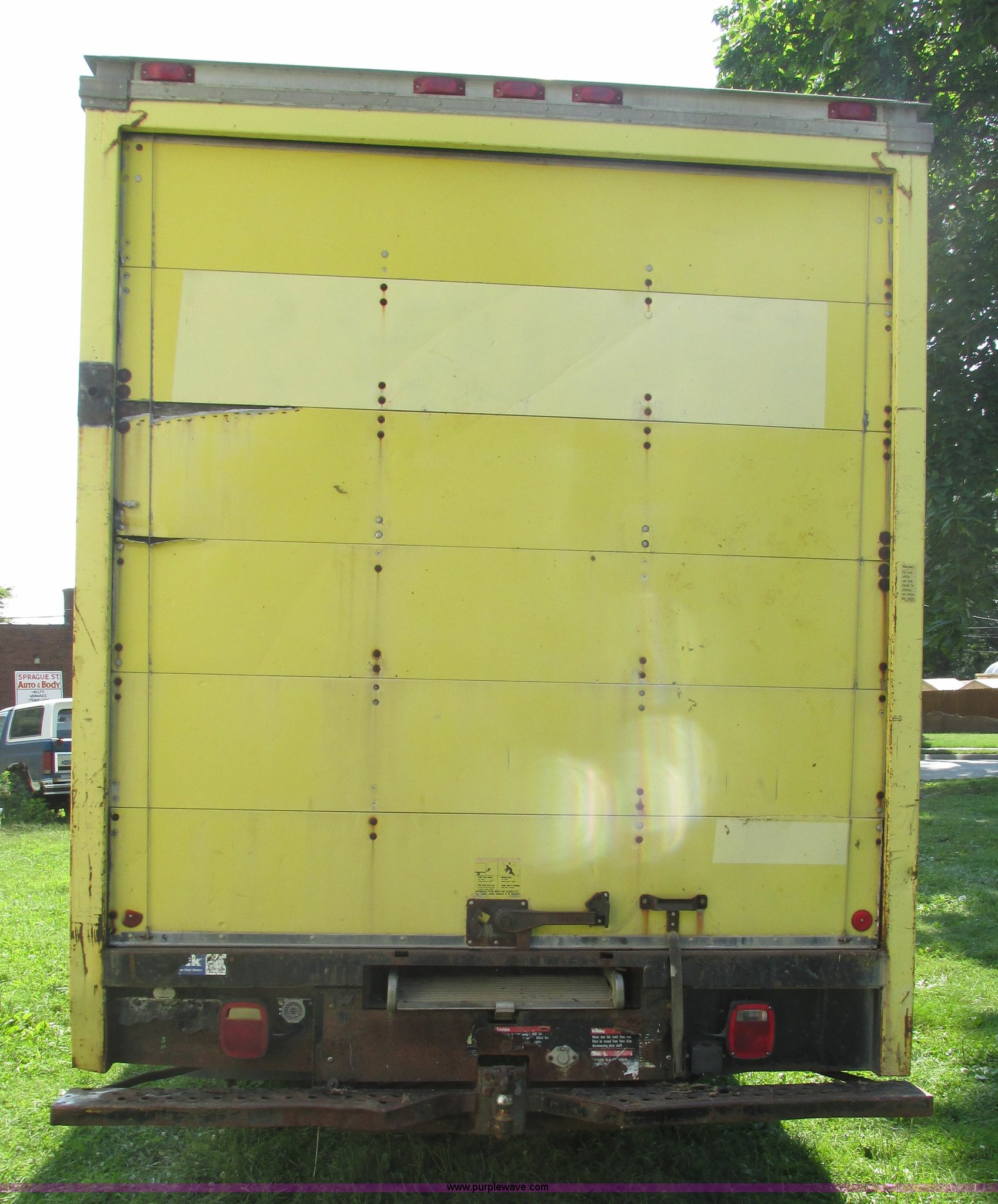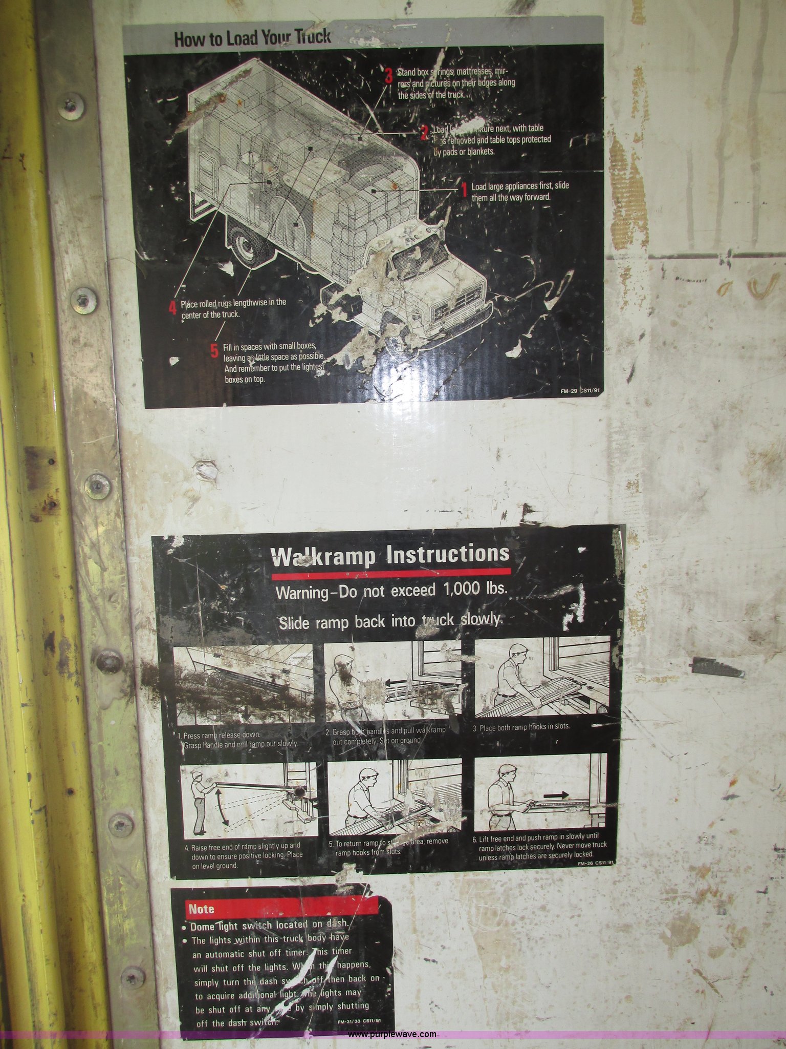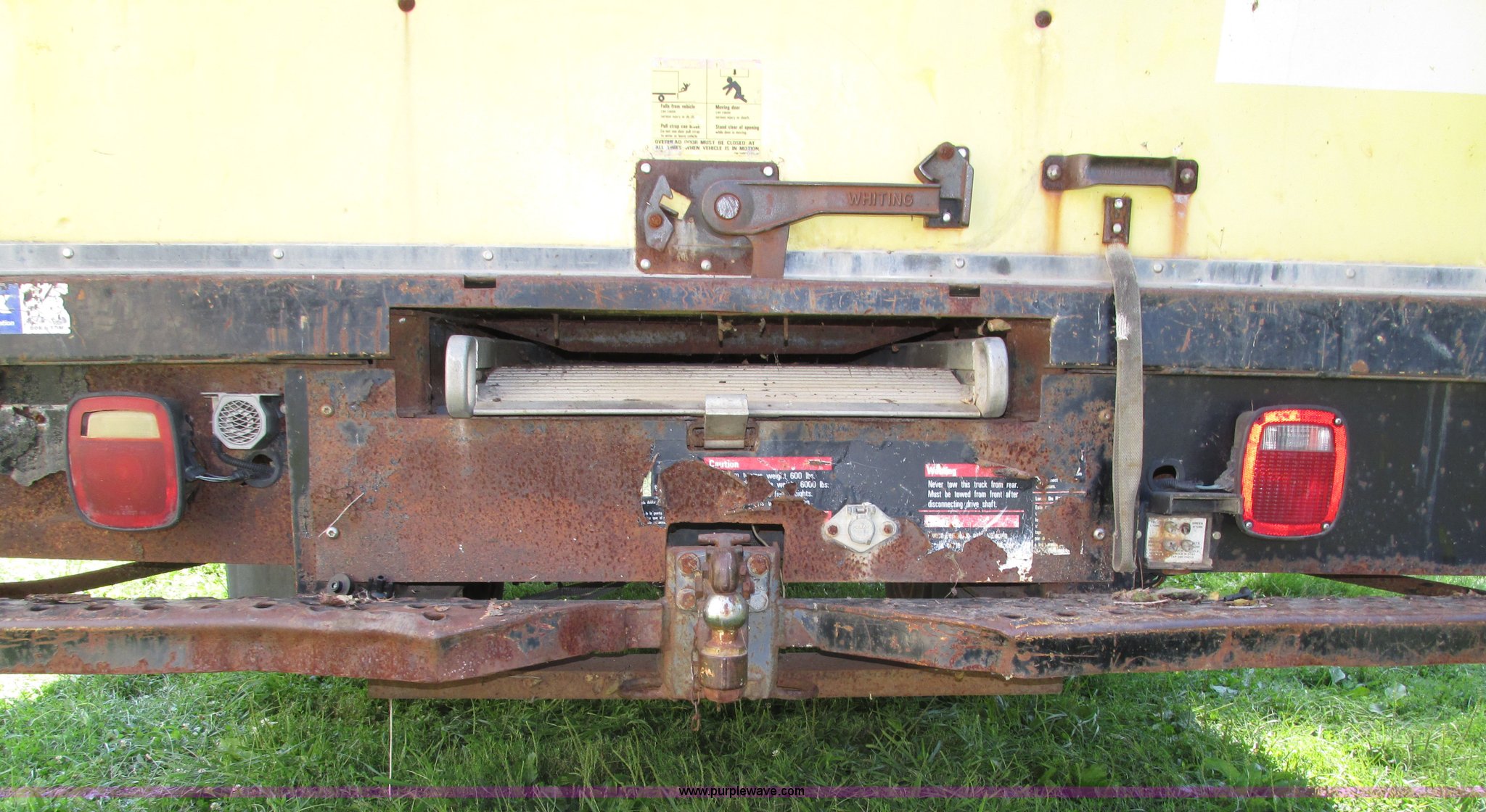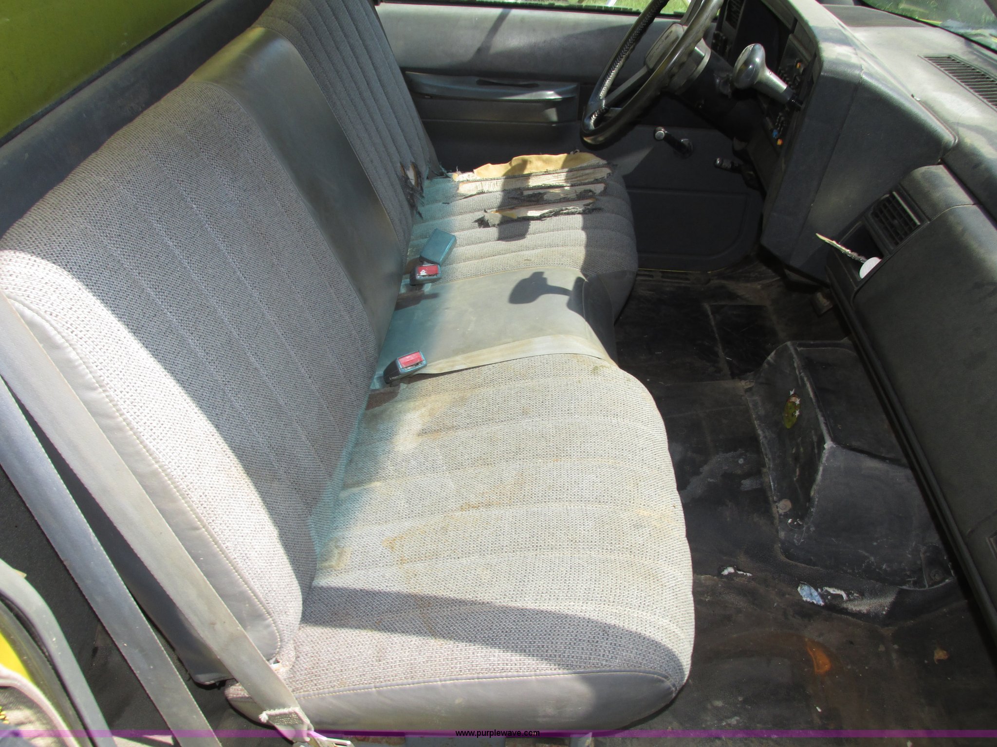 Purple Wave is selling a used Box Truck in Nebraska. This item is a 1992 GMC TopKick box truck with the following: 142,487 miles on odometer, Miles may vary, still in use, 6.0L V8 gas engine, Automatic transmission, Single axle, Heat, AM/FM, Suspension seat, Cloth interior, Draw Tite Actuator II brake controller, Backup alarm, Highway safety triangle, Grumman box bed, 20'L x 95"W I.D., 11.5' O.D. max height, Roll up rear door, Swing side door, 11.5'L x 24" I.D., Wood floor, Interior box lighting, 7" step bumper, 22"H, Pintle hitch, 2" ball hitch, Serial S7373FSG92-20W, Mud flaps, Spring suspension, Hydraulic brakes, 226" wheelbase, Goodyear 245/70R19.5 front tires, Hercules 245/70R19.5 rear tires, GVWR 23,900 lbs, FAWR 7,000 lbs, RAWR 16,900 lbs, (2) holes in floor, Seat torn