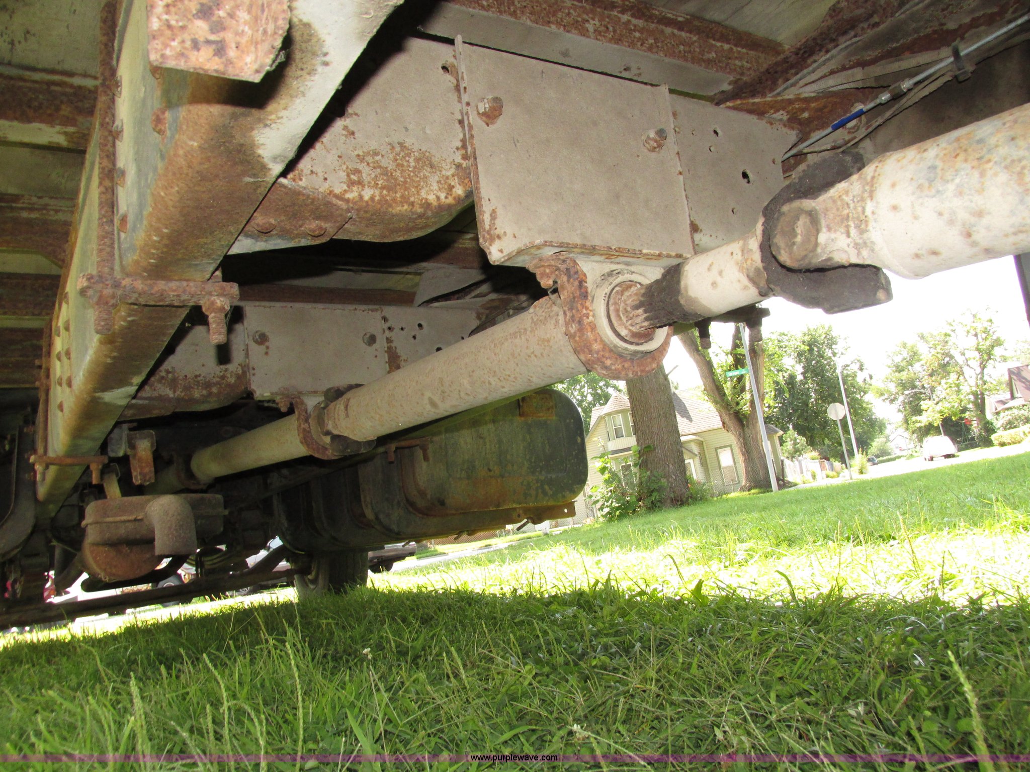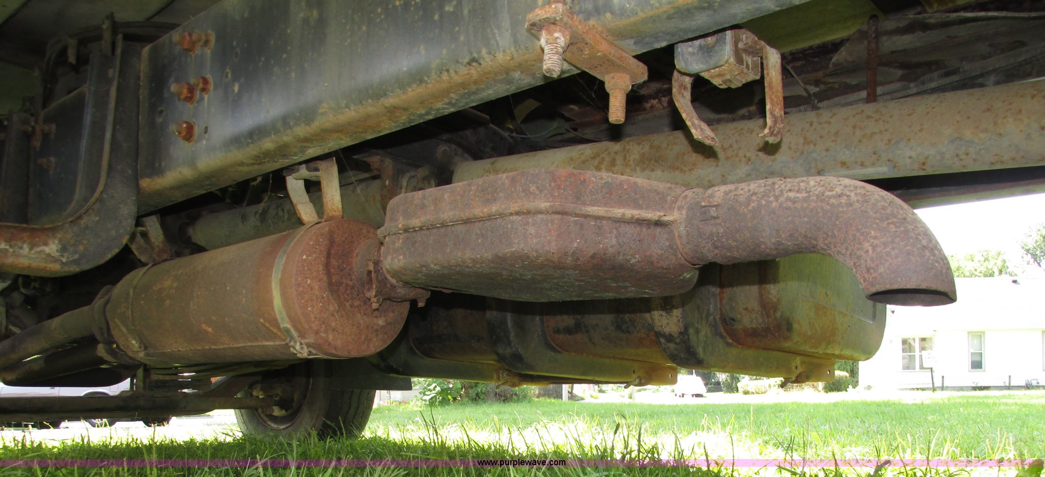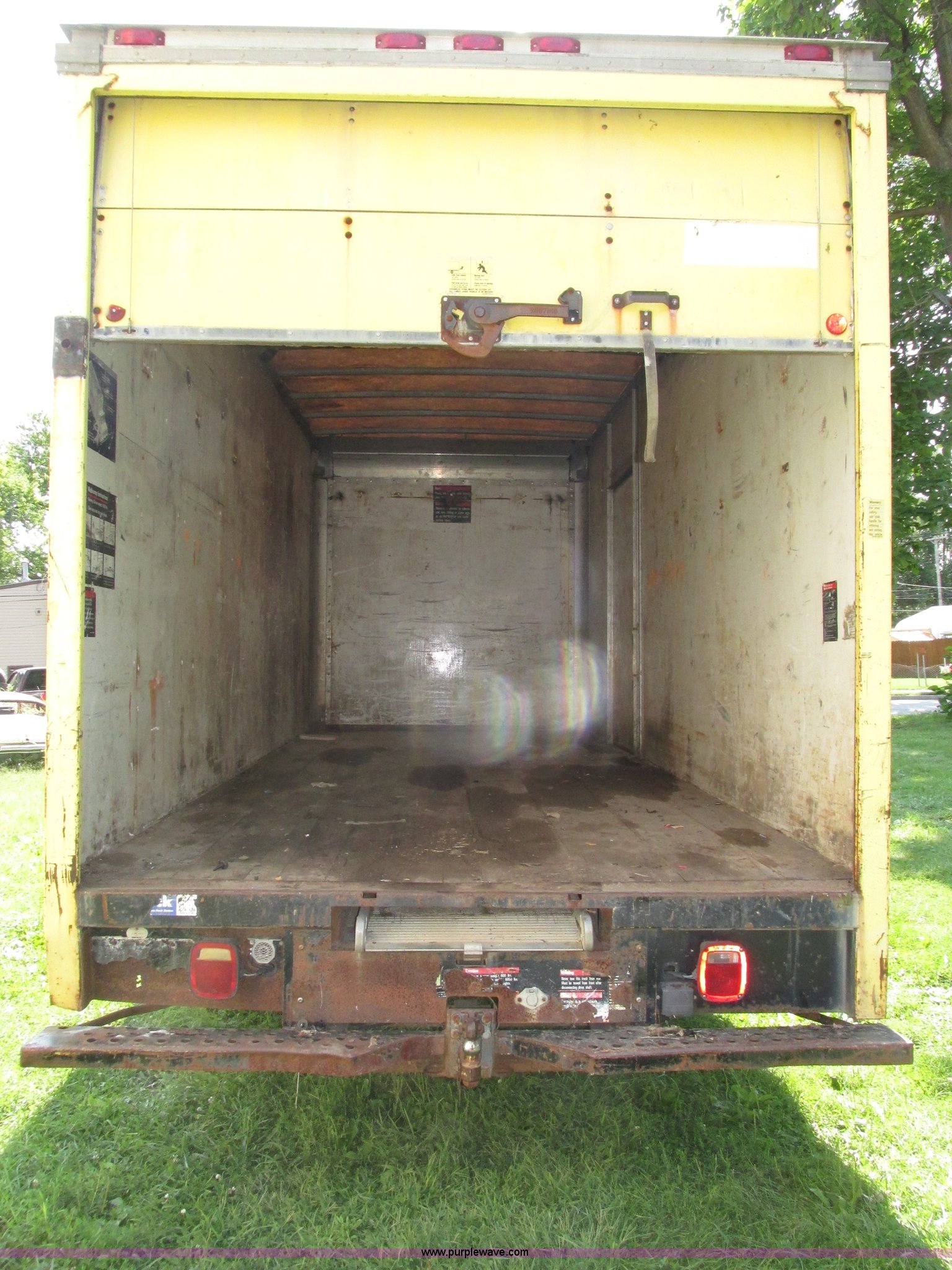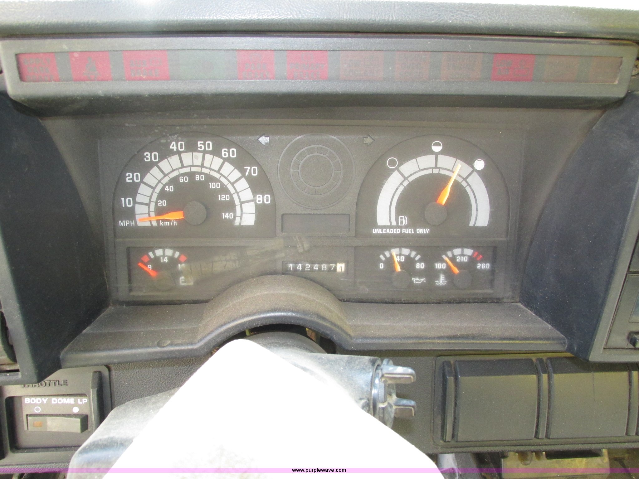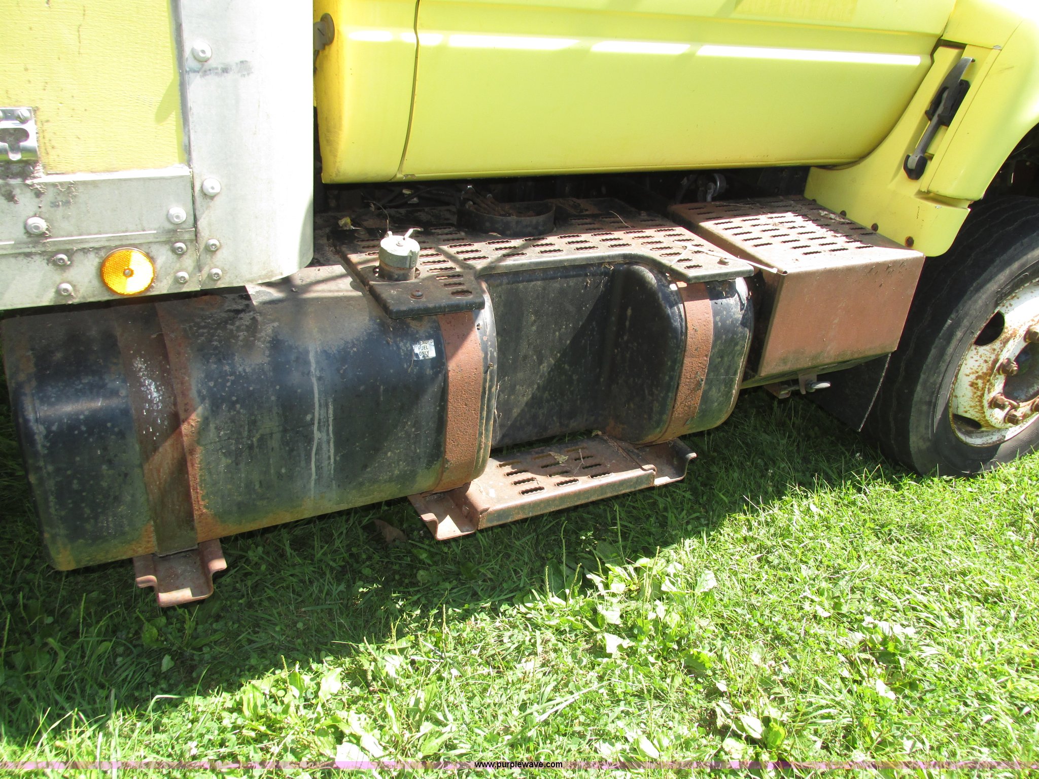 Purple Wave is selling a used Box Truck in Nebraska. This item is a 1992 GMC TopKick box truck with the following: 142,487 miles on odometer, Miles may vary, still in use, 6.0L V8 gas engine, Automatic transmission, Single axle, Heat, AM/FM, Suspension seat, Cloth interior, Draw Tite Actuator II brake controller, Backup alarm, Highway safety triangle, Grumman box bed, 20'L x 95"W I.D., 11.5' O.D. max height, Roll up rear door, Swing side door, 11.5'L x 24" I.D., Wood floor, Interior box lighting, 7" step bumper, 22"H, Pintle hitch, 2" ball hitch, Serial S7373FSG92-20W, Mud flaps, Spring suspension, Hydraulic brakes, 226" wheelbase, Goodyear 245/70R19.5 front tires, Hercules 245/70R19.5 rear tires, GVWR 23,900 lbs, FAWR 7,000 lbs, RAWR 16,900 lbs, (2) holes in floor, Seat torn