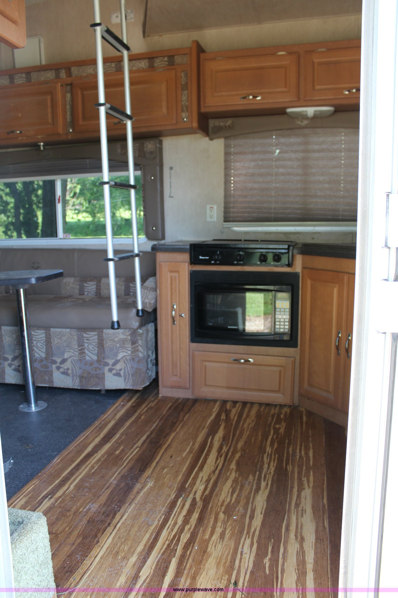 Purple Wave is selling a used RV in Kansas. This item is a 2009 Superlite Weekend Warrior 2805 camper with the following: 29' overall length, 10'L x 7'W cargo area, Couch, (2) chairs, AC, Refrigerator, Microwave, Hot water heater, Bathroom, Shower, (3) beds, Television, DVD player, Lights, (2) propane bottles, Awning, Rear ramp, 32 gallon gas tank, Electric pump, Onan generator, 225/75R15 tires, Interior/exterior cosmetic damage