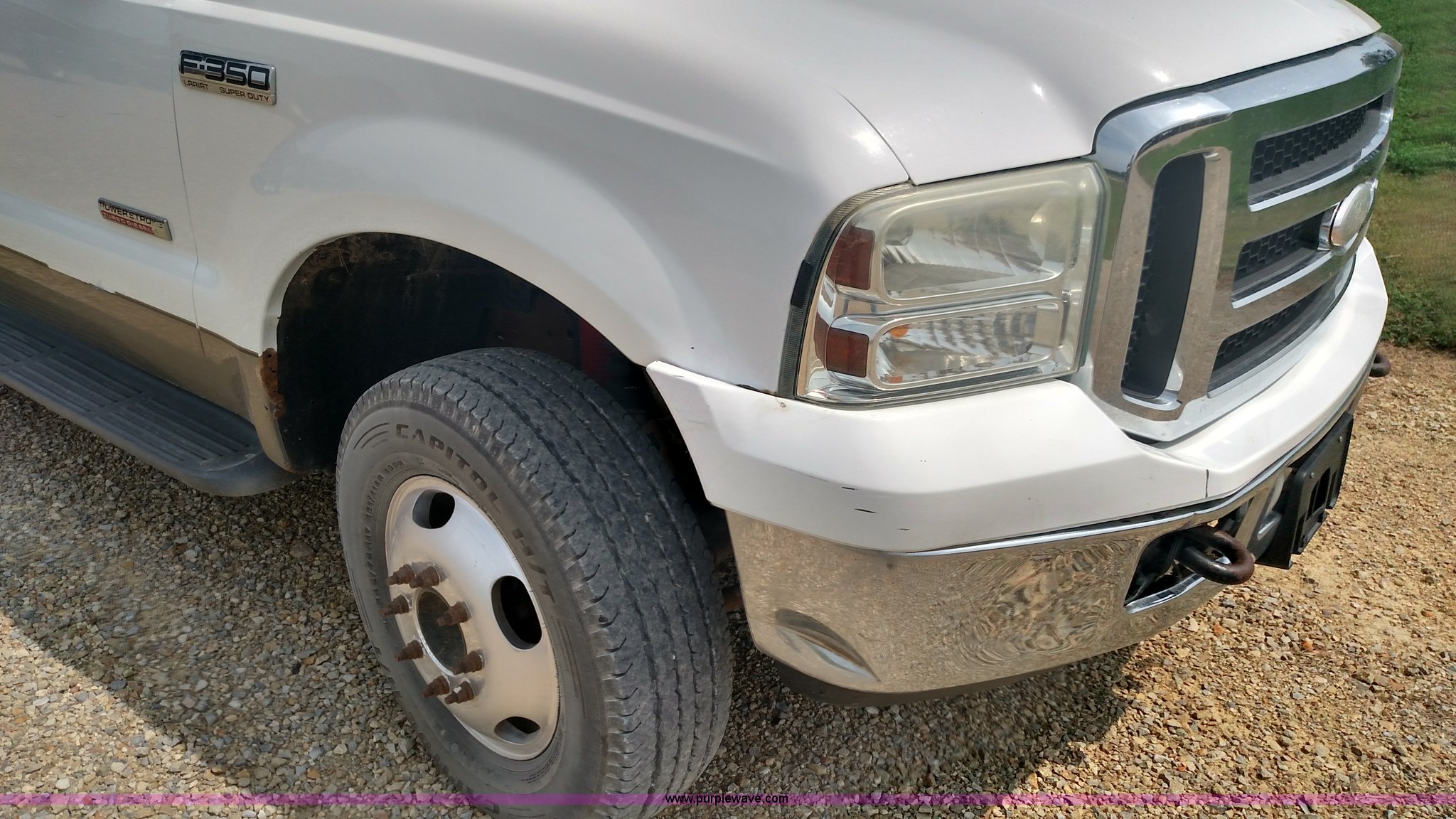 Purple Wave is selling a used 3/4 or 1 Ton Pickup or Van in Kansas. This item is a 2005 Ford F350 Super Duty Lariat FX4 Crew Cab pickup truck with the following: 272,374 miles on odometer, 6.0L V8 OHV 32V turbo diesel engine, Automatic transmission, AC and heat, Tilt, Cruise, AM/FM/CD, Power windows, locks, mirrors, and seat, Leather interior, 245/75R17 tires, Oil cooler and four injectors replaced fewer than 5,000 miles ago, Heads re-manufactured fewer than 5,000 miles ago, Interior/exterior cosmetic damage