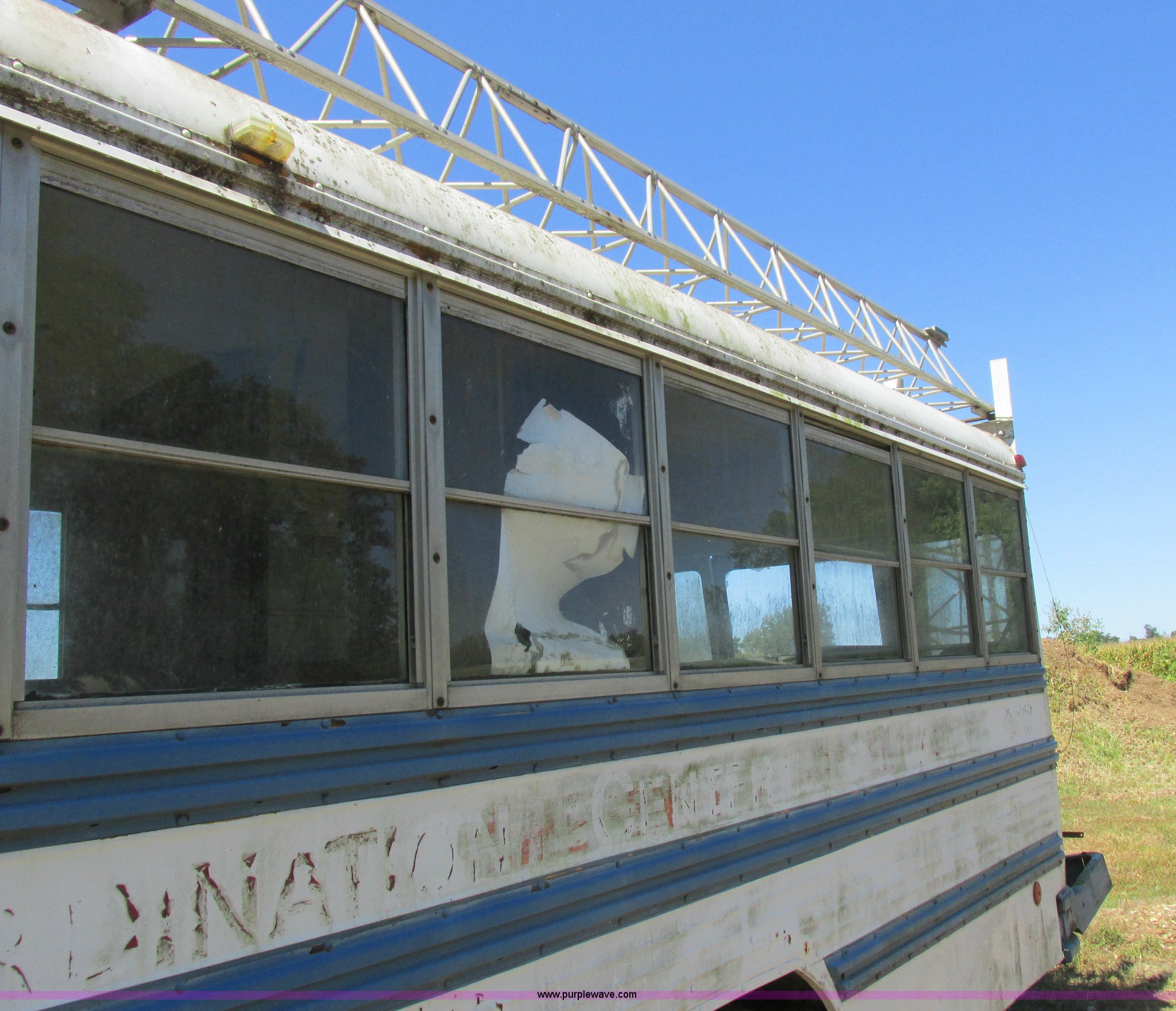 Purple Wave is selling a used Bus in Missouri. This item is a 1976 International 1603 bus with the following: 55,779 miles on odometer, Eight cylinder gas engine, Five speed manual transmission, Heat, Manual windows and locks, Vinyl interior, Exterior electrical outlets, Antenna tower, Rear door, Pintle hitch, 10R20 tires, Non-operational unit