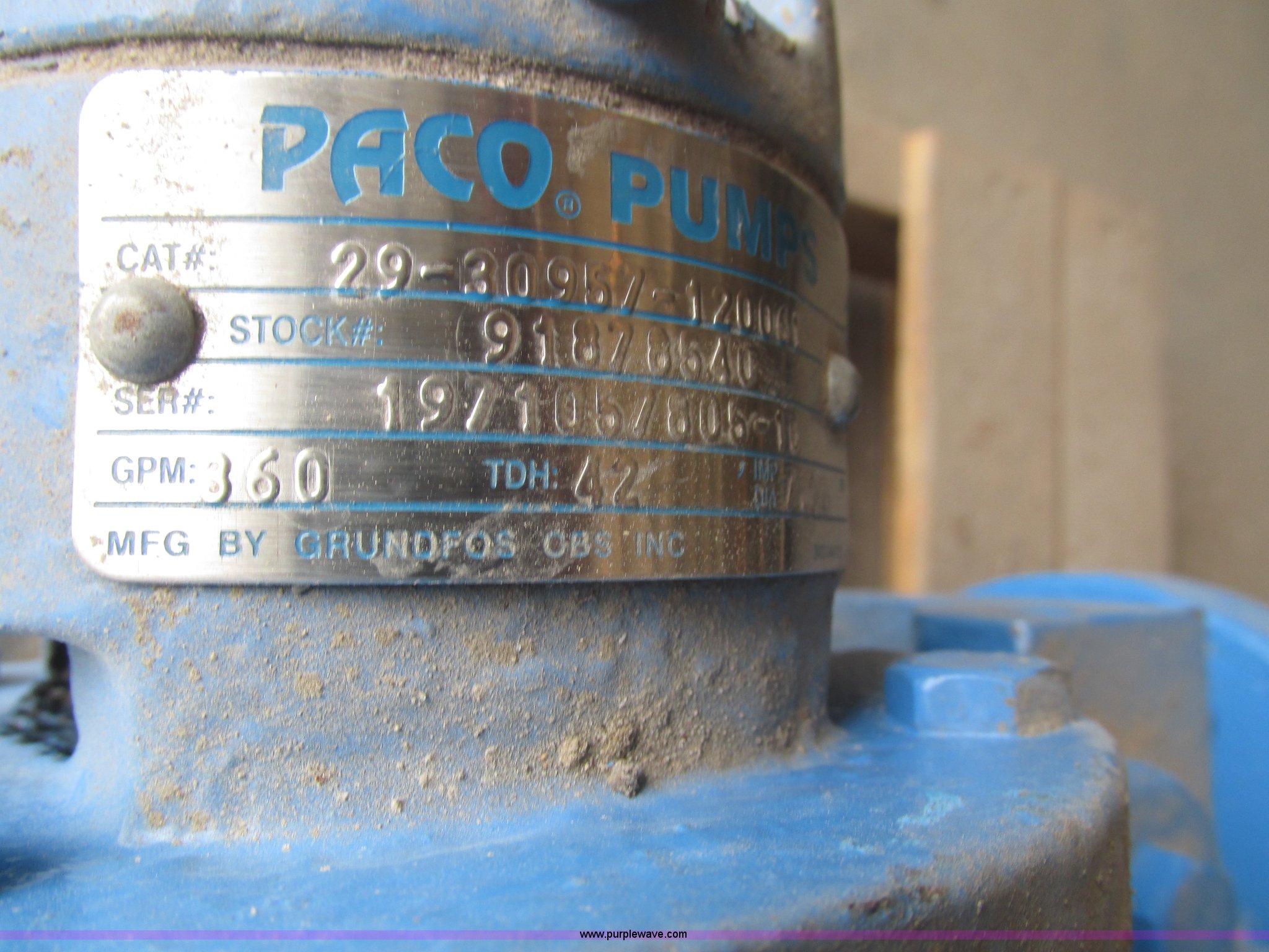 Purple Wave is selling a used Pump in Nebraska. This item is a Paco pump with the following: 360 gallon per minute capacity, Unused