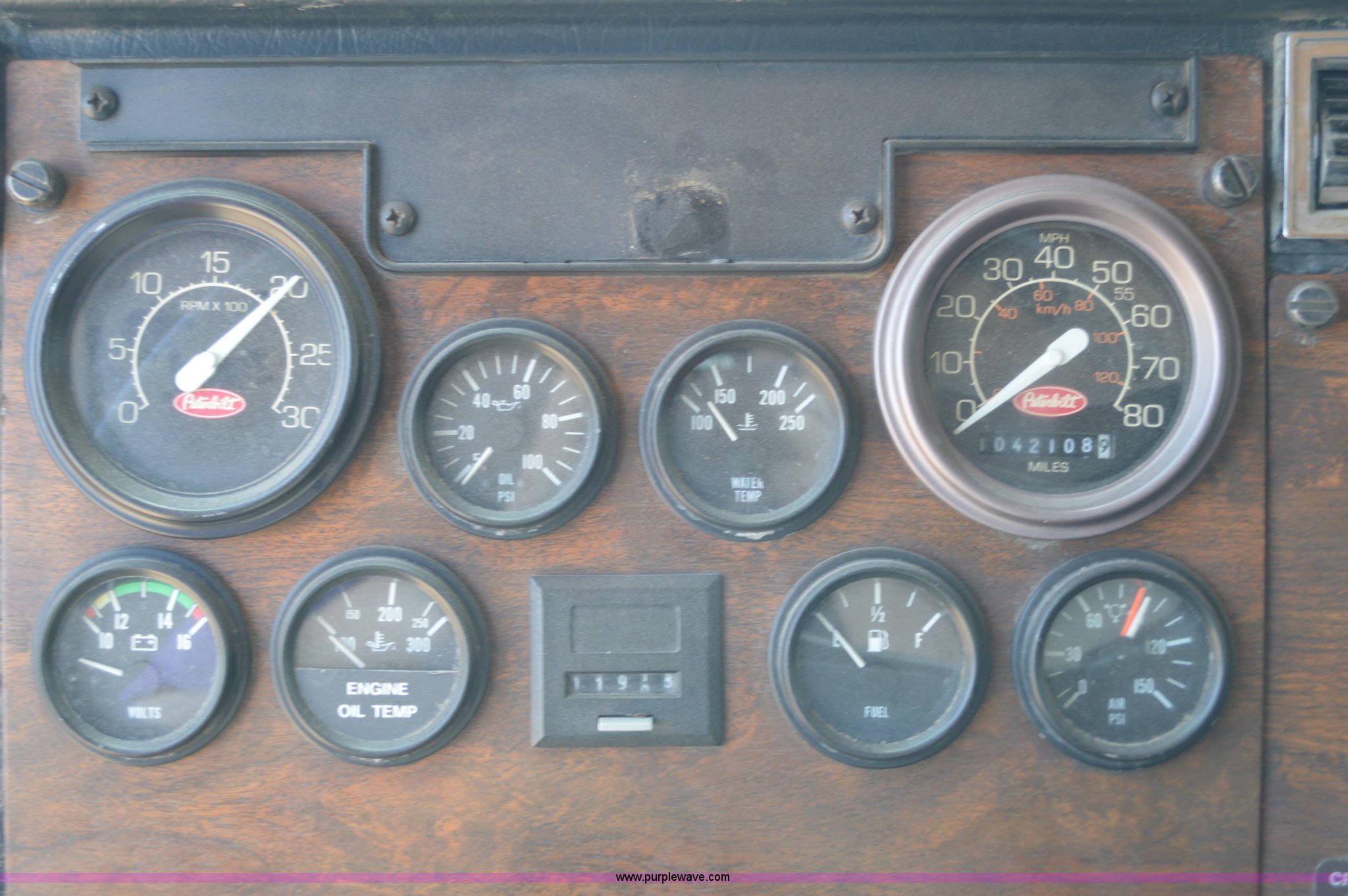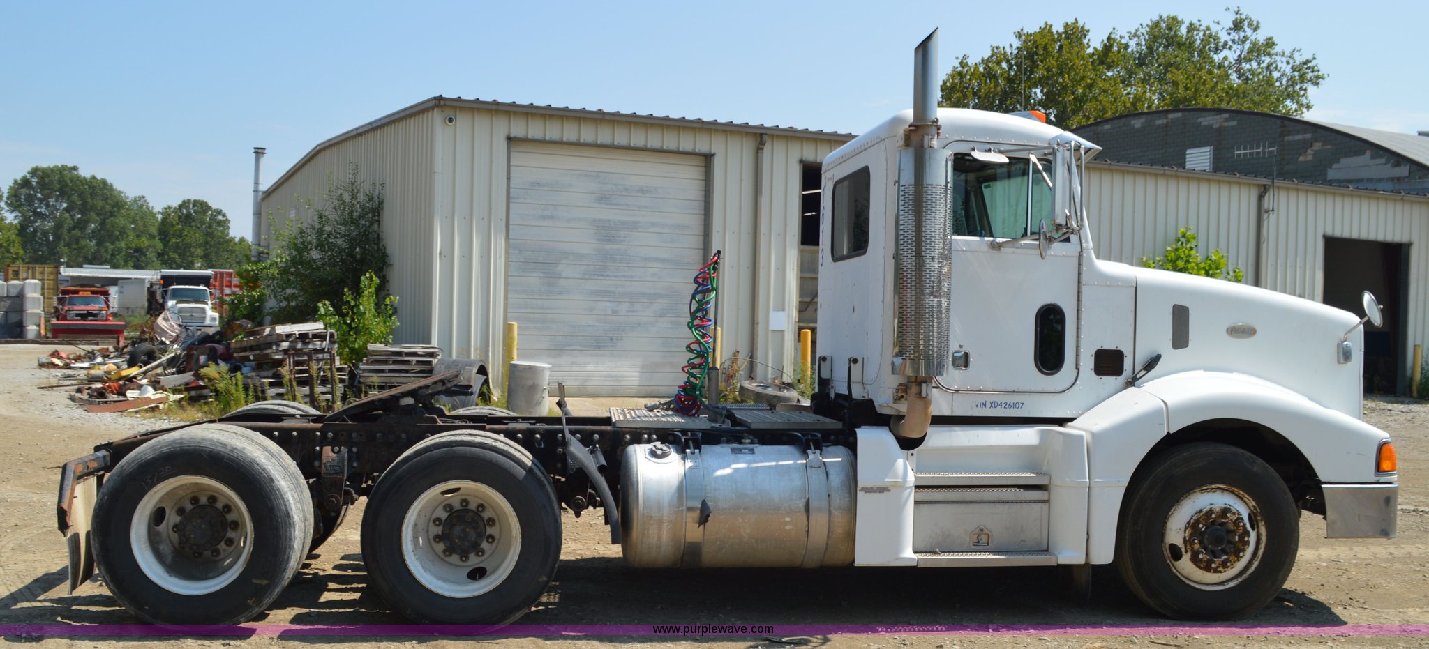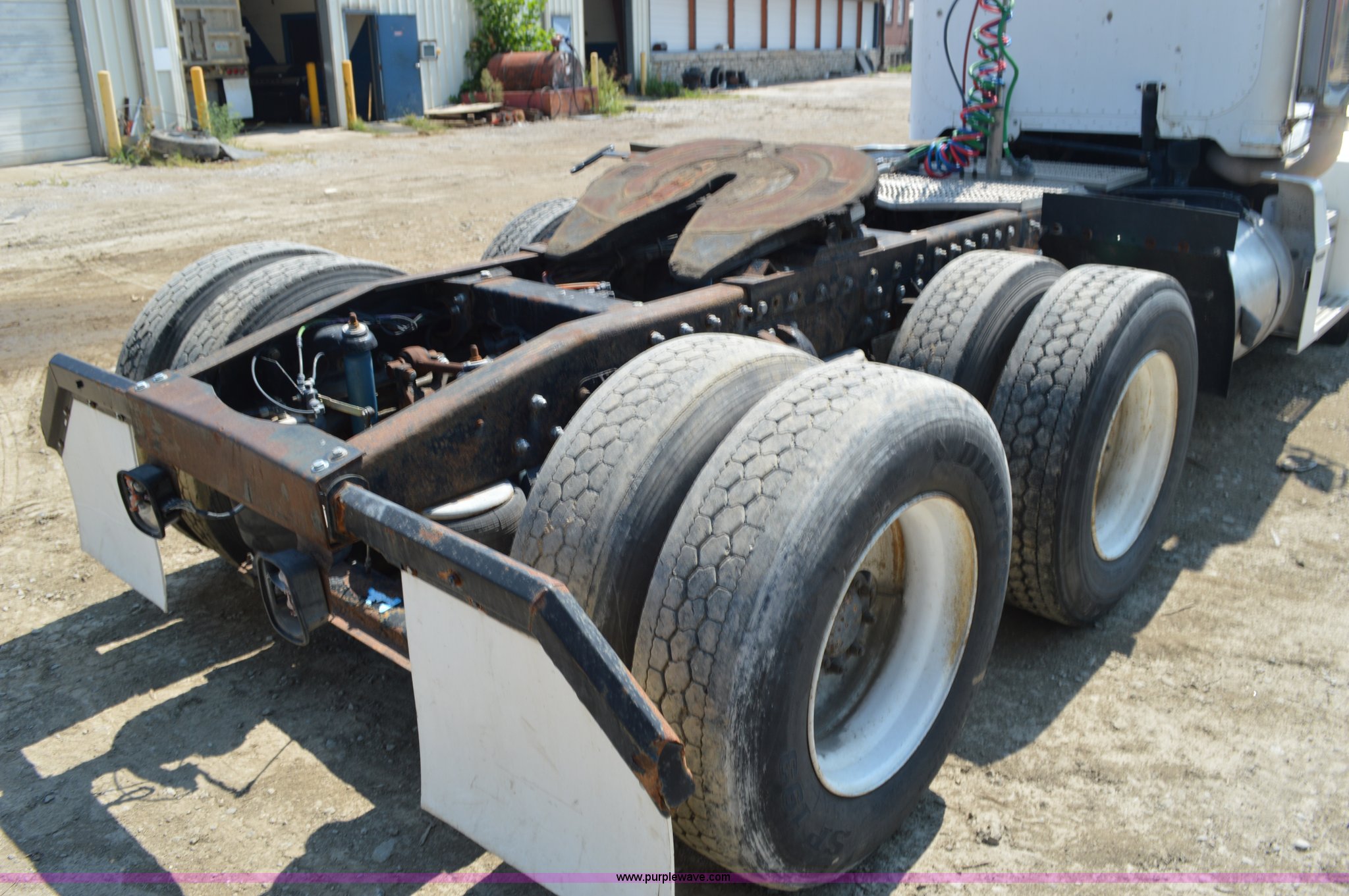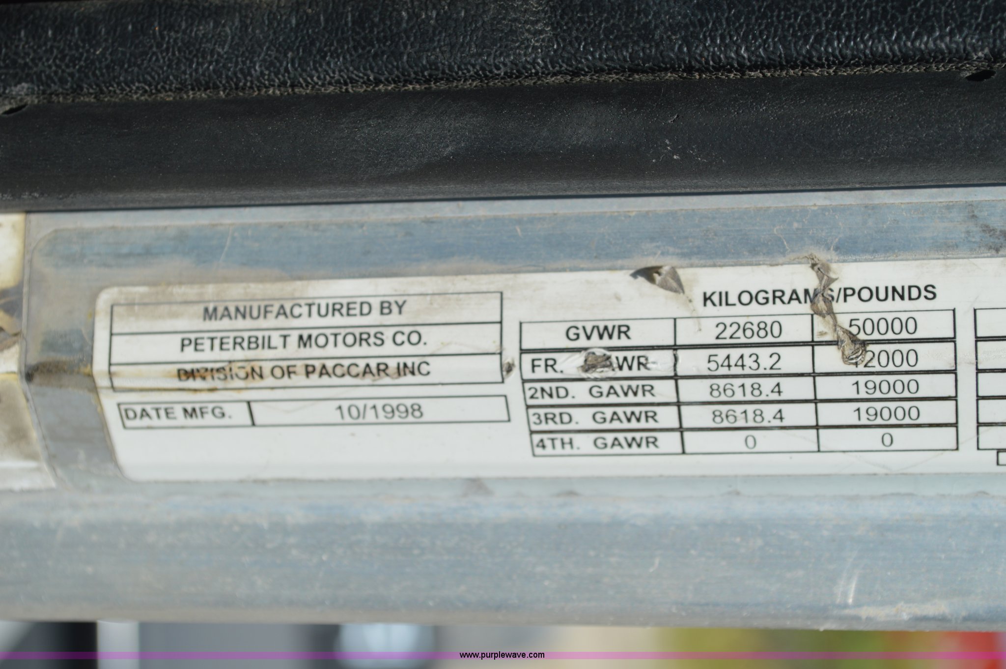 Purple Wave is selling a used Truck Tractor in Missouri. This item is a 1999 Peterbilt 377 semi truck with the following: 1,042,108 miles on odometer, Caterpillar C12 diesel engine, Manual transmission, AC and heat, Cruise, AM/FM/cassette, Heated mirrors, Air suspension seat, Aluminum headache rack, Single front exhaust stack, Dual fuel tanks, Quarter fenders, Air suspension, Air brakes, 275/80R22.5 tires, GVWR 50,000 lbs, FAWR 12,000 lbs, IAWR 19,000 lbs, RAWR 19,000 lbs