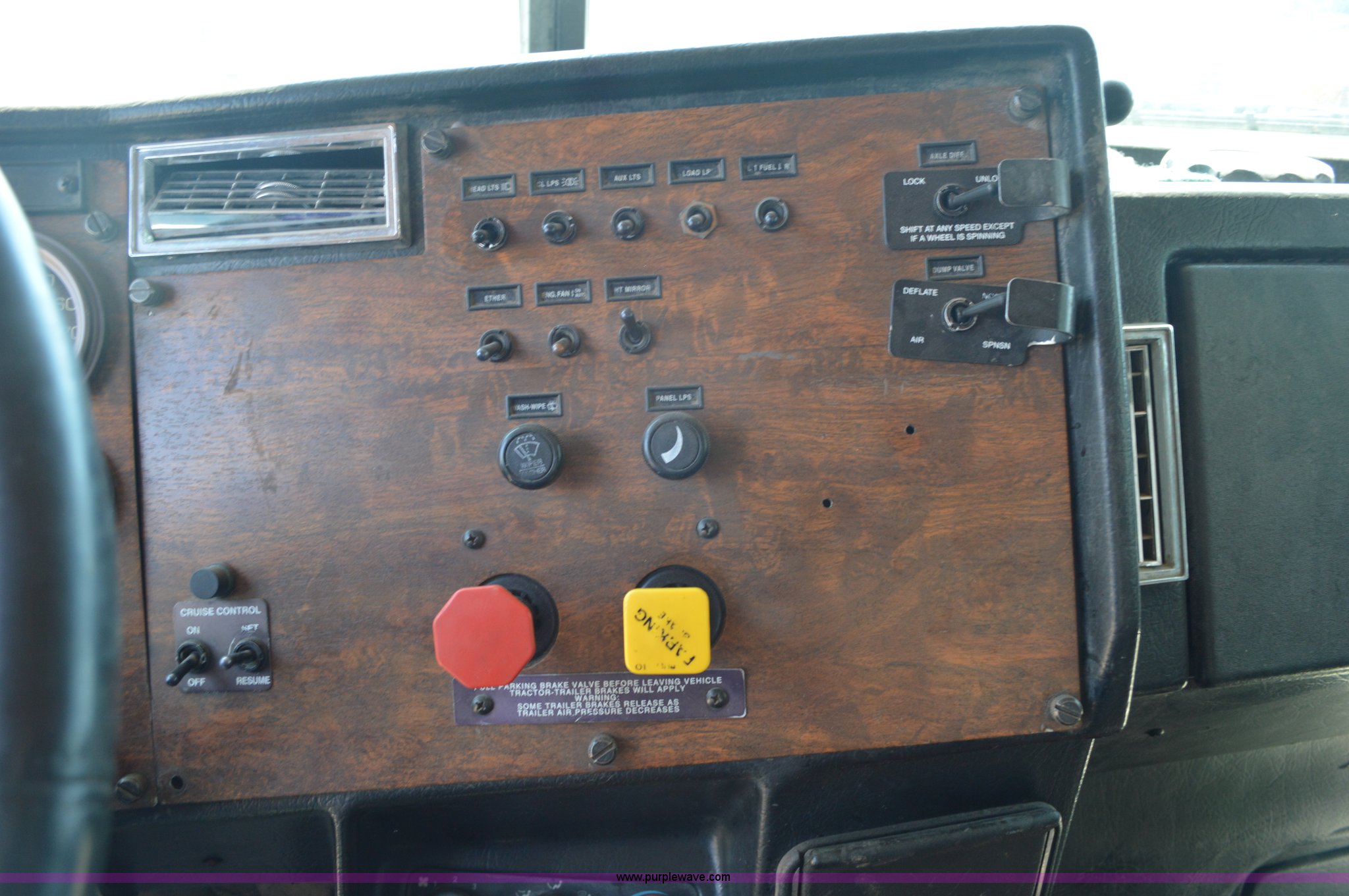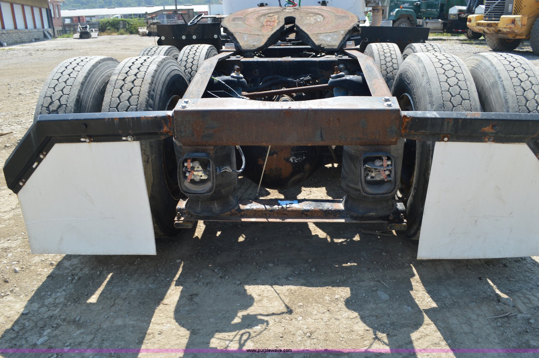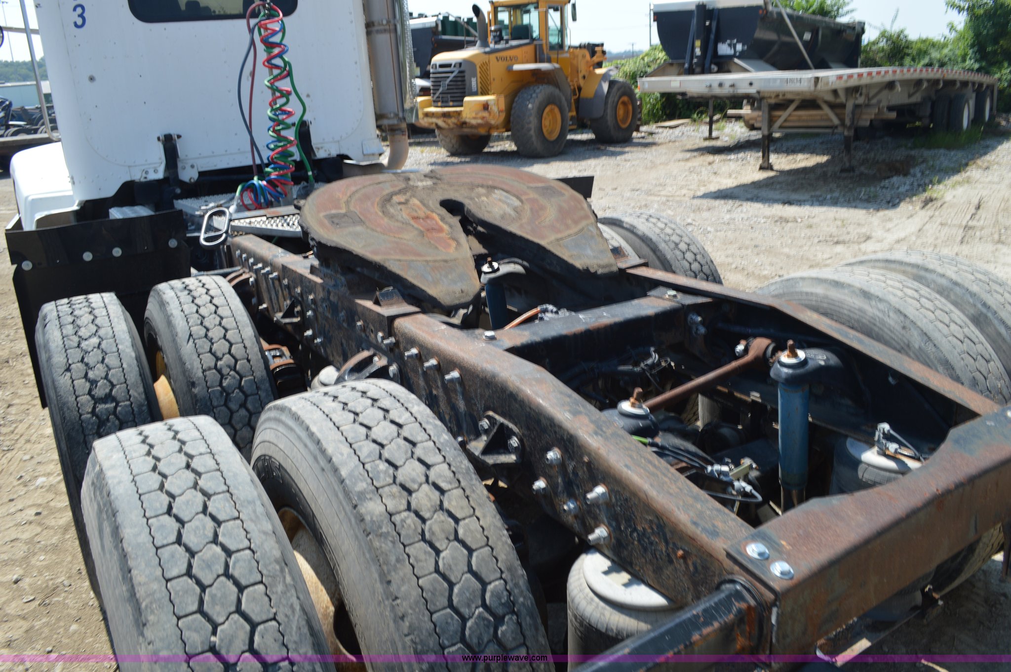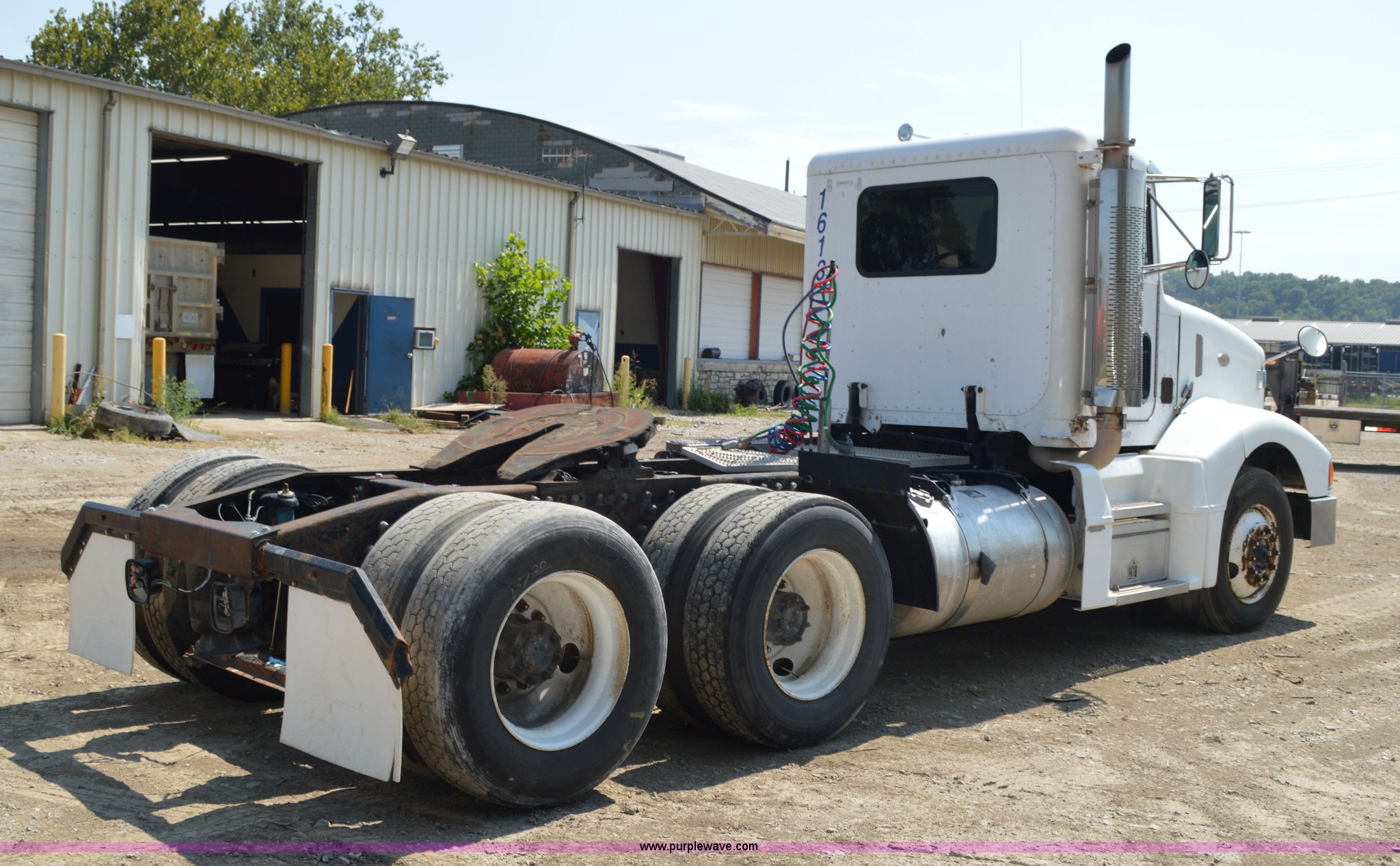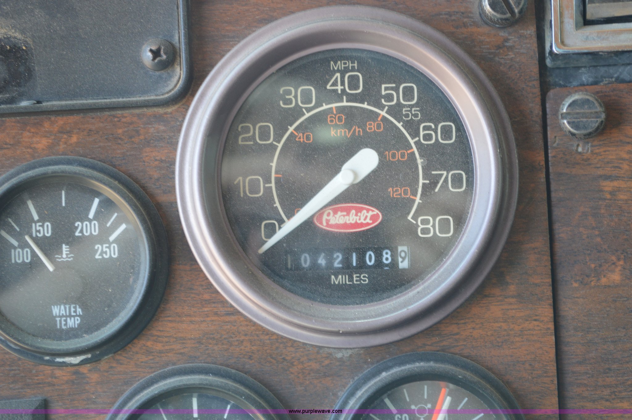 Purple Wave is selling a used Truck Tractor in Missouri. This item is a 1999 Peterbilt 377 semi truck with the following: 1,042,108 miles on odometer, Caterpillar C12 diesel engine, Manual transmission, AC and heat, Cruise, AM/FM/cassette, Heated mirrors, Air suspension seat, Aluminum headache rack, Single front exhaust stack, Dual fuel tanks, Quarter fenders, Air suspension, Air brakes, 275/80R22.5 tires, GVWR 50,000 lbs, FAWR 12,000 lbs, IAWR 19,000 lbs, RAWR 19,000 lbs