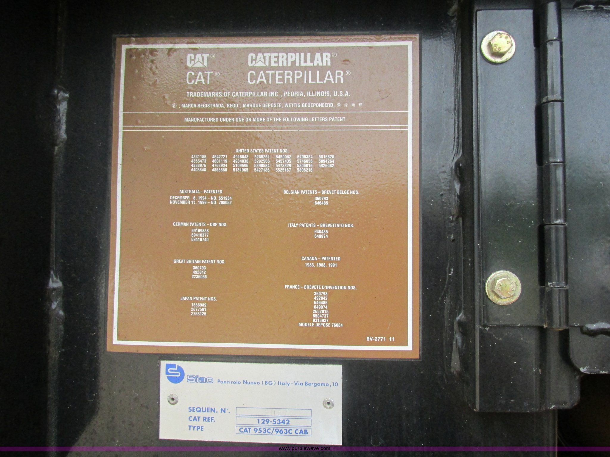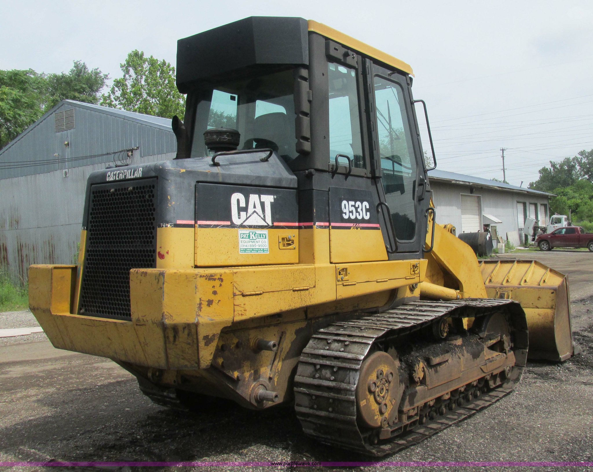 Purple Wave is selling a used Crawler Loader in Missouri. This item is a 2001 Caterpillar 953C track loader with the following: 8,894 hours on meter, Hours may vary, unit is still in use, Caterpillar 3116 six cylinder turbo diesel engine, Serial 4TF70420, Hydrostatic transmission, Enclosed cab, AC and heat, Suspension seat, Wipers, Joystick bucket controls, 93"W self-leveling bucket, 2.25 cubic yard capacity, (8) bolt-on teeth, Factory rear ripper mounts and joystick, 19.5"W double grouser track pads, Caterpillar re-manufactured right hand drive pump installed August 2015, Service records available upon request, Serial 0953CJ2ZN04427