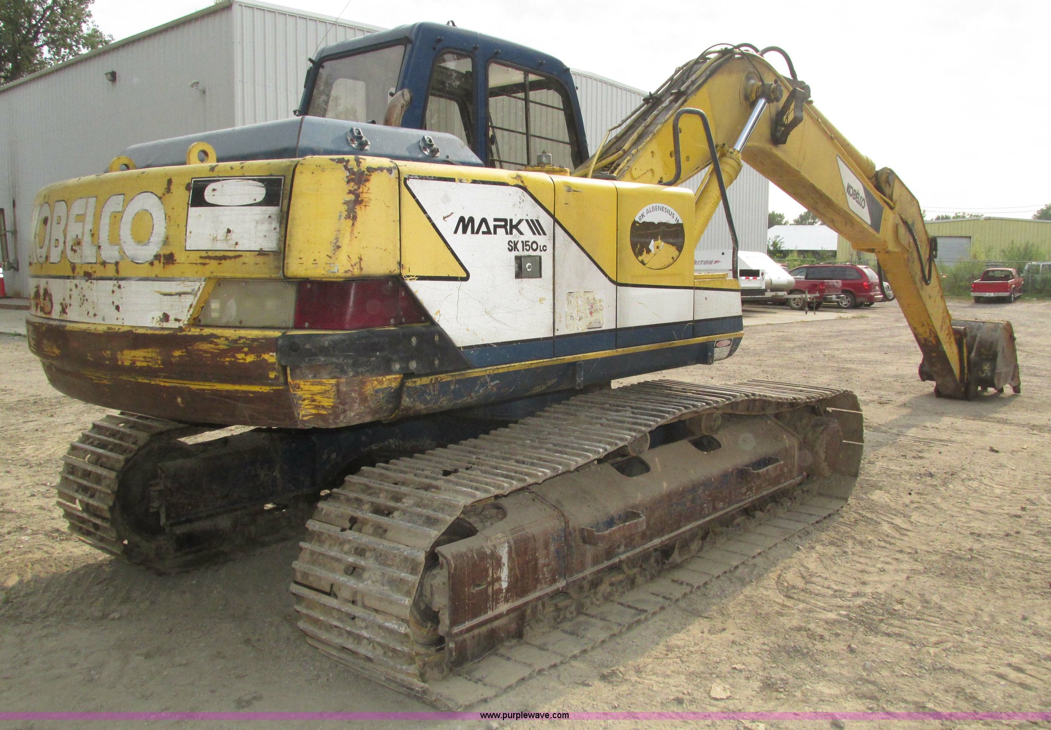 Purple Wave is selling a used Hydraulic Excavator in Nebraska. This item is a Kobelco SK150LC excavator with the following: 6,937 hours on meter, Isuzu four cylinder turbo diesel engine, Two speed hydrostatic transmission, Enclosed cab, AM/FM/cassette, Suspension seat, Front work lights, Standard boom, 10' stick length, Auxiliary hydraulics, Geith 36"W bucket, Weld-on cutting edge, (5) bolt-on teeth, Seven bottom rollers, 23.5"W steel triple grouser track pads, Throttle cable replaced in September 2015, Mirror missing, Serial YM00362