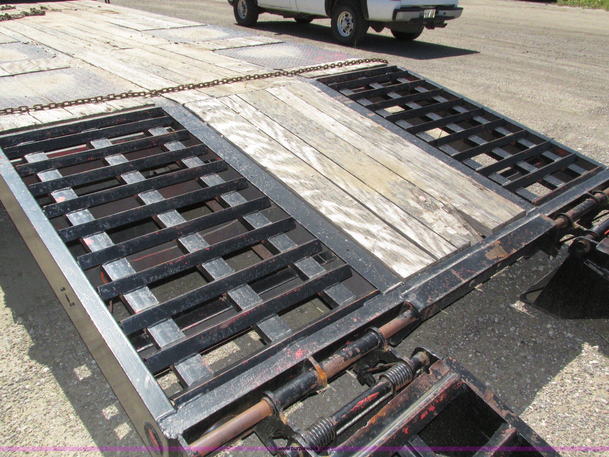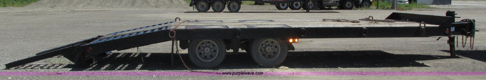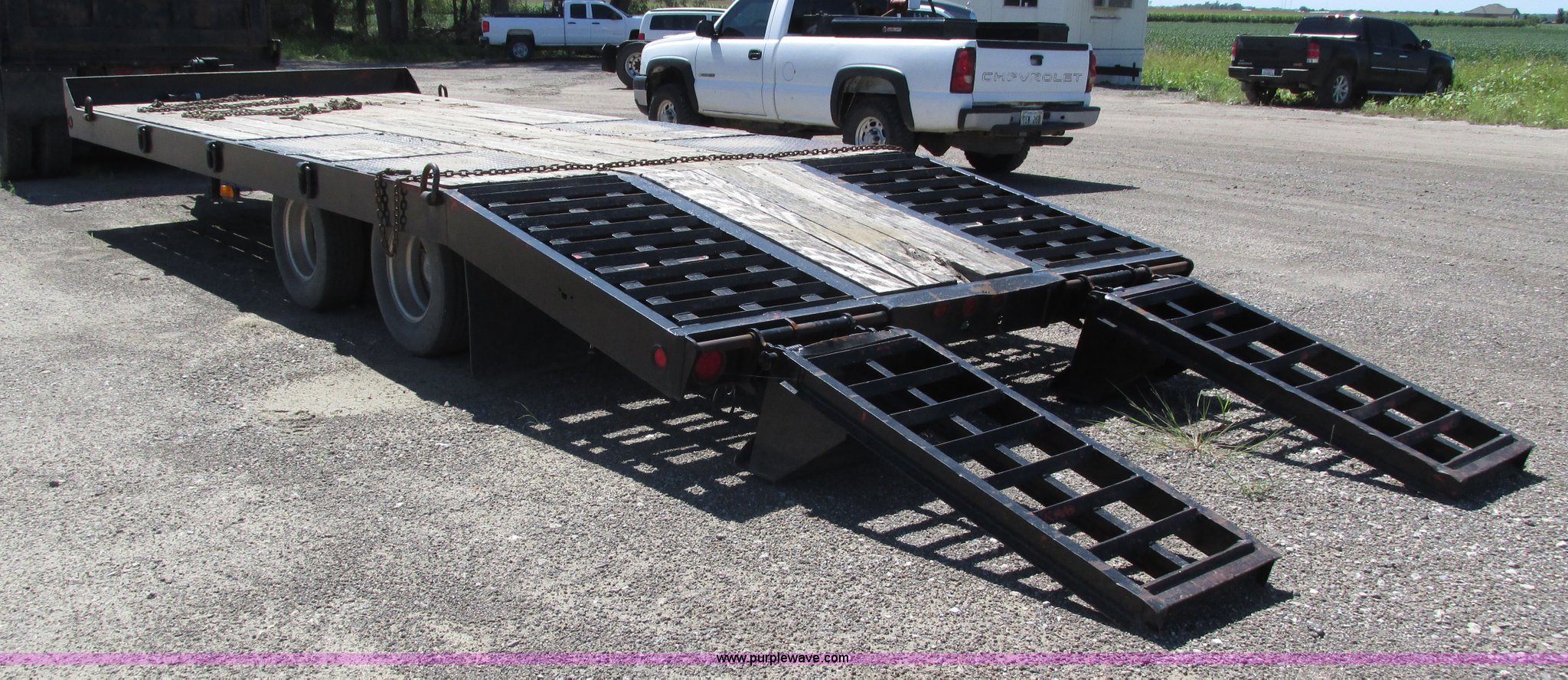 Purple Wave is selling a used Equip. Trailer in Nebraska. This item is a 2001 Load King 122LT 24'L equipment trailer with the following: 19'L x 102"W wood deck, 64" tail, 60" x 22" adjustable ramps, (5) D-ring tie downs per side, Tongue mounted toolbox, Tools are not included, Two speed jackstand, Adjustable pintle hitch, Spring suspension, Air brakes, LT245/75R16 tires, GVWR 29,900 lbs, GAWR 11,112 lbs, 5,900 lbs tare weight, Chains are not included