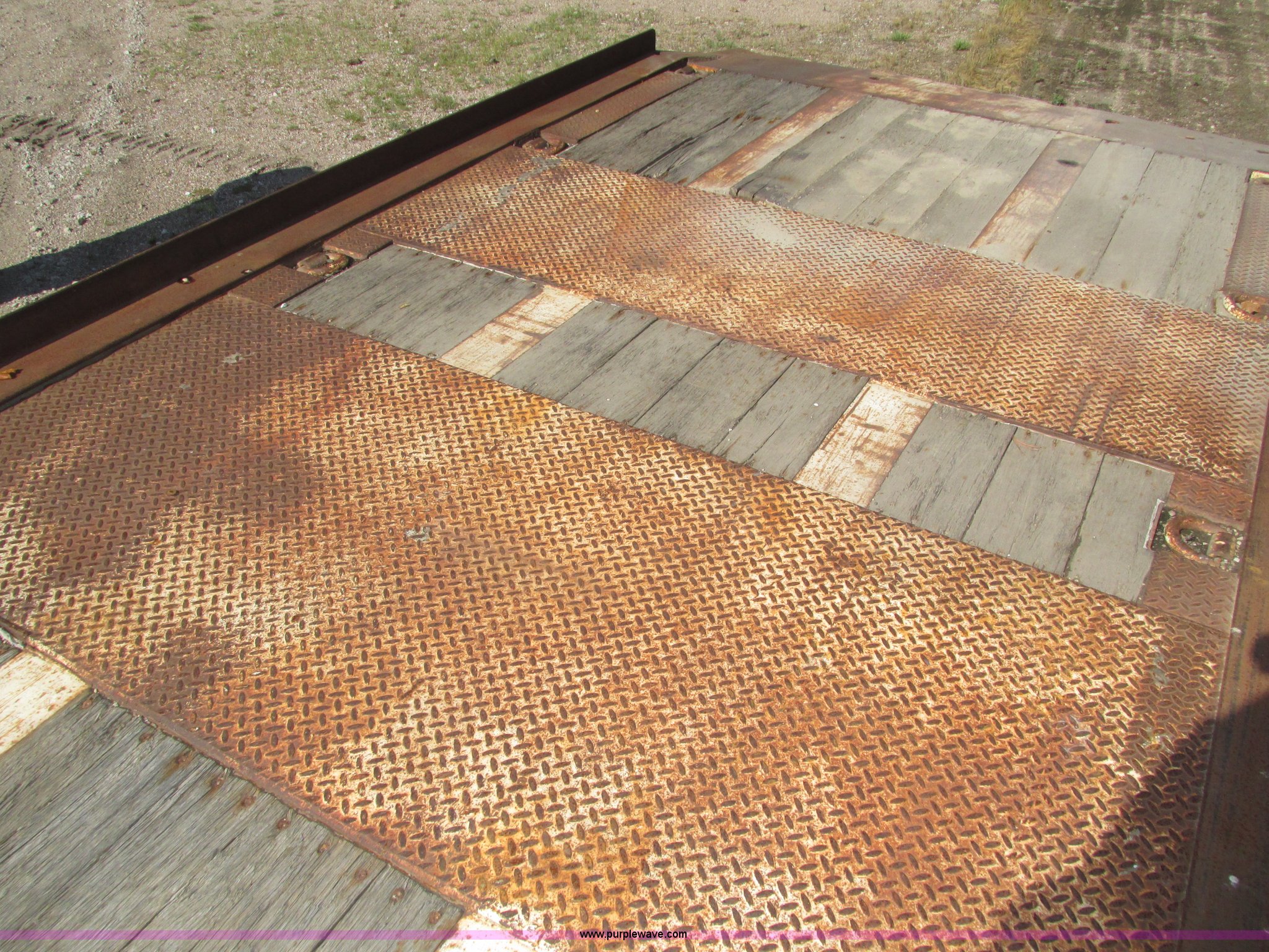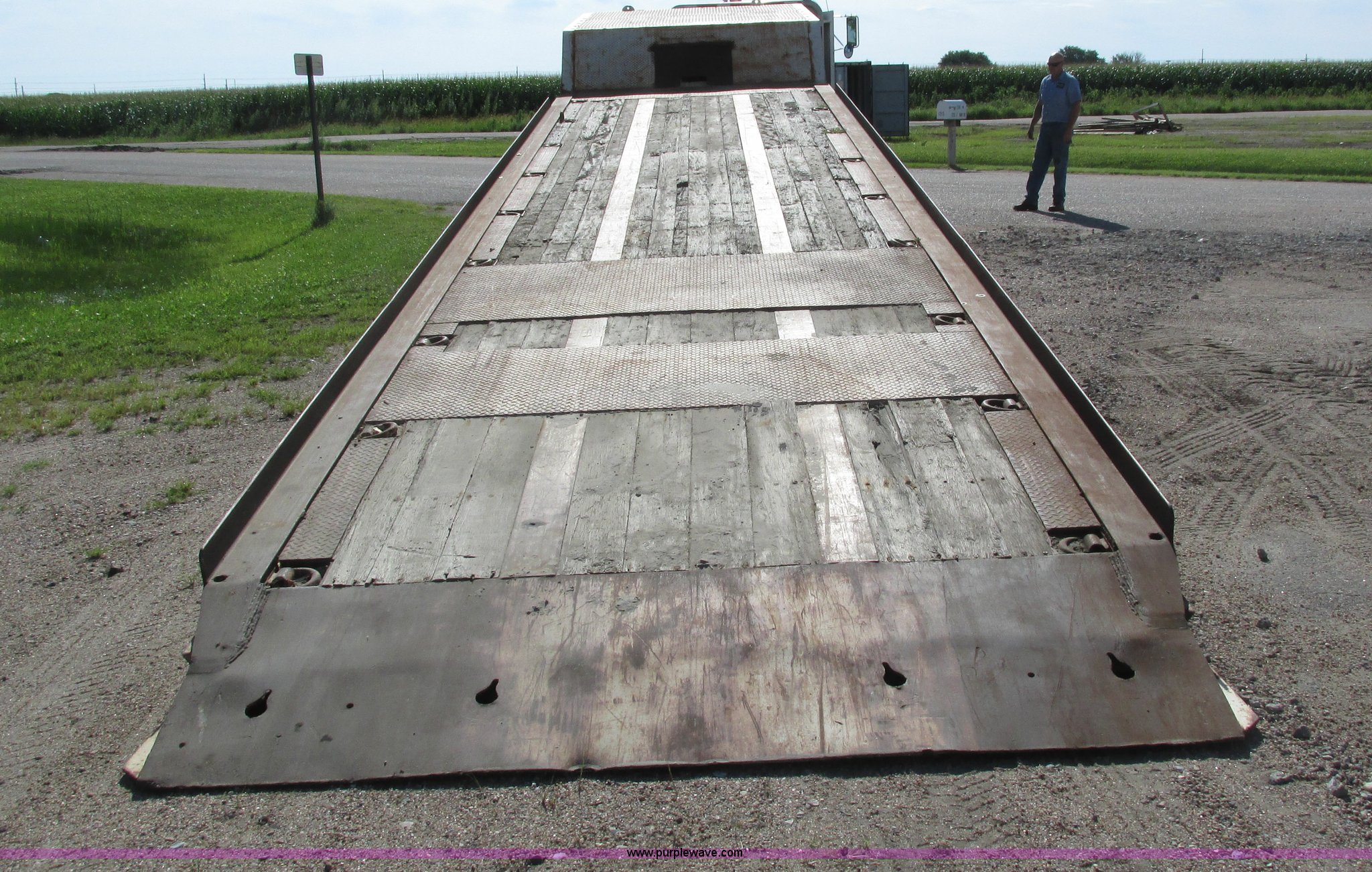 Purple Wave is selling a used Equip. Trailer in Nebraska. This item is a 1997 Landoll tilt deck trailer with the following: Approximately 44'L x 102"W O.D., 29" rear steel ramp, 32'L wood deck, 8'L steel upper deck, (9) D-ring tie downs per side, Winch, Approximately 34'L x 1/2" diameter cable, Side controls, Control levers will be replaced prior to auction, Tandem sliding axles, Air suspension, Air brakes, 10R17.5 tires, GVWR 76,000 lbs, GAWR 17,640 lbs, Previously used to haul containers, Rust, Unit# 201