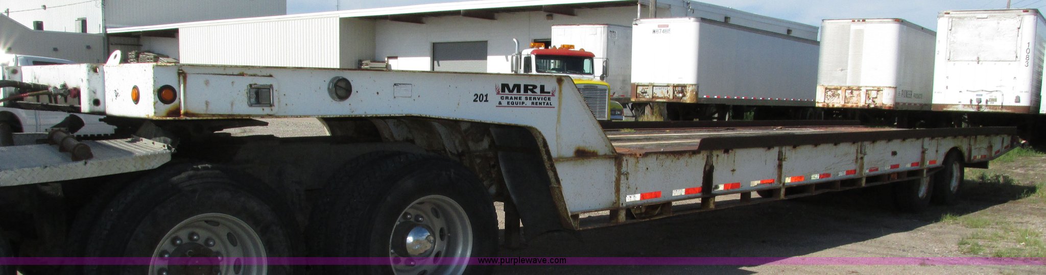 1997 Landoll tilt deck trailer. Approximately 44'L x 102"W O.D., 29" rear steel ramp, 32'L wood deck, 8'L steel upper deck, (9) D-ring tie downs per side, Winch Approximately 34'L x 1/2" diameter cable, Side controls, Control levers will be replaced prior to auction, Tandem sliding axles, Air suspension, Air brakes, 10R17.5 tires, GVWR 76,000 lbs, GAWR 17,640 lbs, Previously used to haul containers, Rust, Unit# 201. 1LH317UH5V1008887. View equipment video. MRL Crane Service & Equipment Rental. 4331 Juergen Road. Grand Island, NE 68801