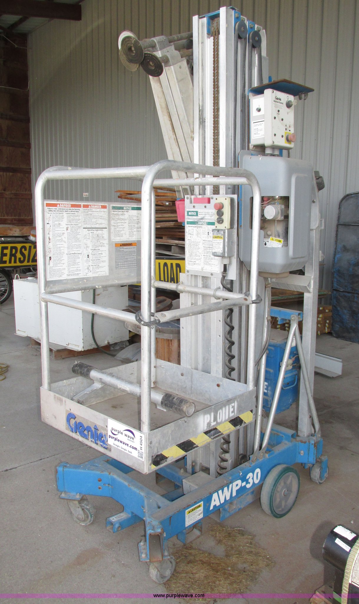 Genie 30 AWP vertical lift has sold in Grand Island, Nebraska for $550. Item H4504 sold on September 24th, 2015.